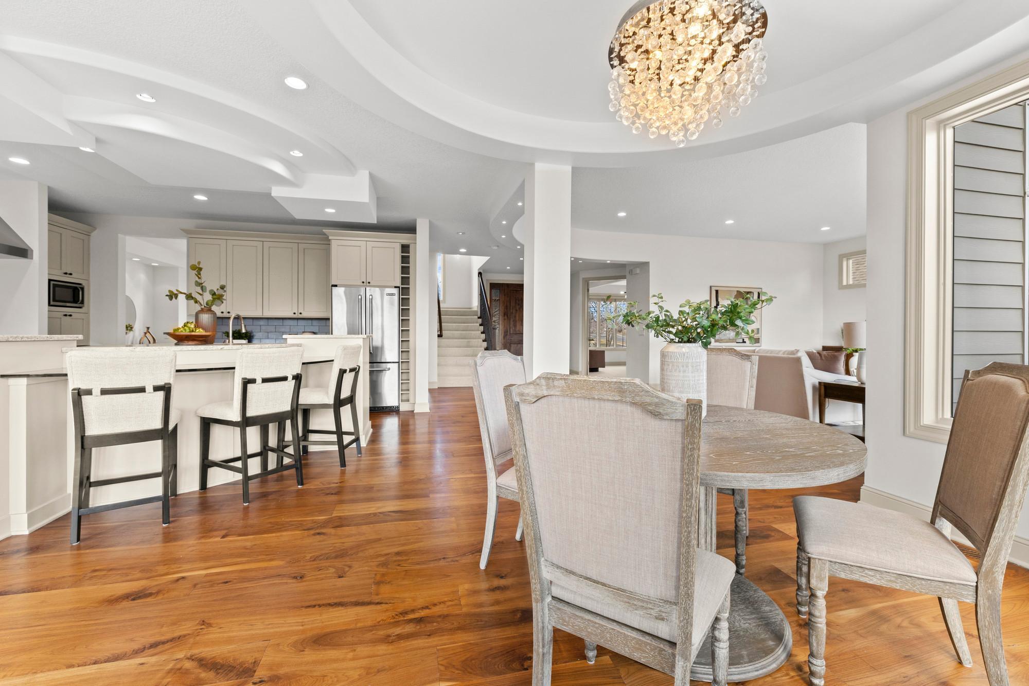 Originally a Swanson Homes Parade Model, this property brings together craftsmanship, thoughtful design, and everyday functionality in a way that’s hard to replicate. Set in Seven Greens within the Wayzata School District, it backs directly to a private park reserve with trails- offering rare privacy. Just over 5,500 square feet, 5 beds, and 5 baths, the layout is a true two-story walkout designed for how people actually live. Every space has a purpose, and nothing feels wasted. The main level sets the tone immediately. White-washed walnut floors, a private office, and a kitchen that blends clean design with smart function. Details stand out without being overdone- curved ceilings, soffits that add depth, hidden spice storage behind granite panels, and a backsplash designed without visible outlets. It’s thoughtful, intentional, and clean. The kitchen flows naturally into the main living area, while the mudroom, walk-in pantry, and built-in planning desk near the garage keep daily life organized and efficient. Upstairs, the primary suite feels like a true retreat- double-door entry, tray ceiling, and soft lighting. The ensuite delivers a soaking tub set in a bay window, double vanities, and a glass-enclosed shower. Three additional bedrooms include a Jack-and-Jill setup plus a private en-suite, along with a centrally located laundry room. The walkout lower level is built for entertaining and flexibility. A full bar with natural stone, wine fridge, microwave, and dishwasher anchors the space. There’s room for a media area, fitness studio, and a private guest suite. A flexible area near the stairs can adapt to whatever fits your lifestyle- game space, lounge, or more. Outside, the backyard is designed to be enjoyed, not maintained. A smaller fenced area paired with direct access to the park reserve gives you space and privacy without the upkeep. For the buyer who values quality construction, intentional design, and a setting that’s hard to find- this home delivers in a way that feels both elevated and livable.