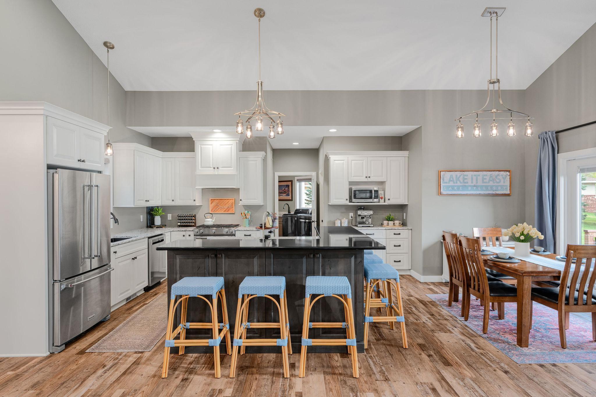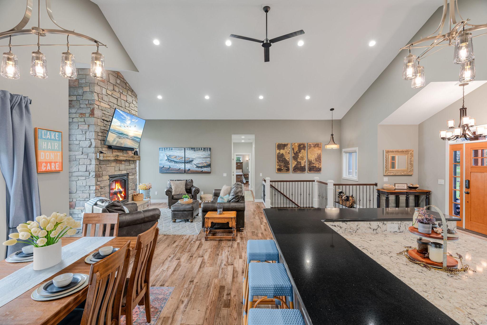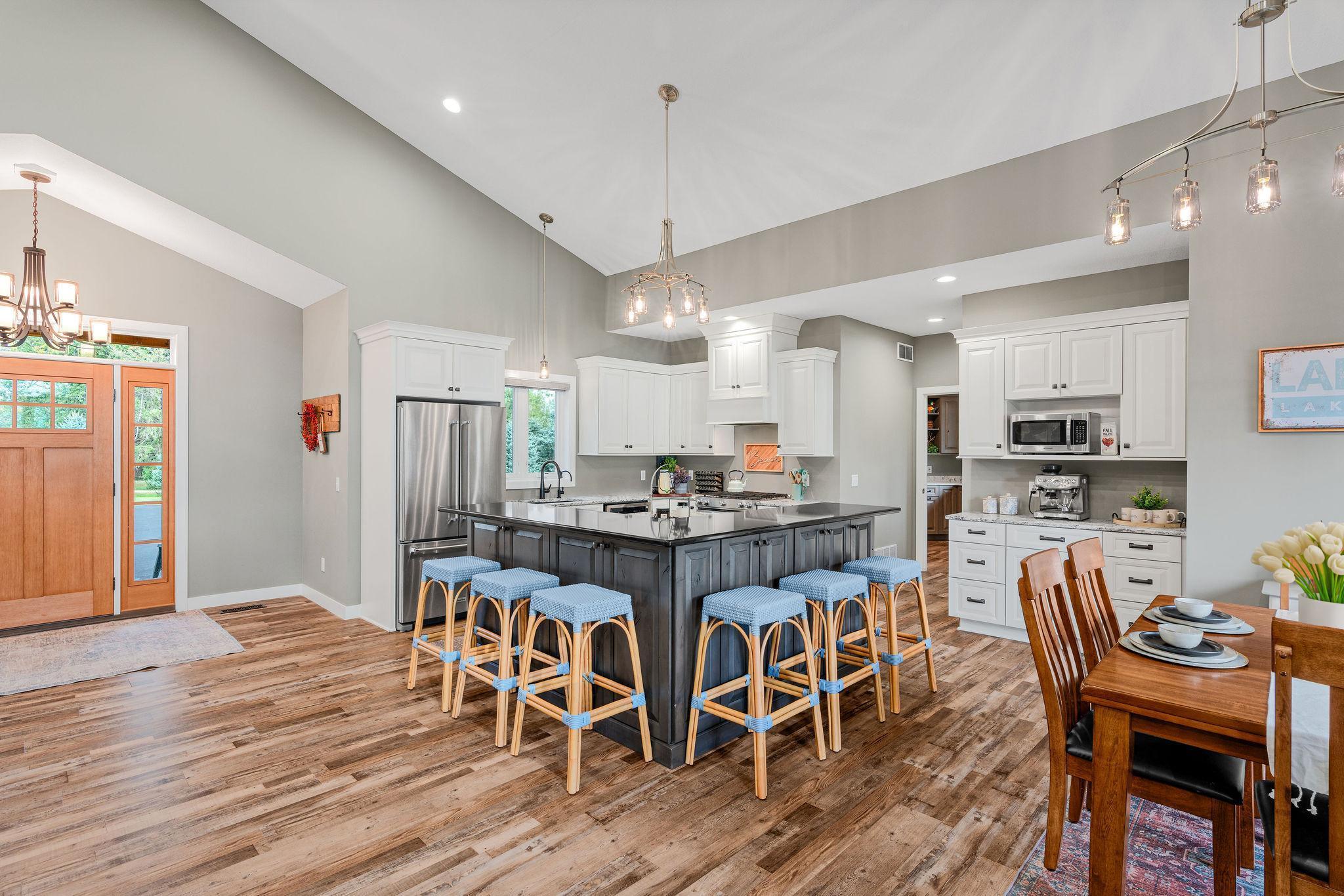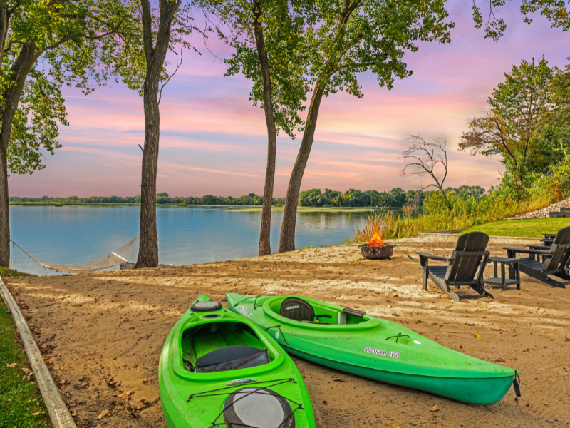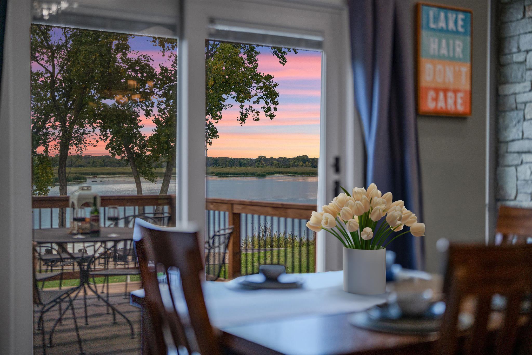 PRIVACY. PANORAMA. PENINSULA. Your Once-in-a-Generation Retreat. A peninsula setting is rare. Combine it with 1.5 acres of privacy, a near-new build, and 212 feet of west-facing, exceptionally level shoreline, and you’ve found the impossible. Claiming the premier seat on a coveted point of Lake Byllesby, this sanctuary delivers seclusion and distinction. Cradled by a natural alluvial delta, this retreat offers a quiet, secluded, island-like feel. Privacy like this rarely comes along. This rare stretch of shoreline faces calm, protected waters. Two tiers of lawn—one at walkout level to the lake—frame the water in an amphitheater panorama. Tucked on a quiet cul-de-sac, this Craftsman-inspired ranch commands attention with stately gabled rooflines & timeless dormers. A timber-framed stone entry creates a welcoming focal point, with architectural lighting illuminating the home against the evening sky. A newly paved drive sets a striking tone, with designated guest parking for effortless hospitality. Step inside to the allure of new construction with the immaculate finish of a showcase home. A breathtaking open layout soars beneath 14-foot vaulted ceilings, anchored by a stone fireplace with a hand-hewn barnwood mantel. The oversized quartz island seats six—perfect for everything from pancake breakfasts to wine-&-charcuterie nights—while a built-in coffee bar adds the indulgence of a café at home. Just steps away, a walk-in pantry keeps the kitchen clutter-free. Neutral grays & warm tones ground the design, while crisp whites & soft blues reflect the shimmer of water. Lakeside windows treat you to a front-row seat as each season paints a fresh masterpiece. The primary suite is a serene sanctuary with a private bath—a personal escape with a luxurious soaking tub and a separate walk-in tiled shower. The freshly finished lower level showcases nearly 9-foot ceilings, a sprawling family room, bedrooms, and a half bath—plus heated floors, a walkout, and a flexible space for fitness or hobbies. Plumbing is also roughed-in for an additional full bath. The attached 3-car garage offers in-floor heat & expansive space for vehicles and lake essentials. Technology here rivals the luxury of the setting, with infrastructure rarely found in residential homes. A commercial-grade wired panel with a professional mesh Wi-Fi system delivers seamless internet throughout—eliminating dead zones and combining wired-speed reliability with wireless convenience. Every bedroom is hard-wired with Ethernet for instant, buffer-free streaming. A Sonos whole-home surround sound system completes the experience with immersive audio for movies or music. Comfort is elevated with an ICF foundation, spray-foam insulation, and James Hardie siding—all working together for energy efficiency, sound insulation, and all-season comfort. Excellence extends beyond the finishes into the very bones of the property, with a state-of-the-art septic system, a high-performance well, and a parcel configuration that delivers a rare tax advantage. Be sure to request the property brochure for full details on these extraordinary upgrades. Outdoors, the lake takes center stage. Sweeping, tiered grounds unfold toward the shoreline, where 115 feet of dramatic, lighted stonework and illuminated steps ascend from the lower lawn to the upper terrace. A sandy beach invites barefoot evenings around the fire pit—feel the sugary sand between your toes as you savor s’mores under the stars. The shoreline is well-suited for a dock tailored to your lifestyle. The setting is extraordinary—your own private haven, yet expansive enough for an ethereal wedding or celebrations with 100 of your closest friends. From the backyard, you’re treated to glimpses of a rare alluvial habitat teeming with pelicans, herons, egrets, & ducks, while otters, beavers, & eagles make regular appearances. This is life most only dream of—where creamsicle sunsets melt into the water. It’s more than rare—it’s unrivaled. OOH LA LUXE.