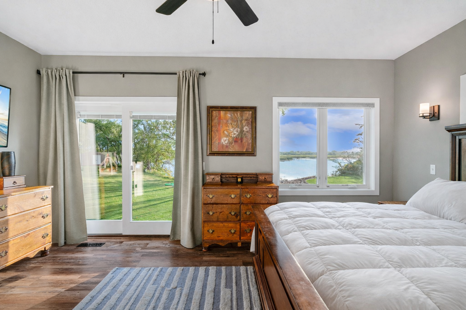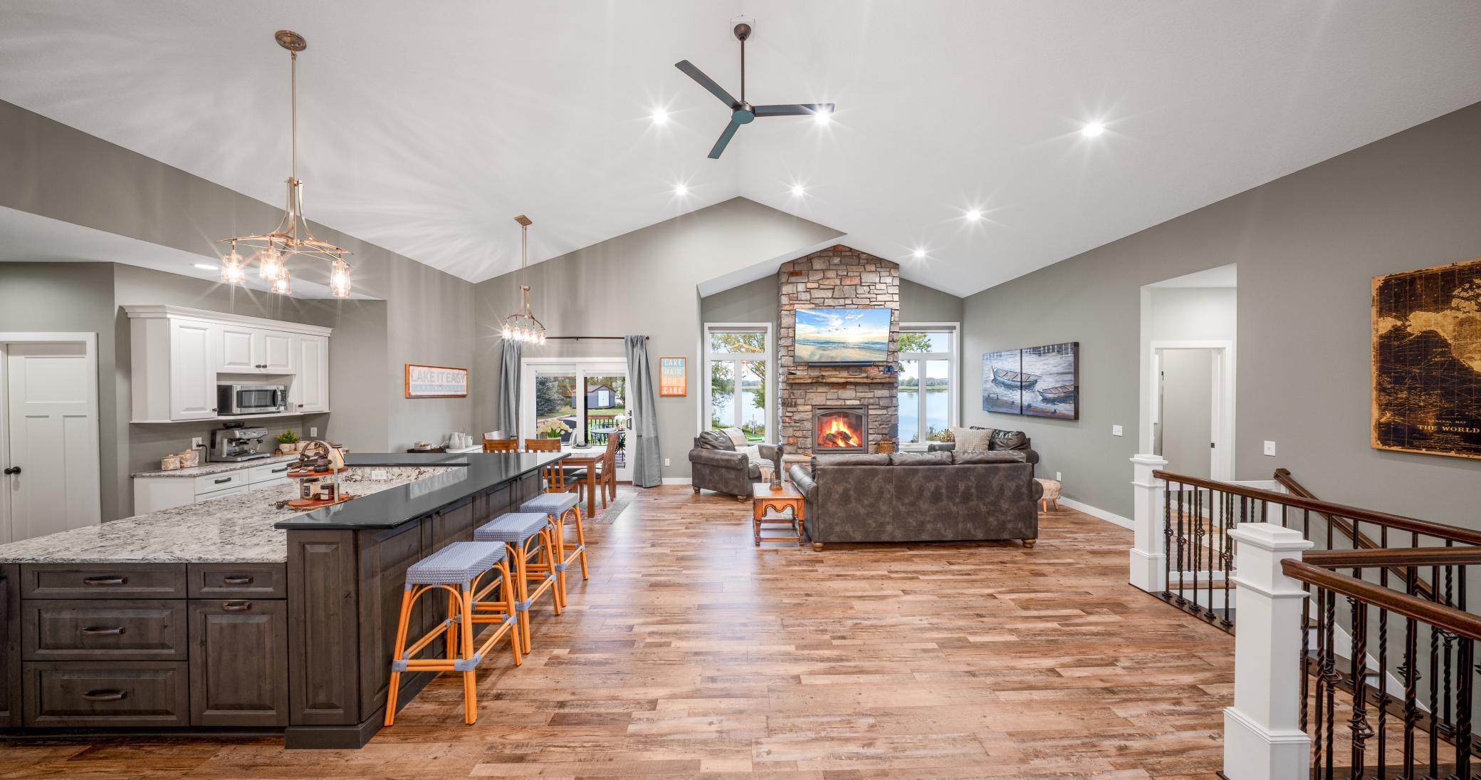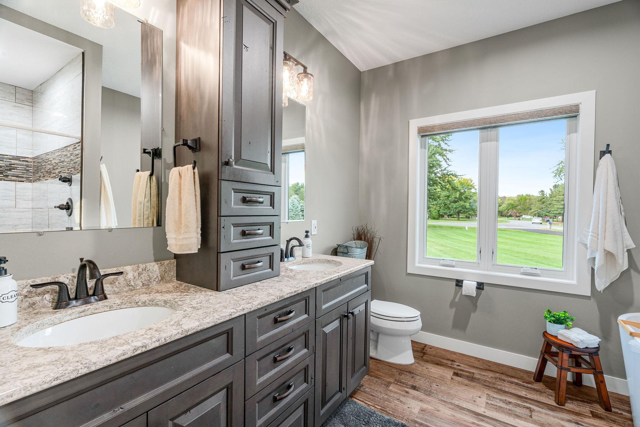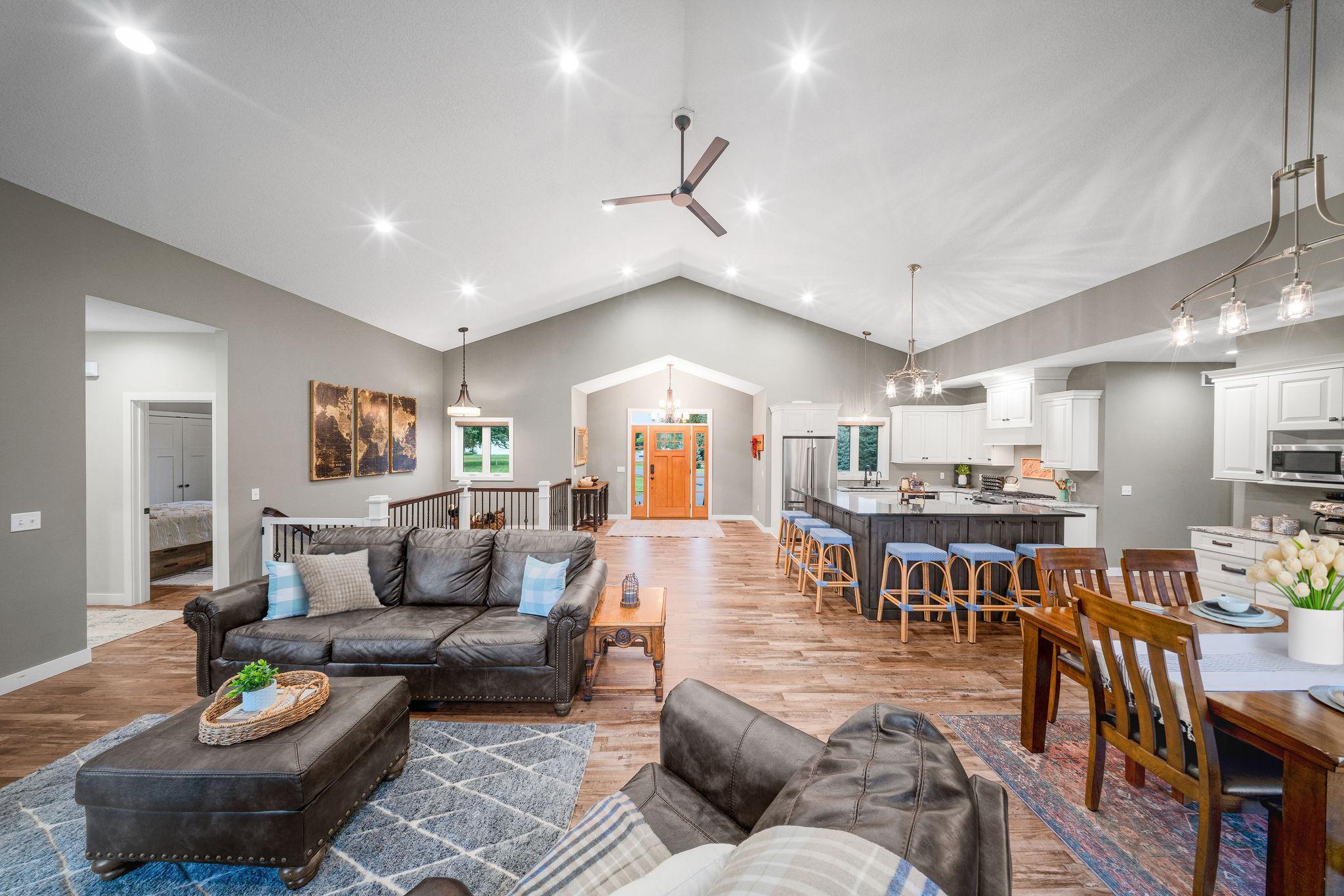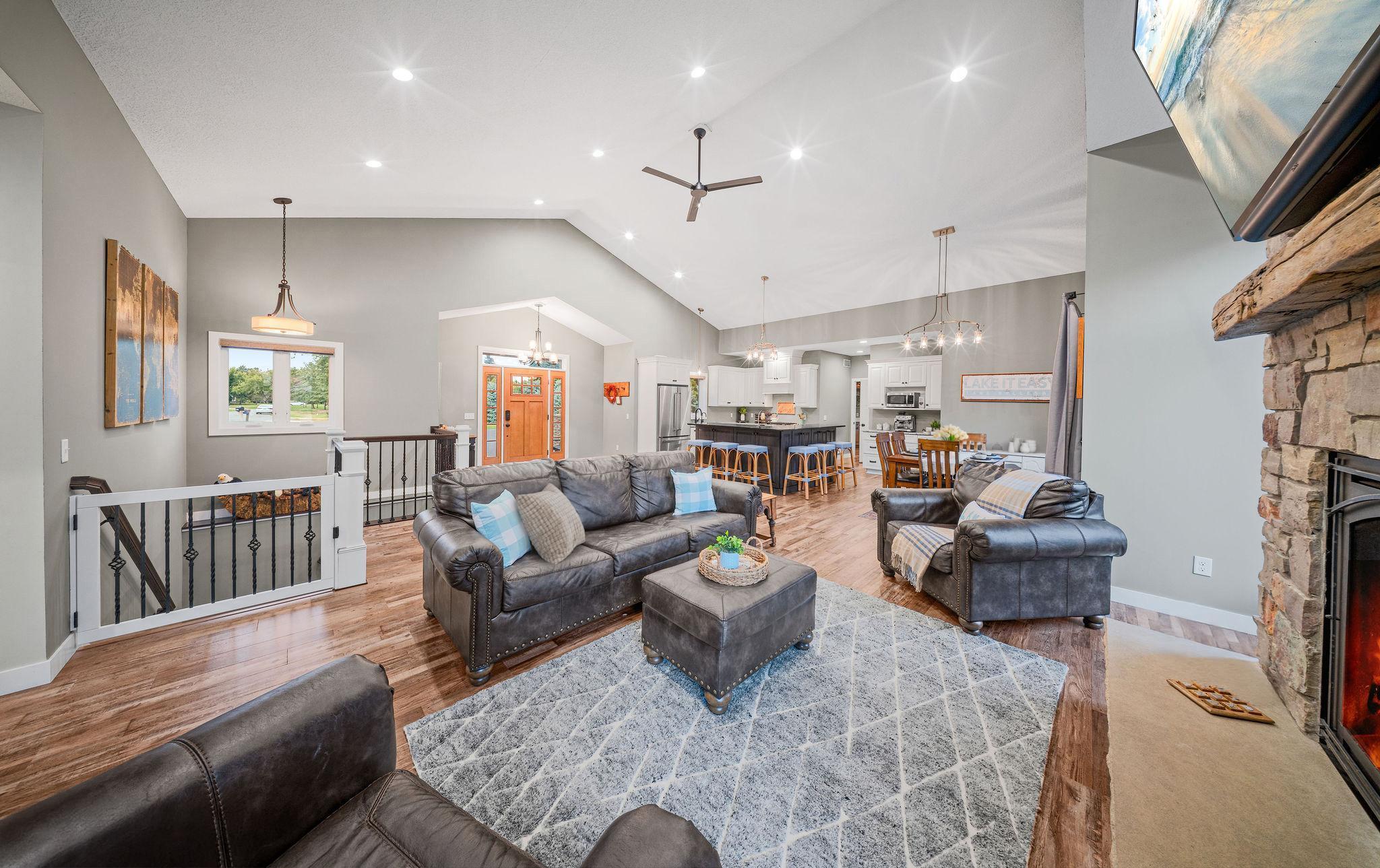 PRIVACY. PANORAMA. PENINSULA. Your Once-in-a-Generation Retreat. A peninsula setting is rare. Combine it with 1.5 acres of privacy, a near-new build, and 212 feet of west-facing, exceptionally level shoreline, and you’ve found the impossible. Claiming the premier seat on a coveted point of Lake Byllesby, this sanctuary delivers seclusion and distinction. Cradled by a natural alluvial delta, this retreat offers a quiet, secluded, island-like feel. Privacy like this rarely comes along. This rare stretch of shoreline faces calm, protected waters. Two tiers of lawn—one at walkout level to the lake—frame the water in an amphitheater panorama. Tucked on a quiet cul-de-sac, this Craftsman-inspired ranch commands attention with stately gabled rooflines & timeless dormers. A timber-framed stone entry creates a welcoming focal point, with architectural lighting illuminating the home against the evening sky. A newly paved drive sets a striking tone, with designated guest parking for effortless hospitality. Step inside to the allure of new construction with the immaculate finish of a showcase home. A breathtaking open layout soars beneath 14-foot vaulted ceilings, anchored by a stone fireplace with a hand-hewn barnwood mantel. The oversized quartz island seats six—perfect for everything from pancake breakfasts to wine-&-charcuterie nights—while a built-in coffee bar adds the indulgence of a café at home. Just steps away, a walk-in pantry keeps the kitchen clutter-free. Neutral grays & warm tones ground the design, while crisp whites & soft blues reflect the shimmer of water. Lakeside windows treat you to a front-row seat as each season paints a fresh masterpiece. The primary suite is a serene sanctuary with a private bath—a personal escape with a luxurious soaking tub and a separate walk-in tiled shower. The freshly finished lower level showcases nearly 9-foot ceilings, a sprawling family room, bedrooms, and a half bath—plus heated floors, a walkout, and a flexible space for fitness or hobbies. Plumbing is also roughed-in for an additional full bath. The attached 3-car garage offers in-floor heat & expansive space for vehicles and lake essentials. Technology here rivals the luxury of the setting, with infrastructure rarely found in residential homes. A commercial-grade wired panel with a professional mesh Wi-Fi system delivers seamless internet throughout—eliminating dead zones and combining wired-speed reliability with wireless convenience. Every bedroom is hard-wired with Ethernet for instant, buffer-free streaming. A Sonos whole-home surround sound system completes the experience with immersive audio for movies or music. Comfort is elevated with an ICF foundation, spray-foam insulation, and James Hardie siding—all working together for energy efficiency, sound insulation, and all-season comfort. Excellence extends beyond the finishes into the very bones of the property, with a state-of-the-art septic system, a high-performance well, and a parcel configuration that delivers a rare tax advantage. Be sure to request the property brochure for full details on these extraordinary upgrades. Outdoors, the lake takes center stage. Sweeping, tiered grounds unfold toward the shoreline, where 115 feet of dramatic, lighted stonework and illuminated steps ascend from the lower lawn to the upper terrace. A sandy beach invites barefoot evenings around the fire pit—feel the sugary sand between your toes as you savor s’mores under the stars. The shoreline is well-suited for a dock tailored to your lifestyle. The setting is extraordinary—your own private haven, yet expansive enough for an ethereal wedding or celebrations with 100 of your closest friends. From the backyard, you’re treated to glimpses of a rare alluvial habitat teeming with pelicans, herons, egrets, & ducks, while otters, beavers, & eagles make regular appearances. This is life most only dream of—where creamsicle sunsets melt into the water. It’s more than rare—it’s unrivaled. OOH LA LUXE.