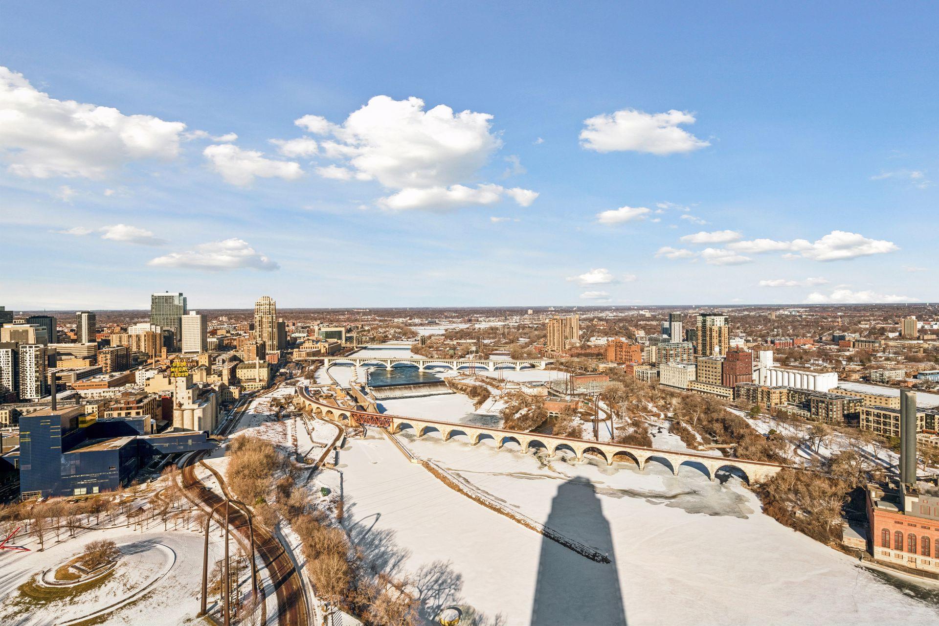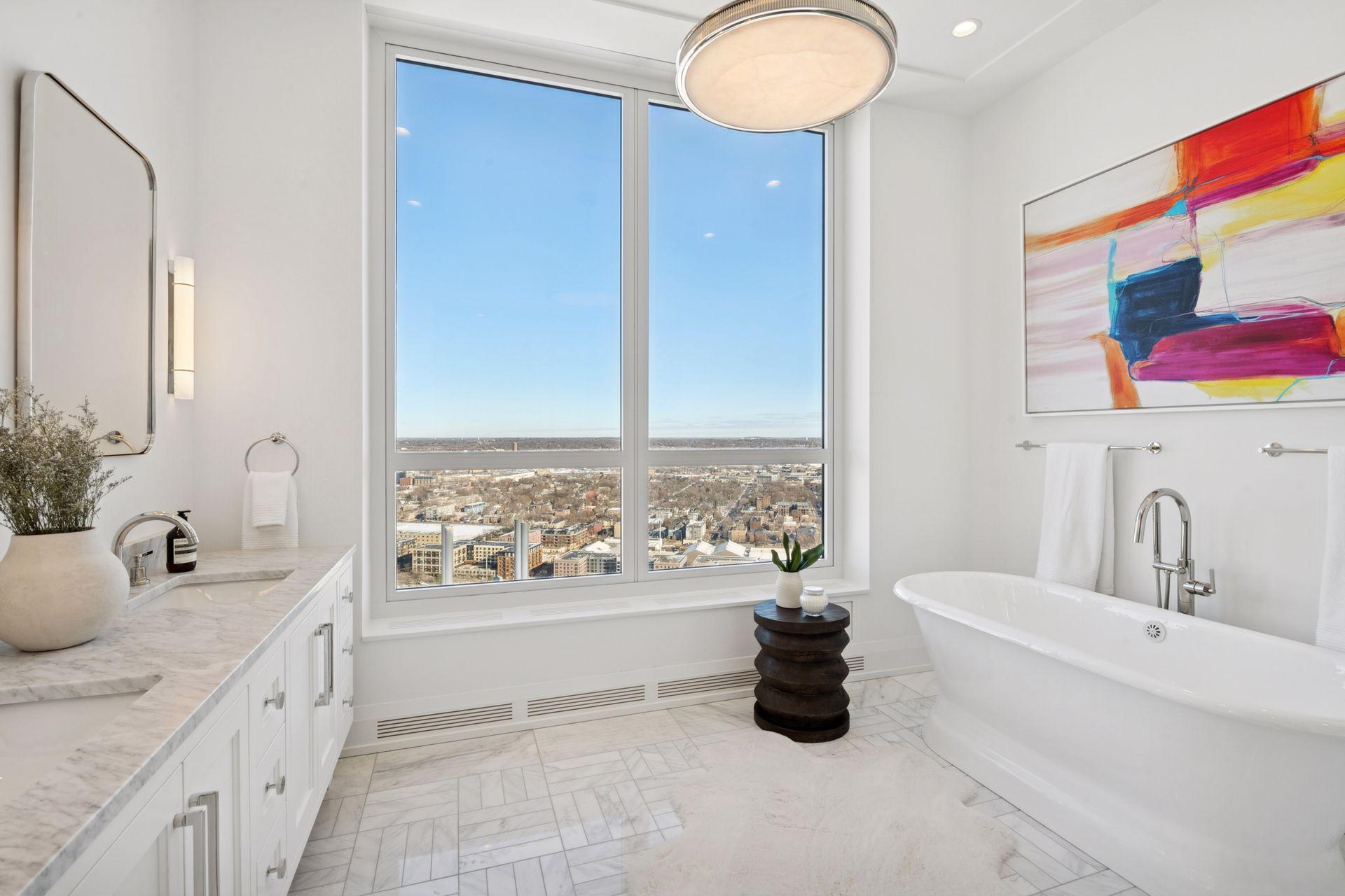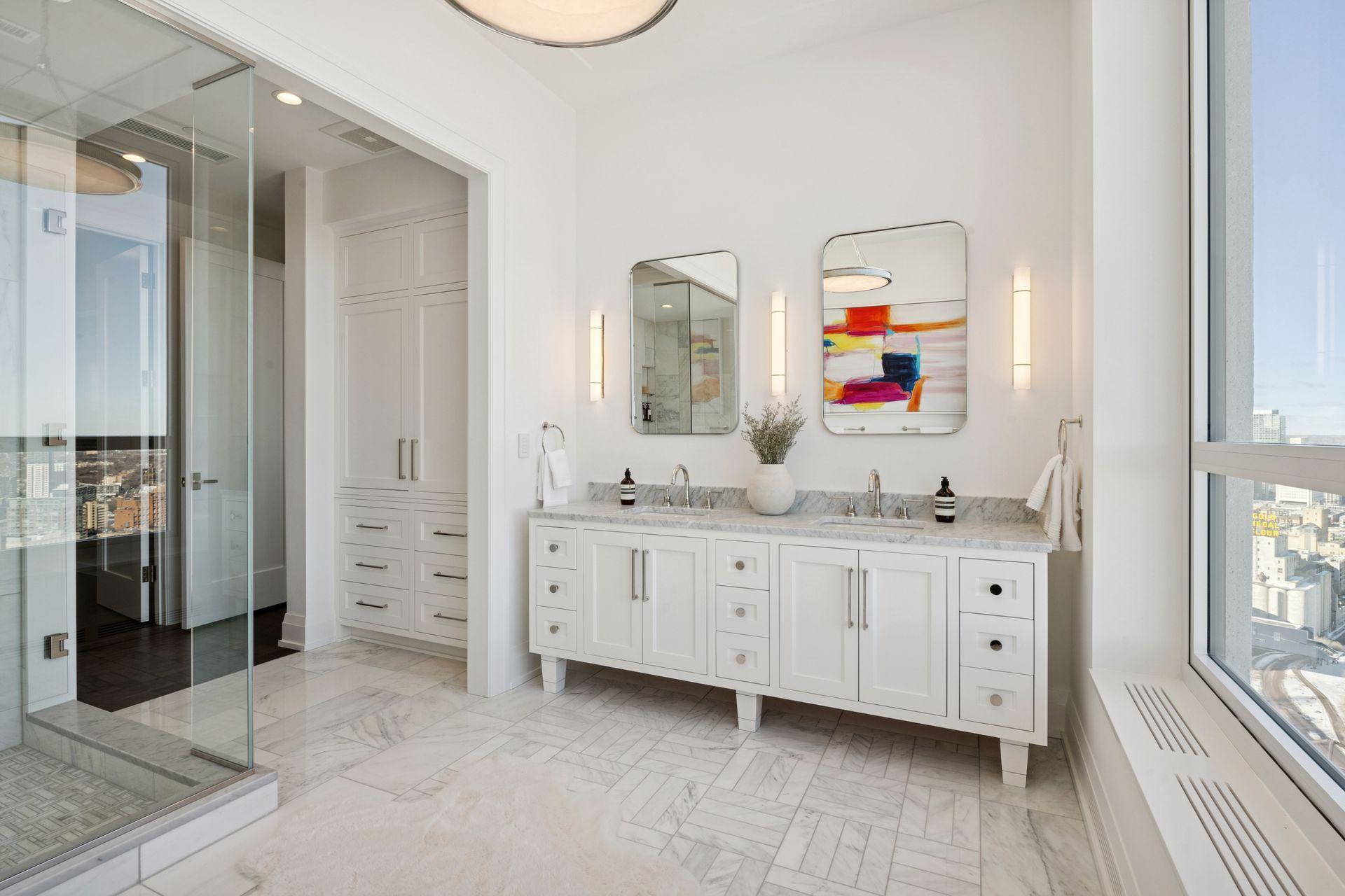 ELEVEN offers luxurious living with all the amenities of a five-star hotel without the hassle of hotel guests. This two-bedroom plus library unit is on the premier northwest corner of the building where the views are nothing short of spectacular. The gracious open plan features a chef's kitchen with a large center island, double oven, Wolf and Sub-Zero appliances, Waterworks fixtures, and storage galore in stunning custom cabinetry; a wall to wall custom designed media unit in the great room; and in-ceiling Sonos wireless speakers and mesh Wi-Fi network for your enjoyment. Eleven foot ceilings and huge windows throughout offer lots of natural light and panoramic views from every room. Expansive 273 square feet outdoor loggia that is heated and covered. Extensive built-in storage throughout the home. ELEVEN marks the first residential condominium tower in the heart of Minneapolis by Robert A.M. Stern Architects. Set along the Mississippi riverfront, ELEVEN works beautifully within the fabric of the Mill District. It provides world-class design, unmatched finishes, thoughtful amenities and services, as well as stunning views of Gold Medal Park, Stone Arch Bridge and the Minneapolis skyline.