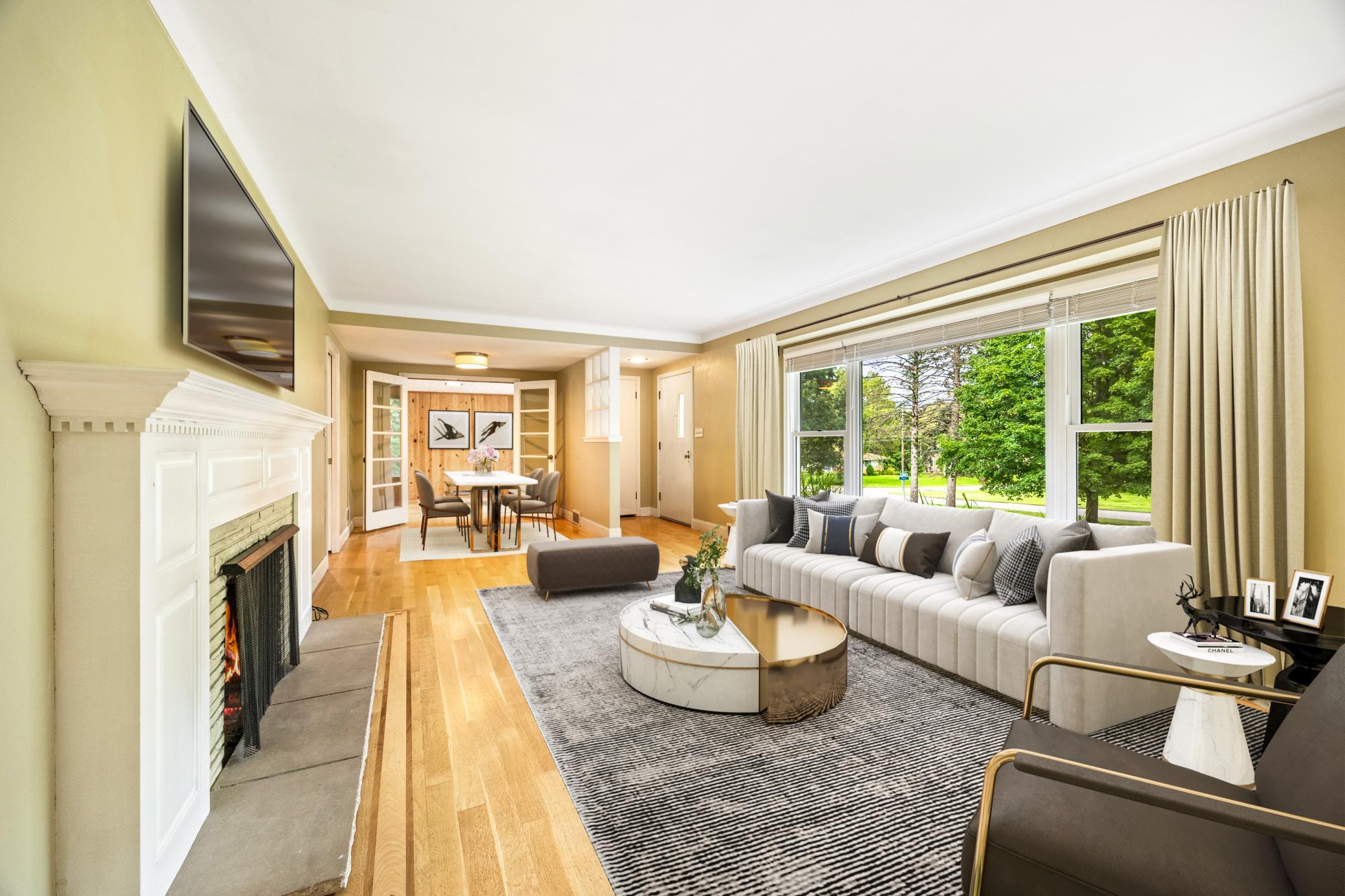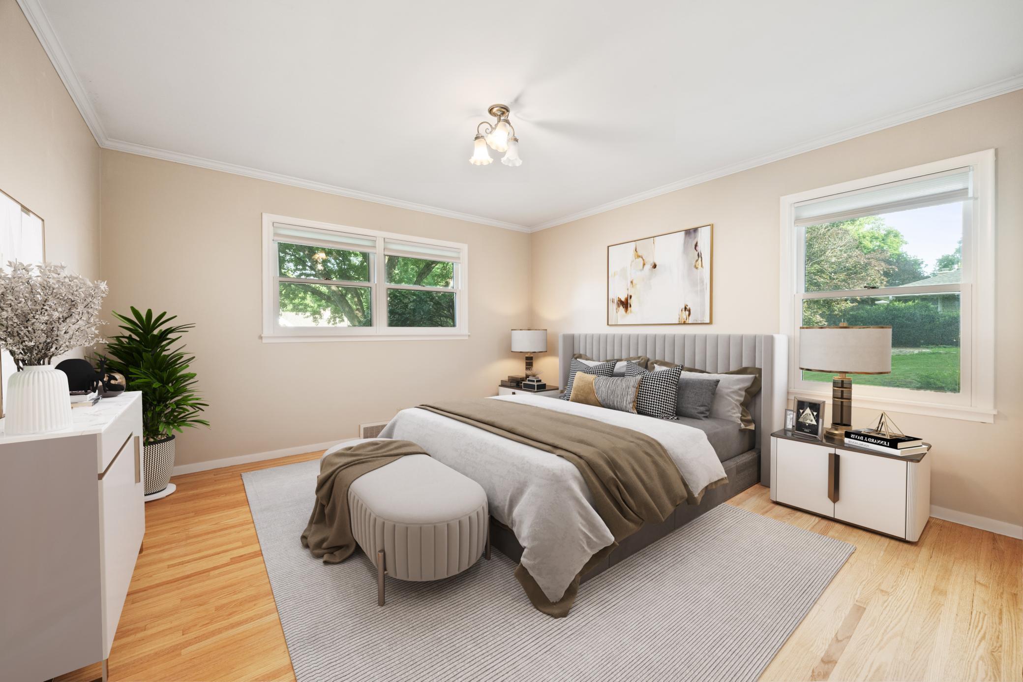Hardwood floors thru-out, granite counters, Stainless Steel and enameled kitchen cabinets. On main floor2 bedrooms (with a 3rd bedroom potentially in a pass-through den area). The main floor full bathroom is being torn-out, down to the studs and will be fully remodeled. Surround tile in the bath / shower alcove. The tile will wrap the entirely of the bathroom and the tile floor will be heated. On the lower level are the 3rd and 4th official bedrooms. Big pantry, workshop, storage and laundry room on the lower level. The fourth bedroom and full bathroom are newly remodeled areas. The lower bathroom has surround tile bath / shower alcove, porcelain tub, hanging wall vanity, heated tile floors. Most of the home has been painted Agreeable Gray. All original windows in the home have been replaced. Can lighting throughout the basement. Expansive deck with newer maintenance free decking. Settling in for a movie night, the 2 fireplaces make a cozy addition (Chimneys are not warranted. Tenant is to inform landlord if they intend to use the fireplaces and would be responsible for professionally cleaning the chimneys upon lease end). In the backyard is a 34' x 32' sport court with a Gorilla basketball hoop and3-point line, fire-pit and sand box. The large grand lot offers privacy. Walk to parks, trails and coffee in the Mills. Don't feel like cooking, treat yourself to a stroll and dine at the pizza/wine bar or a second restaurant with delicious Korean Bar-B-Que meal options. No Zillow Background Checks allowed. Renters insurance required. Two full Bathrooms were remodeled and a fourth lower level bedroom and hallway added. The project is now getting cleaned up. View now to quickly secure the home.