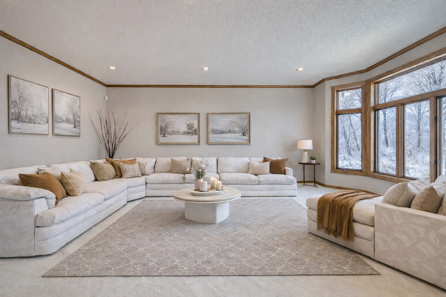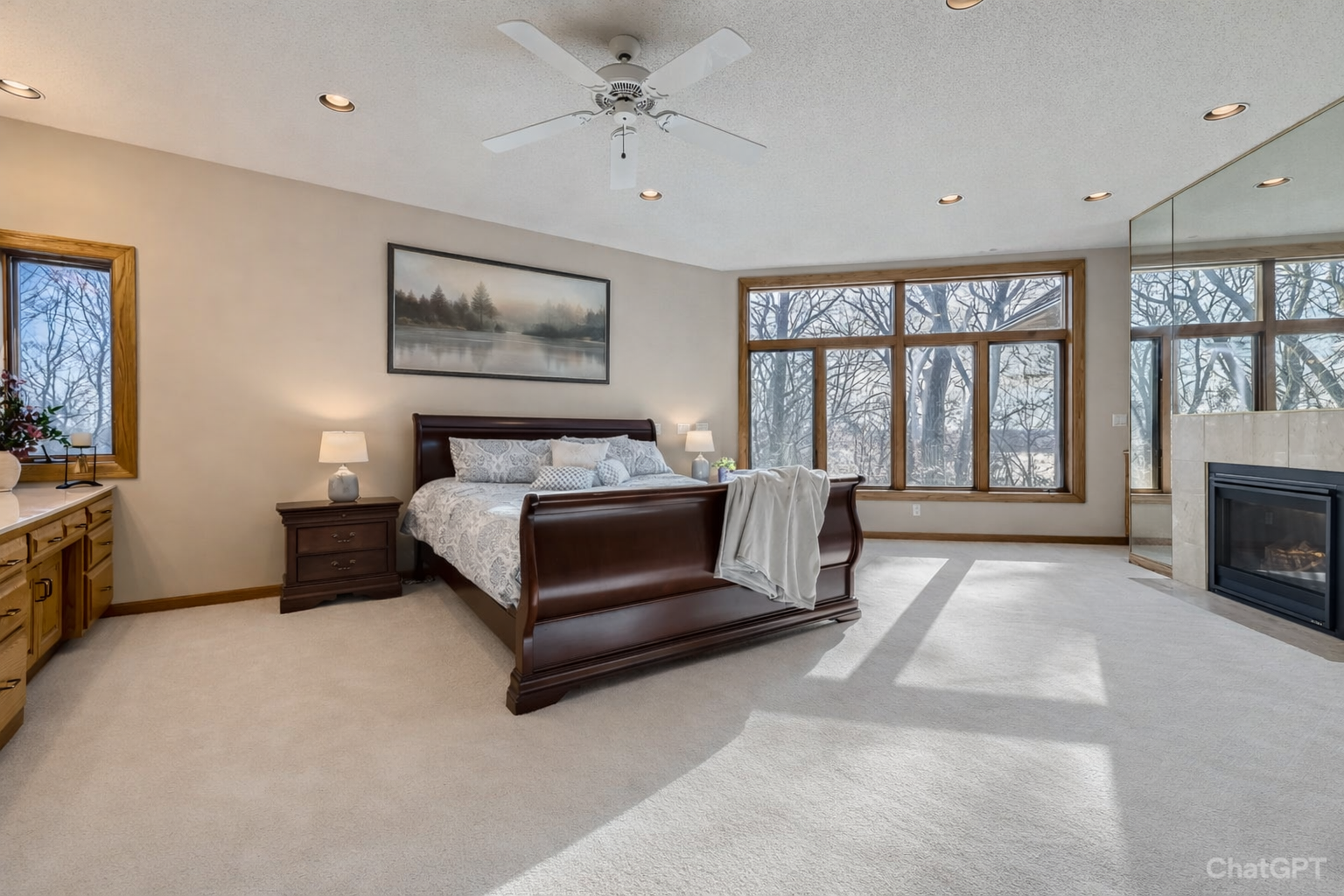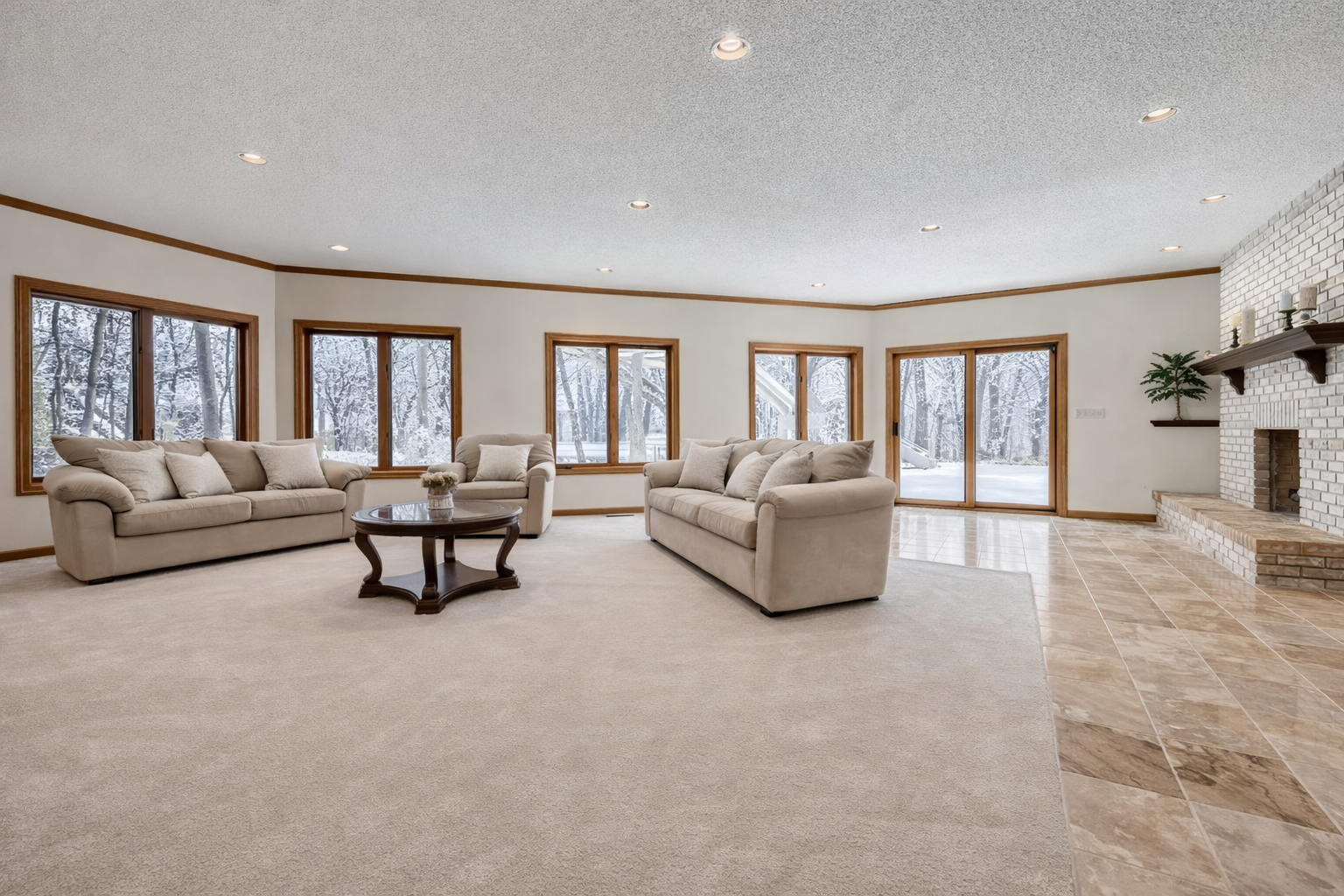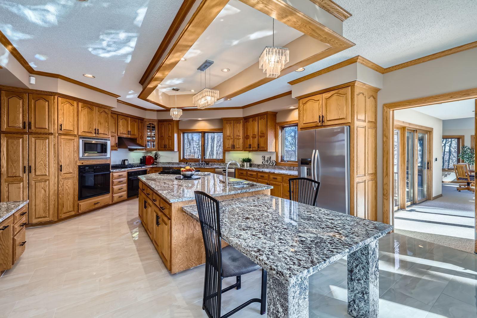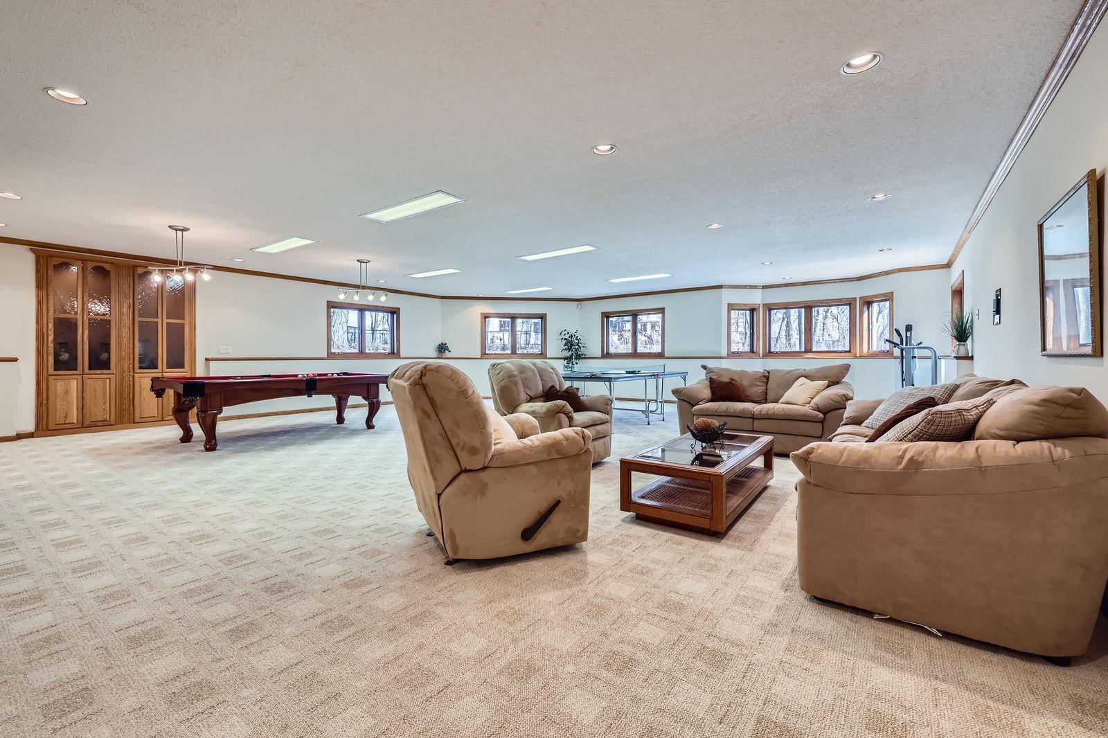 Custom-built one-owner home, nestled on a private wooded lot on the island of Pleasant Lake. Luxurious estate-style property on 1.44 acres with 6 bedrooms, 10 bathrooms, 10,838 square feet, and in the highly sought-after Mounds View School District. Featuring beautiful architecture with open-concept spaces that flow into one another. This exceptional property is grand and hotel-like with many amenities and ensuite bathrooms for every bedroom. Age in place with a main-level primary suite. Perfect home for entertaining and/or a multi-generational family!