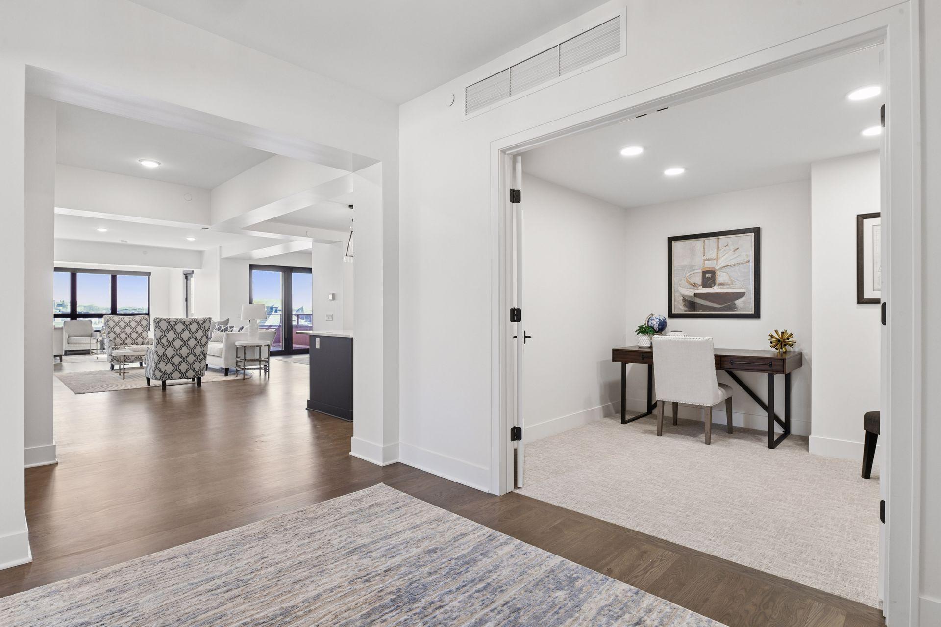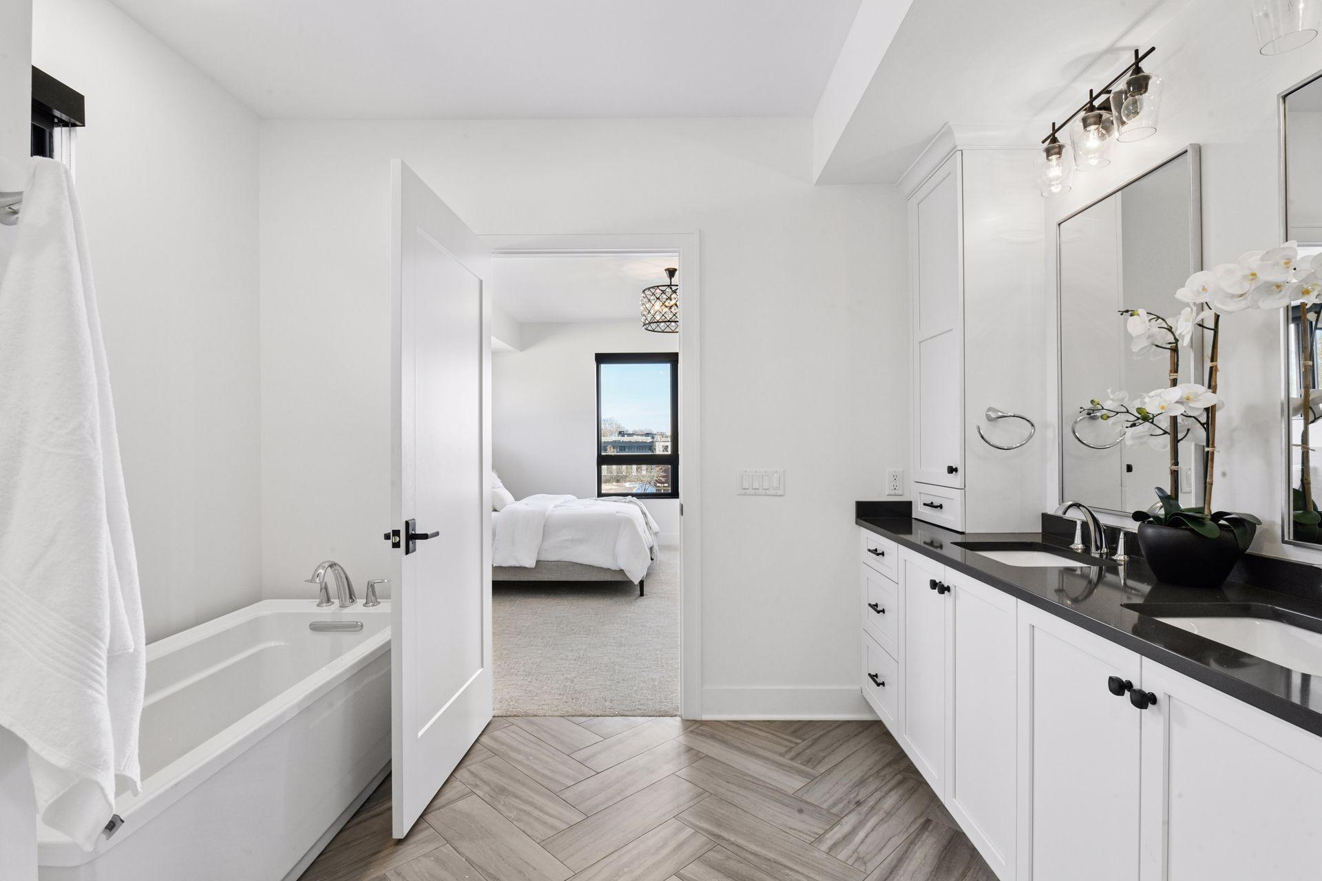 Welcome to Unit 304 at Meyer Place, a stunning residence offering 2,220 square feet of luxurious, single-level living in the heart of Wayzata. This south and east-facing top floor condo is flooded in natural light thanks to expansive Marvin windows and patio doors designed for exceptional low sound transmission, ensuring a quiet, peaceful atmosphere. Featuring 2 bedrooms and 3 bathrooms, this spacious layout includes open-concept living and dining areas ideal for both everyday comfort and entertaining. The gourmet kitchen is a chef’s dream with Cambria countertops, a large center island, and high-end stainless steel appliances. Enjoy cozy evenings by the gas fireplace or unwind in the bright sunroom, which opens to your private outdoor deck. The serene primary suite offers a spa-like ensuite complete with a soaking tub, walk-in shower, heated floors, and generous walk-in closet space with organizational components. A second bedroom with its own ensuite provides comfort and privacy for guests. Additional conveniences include an office/den, in-unit laundry room, an external hallway storage room, two parking stalls in the heated underground garage, and a separate storage cage. Meyer Place residents enjoy exceptional building amenities, including a club room with an outdoor patio and gas fireplace, a fitness room, a private guest suite, and a secure package room. Experience refined, maintenance-free living just steps away from all the shops, dining, and lakeside charm of downtown Wayzata.