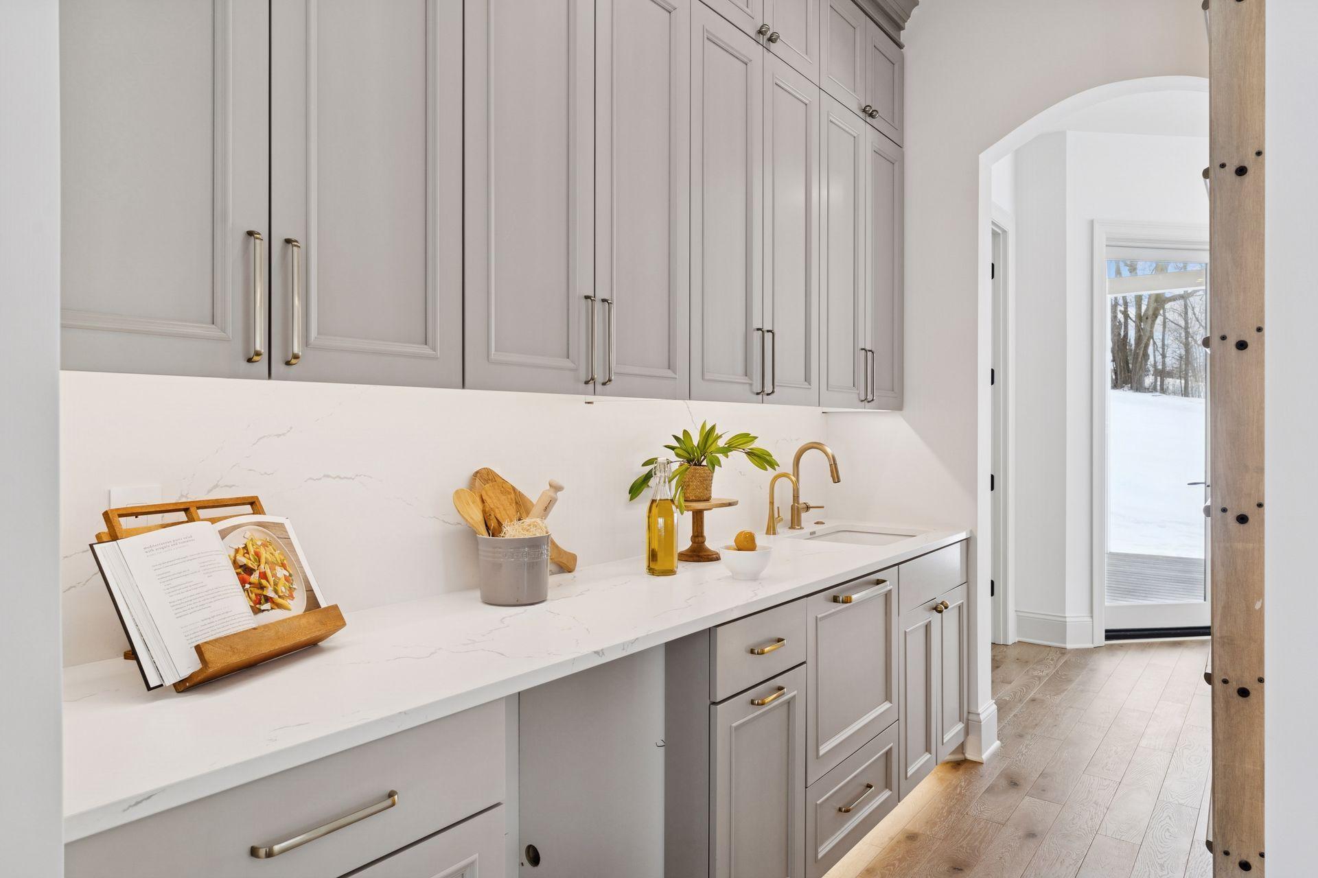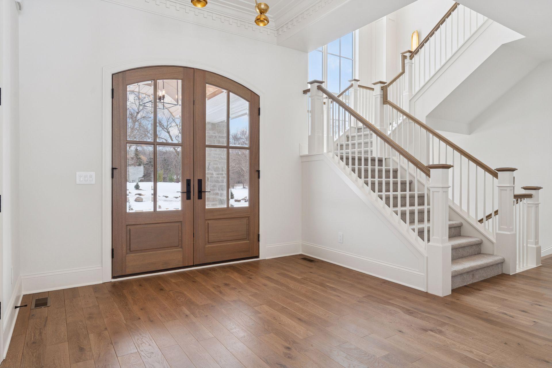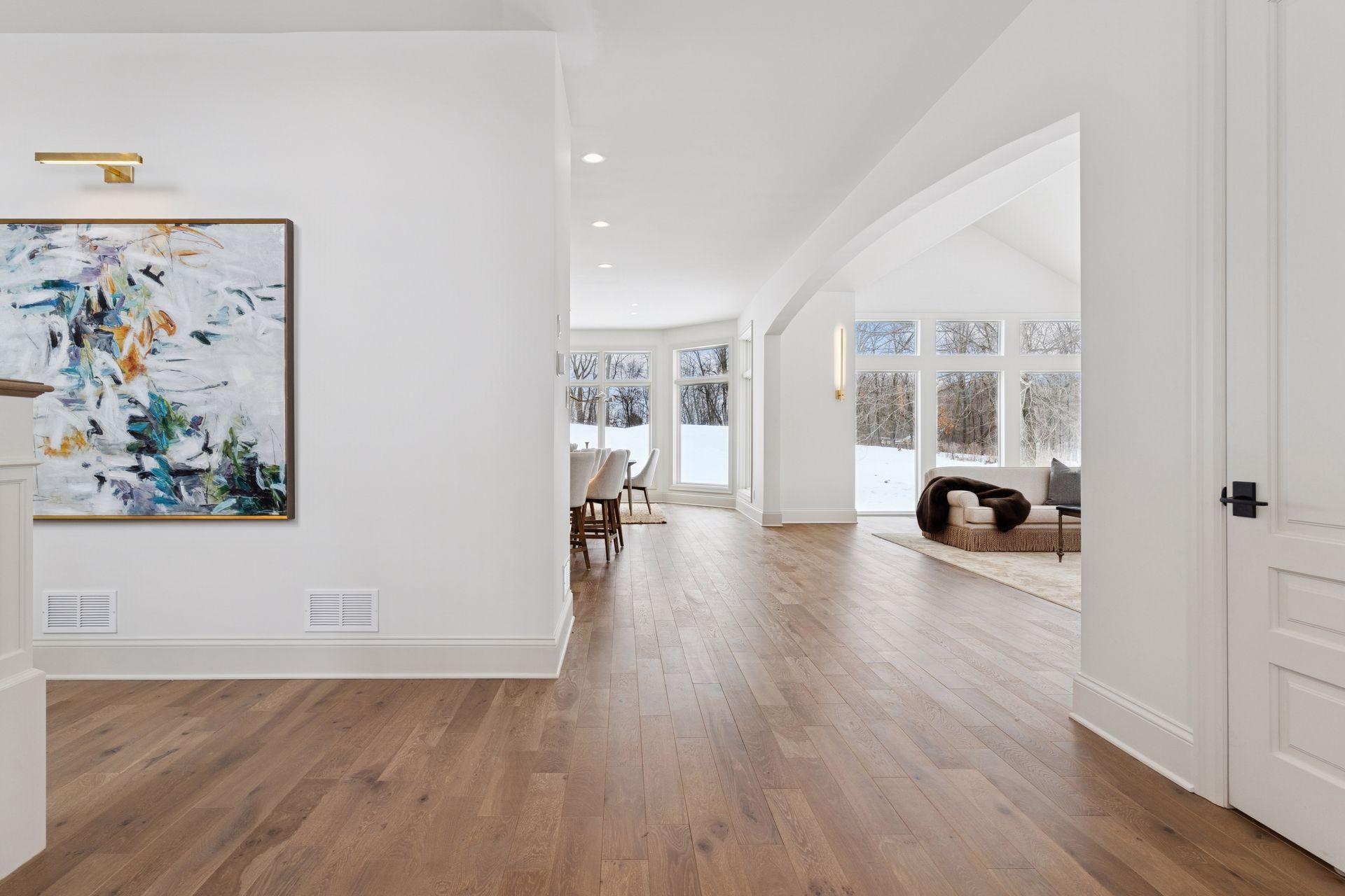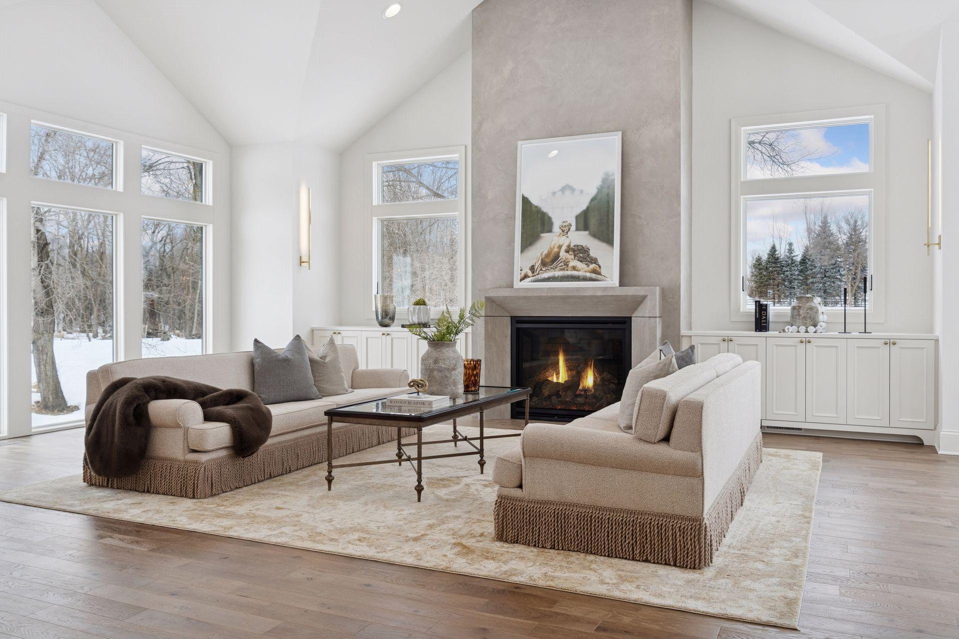 Brand new custom luxury in Minnetrista. Tucked 400 feet off the road behind a peaceful pond and fountain, this 4.18-acre estate offers privacy, beauty, and modern design. Built by Omni Custom Builders , this 5,747 finished sq ft contemporary home blends clean lines with warm, organic finishes, creating a residence that feels both sophisticated and livable. Step inside to a dramatic 3-story open staircase and a great room with soaring 17-foot vaulted ceilings. The chefs kitchen and scullery are equally impressive, featuring Cambria countertops, custom cabinetry, and designer lighting that pairs brass with Waterford crystal. A rolling ladder system highlights the kitchens high function and high design. The dining room is anchored by an oversized Waterford chandelier, setting the stage for gatherings both formal and casual. The home offers 6 bedrooms and 5 bathrooms, each bedroom with a unique vaulted ceiling. The primary suite evokes a boutique hotel, with rich contrasts and alabaster lighting. Every space has been thoughtfully curated from the textured grasscloth walls of the powder room to the bold, contemporary bar on the lower level. The entire home is prewired for sound, and the builder is offering a $30,000 audio package, allowing the next owner to elevate the home’s entertainment experience with their choice. Outdoors, enjoy a vaulted 3-season porch overlooking rolling acreage. Discover the endless possibilities with these two versatile outbuildings. The first outbuilding (28x36 with an 18X36 loft) features a charming barn that could be transformed into your dream man cave, art studio, or any creative space you desire, with the option to add water and electricity. New concrete flooring, Marvin windows, new roof, sofit, and siding. The second, a spacious pole barn (36x36 with 18x36 loft), can accommodate over six cars, offering an ideal solution for automobile enthusiasts or those in need of expansive storage. Whether your dream includes horses, a creative retreat, or simply room to breathe, this property adapts to your vision. Located next to Burl Oaks Golf Club and just minutes from Lake Minnetonka and top-rated Orono and Westonka schools, this estate delivers privacy without compromise.