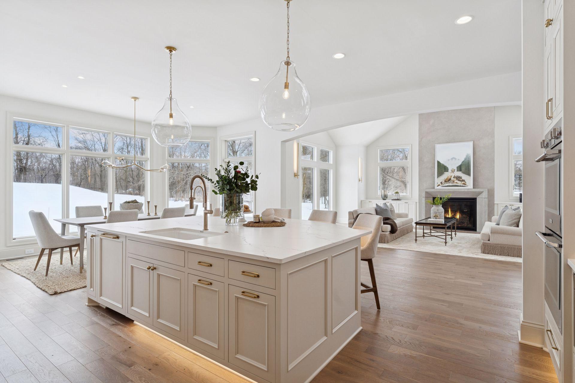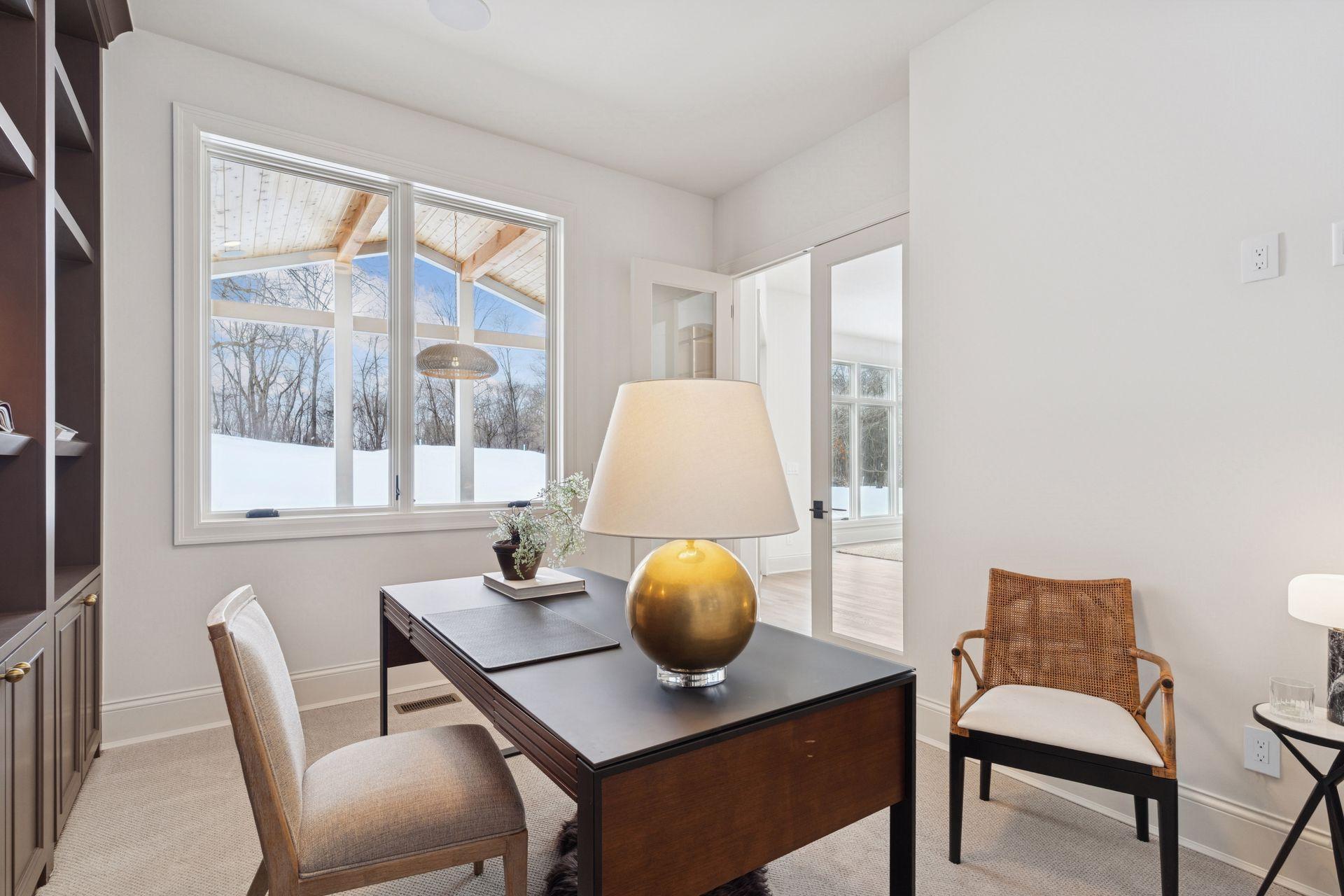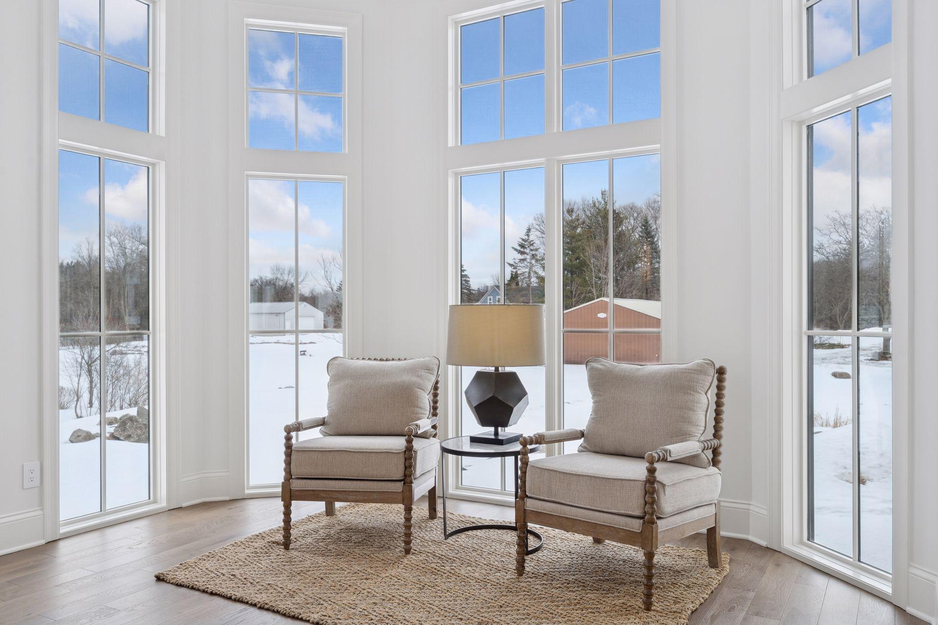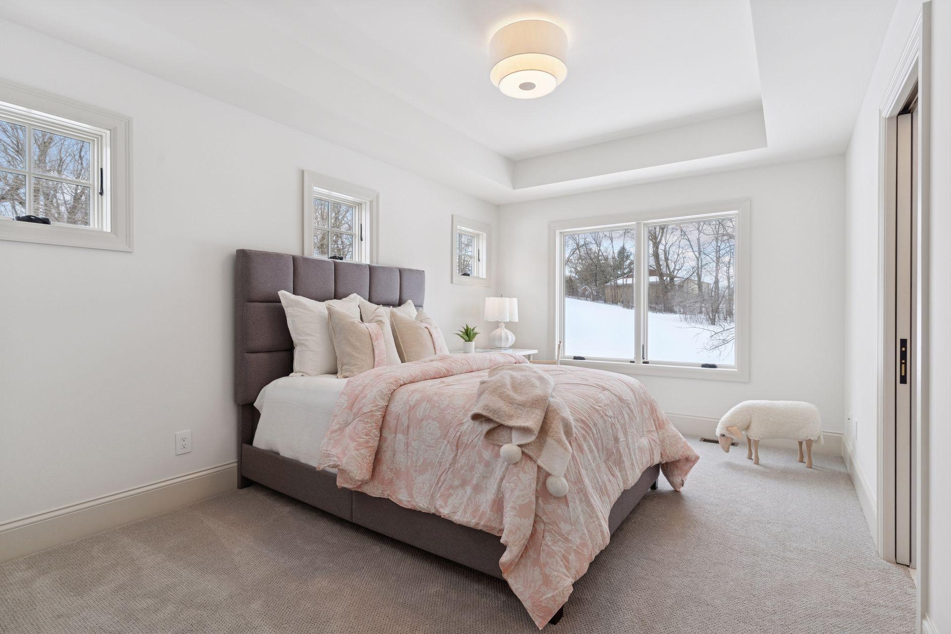 Brand new custom luxury in Minnetrista. Tucked 400 feet off the road behind a peaceful pond and fountain, this 4.18-acre estate offers privacy, beauty, and modern design. Built by Omni Custom Builders , this 5,747 finished sq ft contemporary home blends clean lines with warm, organic finishes, creating a residence that feels both sophisticated and livable. Step inside to a dramatic 3-story open staircase and a great room with soaring 17-foot vaulted ceilings. The chefs kitchen and scullery are equally impressive, featuring Cambria countertops, custom cabinetry, and designer lighting that pairs brass with Waterford crystal. A rolling ladder system highlights the kitchens high function and high design. The dining room is anchored by an oversized Waterford chandelier, setting the stage for gatherings both formal and casual. The home offers 6 bedrooms and 5 bathrooms, each bedroom with a unique vaulted ceiling. The primary suite evokes a boutique hotel, with rich contrasts and alabaster lighting. Every space has been thoughtfully curated from the textured grasscloth walls of the powder room to the bold, contemporary bar on the lower level. The entire home is prewired for sound, and the builder is offering a $30,000 audio package, allowing the next owner to elevate the home’s entertainment experience with their choice. Outdoors, enjoy a vaulted 3-season porch overlooking rolling acreage. Discover the endless possibilities with these two versatile outbuildings. The first outbuilding (28x36 with an 18X36 loft) features a charming barn that could be transformed into your dream man cave, art studio, or any creative space you desire, with the option to add water and electricity. New concrete flooring, Marvin windows, new roof, sofit, and siding. The second, a spacious pole barn (36x36 with 18x36 loft), can accommodate over six cars, offering an ideal solution for automobile enthusiasts or those in need of expansive storage. Whether your dream includes horses, a creative retreat, or simply room to breathe, this property adapts to your vision. Located next to Burl Oaks Golf Club and just minutes from Lake Minnetonka and top-rated Orono and Westonka schools, this estate delivers privacy without compromise.