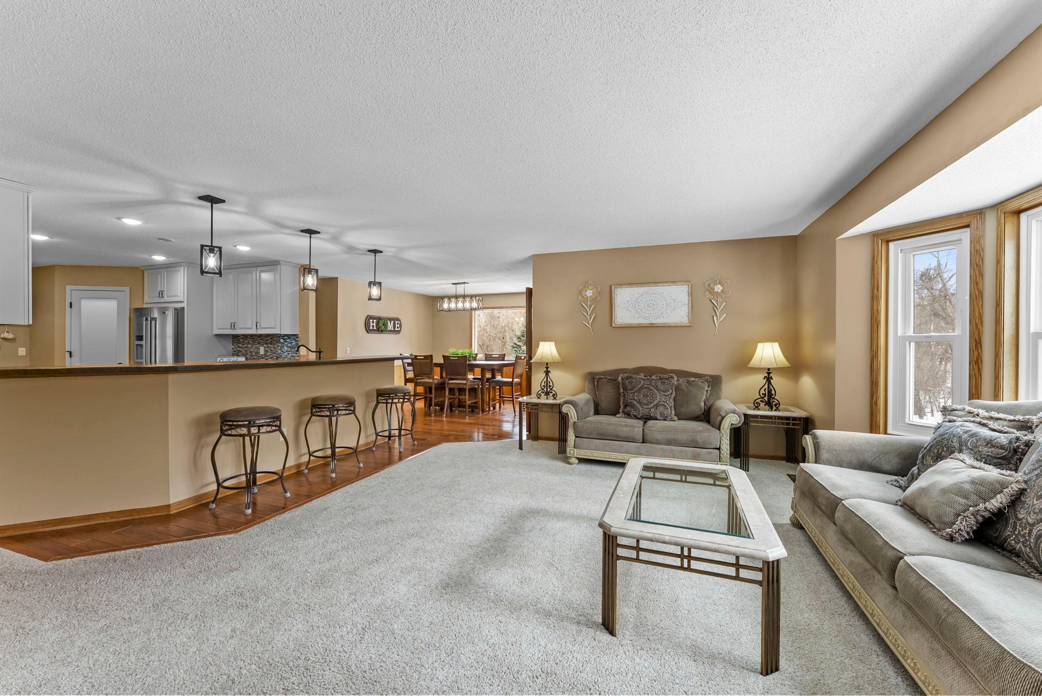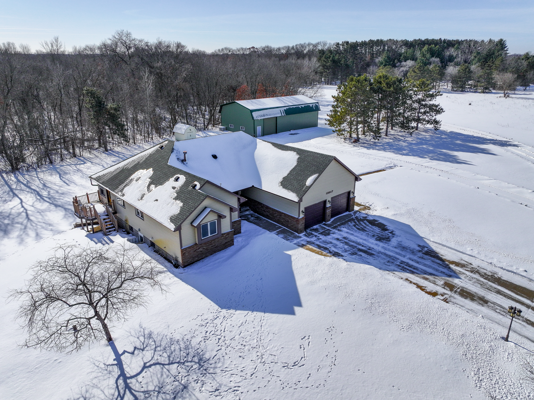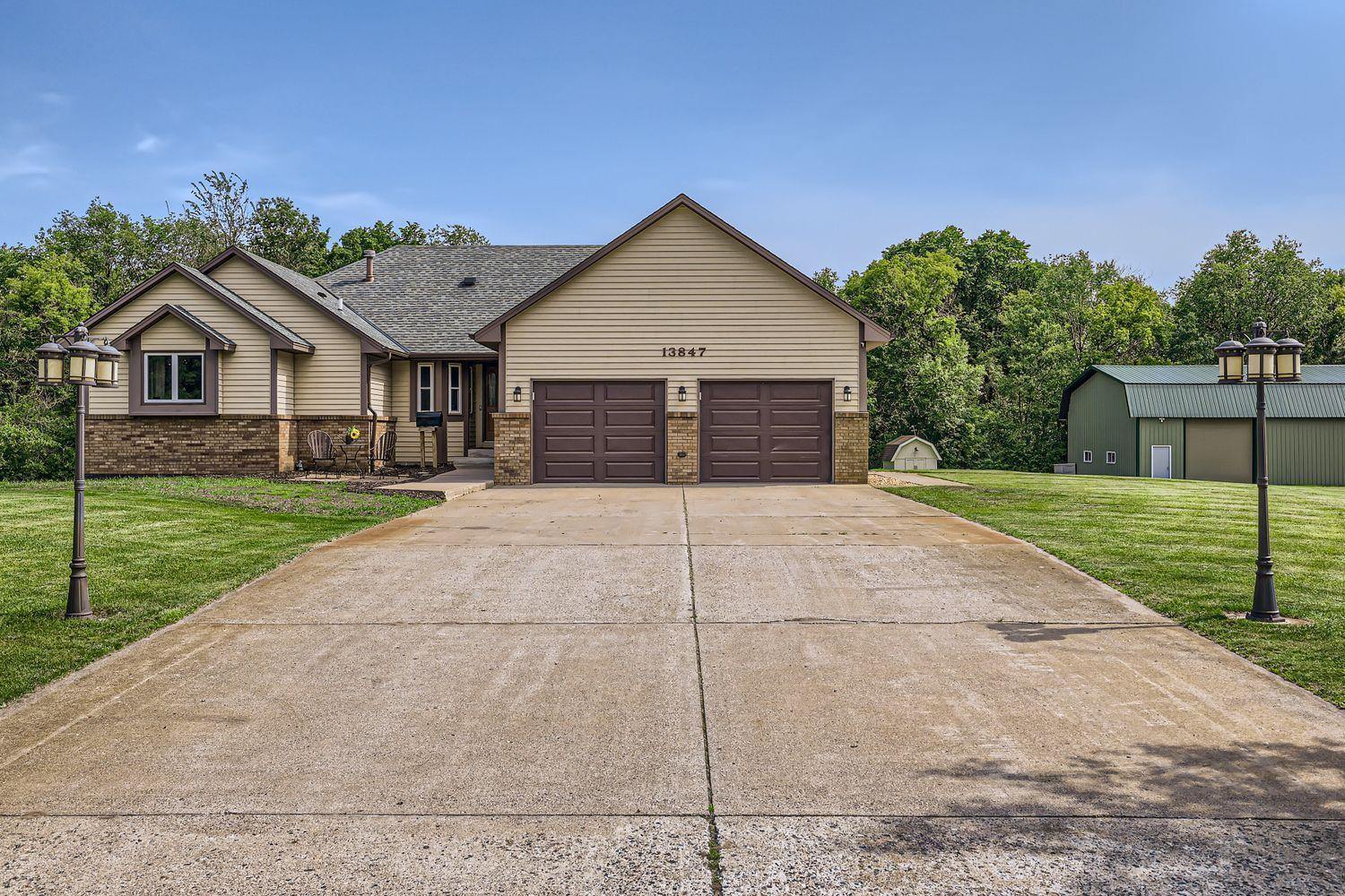 LARGE 60X40 FINISHED POLE BUILDING AND the sellers have the information needed to potentially divide the property into two PID’s—adding significant value and future potential. Owning 12+ acres in Ham Lake is a rare opportunity, especially on a quiet cul-de-sac just off Bunker Lake Blvd & Radisson Road. This beautifully updated one-level living home has been fully remodeled with a stunning kitchen featuring new cabinetry, stainless steel appliances, abundant counter space, and a walk-in pantry. A large dining room window was added to showcase peaceful views and flood the home with natural light. New flooring, lighting, paint, and complete kitchen and bathroom remodels were completed in 2022. The main-floor primary suite offers a spa-like retreat with a fully remodeled bathroom including a walk-in shower, private commode room, his & her walk-in closets, double vanity, and separate jetted tub. Main-floor laundry is conveniently located off the garage with a laundry sink and commode. French doors lead to a spacious four-season knotty pine porch with deck access—perfect for year-round enjoyment. The lower level is an entertainer’s dream, featuring custom trim, acoustic ceiling tiles, surround sound, a second kitchen with wet bar and 220V oven wiring, a large family room with game and dining space, two bedrooms with egress windows, and a walk-out to the backyard. A ¾ bathroom with double vanity and generous storage completes the space. With direct exterior access, the lower level could easily function as a rental or guest suite. The 60x40 pole building INCLUDES A HEATED SHOP, separate cold storage bay, two lofts, and an internal pass-through allowing vehicles to move between heated and cold spaces. Additional highlights include an impressive loft in the cold storage area and a 12x12 workshop within the heated space, finished with white steel wall paneling and durable rubber flooring. Storage options here are truly exceptional—ideal for vehicles, equipment, hobbies, and more.