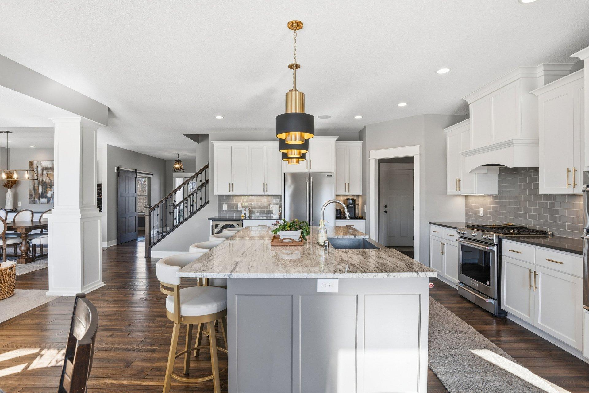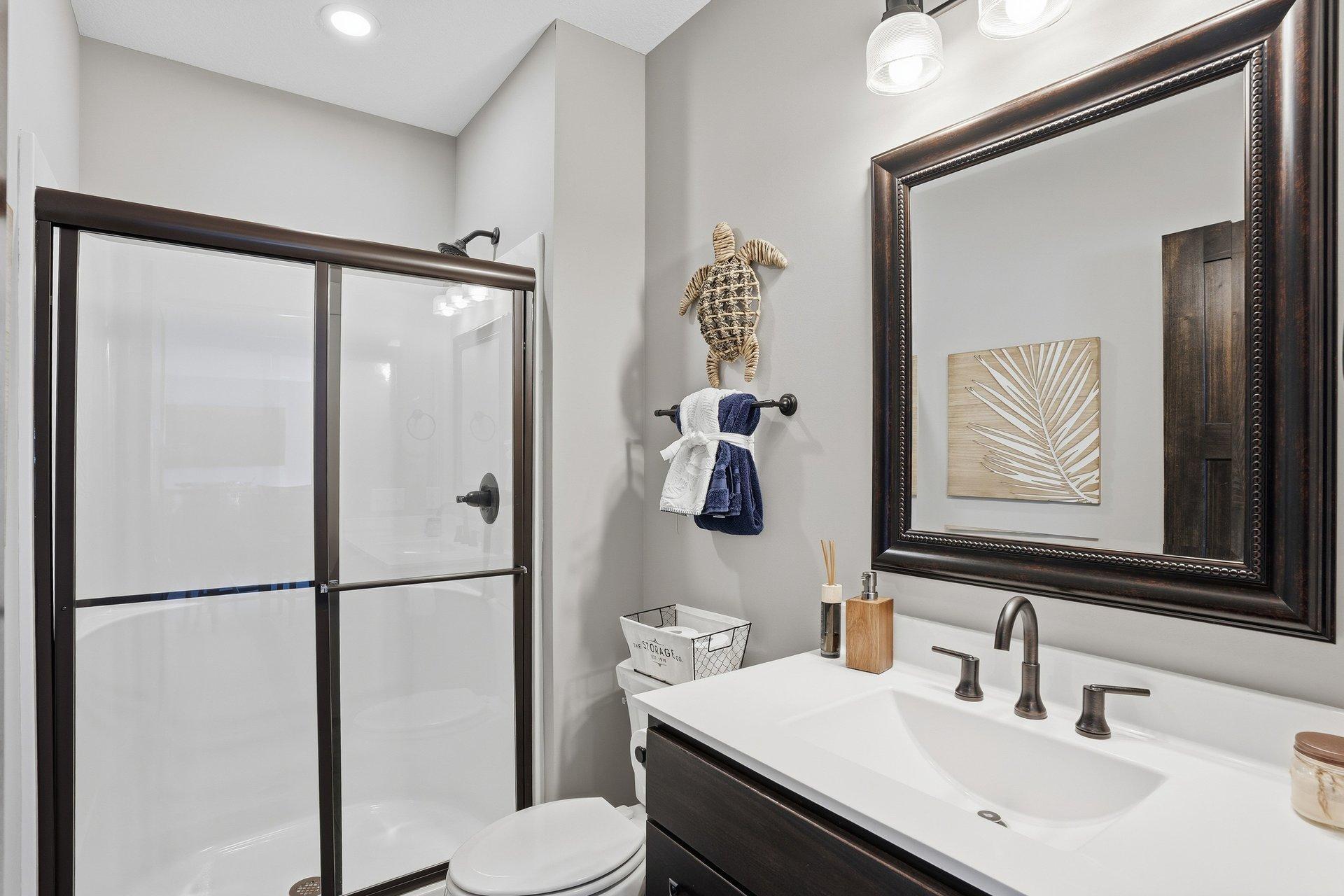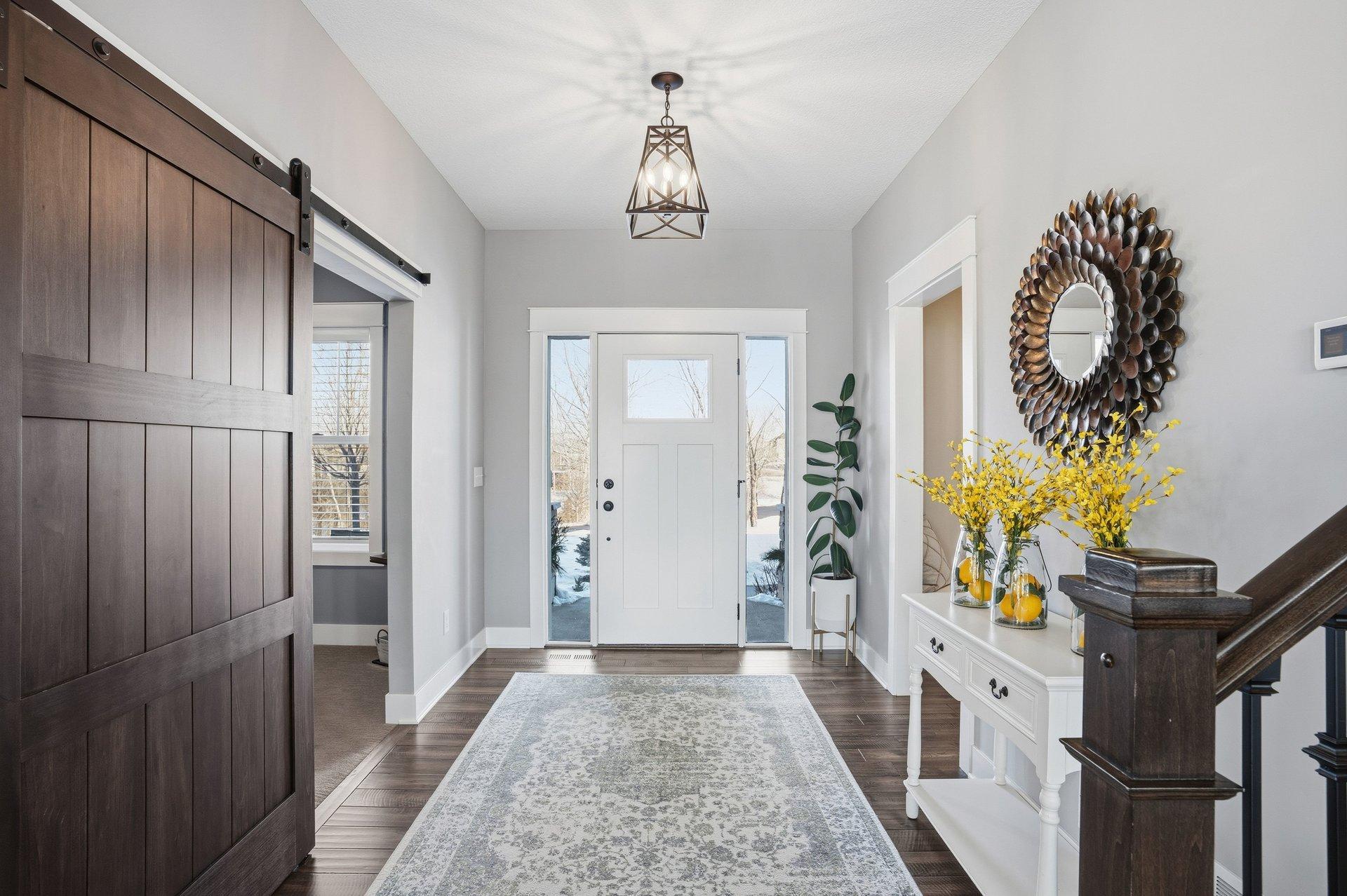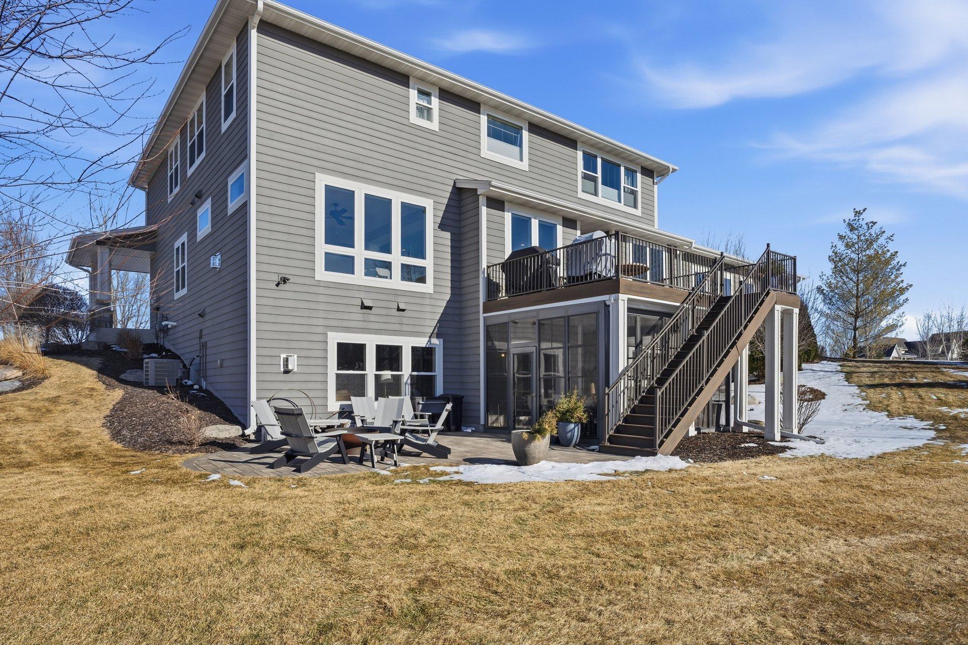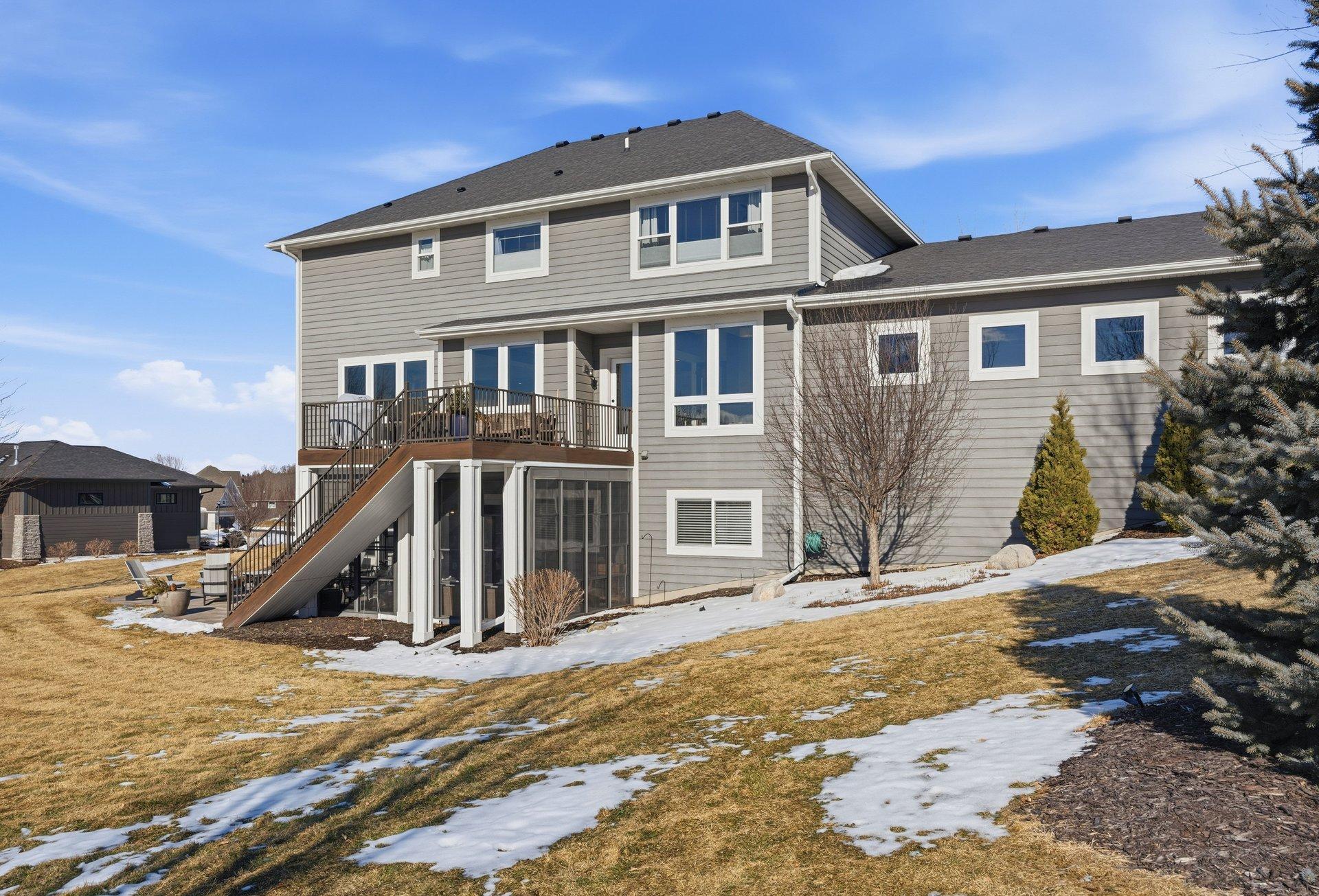 Welcome home to The Territory-one of Prior Lake's most exclusive and sought-after communites, where comfort and an active lifestyle come together. This exceptional five bedroom, five bathroom residence is thoughtfully designed for everyday living and effortless enertaining, offering refined spaces, premium amenities, and room for everyone to thrive. Step inside to an open enterway that sets an elegant tone. The expansive living room is filled with natural light, creating a warm and inviting atmosphere. At the heart of the home, the beautifully appointed kitchen features abundant cabinetry, a spacious layout, and a large center island perfect for meal prep, casual dining, or gathering with friends and family. Both formal and informal dining areas provide flexibility for hosting holidays or enjoying relaxed weeknight meals. The sunroom offers a peaceful retreat overlooking the backyard. A well-designed mudroom, walk-in pantry, convenient half bath, and generous storage complete the main level. Upstairs, the layout balances privacy and connection. A versatile sitting area with charming bard doors creates the perfect flex space for reading, studying, or relaxing. The private primary suite is a true sanctuary, featuring generous porportions and elegant finishes. The spa-inspired bath includes a soaking tub, a large walk-in shower, dual vanities, and an expansive walk-in closet with direct access to the laundry room for added convenience. Three additional upper-level bedrooms provide ideal accommodations. One features a private ensuite bath, while the other two share a well-appointed Jack and Jill bathroom. An additional seating or TV area at the opposite end of the level offers the perfect spot for movies. The lower level transforms the home into an entertainer's dream and an athlete's retreat. A spacious family room with a cozy fireplace anchors the space, while the wet bar makes hosting effortless. A fifth bedroom and three-quarter bath provide comfortable guest accommodations. Fitness enthusiasts will appreciate the dedicated home gym with racking system and weights, along with a separate yoga room featuring a portable sauna-creating a private wellness escape. The standout feature is the impressive 28' x 30' sport court, complete with a basketball hoop and space for lacrosse, golf praatice, and more. An enclosed patio room with surrounding windows extends off the family room, offering another inviting space to relax while staying connected to the outdoors. Situated on a private, fully landscaped 1.07-acre flat lot with mature trees, the setting offers both space and seclusion. Enjoy walking trails throughout the development, plus access to the clubhouse and community pool. More than just a home, this is a lifestyle opportunity in The Territory. Buyer's agent to verify all measurements.