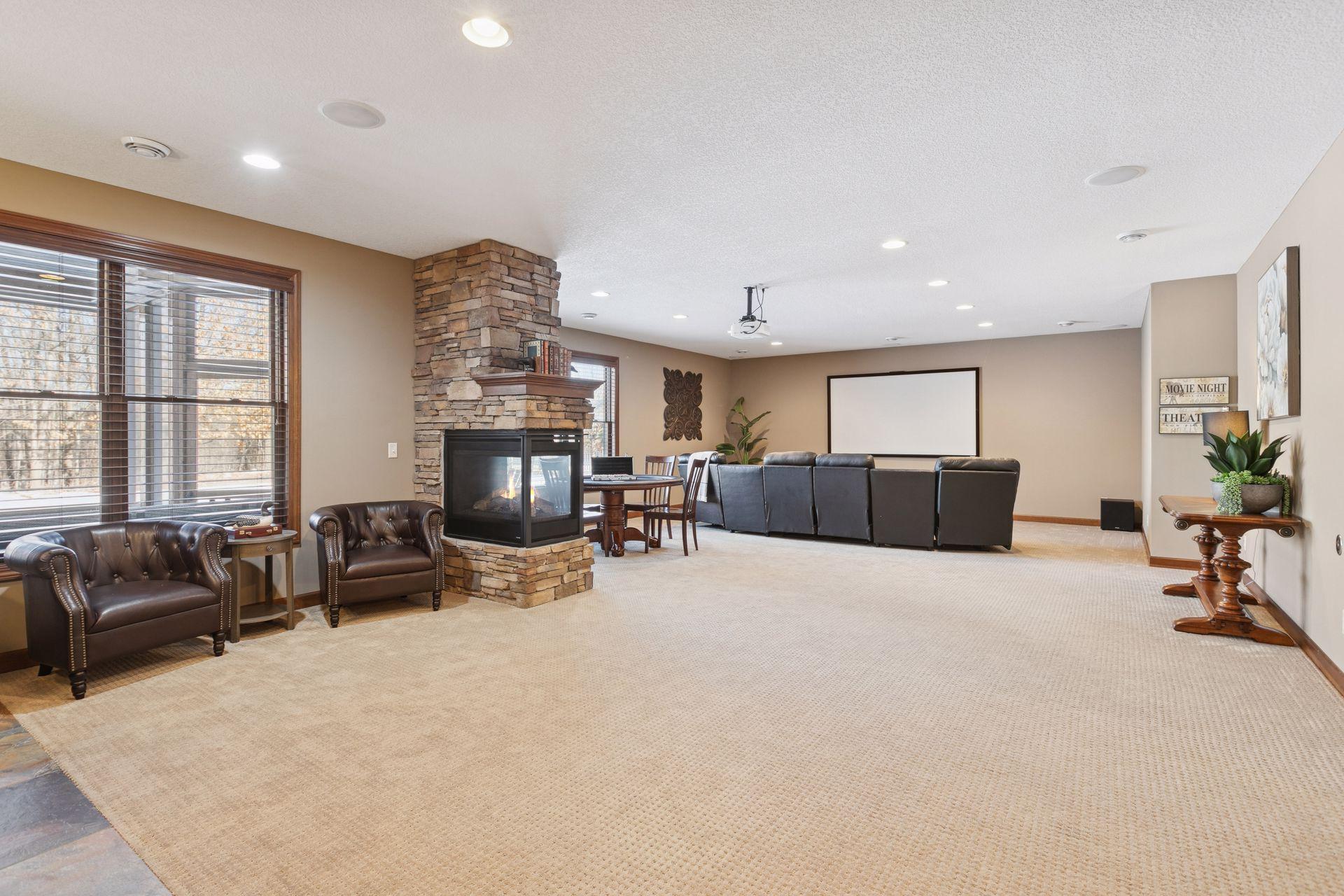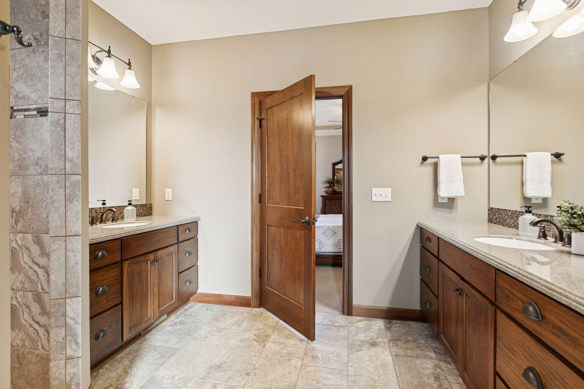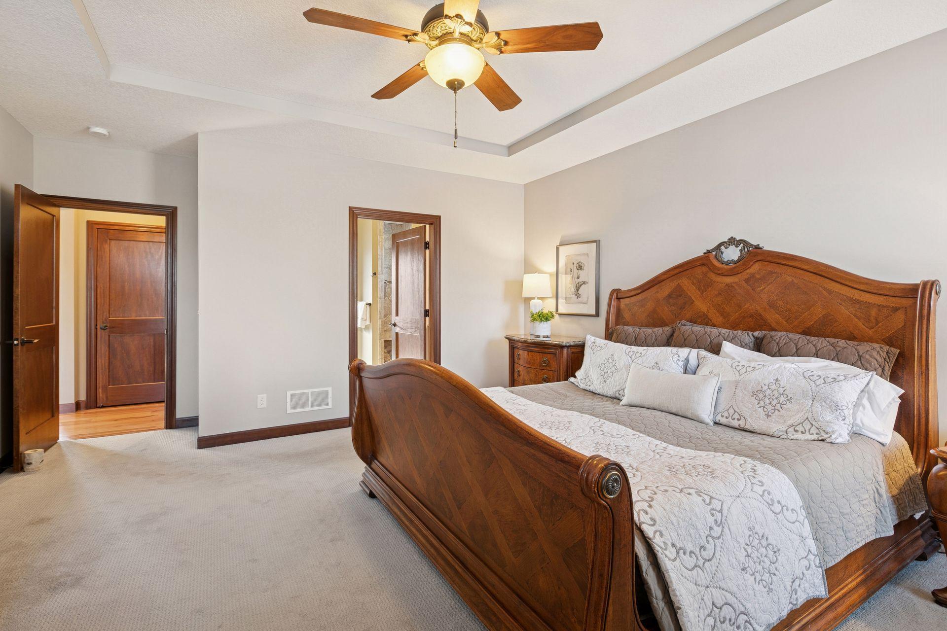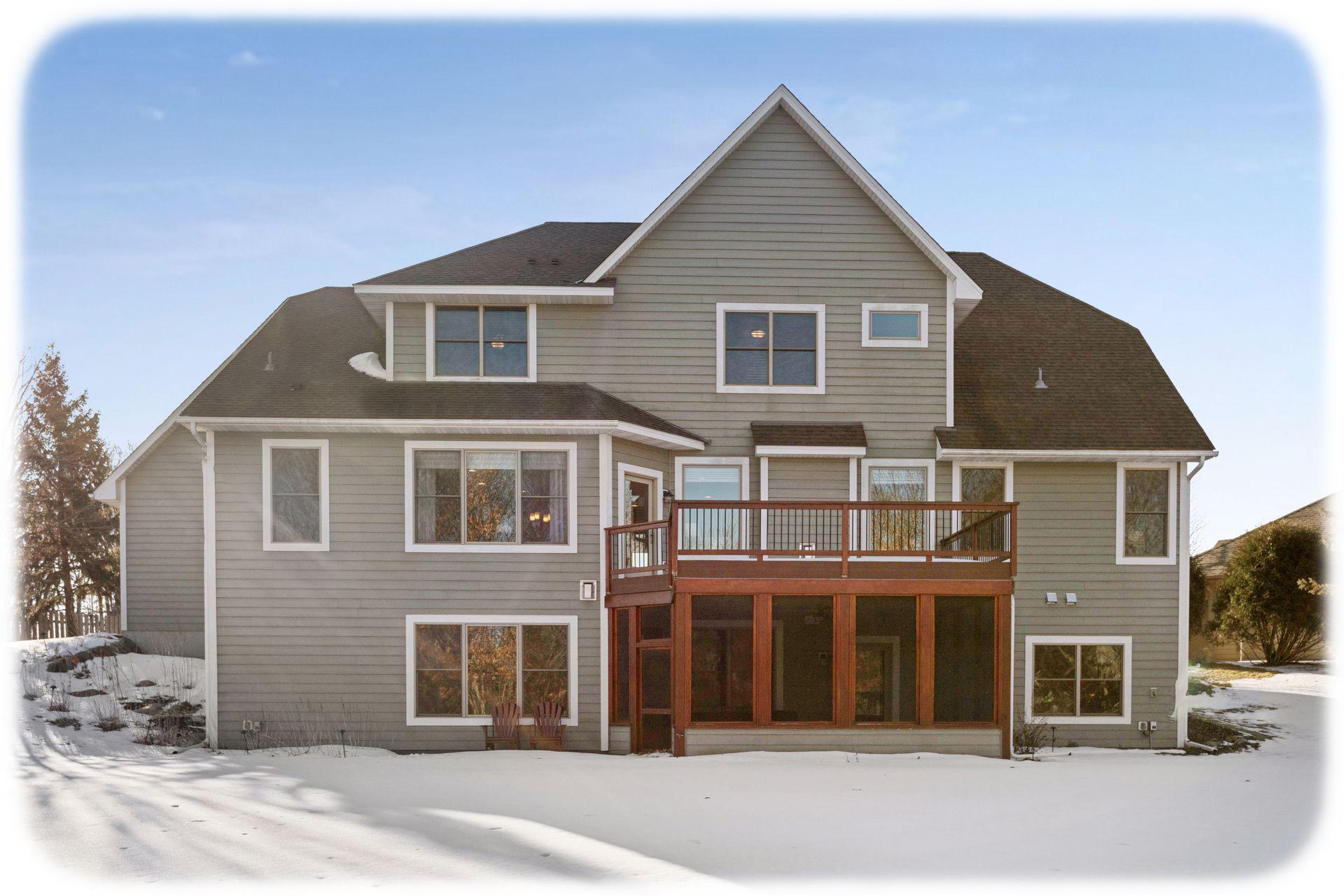 Welcome to this luxurious custom-built home on a nearly one-acre lot located in the Whispering Creek neighborhood, a quaint community of 36 homes featuring a private pool, clubhouse, park, and an outdoor sport court. Tucked away on a tranquil cul-de-sac with mature trees including apple trees! This residence showcases meticulous craftsmanship and thoughtful design suited for every phase of life. Grand main level living with a primary suite that features a spa-like bathroom offering heated floors, a double vanity, a spacious step-in shower, and an oversized walk-in closet with private laundry facilities. The kitchen is a chef's haven, featuring a pantry, a sizable center island with seating, high-end appliances including a 36" 6-burner dual fuel free standing range, convection wall ovens and an adjoining dinette that opens onto the main level maintenance free deck - ideal for seamless indoor-outdoor entertaining. A convenient office niche serves as a perfect workspace or homework area plus a spacious garage foyer with ample cubbies for storage. Upstairs, a versatile bonus entertainment room and three bedrooms, each with its own en-suite bathroom and walk-in closet, and a second huge laundry room offers convenience. The finished lower-level walk-out is designed for entertainment, featuring a sprawling wet bar, a cozy multi-sided fireplace, projector and screen, a wine tasting room, an exercise room or additional bedroom and another large guest suite. Step out to the oversized three-season screened porch for ultimate relaxation, creating a vacation atmosphere at home. The property includes a 4-car garage with heated floors, floor drains, sink with hot and cold water, wall organization units, and a convenient side service door. New roof. 3-zone HVAC! Discover unparalleled comfort and luxury in this exceptional property, thoughtfully crafted for discerning buyers seeking the ultimate in quality living.