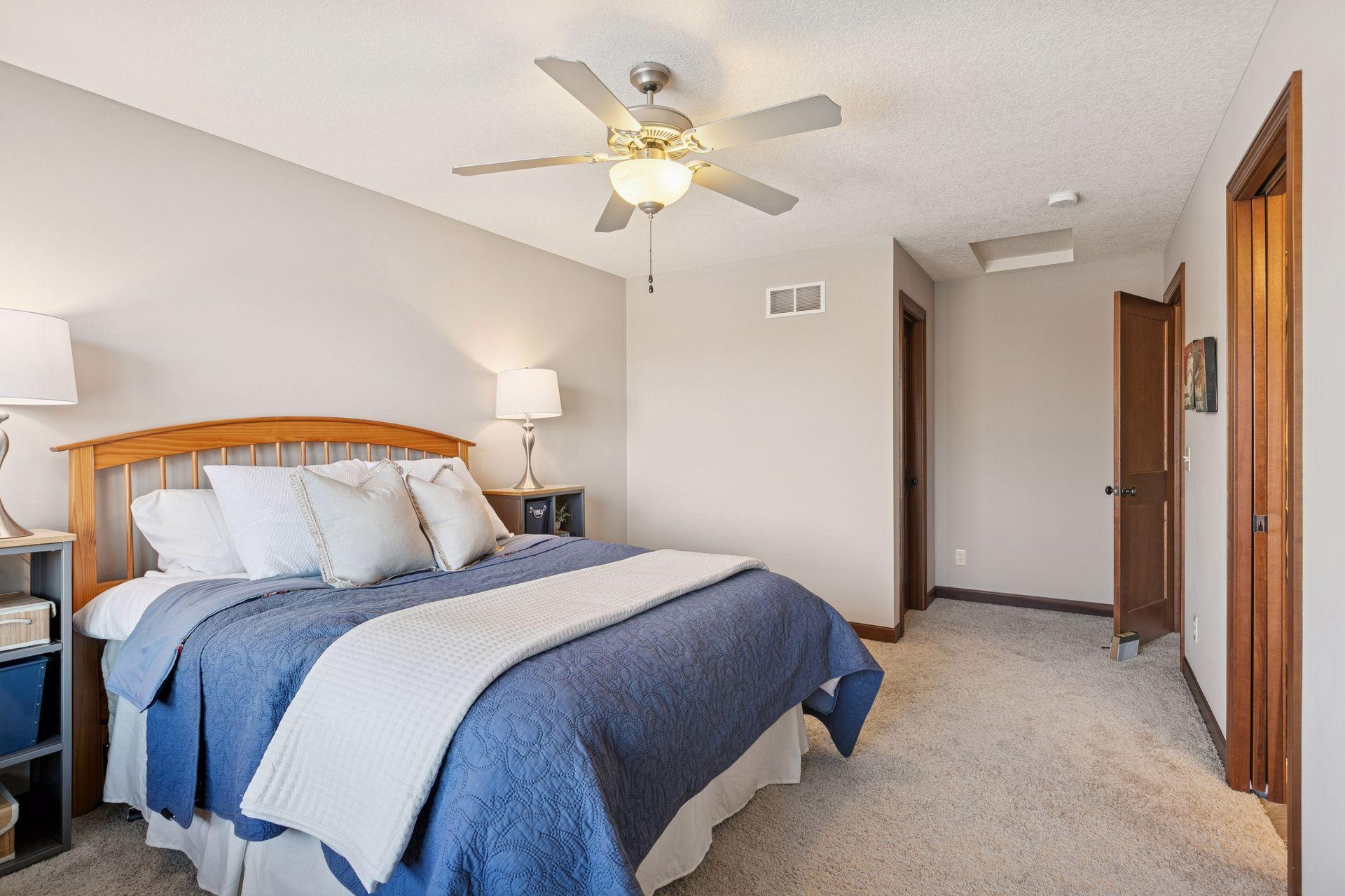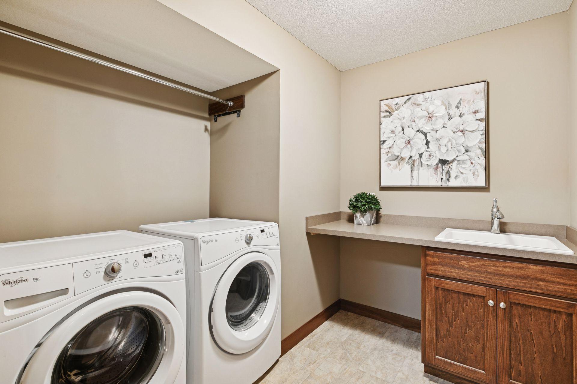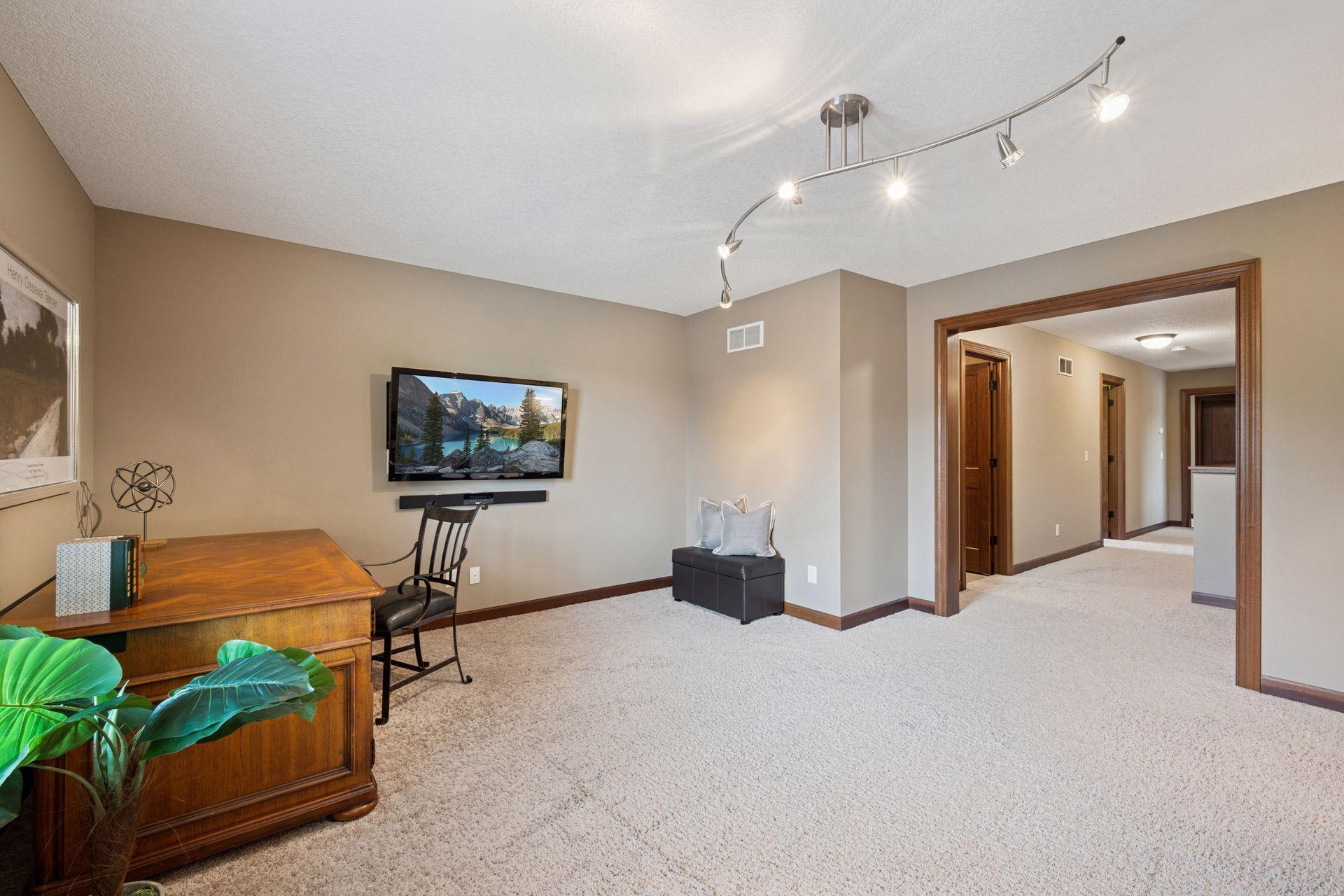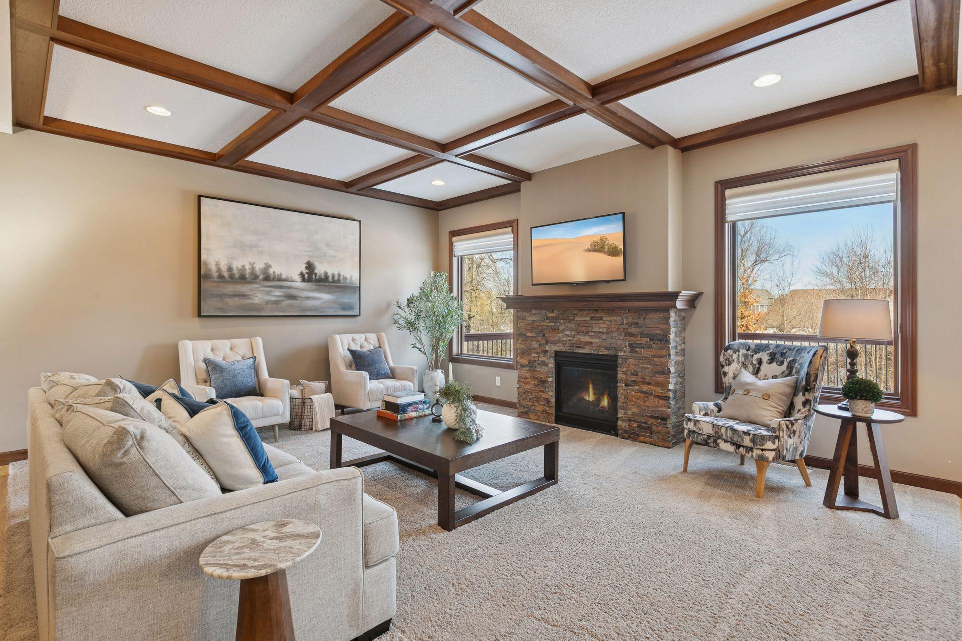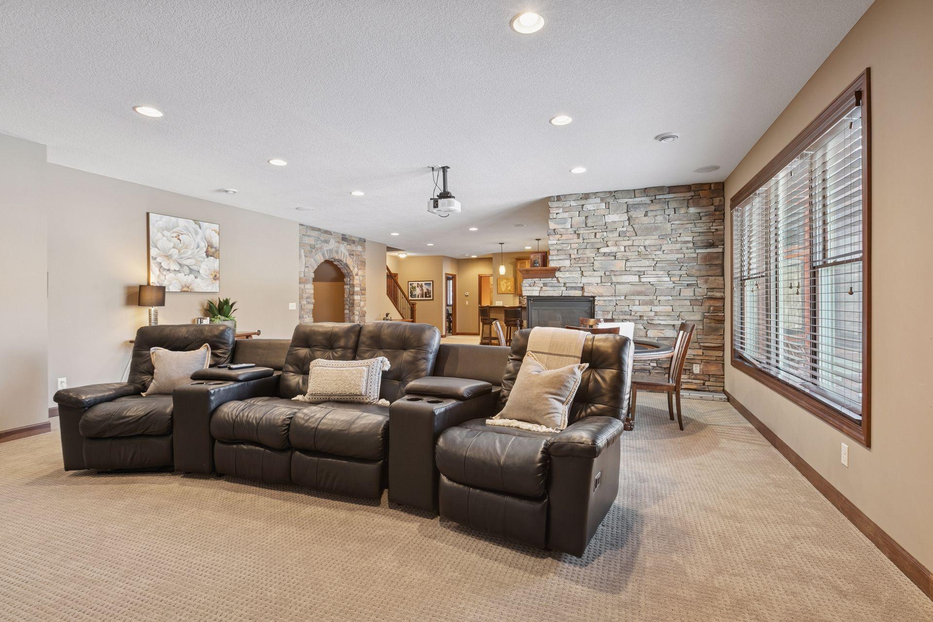 Welcome to this luxurious custom-built home on a nearly one-acre lot located in the Whispering Creek neighborhood, a quaint community of 36 homes featuring a private pool, clubhouse, park, and an outdoor sport court. Tucked away on a tranquil cul-de-sac with mature trees including apple trees! This residence showcases meticulous craftsmanship and thoughtful design suited for every phase of life. Grand main level living with a primary suite that features a spa-like bathroom offering heated floors, a double vanity, a spacious step-in shower, and an oversized walk-in closet with private laundry facilities. The kitchen is a chef's haven, featuring a pantry, a sizable center island with seating, high-end appliances including a 36" 6-burner dual fuel free standing range, convection wall ovens and an adjoining dinette that opens onto the main level maintenance free deck - ideal for seamless indoor-outdoor entertaining. A convenient office niche serves as a perfect workspace or homework area plus a spacious garage foyer with ample cubbies for storage. Upstairs, a versatile bonus entertainment room and three bedrooms, each with its own en-suite bathroom and walk-in closet, and a second huge laundry room offers convenience. The finished lower-level walk-out is designed for entertainment, featuring a sprawling wet bar, a cozy multi-sided fireplace, projector and screen, a wine tasting room, an exercise room or additional bedroom and another large guest suite. Step out to the oversized three-season screened porch for ultimate relaxation, creating a vacation atmosphere at home. The property includes a 4-car garage with heated floors, floor drains, sink with hot and cold water, wall organization units, and a convenient side service door. New roof. 3-zone HVAC! Discover unparalleled comfort and luxury in this exceptional property, thoughtfully crafted for discerning buyers seeking the ultimate in quality living.