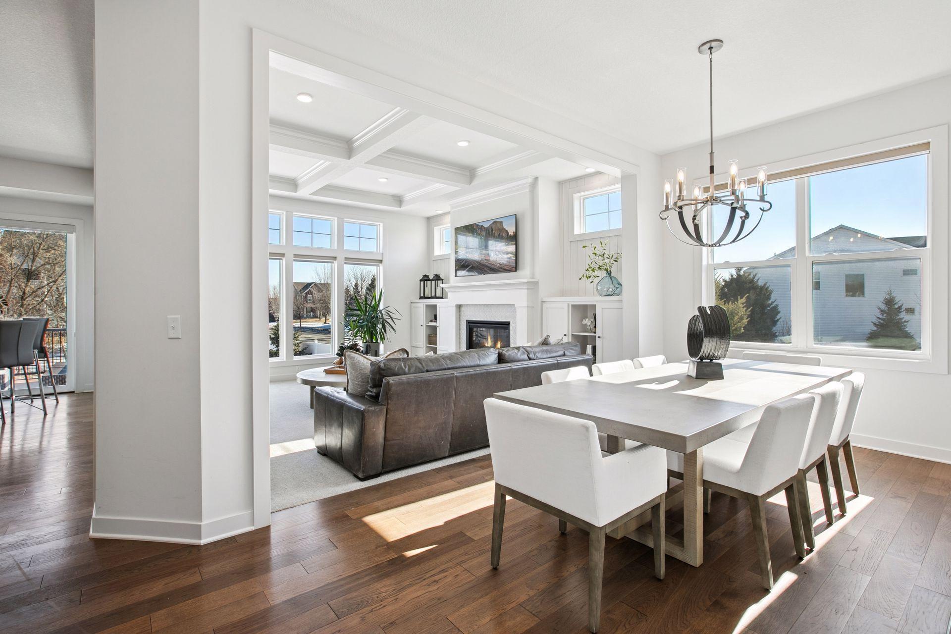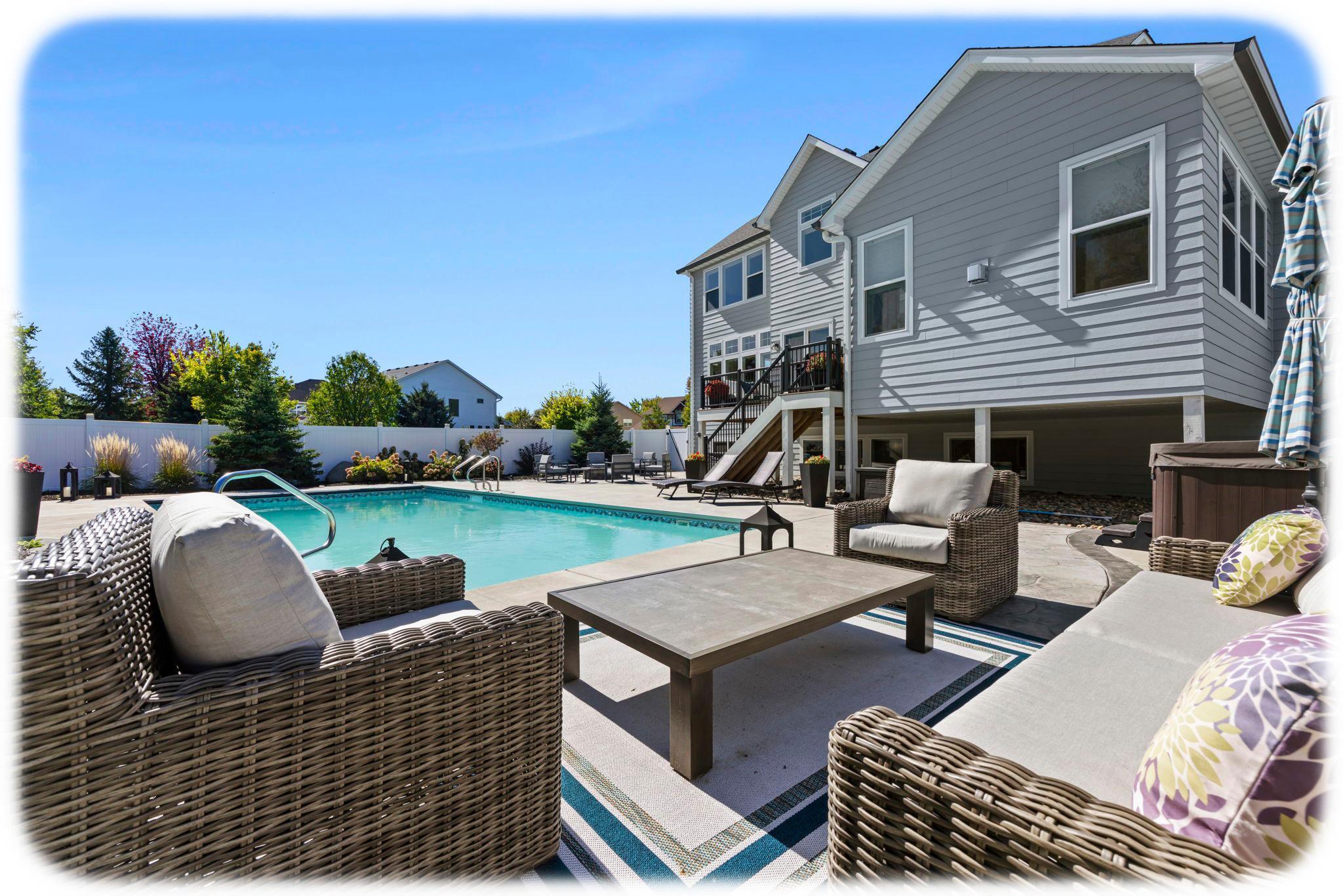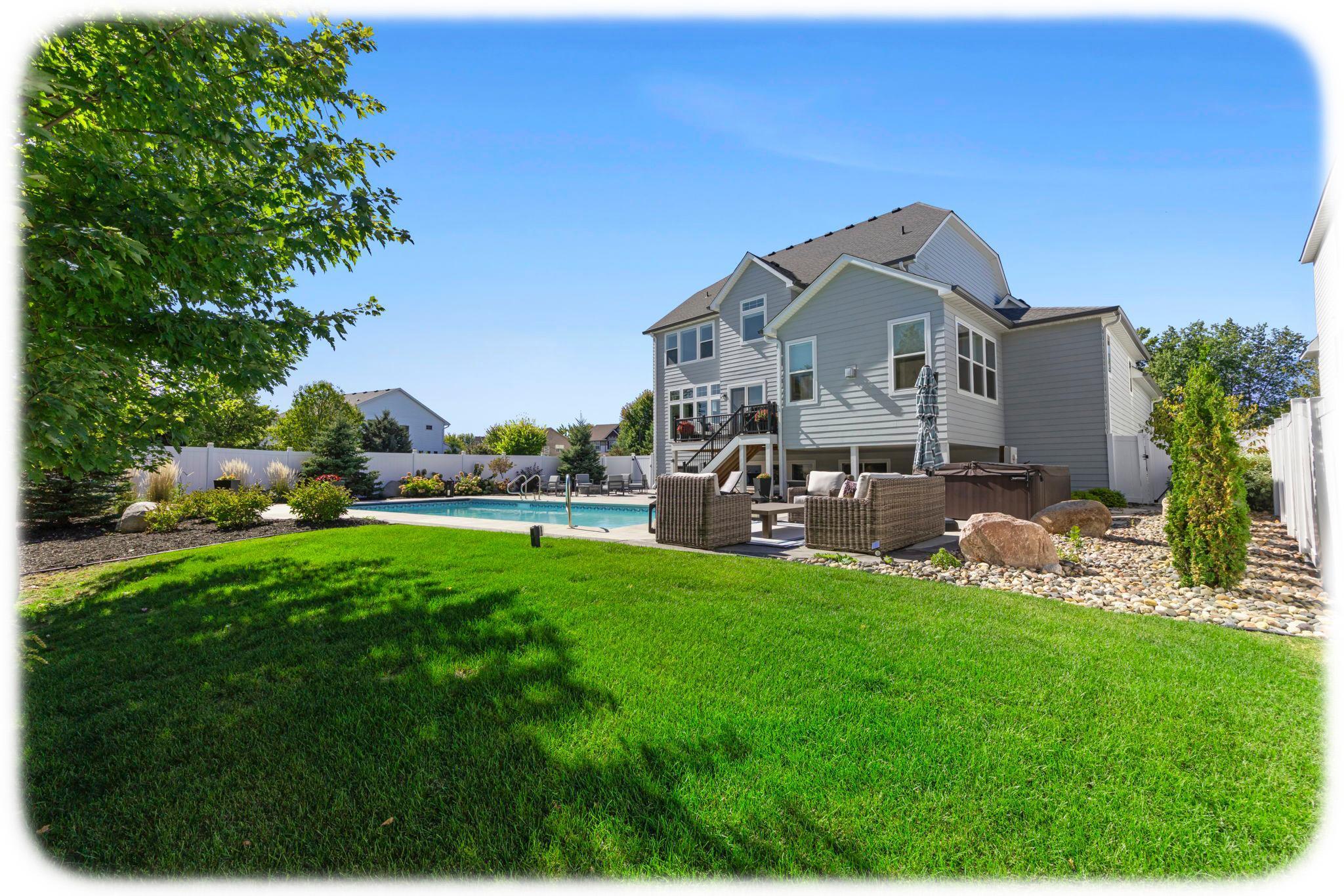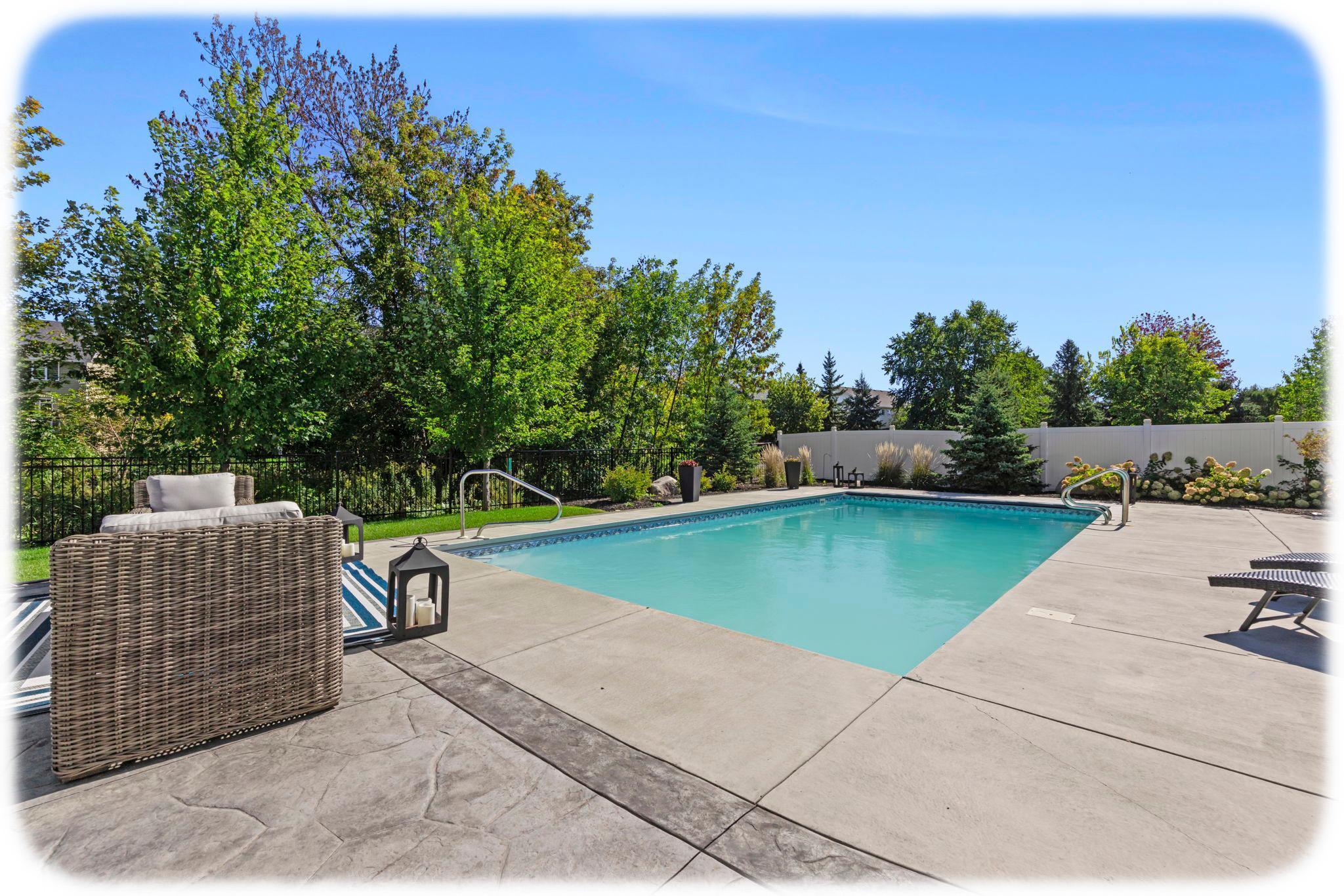 Welcome to this custom-built home in the prestigious South Prominence neighborhood of Maple Grove, located on a quiet cul-de-sac and within the award-winning Wayzata School District. Private backyard oasis designed for relaxation and entertaining. Enjoy the heated in-ground pool with an electric cover and LED lighting package, surrounded by an expansive concrete patio and decorative walkways. The space also includes a hot tub, fire pit, fully fenced yard for privacy, and additional green space for play - an ideal setting for summer gatherings. The front porch adds curb appeal and great sunset views! The heated four-car garage provides exceptional functionality with epoxy finished floors and maximum storage options. Inside, you’ll find 10-foot ceilings and thoughtful detail throughout. The great room features coffered ceilings, custom built-ins, and a wall of windows that frame the outdoor views and bring in natural light. The kitchen includes an oversized island with seating for everyday living and entertaining, quality cabinetry with natural wood detailing, a massive walk-in pantry, sink overlooking the backyard, and high-end finishes. A second dinette and formal dining room offer multiple options for hosting and gatherings. Upstairs are four bedrooms, each with a private bathroom. The primary suite includes a luxurious bathroom with a soaking tub, dual vanities, heated floors, makeup counter, and a walk-in closet. The finished lower level is designed for recreation and entertainment, complete with a wet bar, large recreational area, fifth bedroom, 3/4 bathroom and sport court. Zoned HVAC provides comfort and efficiency throughout the home.