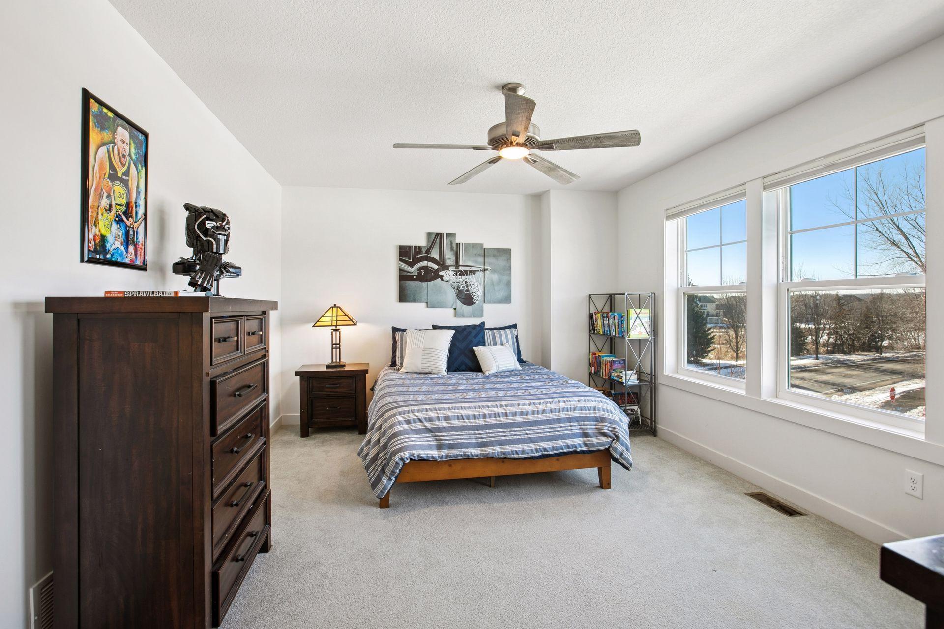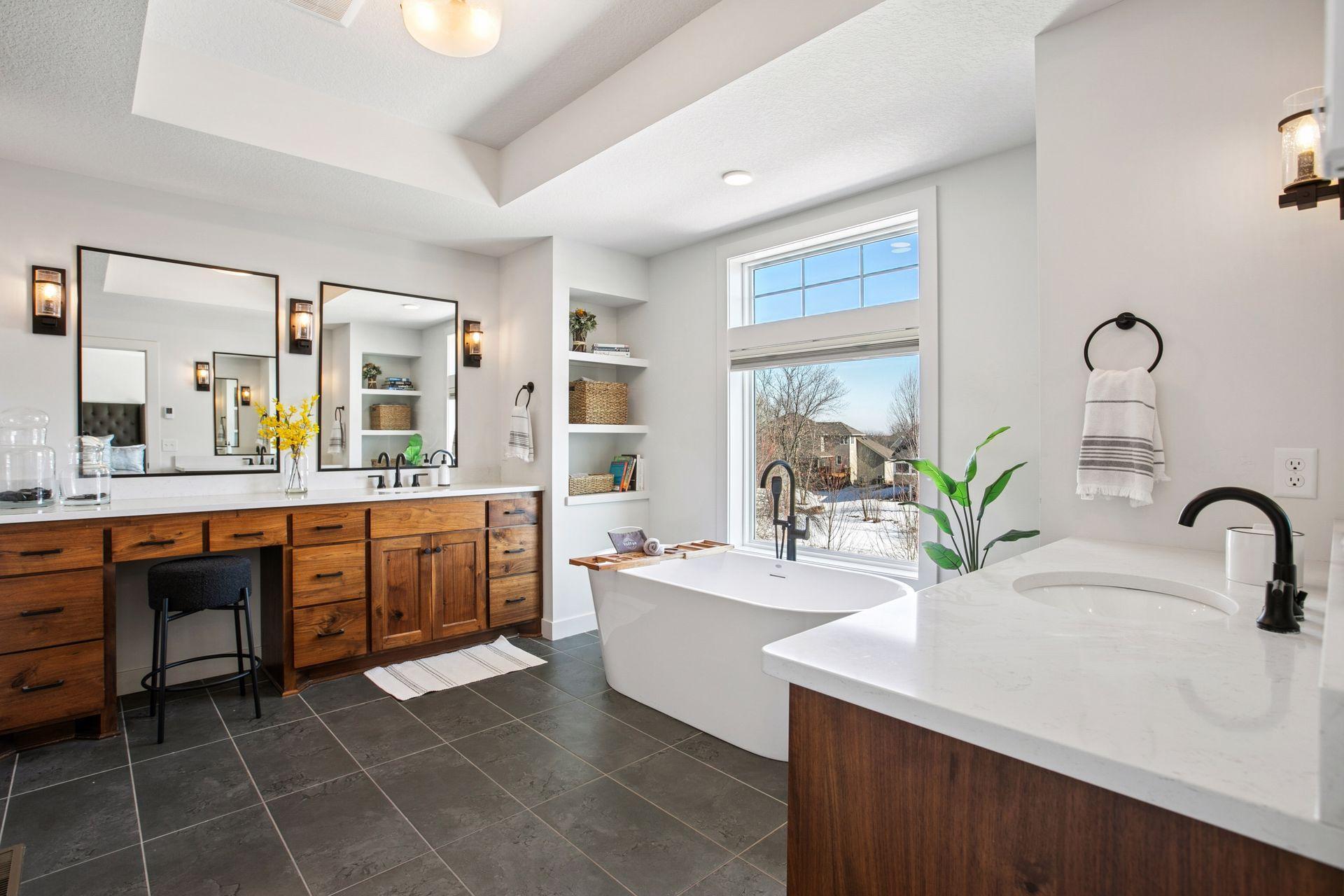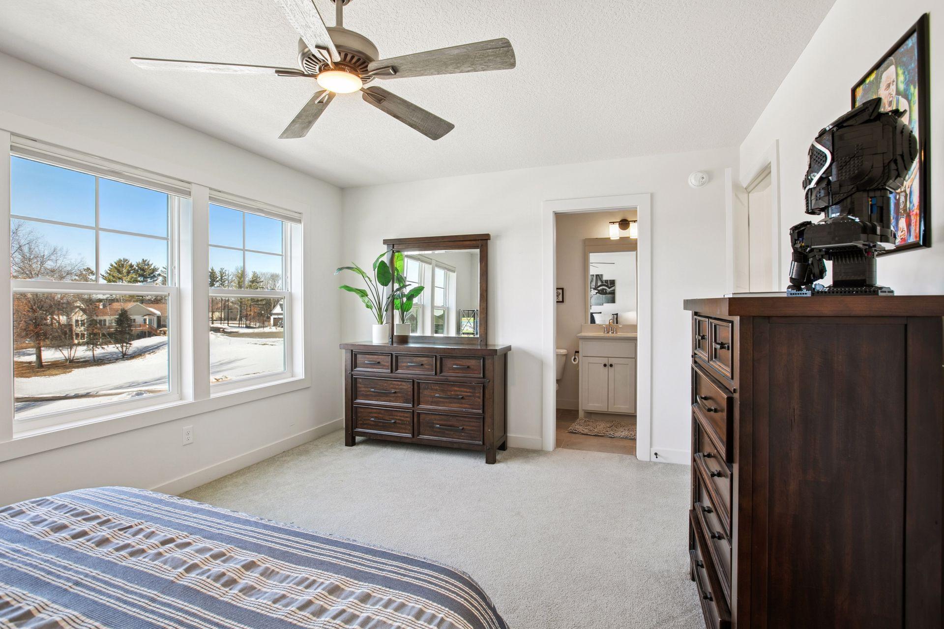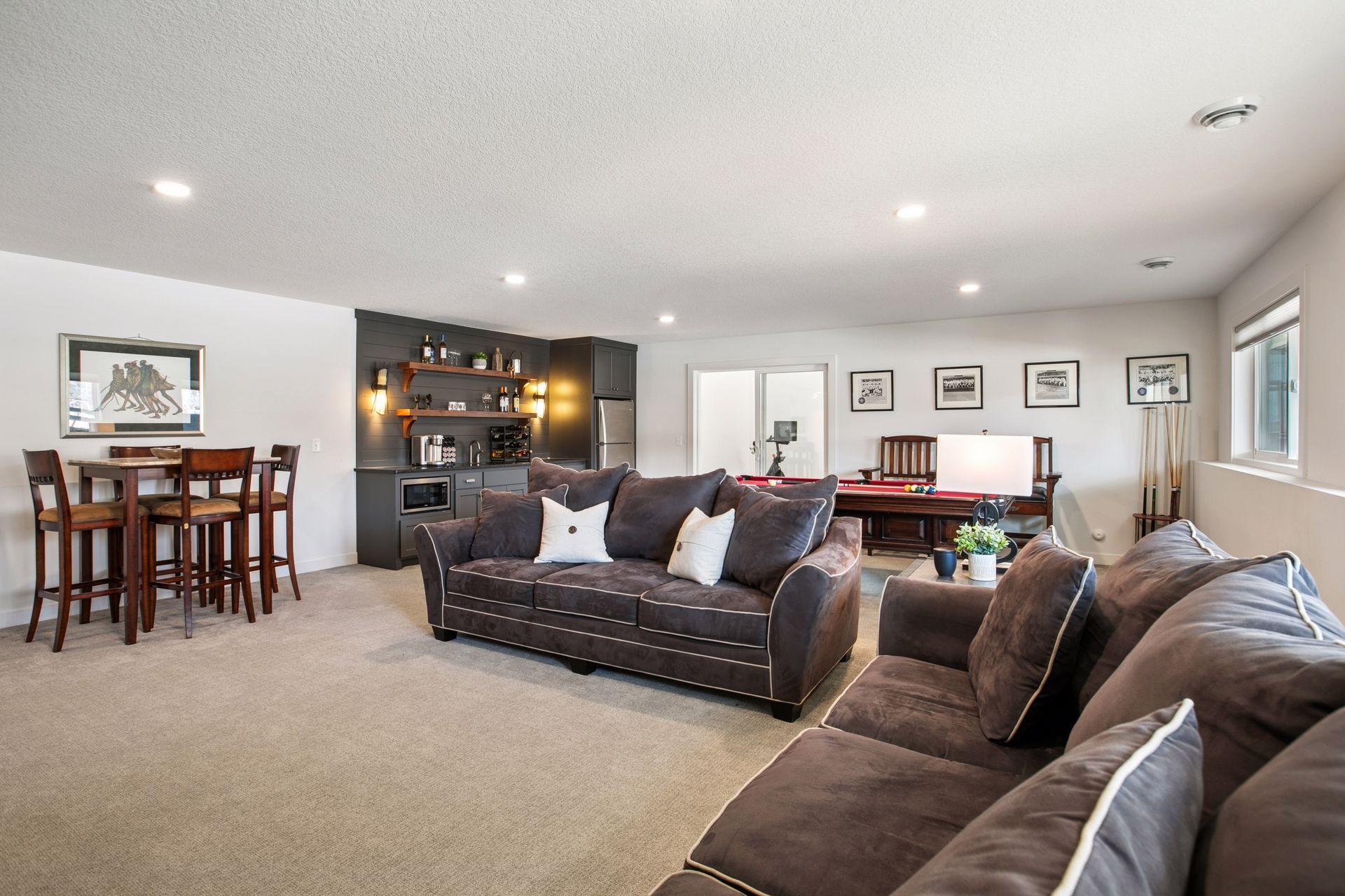Welcome to this custom-built home in the prestigious South Prominence neighborhood of Maple Grove, located on a quiet cul-de-sac and within the award-winning Wayzata School District. Private backyard oasis designed for relaxation and entertaining. Enjoy the heated in-ground pool with an electric cover and LED lighting package, surrounded by an expansive concrete patio and decorative walkways. The space also includes a hot tub, fire pit, fully fenced yard for privacy, and additional green space for play - an ideal setting for summer gatherings. The front porch adds curb appeal and great sunset views! The heated four-car garage provides exceptional functionality with epoxy finished floors and maximum storage options. Inside, you’ll find 10-foot ceilings and thoughtful detail throughout. The great room features coffered ceilings, custom built-ins, and a wall of windows that frame the outdoor views and bring in natural light. The kitchen includes an oversized island with seating for everyday living and entertaining, quality cabinetry with natural wood detailing, a massive walk-in pantry, sink overlooking the backyard, and high-end finishes. A second dinette and formal dining room offer multiple options for hosting and gatherings. Upstairs are four bedrooms, each with a private bathroom. The primary suite includes a luxurious bathroom with a soaking tub, dual vanities, heated floors, makeup counter, and a walk-in closet. The finished lower level is designed for recreation and entertainment, complete with a wet bar, large recreational area, fifth bedroom, 3/4 bathroom and sport court. Zoned HVAC provides comfort and efficiency throughout the home.