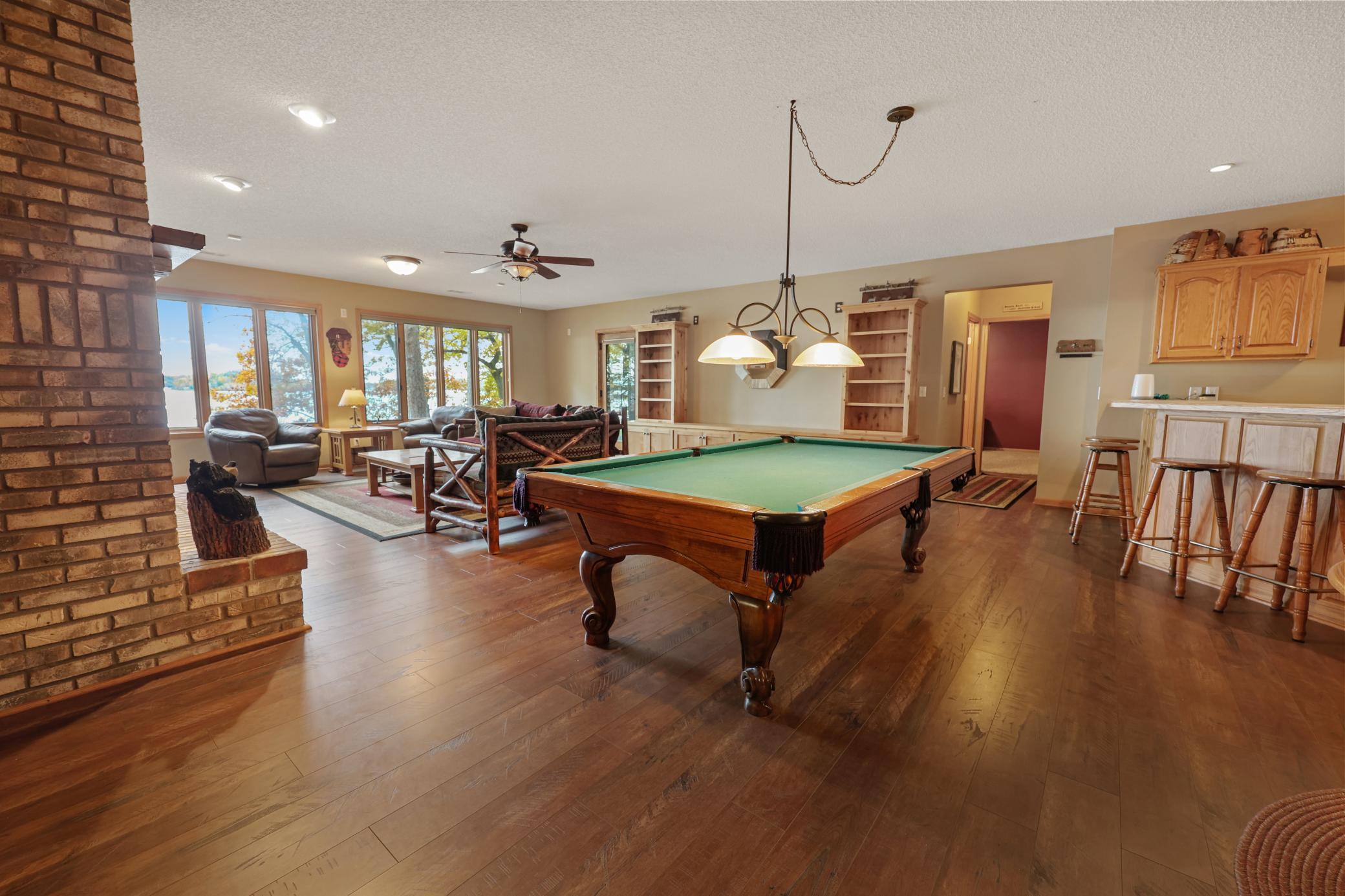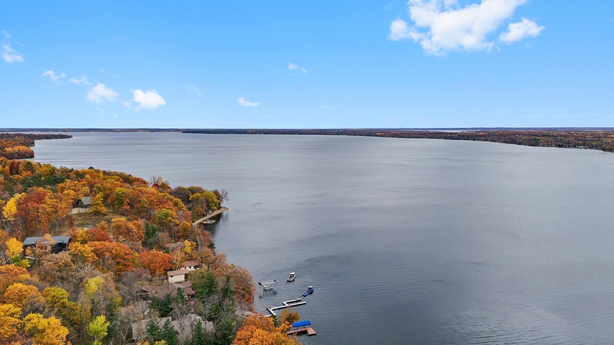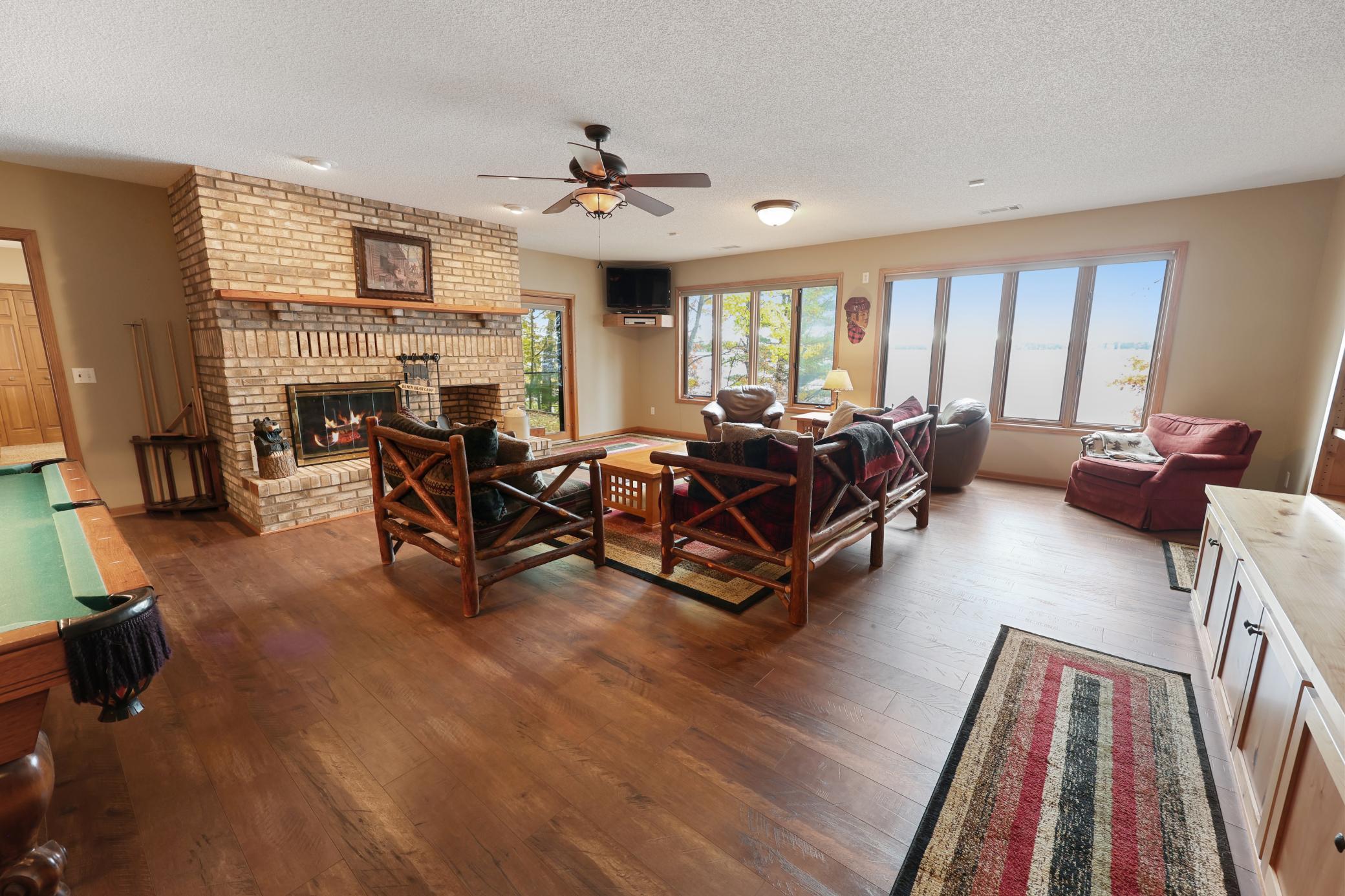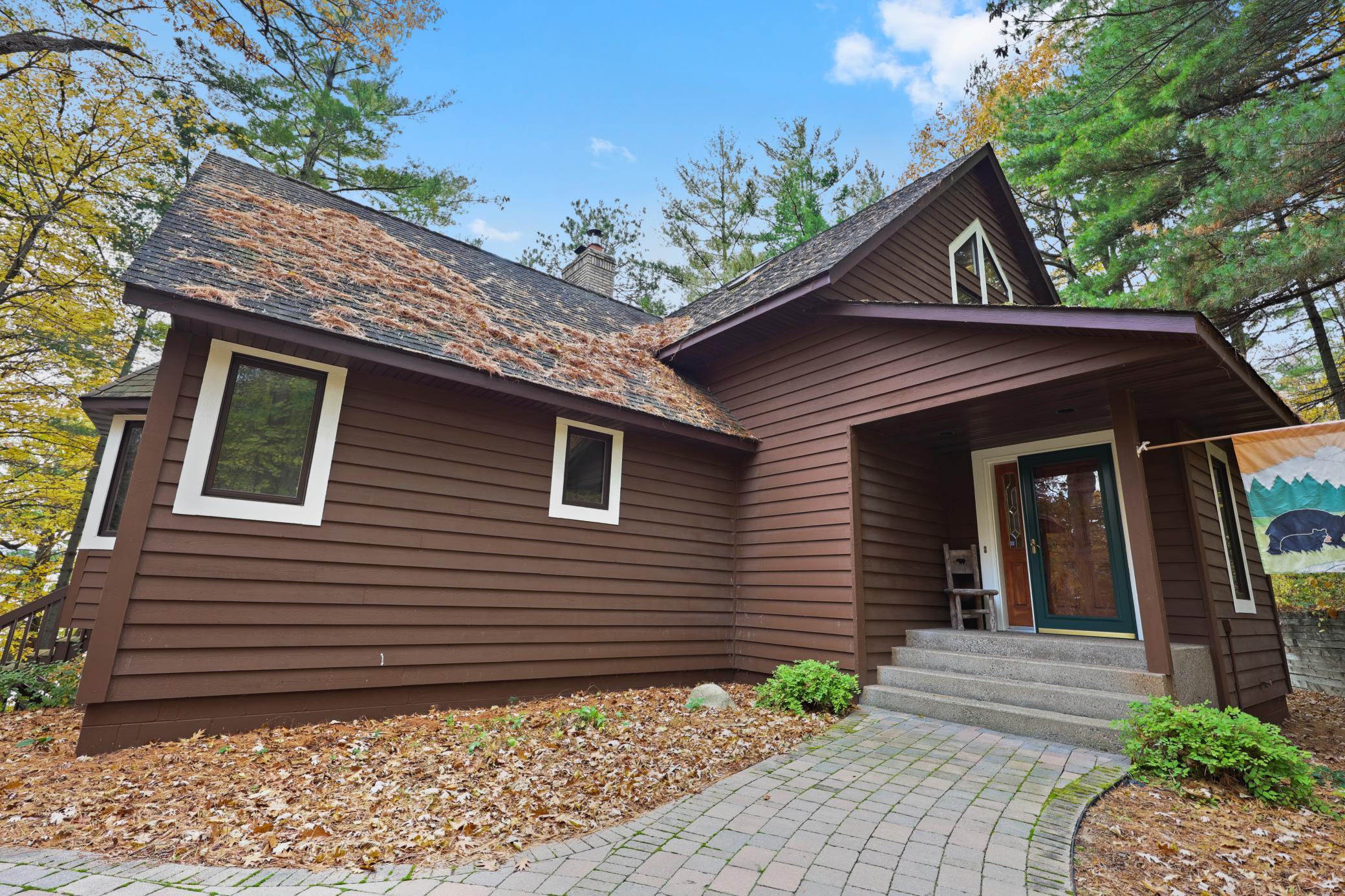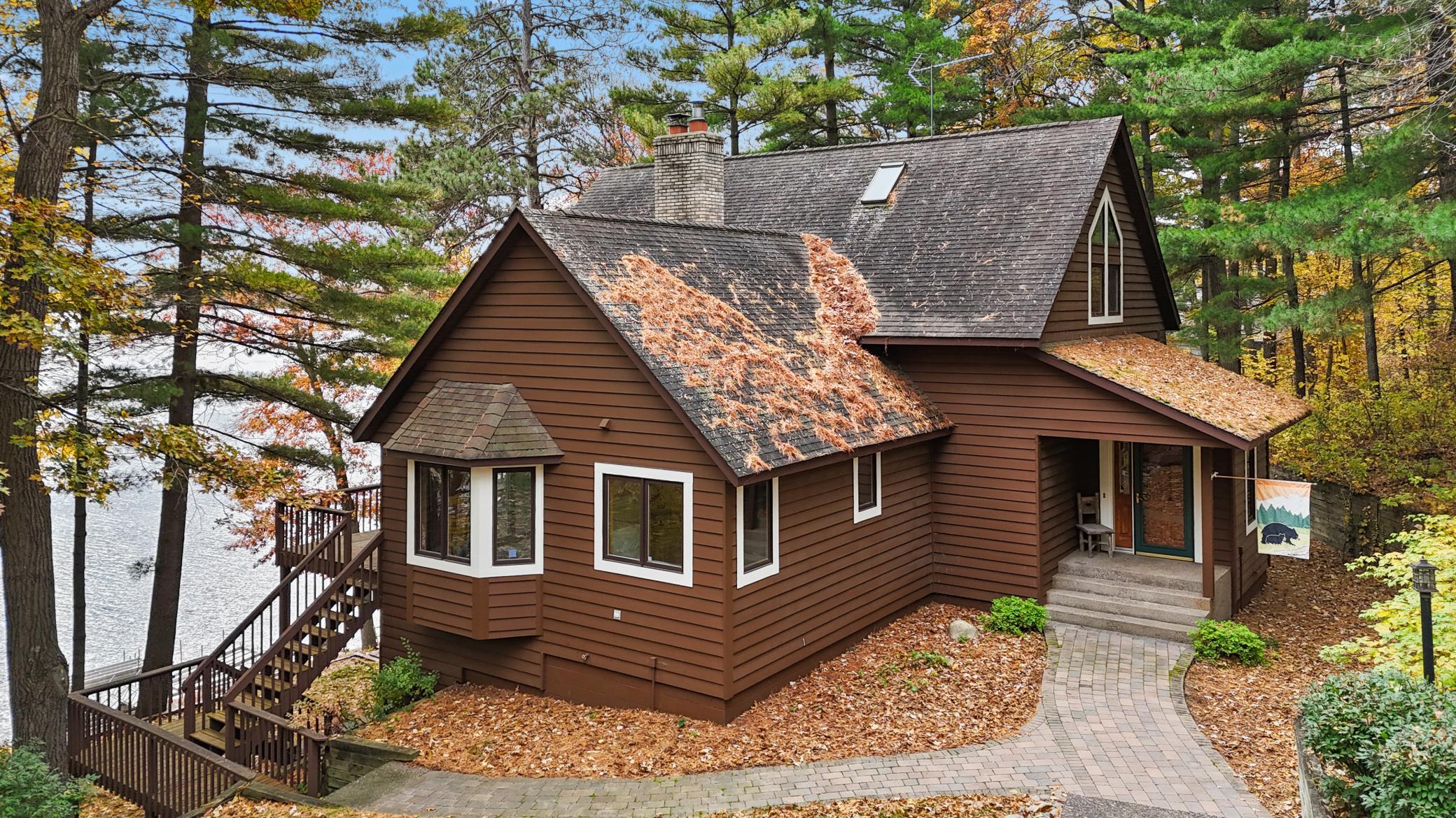 Experience lakeside living at its finest in this stunning A-frame home, peacefully nestled on a private 2.6-acre lot along the shores of beautiful Gull Lake. This architectural gem offers 4 spacious bedrooms, including 2 on the main level—one being a luxurious primary suite featuring a full ensuite bath with a jetted soaking tub. Both main-floor bedrooms open directly onto a 10’ x 20’ lakeside deck, the perfect place to enjoy serene morning views. The heart of the home showcases a dramatic two-story stone fireplace, anchoring an expansive open-concept living area where the kitchen, dining, and great room seamlessly flow together. Soaring ceilings and floor-to-ceiling windows frame breathtaking views of the lake. An 18’ x 18’ loft overlooks the main level, offering versatile space for additional sleeping quarters, a lounge, or a home office—all with a view of the water. The walkout lower level is an entertainer’s dream, featuring a full wet bar, pool table area, and a cozy wood-burning fireplace. Step outside to a lakefront patio ideal for gatherings and relaxation. Practicality meets luxury with generous storage throughout, including a dedicated lake toy storage room, a spacious three-stall detached garage, and a 30’ x 40’ pole shed perfect for boats and outdoor equipment. Don’t miss this rare opportunity to own a one-of-a-kind property on one of Minnesota’s premier lake chains—where timeless design meets modern comfort in an unmatched natural setting.