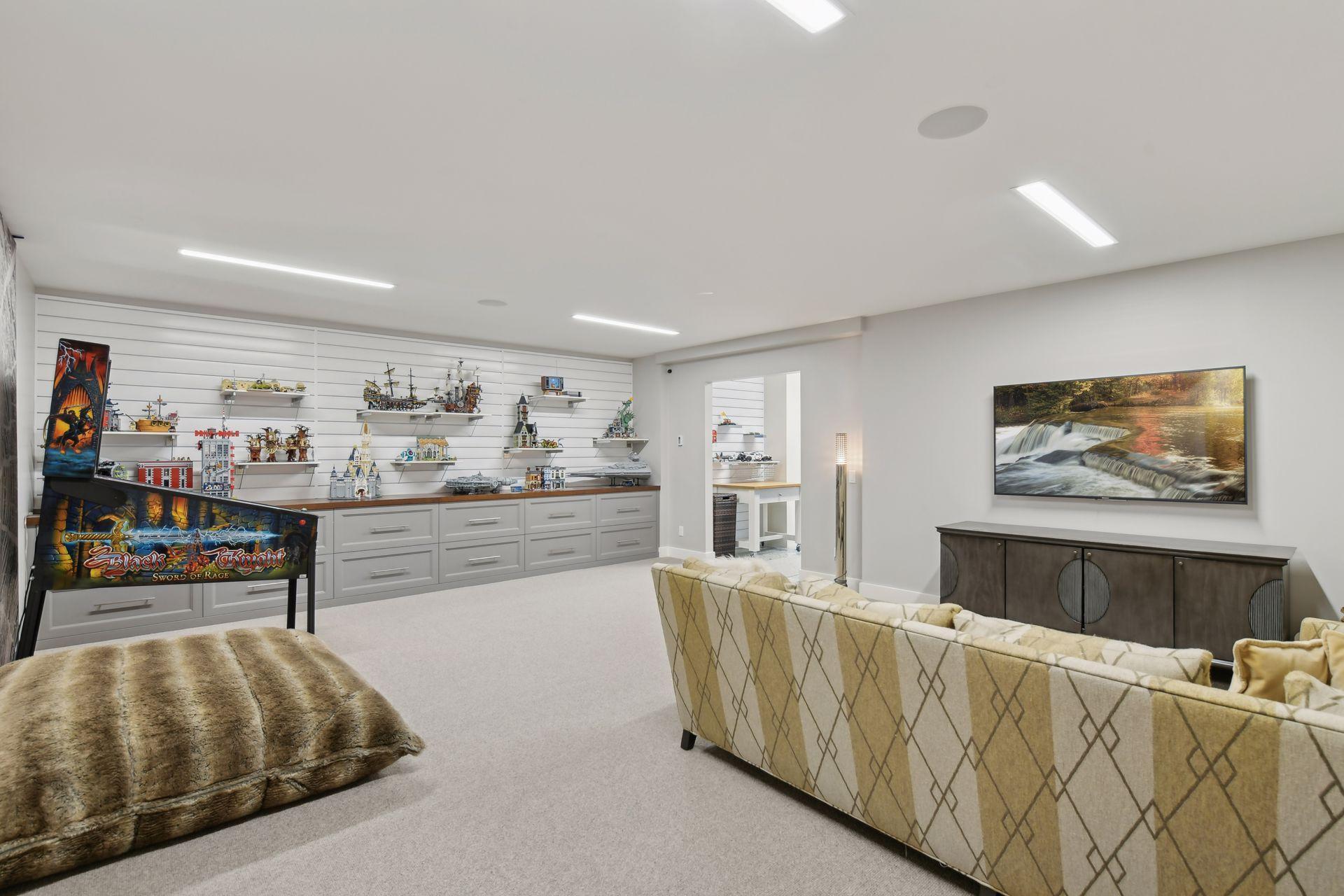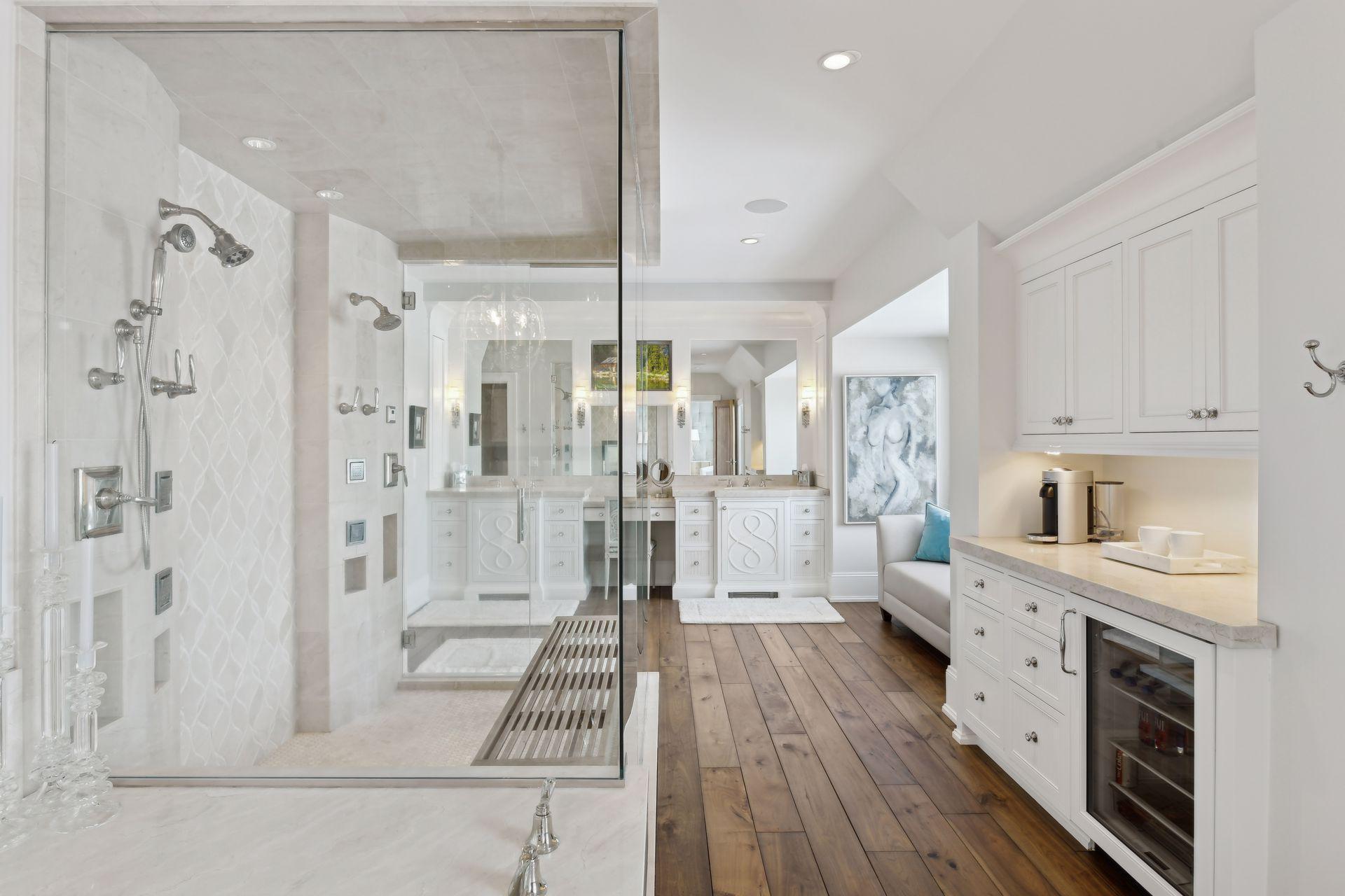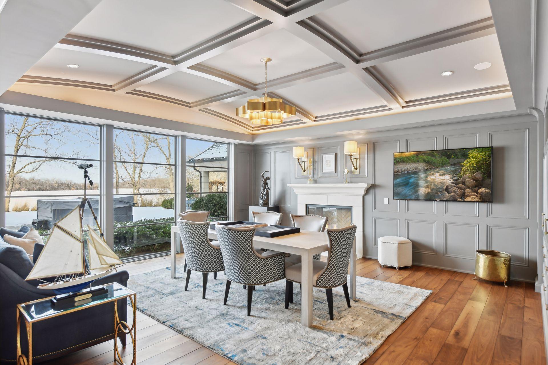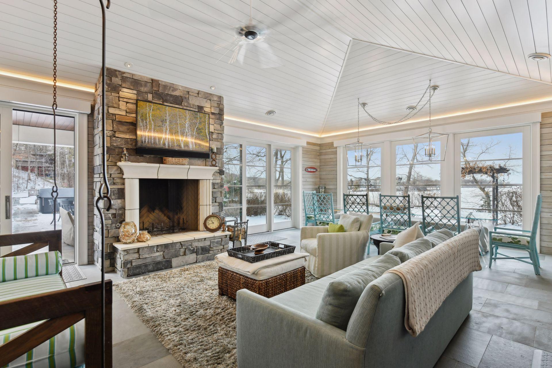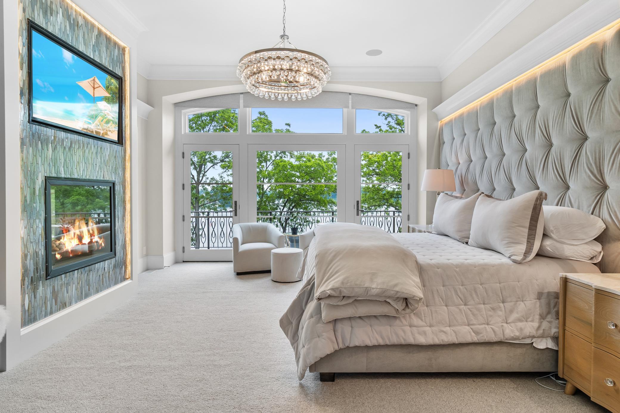 Resting on the grounds of the original Van Dusen summer cottage on the shores of Lake Minnetonka, the Forever Estate blends French provincial charm with countryside cottage allure, creating a truly distinctive masterpiece designed to stand the test of time. Set within the private Baycliffe gated community, this remarkable 8,297-square-foot residence offers a harmonious balance of modern luxury and historic character. Encompassing 1.22 acres and boasting 210 feet of pristine sandy shoreline, the property presents unparalleled lakefront living with breathtaking views of the private cove adjacent to Smithtown Bay from nearly every vantage point. Every inch of this home has been meticulously crafted, featuring a seamless blend of natural materials like marble, black walnut flooring, and mother-of-pearl mosaics, while also incorporating the modern luxury of a fully integrated Savant smart home system. From the open and inviting great room with its 24-foot retractable glass wall to the gourmet kitchen adorned with honed marble and shimmering mother-of-pearl tile, no detail has been overlooked. Textiles and finishes have been thoughtfully curated to exude warmth and romance throughout. A stunning owner’s suite on the upper level showcases a private balcony with panoramic lake views, a dramatic tufted velvet wall, gas fireplace, and a luxurious ensuite with double steam showers, jetted tub, and a coffee bar. The suite leads to a walk-in closet featuring unparalleled organization systems. Other highlights include a glass-encased music and office space with coffered ceilings, a mirrored workout room, and an elevator providing access to all three levels. The exterior offers a seamless extension of the interior’s elegance, with a stately architectural design, a paver driveway with a fountain, and uplighting to enhance its grandeur. Resort-style amenities include a heated pool, hot tub, expansive patio, and a fully appointed pool house with fireplace and outdoor covered dining area—all perfectly positioned to capture the elevated lake views. With a 10+ car garage spanning three separate spaces, this estate provides unmatched functionality alongside its opulent design. Residents also enjoy exclusive community amenities such as tennis, pickleball, basketball courts, and shuffleboard. The Forever Estate is not just a home; it is a rare legacy property offering unparalleled luxury and a lifestyle of timeless elegance.