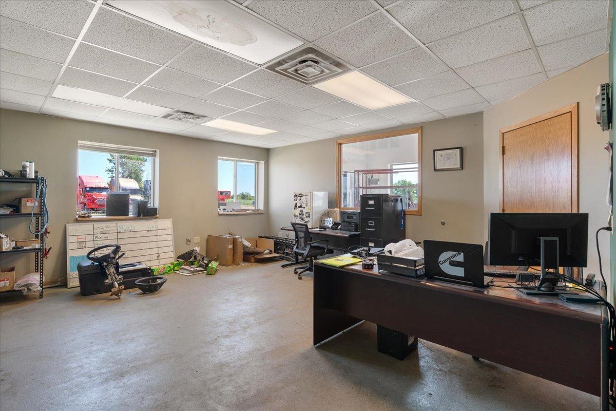 Located on the South-eastern corner of I94 @ Exit 28 the location is prime for any type of commercial business. This building has it all and was used as a truck repair shop with 3 drive through bays that can each fit 2 semi tractors and a 53' Trailer. 1 drive in bay. A wash bay, warehouse, and 4 loading docs. Most of the upstairs offices are currently leased and with paid parking already in place this property will bring in the cash! The corner is being developed with other commercial businesses coming in. If you need more or less land for your needs this can be adjusted.