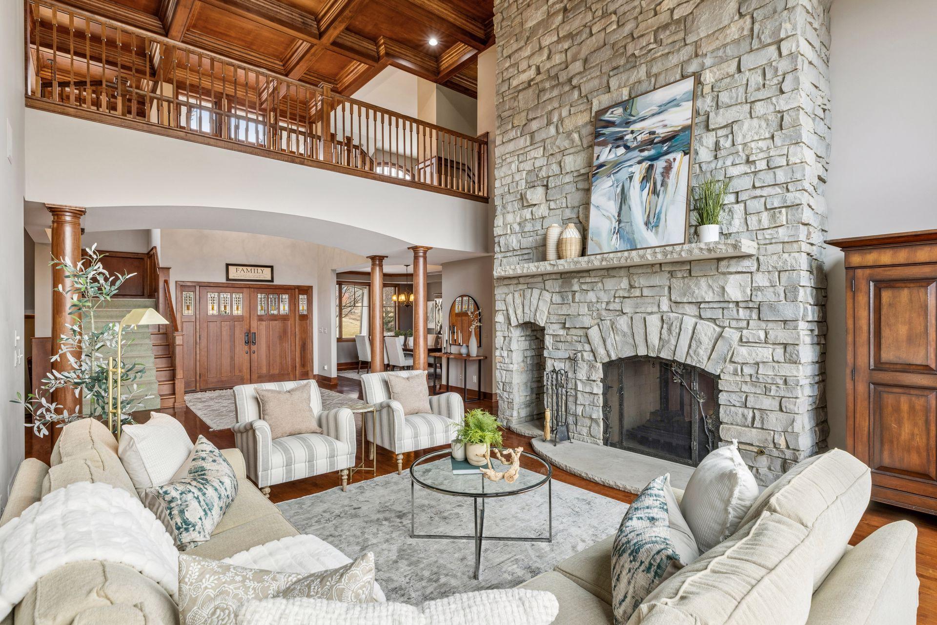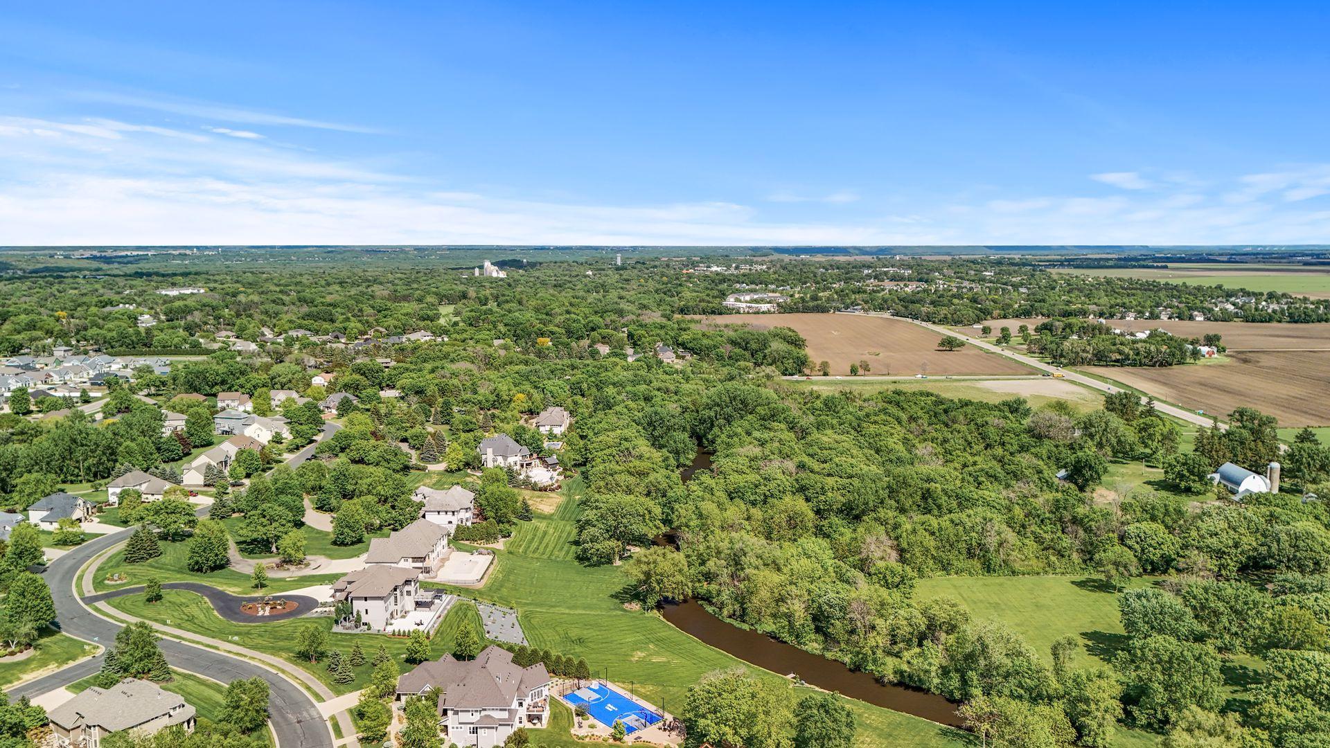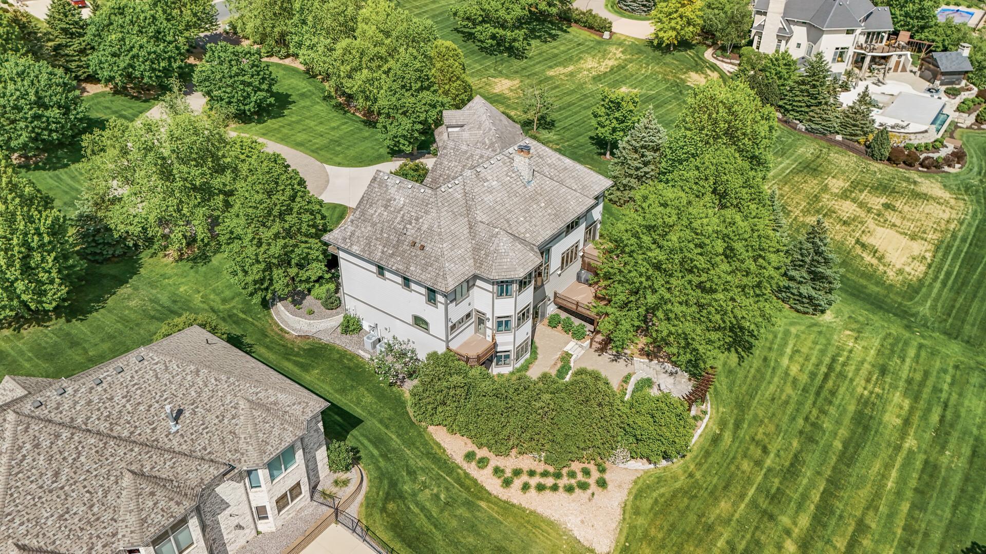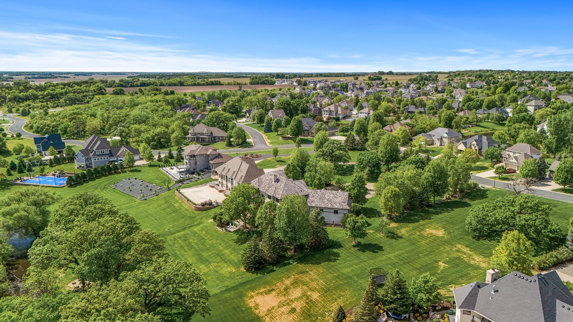 Perfectly positioned on an executive 1.8-acre setting overlooking the Vermillion River, this extraordinary custom residence offers rare privacy, serenity, and breathtaking wooded and wildlife views—an irreplaceable backdrop that feels worlds away, yet effortlessly refined. From the moment you arrive, a circular paver driveway and matching walkway create a grand sense of arrival, setting the tone for the premium craftsmanship and thoughtful design found throughout this remarkable home. Step inside to a stunning two-story foyer and great room, where a dramatic beamed ceiling with layered crown molding commands attention. Floor-to-ceiling Andersen windows frame sweeping natural views, flooding the home with light and connecting every space to the beauty beyond. Rich wood floors span most of the main level, while an authentic floor-to-ceiling real stone, see-through fireplace anchors the living spaces with timeless character and artisan detail. Extensive crown molding throughout further elevates the home’s architectural presence. The gourmet kitchen is designed for both everyday living and elevated entertaining, featuring custom cabinetry, a spacious walk-in pantry, and an inviting hearth room that expands the gathering space—perfect for hosting family and friends. An oversized mudroom impresses with built-in bench seating, cubbies, and paneled wainscoting, blending function with refined style. The main-level primary suite is a true retreat, showcasing a tray-vault ceiling, spa-inspired bath with heated floors, an oversized walk-in shower, and dual walk-in closets—creating a private sanctuary of comfort and luxury. Just off the primary suite, a main-level office offers exceptional flexibility for work, study, or lifestyle needs at every stage of life. Upstairs, dual staircases lead to an expansive loft with a media center and built-in study area, ideal for modern living. The bonus room above the garage—lined in warm knotty pine—creates the perfect gaming or recreation space and even offers direct access to the garage. Each of the four oversized bedrooms functions as a private suite, featuring walk-in closets, sitting areas, and private or adjacent baths. Two bedrooms also include private loft spaces, adding a unique and elevated touch. The walkout lower level with heated floors is an entertainer’s dream. Highlights include a private theater with counter seating, bar area, and reclining theater chairs; a spacious amusement room with wood-burning fireplace and wainscoting; a dedicated game area; a large craft room with island; a non-conforming bedroom or fitness space with additional flex room; and a ¾ bath complete with steam shower. A must-see hockey or sports room completes this exceptional level. Outdoor living is equally impressive with a maintenance-free, multi-level deck, firepit for cool evenings, and expansive views that provide year-round enjoyment. The home features multi-zone heating and cooling, plus an oversized heated four-car garage with epoxy floors—along with an additional four-car garage below, offering incredible space for vehicles, toys, or a workshop. Meticulously maintained and showcasing true pride of ownership, this home represents an exceptional value—one that simply cannot be duplicated at today’s construction costs.