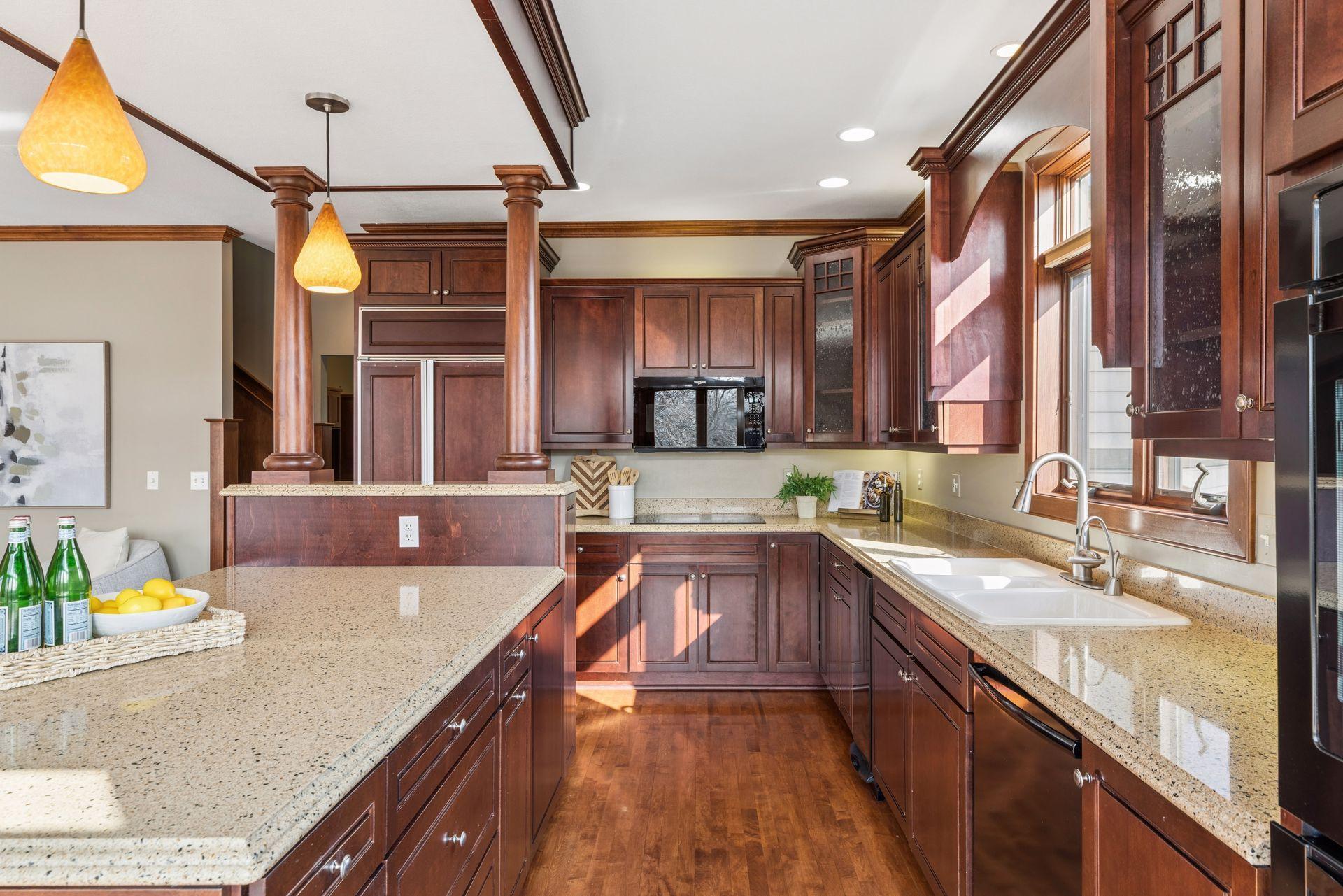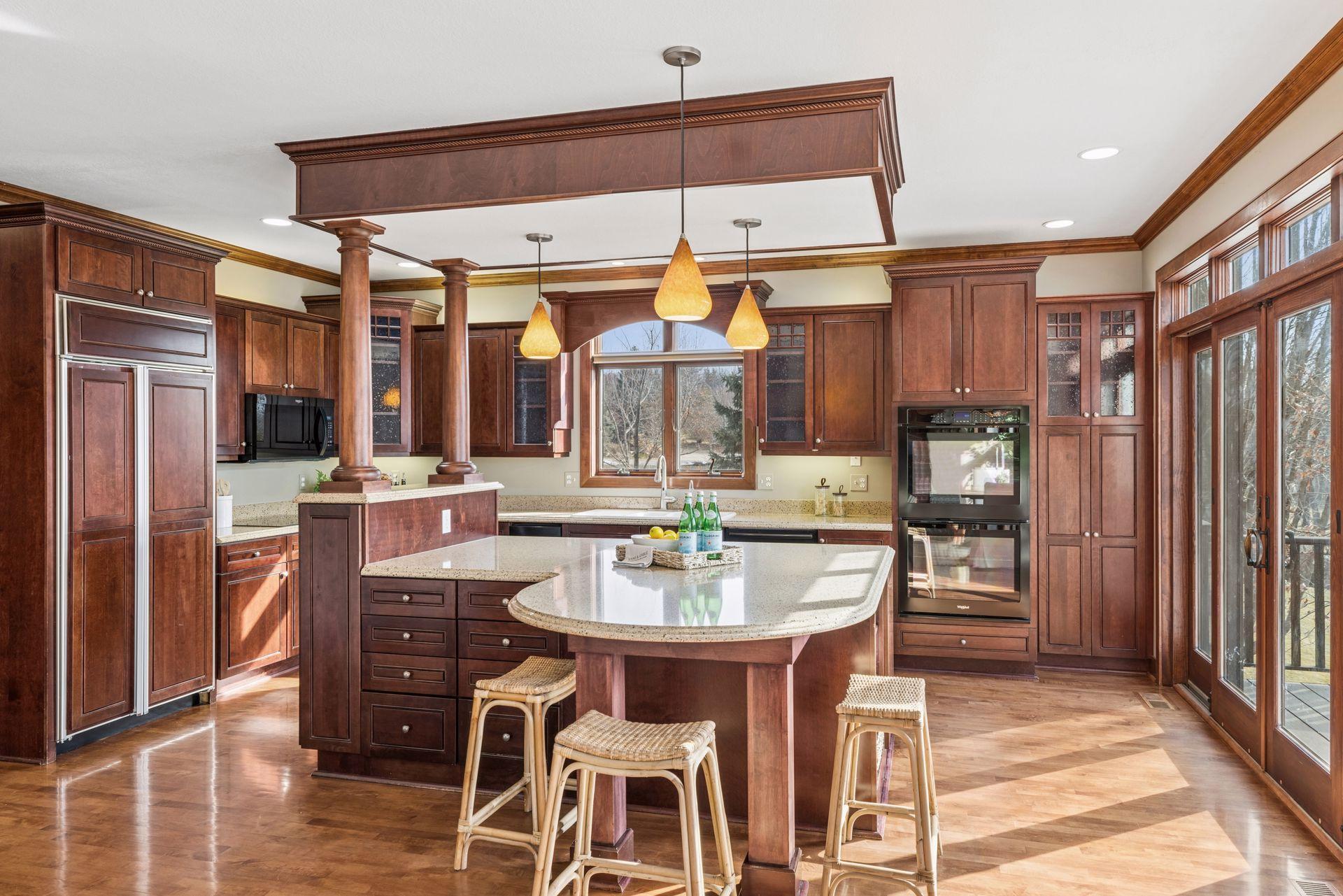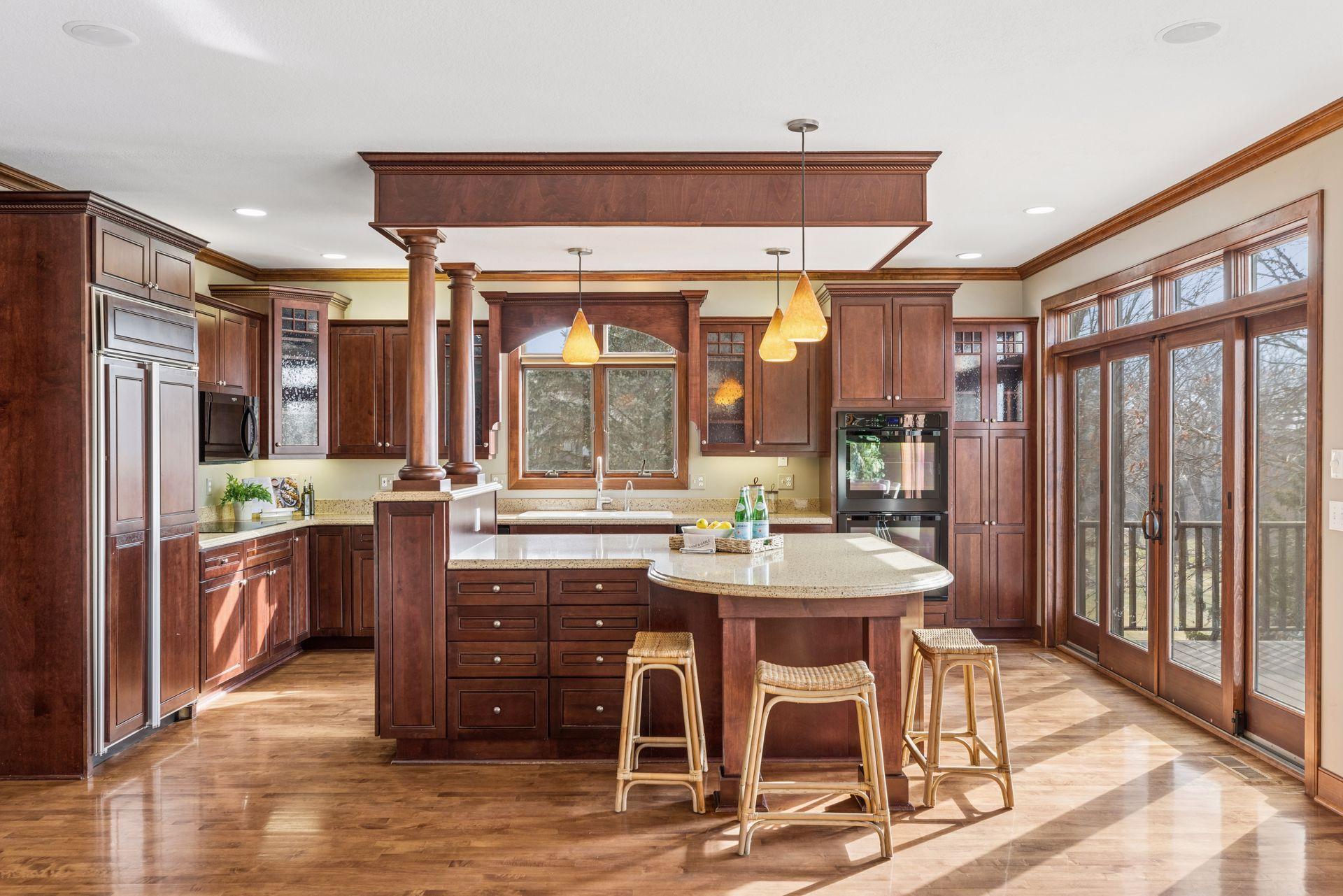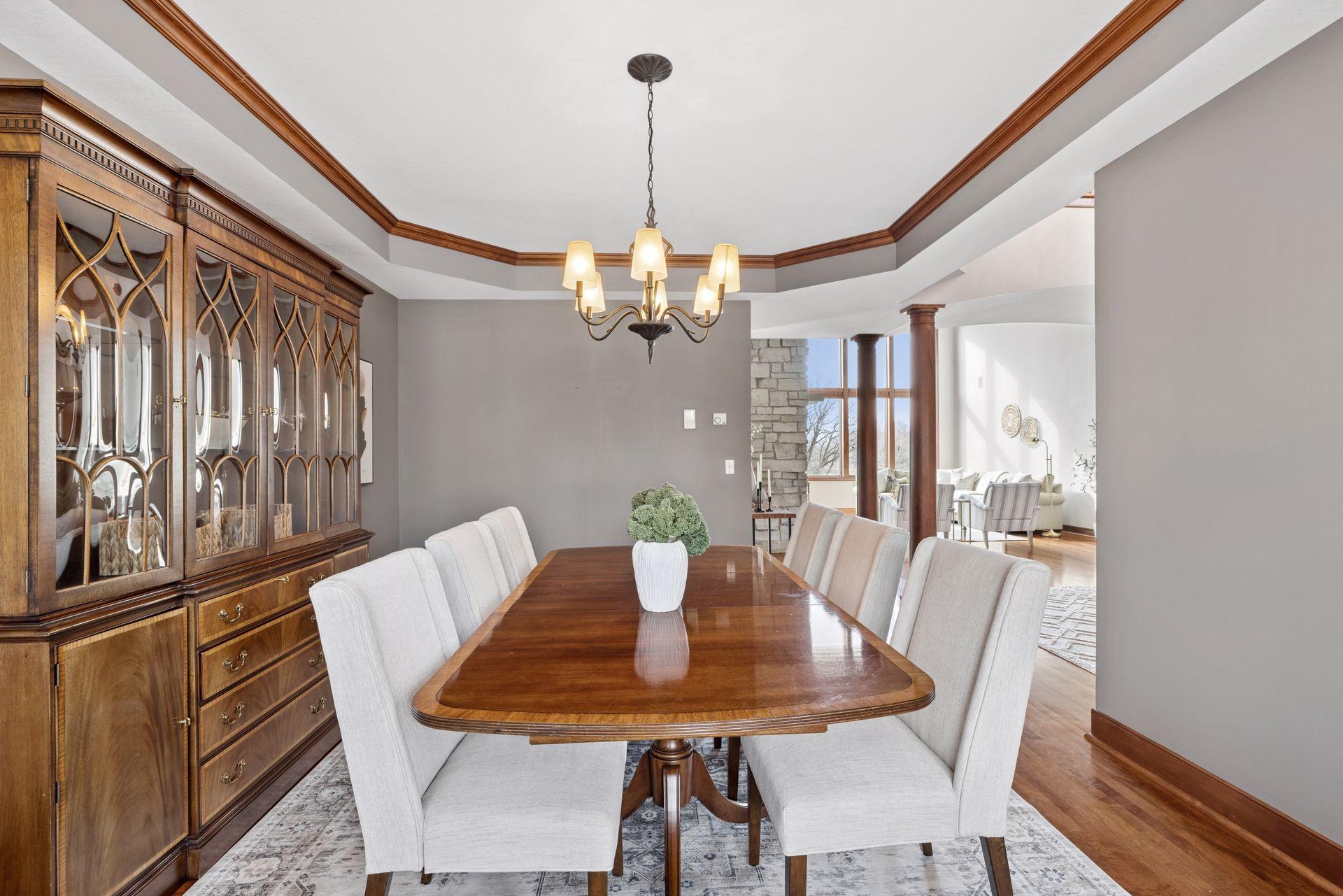 Perfectly positioned on an executive 1.8-acre setting overlooking the Vermillion River, this extraordinary custom residence offers rare privacy, serenity, and breathtaking wooded and wildlife views—an irreplaceable backdrop that feels worlds away, yet effortlessly refined. From the moment you arrive, a circular paver driveway and matching walkway create a grand sense of arrival, setting the tone for the premium craftsmanship and thoughtful design found throughout this remarkable home. Step inside to a stunning two-story foyer and great room, where a dramatic beamed ceiling with layered crown molding commands attention. Floor-to-ceiling Andersen windows frame sweeping natural views, flooding the home with light and connecting every space to the beauty beyond. Rich wood floors span most of the main level, while an authentic floor-to-ceiling real stone, see-through fireplace anchors the living spaces with timeless character and artisan detail. Extensive crown molding throughout further elevates the home’s architectural presence. The gourmet kitchen is designed for both everyday living and elevated entertaining, featuring custom cabinetry, a spacious walk-in pantry, and an inviting hearth room that expands the gathering space—perfect for hosting family and friends. An oversized mudroom impresses with built-in bench seating, cubbies, and paneled wainscoting, blending function with refined style. The main-level primary suite is a true retreat, showcasing a tray-vault ceiling, spa-inspired bath with heated floors, an oversized walk-in shower, and dual walk-in closets—creating a private sanctuary of comfort and luxury. Just off the primary suite, a main-level office offers exceptional flexibility for work, study, or lifestyle needs at every stage of life. Upstairs, dual staircases lead to an expansive loft with a media center and built-in study area, ideal for modern living. The bonus room above the garage—lined in warm knotty pine—creates the perfect gaming or recreation space and even offers direct access to the garage. Each of the four oversized bedrooms functions as a private suite, featuring walk-in closets, sitting areas, and private or adjacent baths. Two bedrooms also include private loft spaces, adding a unique and elevated touch. The walkout lower level with heated floors is an entertainer’s dream. Highlights include a private theater with counter seating, bar area, and reclining theater chairs; a spacious amusement room with wood-burning fireplace and wainscoting; a dedicated game area; a large craft room with island; a non-conforming bedroom or fitness space with additional flex room; and a ¾ bath complete with steam shower. A must-see hockey or sports room completes this exceptional level. Outdoor living is equally impressive with a maintenance-free, multi-level deck, firepit for cool evenings, and expansive views that provide year-round enjoyment. The home features multi-zone heating and cooling, plus an oversized heated four-car garage with epoxy floors—along with an additional four-car garage below, offering incredible space for vehicles, toys, or a workshop. Meticulously maintained and showcasing true pride of ownership, this home represents an exceptional value—one that simply cannot be duplicated at today’s construction costs.