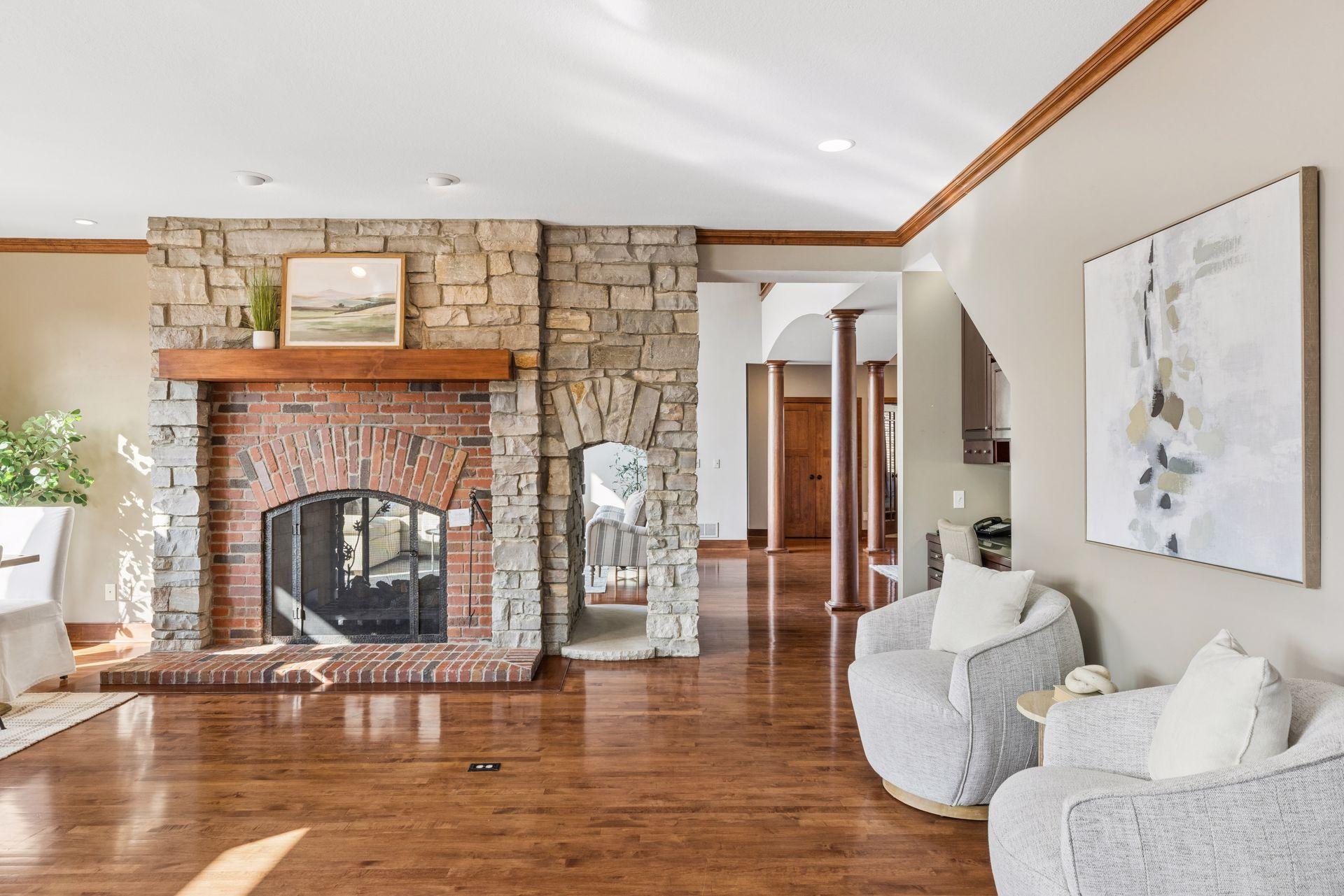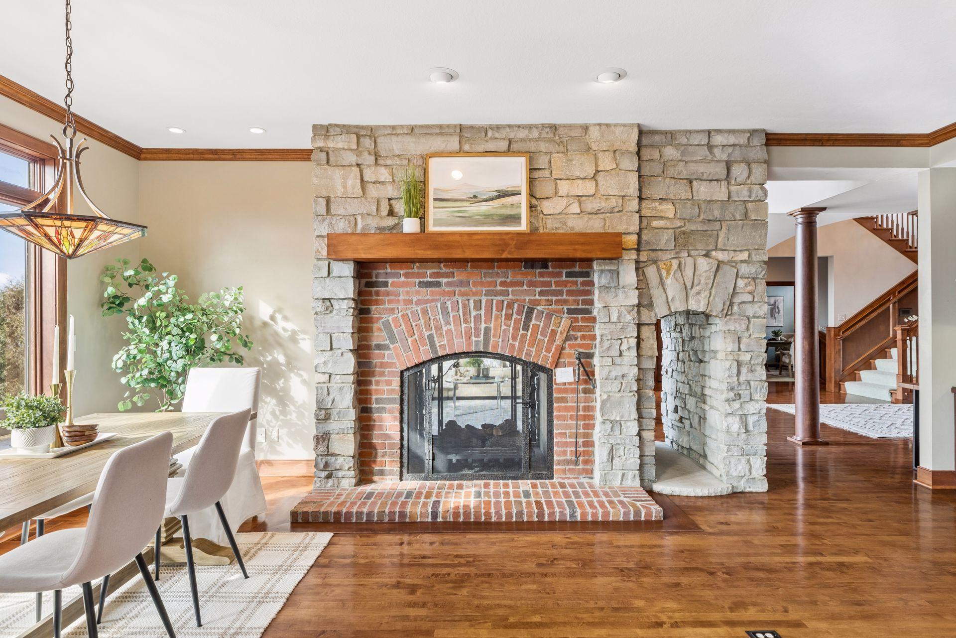 | Fireplace | Two Sided,Brick,Family Room,Living Room,Stone,Wood Burning |