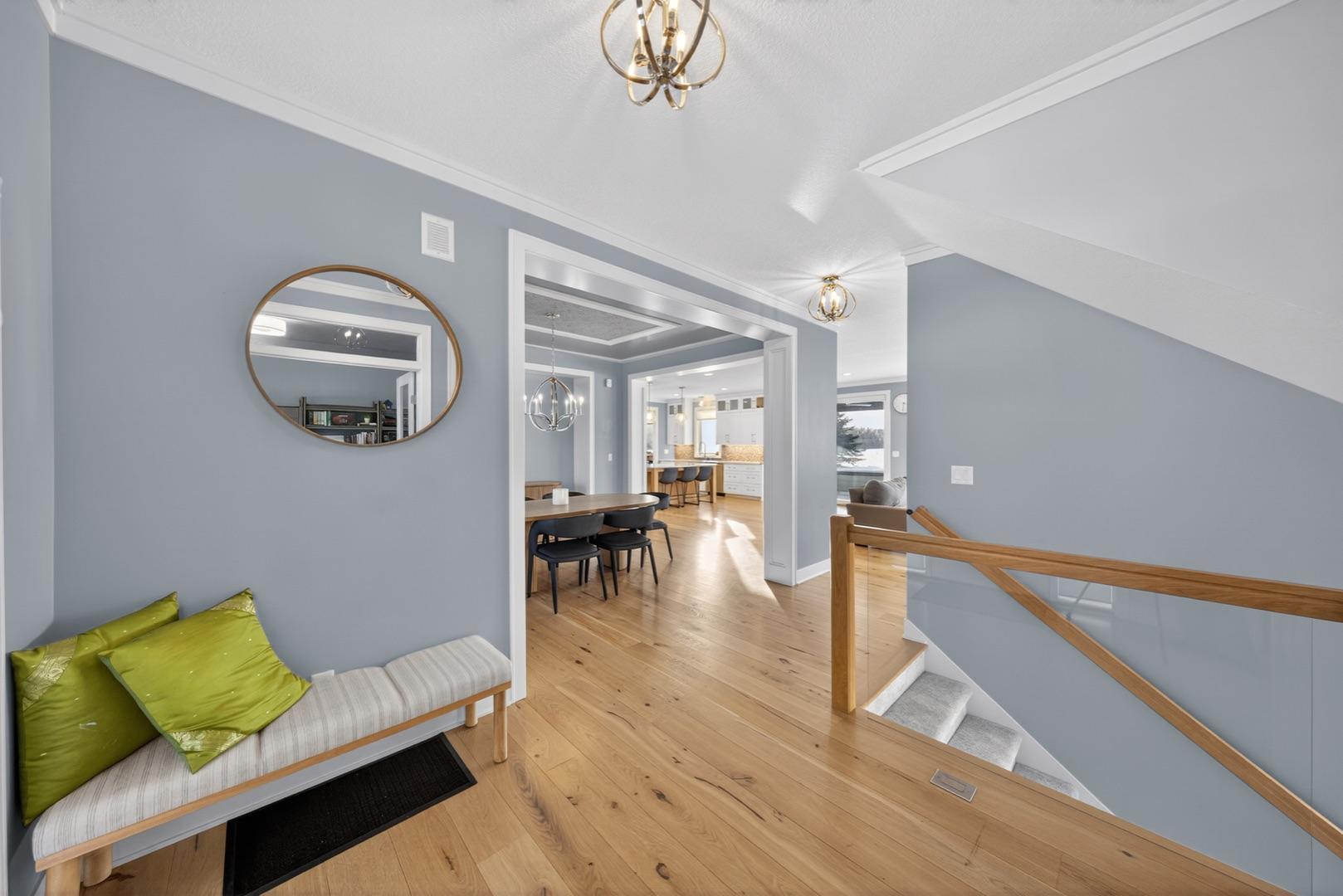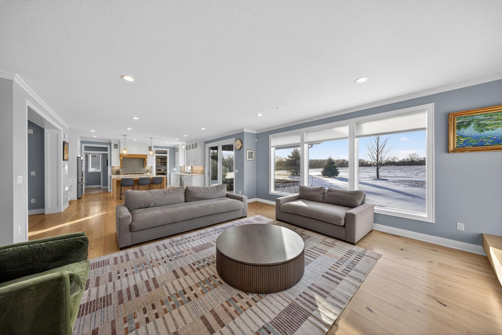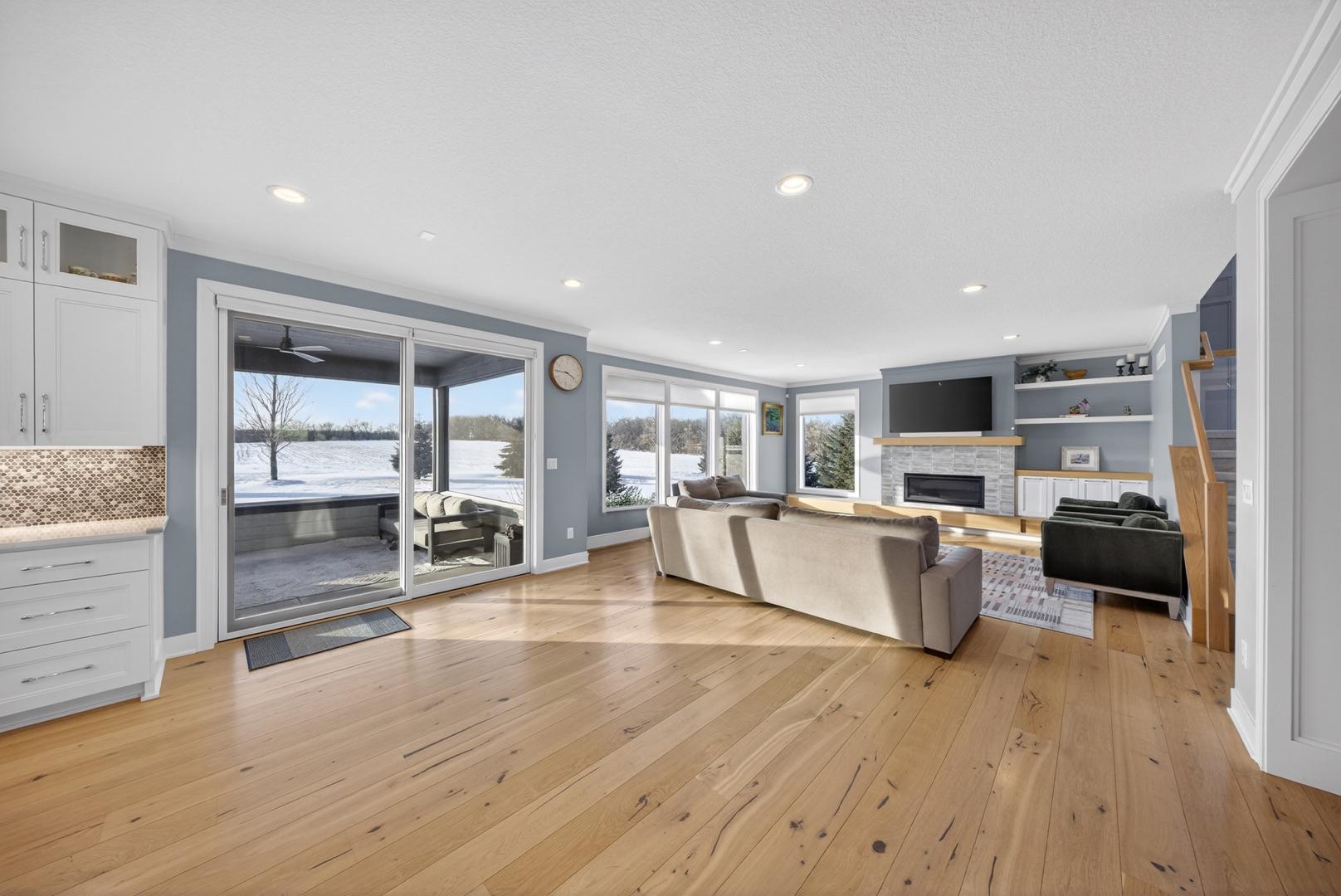 Located in a desirable neighborhood, this exceptional two story home offers refined design, elevated finishes, and a private setting with sweeping views and no rear neighbors. The main level showcases soaring ceilings, abundant natural light, and a thoughtfully designed open floor plan ideal for both everyday living and entertaining. The living room is anchored by a stunning tiled fireplace with custom built-ins and flows seamlessly into the beautifully appointed kitchen, featuring an oversized center island, enhanced pantry storage, and quality cabinetry throughout. The enclosed three season room and adjoining patio provide a remarkable space to relax and enjoy the expansive backyard and unforgettable sunsets. A private main floor office, functional mudroom, and ½ bath add both sophistication and convenience. The upper level offers four bedrooms, including a luxurious primary suite with tray ceiling detail, expanded vanity with additional storage, a spacious walk-in closet, and a spa inspired ensuite bath with tiled walk-in shower. The upper level also features a conveniently located laundry room, beautifully designed additional bedrooms with generous storage, a Jack and Jill bathroom, and an additional full bath. The finished lower level expands the home’s versatility with a beautifully designed family room featuring custom built-ins and fireplace, a recreation area, two additional bedrooms, and a full bath, ideal for guests, extended living, and memorable gatherings. With a three car garage, exceptional storage throughout, and a layout designed for both comfort and entertaining, this home offers an outstanding opportunity located just minutes from Mayo Clinic, parks, and premier amenities.