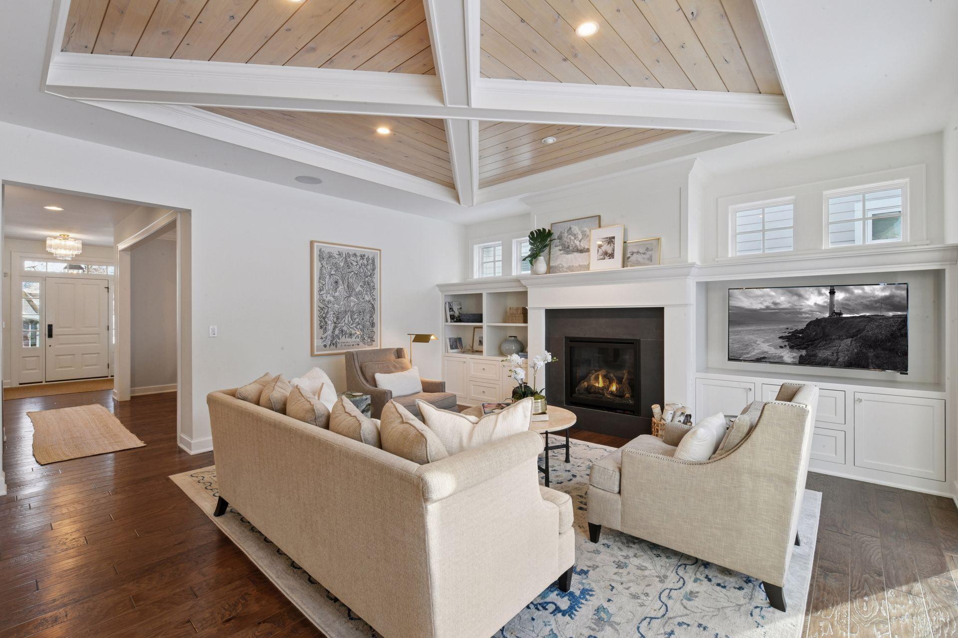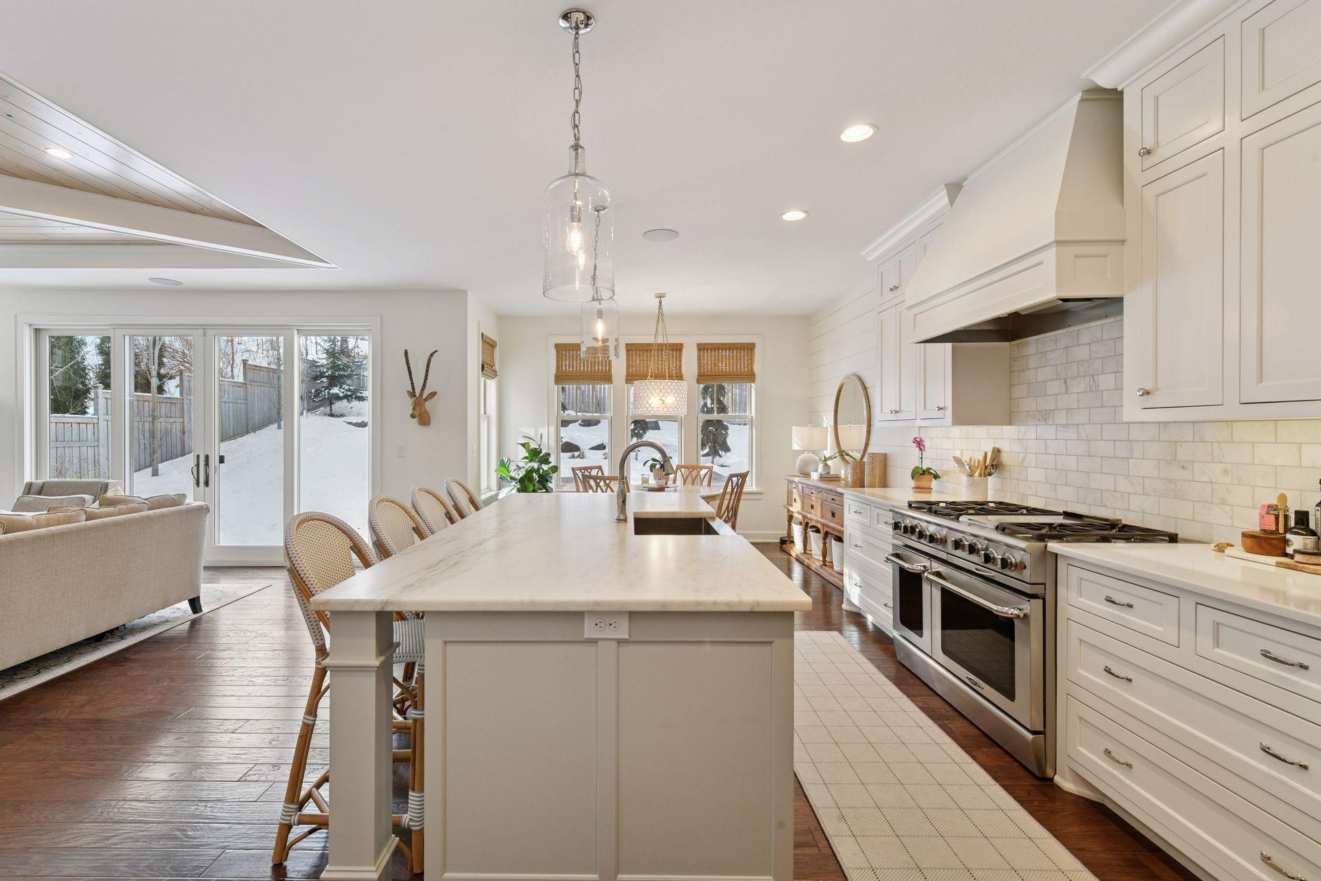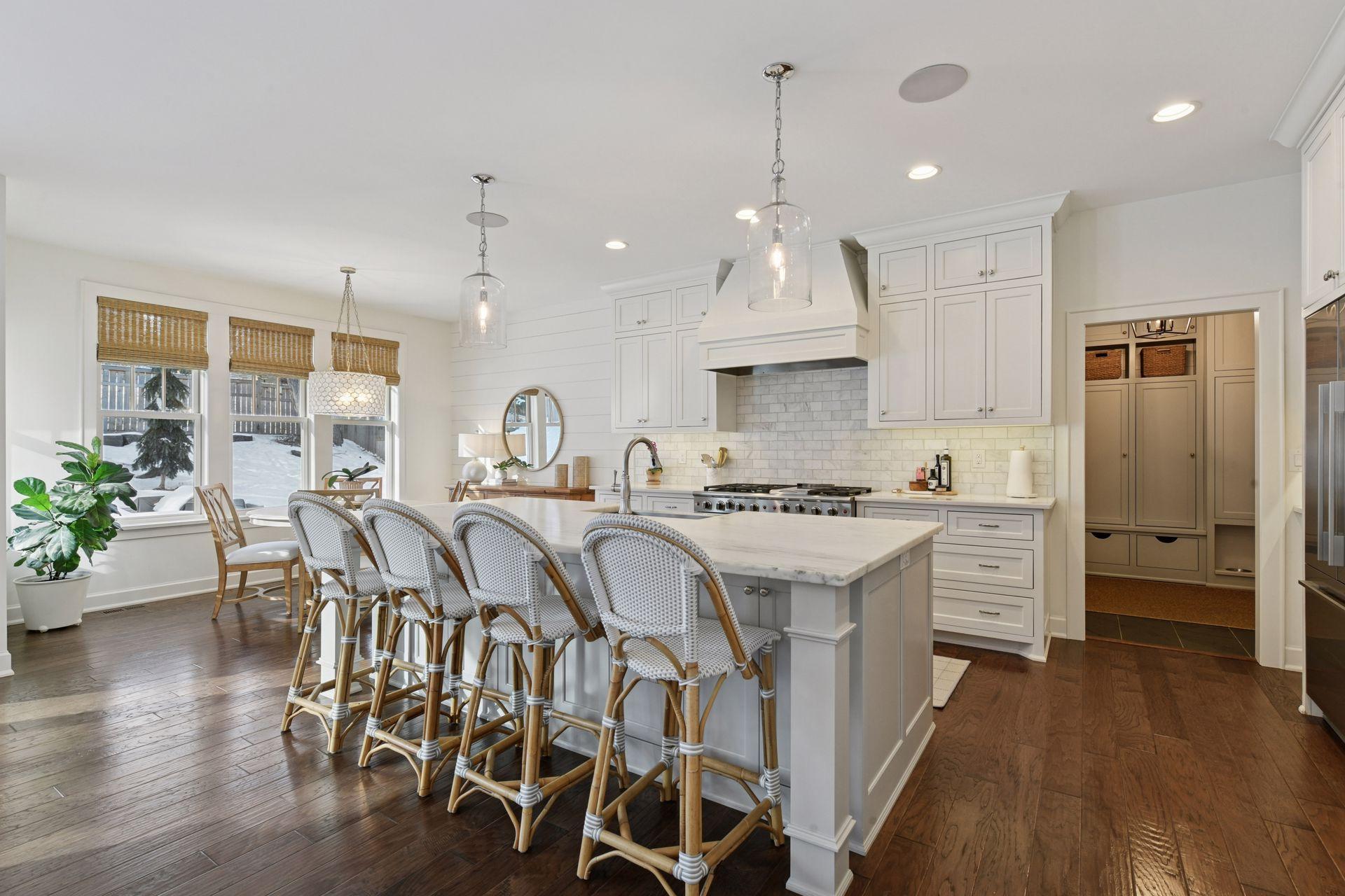 SHOWINGS START ON THURSDAY, 2/19, AT 11AM. Stunning newer construction Edina home on a quiet, winding street. This 5 bedroom/ 5 bath home which is owned by an interior designer is loaded with custom details: beautiful built-in's, stylish lighting + wallpaper and fabulous decor. The charming exterior welcomes you into a spacious 2 story foyer w/ open staircase and an adjoining library. The main living space features a sun-filled great room w/ beamed ceiling, fireplace and built-ins. The kit. feat. a large island, 48" range, walk-in pantry, and informal dining room that overlooks the backyard. An additional formal dining room features a lovely built-in bar area. The 2nd floor has an exceptional layout with 4 bedrooms + a separate study. The primary suite includes a luxe bathroom and spacious walk-in closet. 2nd floor laundry room. The lower level is the perfect retreat: family room, game area, wet bar + wine room and a flex space currently used as an exercise room. A 5th bedroom and 3/4 bath round out the lower level. Gorgeous yard with mature landscaping + 2 stone patios and a custom stone gas fire pit and a side dog run. Fenced yard. 2 car attached garage.