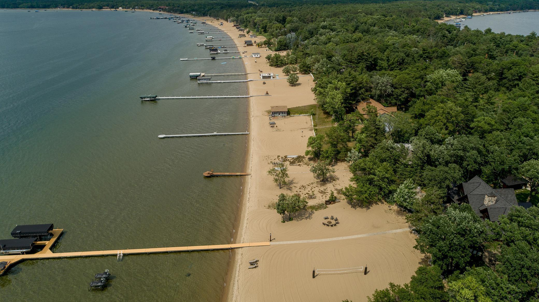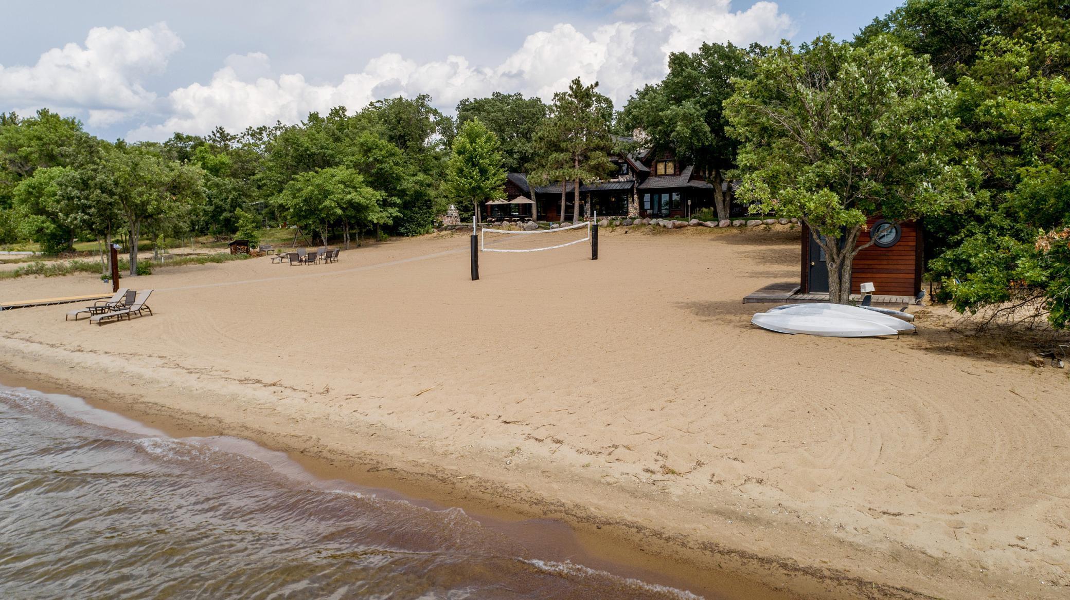 Available for only the second time in 50 years, this extraordinary legacy property offers 164 feet of level, sandy shoreline—both above and below the waterline. The hard sand bottom and exceptional water clarity provide ideal conditions for swimming and lakeside enjoyment, with no weeds and safe, accessible entry. The residence is a high-end custom Lands End build, thoughtfully designed for multigenerational living and memorable family gatherings. It features numerous private suites and spacious bunk rooms, all finished with premium natural materials including real wood, stone, and tile. State-of-the-art entertainment and sound systems enhance both relaxation and hosting. The lower level is a standout, expertly designed for comfort, recreation, and seamless use of space. Every detail of the home reflects careful planning to support an exceptional family experience. A rare offering that beautifully combines luxury, comfort, and timeless lake living—ideal for buyers seeking a distinctive legacy property to enjoy for generations.
