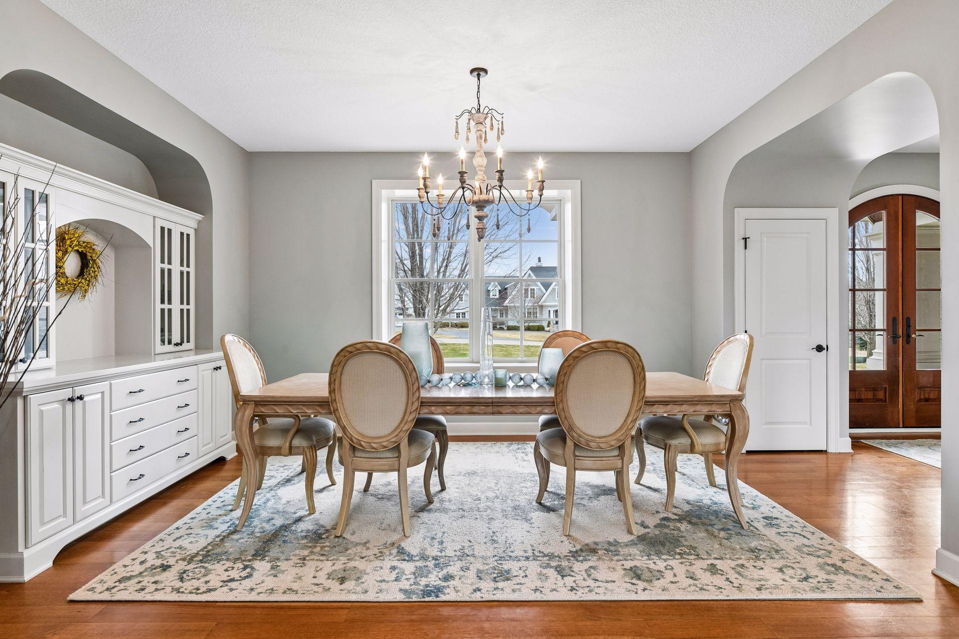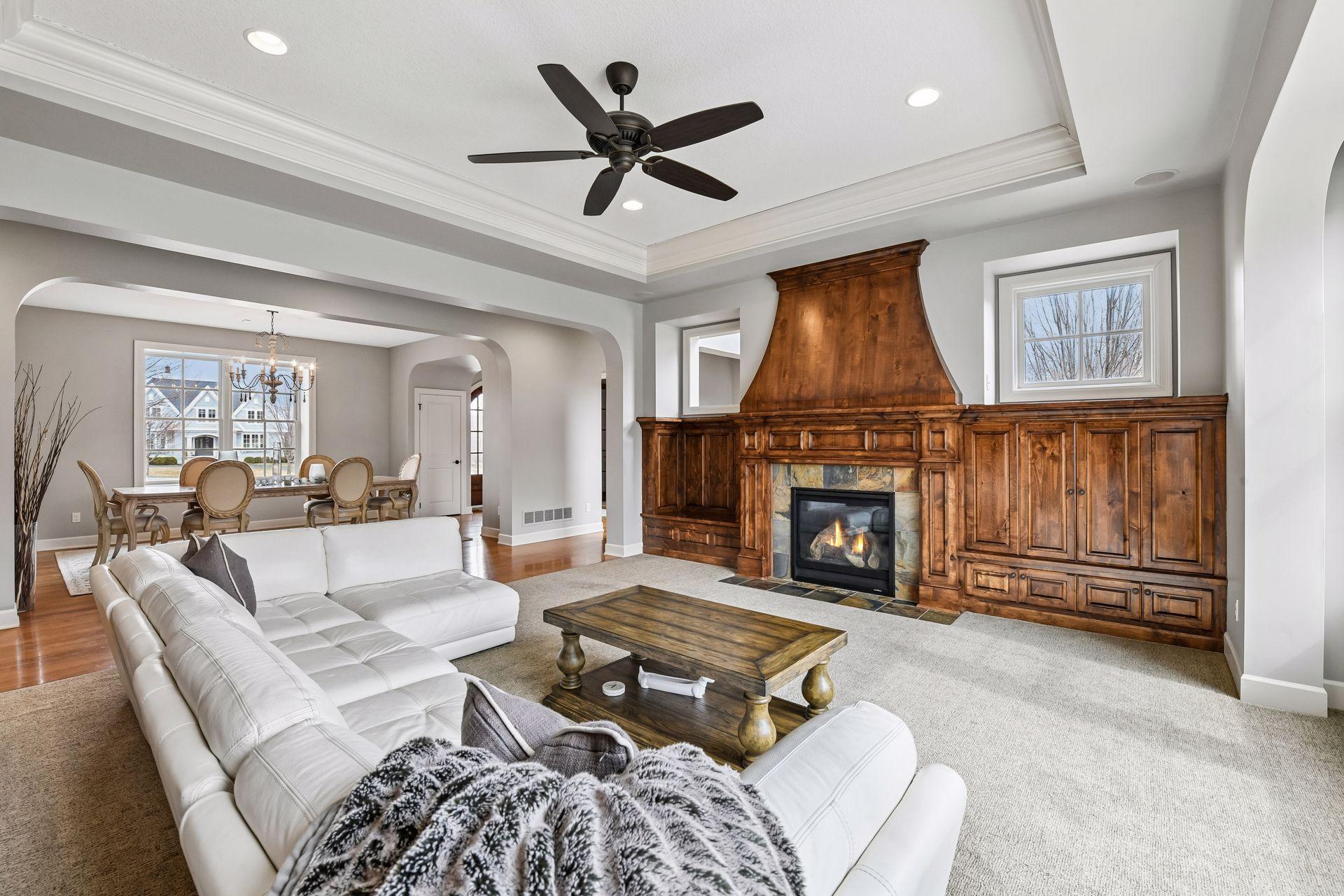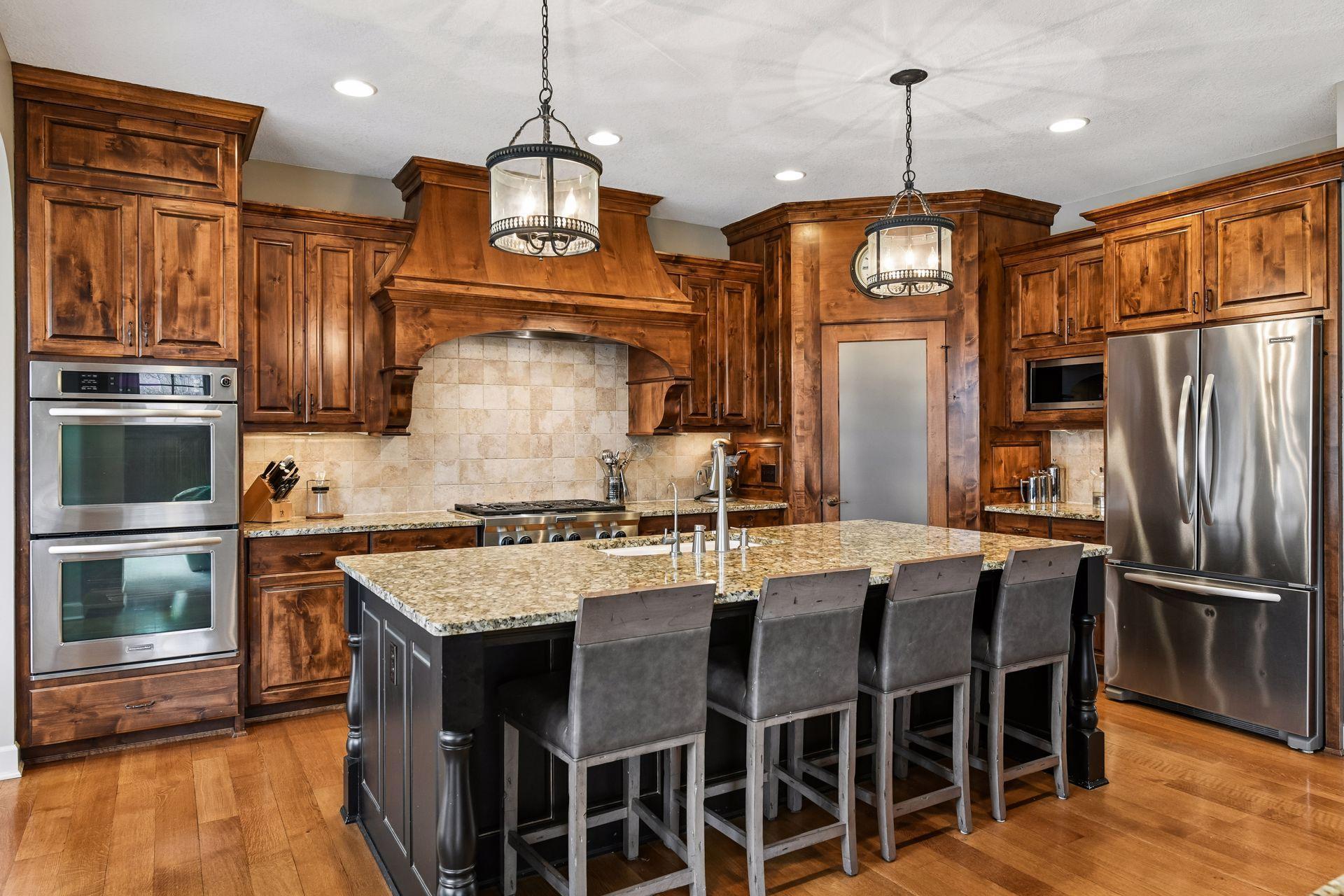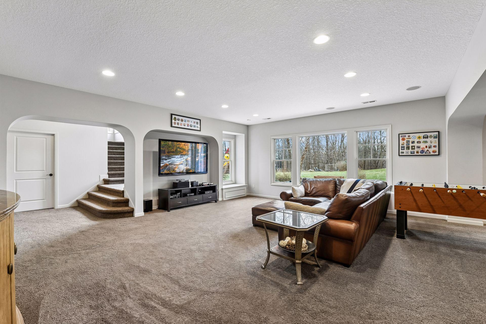 Stunning Charles Cudd built two story home set on 2.13 private acres, abutting woods and the Luce Line Trail in Orono’s premier estate neighborhood, Graham Hill Preserve. This home offers an exceptional balance of privacy and refined neighborhood living. Exquisite architectural details are showcased throughout, including custom cabinetry, arched openings, dramatic gallery hallways, and oversized windows that fill the home with natural light. The spacious open floor plan is ideal for everyday living and effortless entertaining. The main level features a chef’s kitchen with double islands, walk in pantry, and high-end appliances. An adjacent sunroom with three walls of windows provides a bright and inviting retreat, perfect for morning coffee or flexible living space. Additional main level highlights include a formal dining room with built in buffet, dedicated home office, spacious office/den, and a mudroom with lockers. The upper level offers a private primary suite with its own entry hall and sweeping wooded views, along with three additional spacious bedrooms. A bonus room provides excellent flexibility as a study, media room, or additional bedroom. The lower level is designed for recreation and relaxation, complete with heated floors, a large media area, generous space for game tables, room for a future bar, and a full sport court with 16-foot ceilings. A spacious four car garage with floor drains and roughed in for heat completes the home. Graham Hill Preserve amenities include a community tennis/pickleball/basketball court, gazebo, firepit, walking paths, and access to the Luce Line Trail. Located within the highly sought after Orono School District, with a convenient five-minute drive to campus.