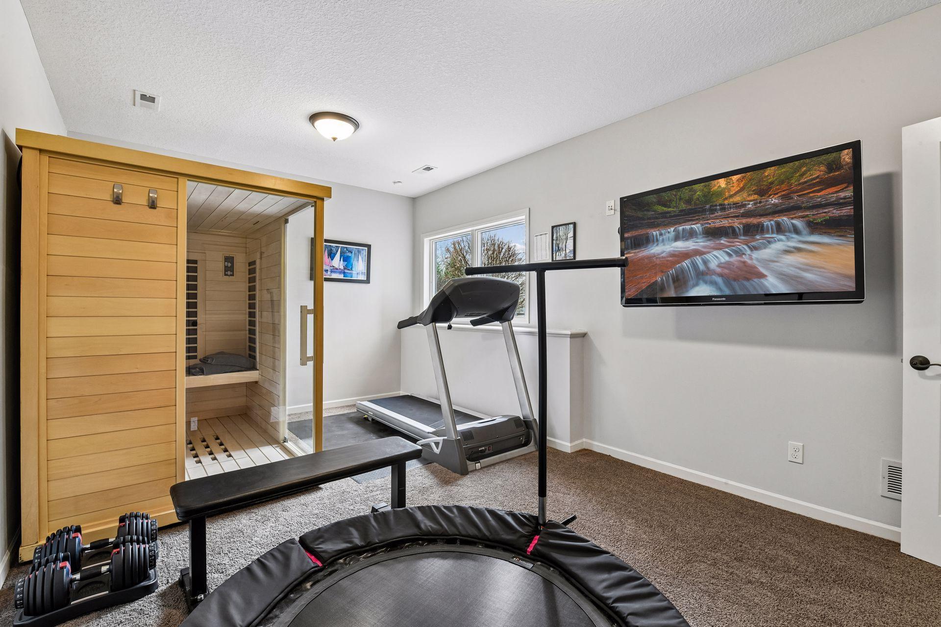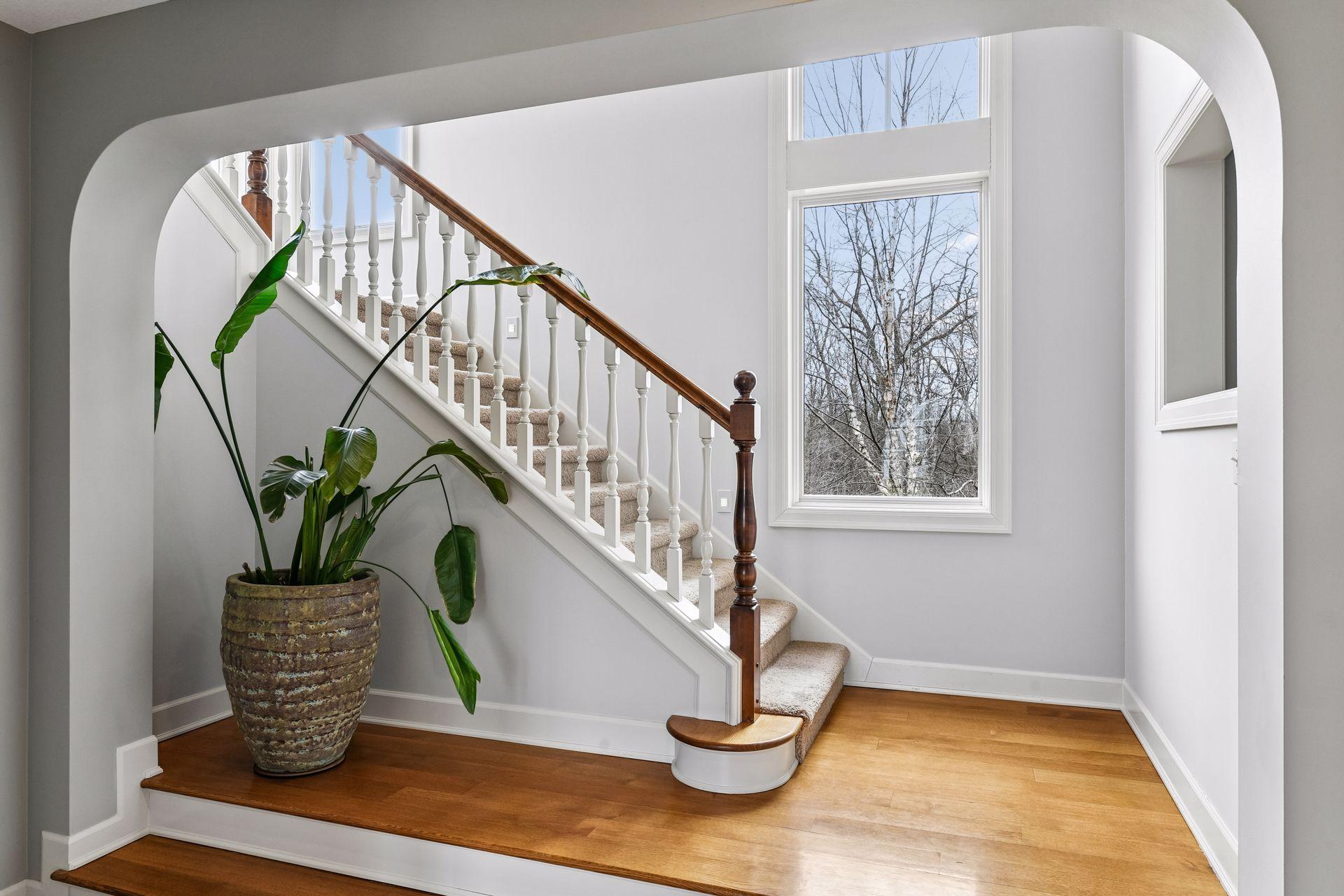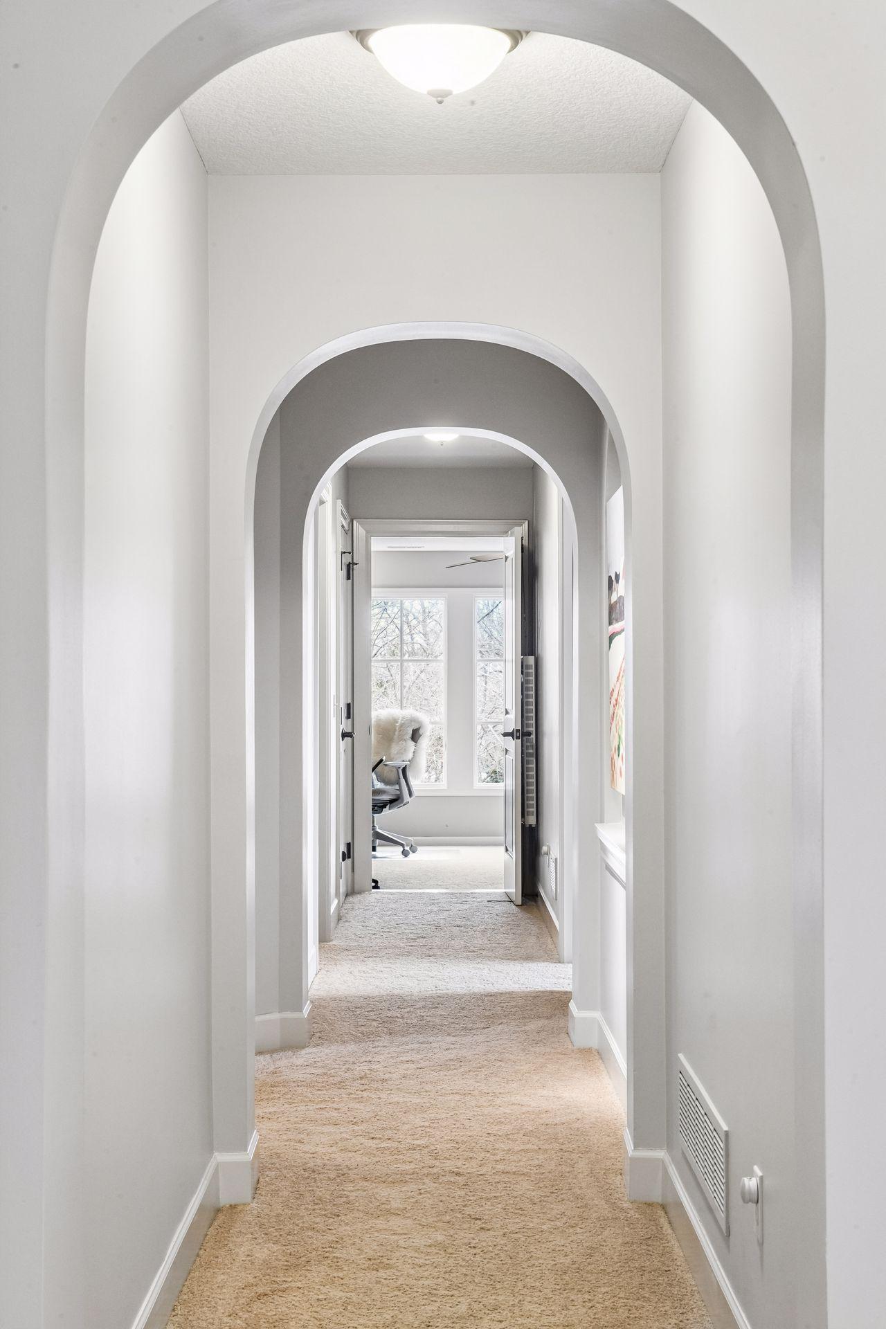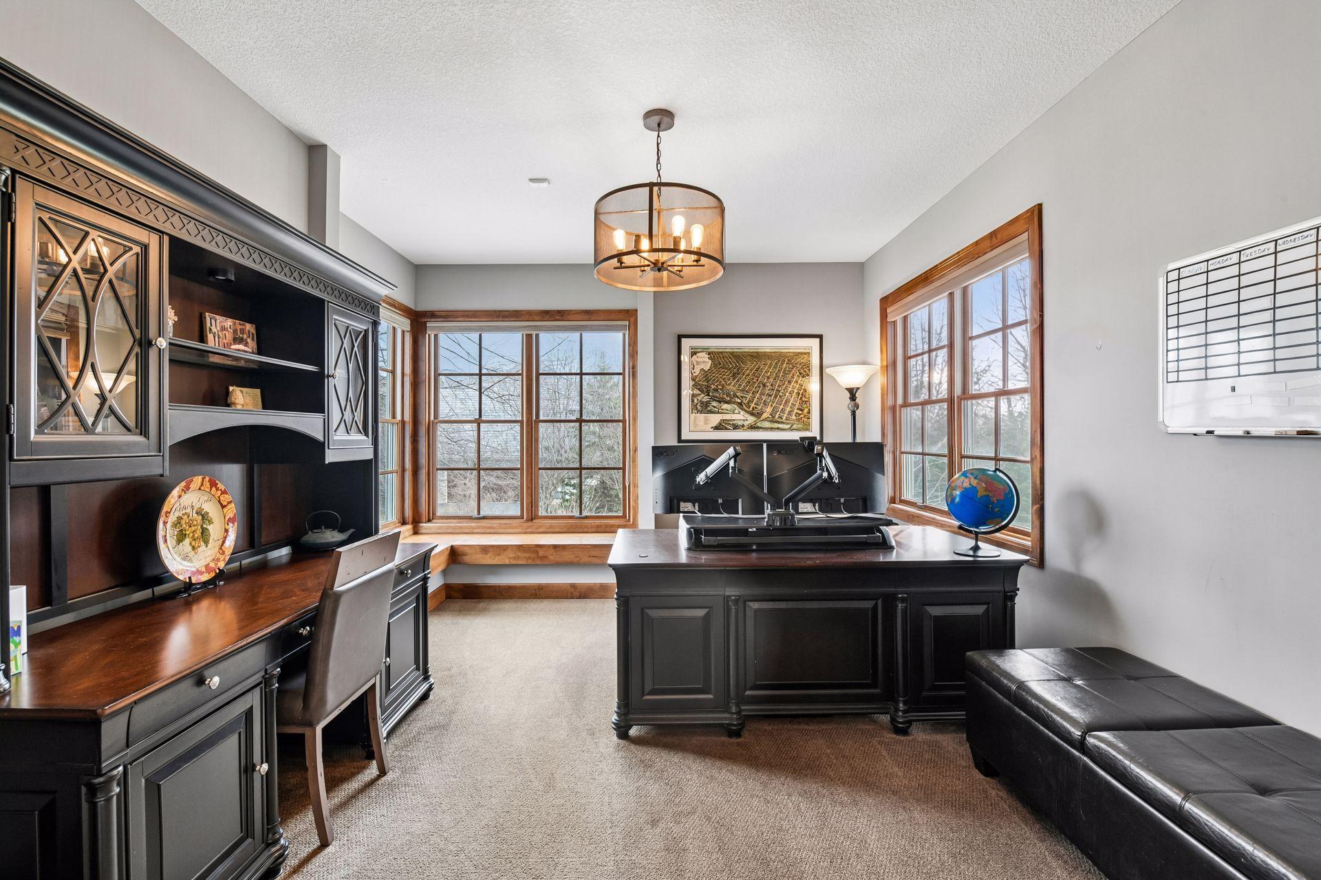 Stunning Charles Cudd built two story home set on 2.13 private acres, abutting woods and the Luce Line Trail in Orono’s premier estate neighborhood, Graham Hill Preserve. This home offers an exceptional balance of privacy and refined neighborhood living. Exquisite architectural details are showcased throughout, including custom cabinetry, arched openings, dramatic gallery hallways, and oversized windows that fill the home with natural light. The spacious open floor plan is ideal for everyday living and effortless entertaining. The main level features a chef’s kitchen with double islands, walk in pantry, and high-end appliances. An adjacent sunroom with three walls of windows provides a bright and inviting retreat, perfect for morning coffee or flexible living space. Additional main level highlights include a formal dining room with built in buffet, dedicated home office, spacious office/den, and a mudroom with lockers. The upper level offers a private primary suite with its own entry hall and sweeping wooded views, along with three additional spacious bedrooms. A bonus room provides excellent flexibility as a study, media room, or additional bedroom. The lower level is designed for recreation and relaxation, complete with heated floors, a large media area, generous space for game tables, room for a future bar, and a full sport court with 16-foot ceilings. A spacious four car garage with floor drains and roughed in for heat completes the home. Graham Hill Preserve amenities include a community tennis/pickleball/basketball court, gazebo, firepit, walking paths, and access to the Luce Line Trail. Located within the highly sought after Orono School District, with a convenient five-minute drive to campus.