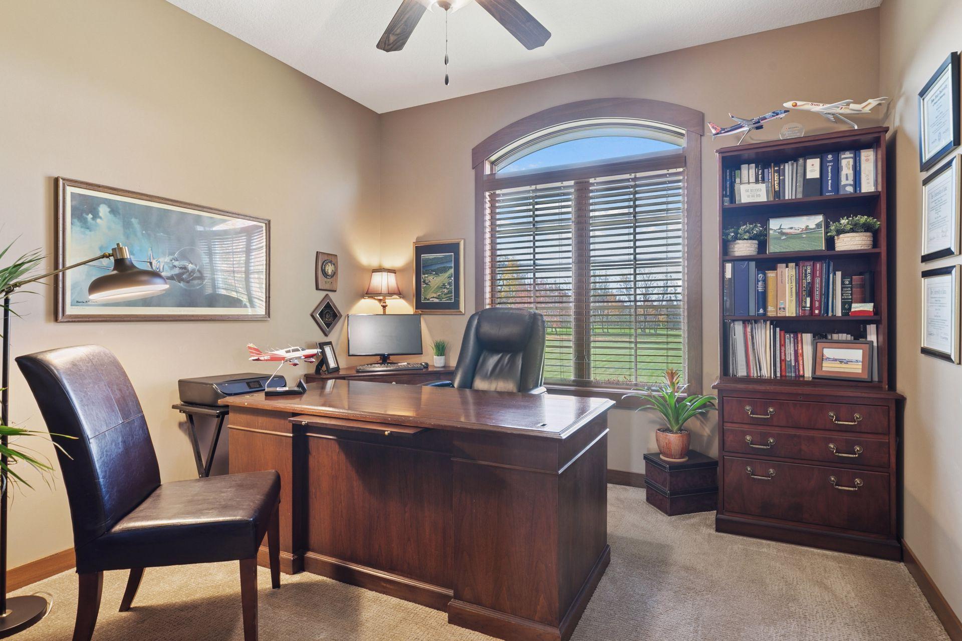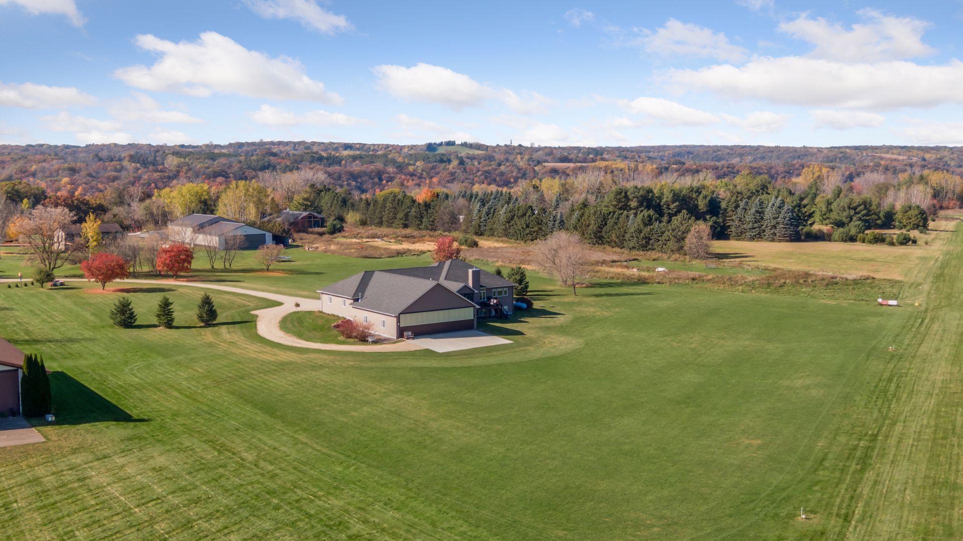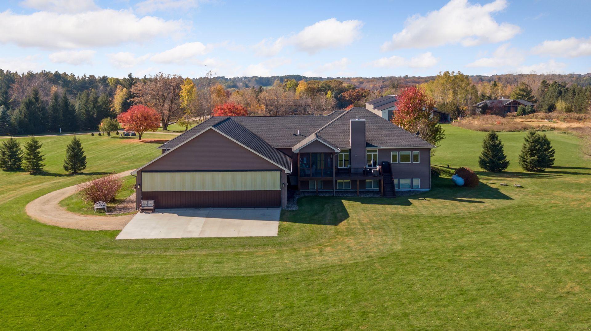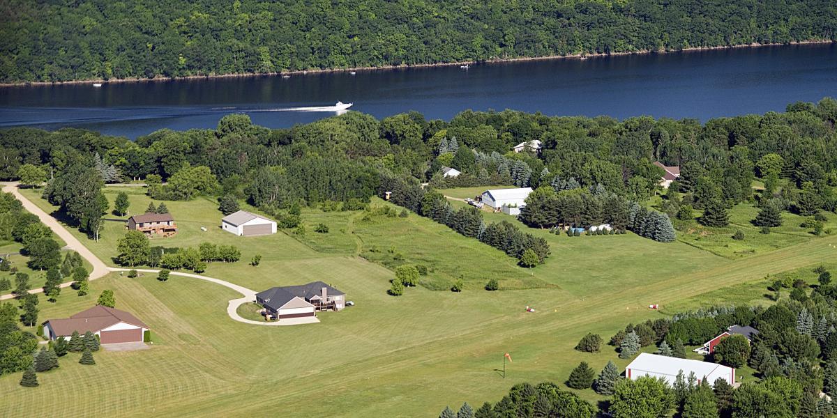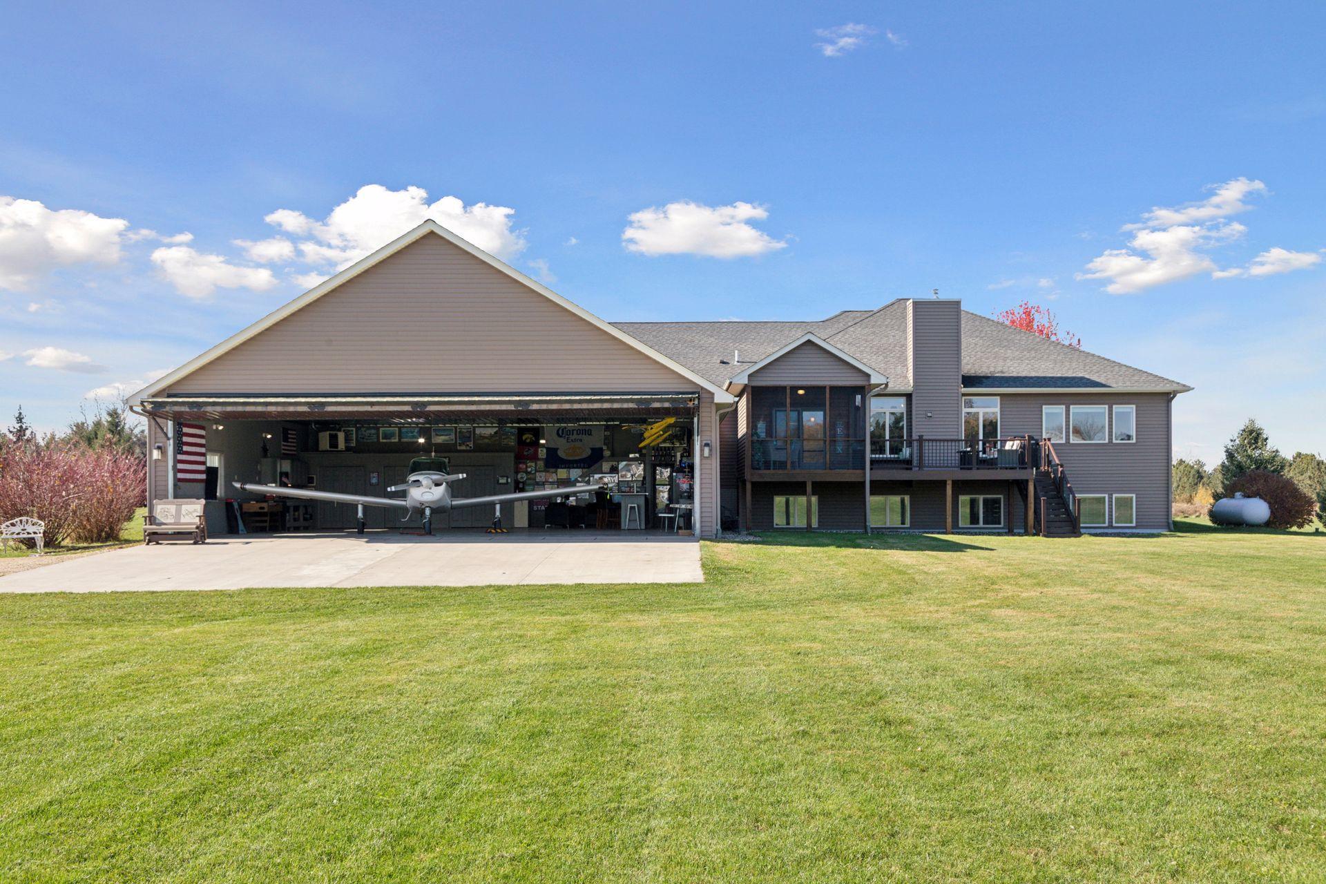 St. Croix River access! Enjoy prime beach and private marina, private airpark with airstrip runway and hangar. A truly rare offering for both aviation and river enthusiasts, this exceptional 5-acre prime property provides direct access to a meticulously maintained private grass runway including 1,700 feet of primary active runway and an additional 1,100 feet of maintained overrun on the northwest. Taxi effortlessly from your attached 1,760 SF heated hangar to the runway and be airborne within moments or invite your aviation friends to land and linger for a while. Set within the St. Croix Riviera Association, this custom-built Hartman Homes lookout rambler seamlessly blends the freedom of airpark living with refined luxury and riverfront beach recreation. Designed and built by one of Hudson’s premier luxury builders with decades of experience, the residence reflects timeless craftsmanship, thoughtful design, and elevated comfort throughout. Step inside to a flood of natural light and sweeping views of the manicured airpark grass runway. Elegant architectural details, from cove-lit ceilings, a wood-burning fireplace to handcrafted cabinetry and natural stone surfaces reflect Hartman’s signature artistry and designer finishes. The main-floor primary suite offers a serene retreat, complemented by a second spacious bedroom and a private office. The kitchen opens seamlessly to inviting living and dining spaces, flanked by the three-season porch with immediate access to the tranquil yet expansive low maintenance deck, ideal for entertaining or quiet evenings at home. The lower level is designed for relaxation and fun, featuring a wet bar, exercise room, spa-style bath, media and family area, guest suite, and even a hidden play space. Rough ins are prepared for a potential fifth bedroom, if desired. A secondary staircase connects directly to the private heated hangar for effortless convenience. Enjoy year-round indoor-outdoor living overlooking your 5-acre retreat. A 6-car garage adjoins the home, step down a few steps to the attached 1,760 SF heated airplane hangar/shop with wet bar and bathroom, making this home ideal for pilots, boaters, golf enthusiasts, or for horse lovers; an outbuilding is allowed to be built. Lifestyle - The St. Croix Riviera Association offers a special lifestyle with private access to a sandy beach, marina with dock slips, and a charming beach house for gatherings or swimming adventures. Just minutes from Hudson, River Falls, and Prescott, the community sits across from Afton State Park and near Kinnickinnic State Park, offering endless recreation along the scenic St. Croix River, a national treasure known for its beauty, serenity, and fun in the sun. Take your golf cart down to the beach to join family in boating, grilling, jet skiing, and finish the day taking in the sunsets. Association dues here are refreshingly modest, $575 per year, including airstrip, beach, and marina. Bring your airplane, boat, or horses and experience a home that fuses luxury, lifestyle, and freedom in one remarkable address.