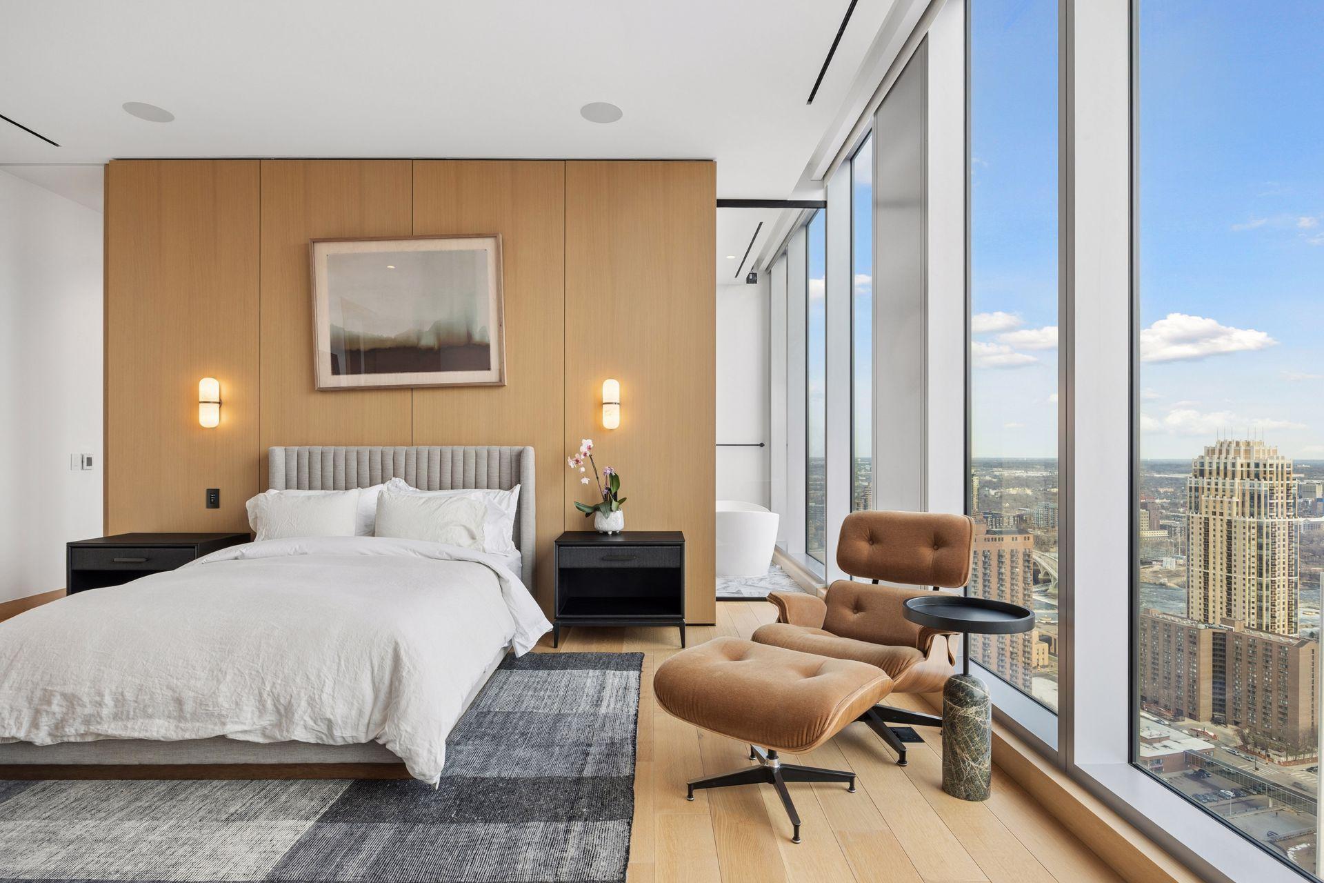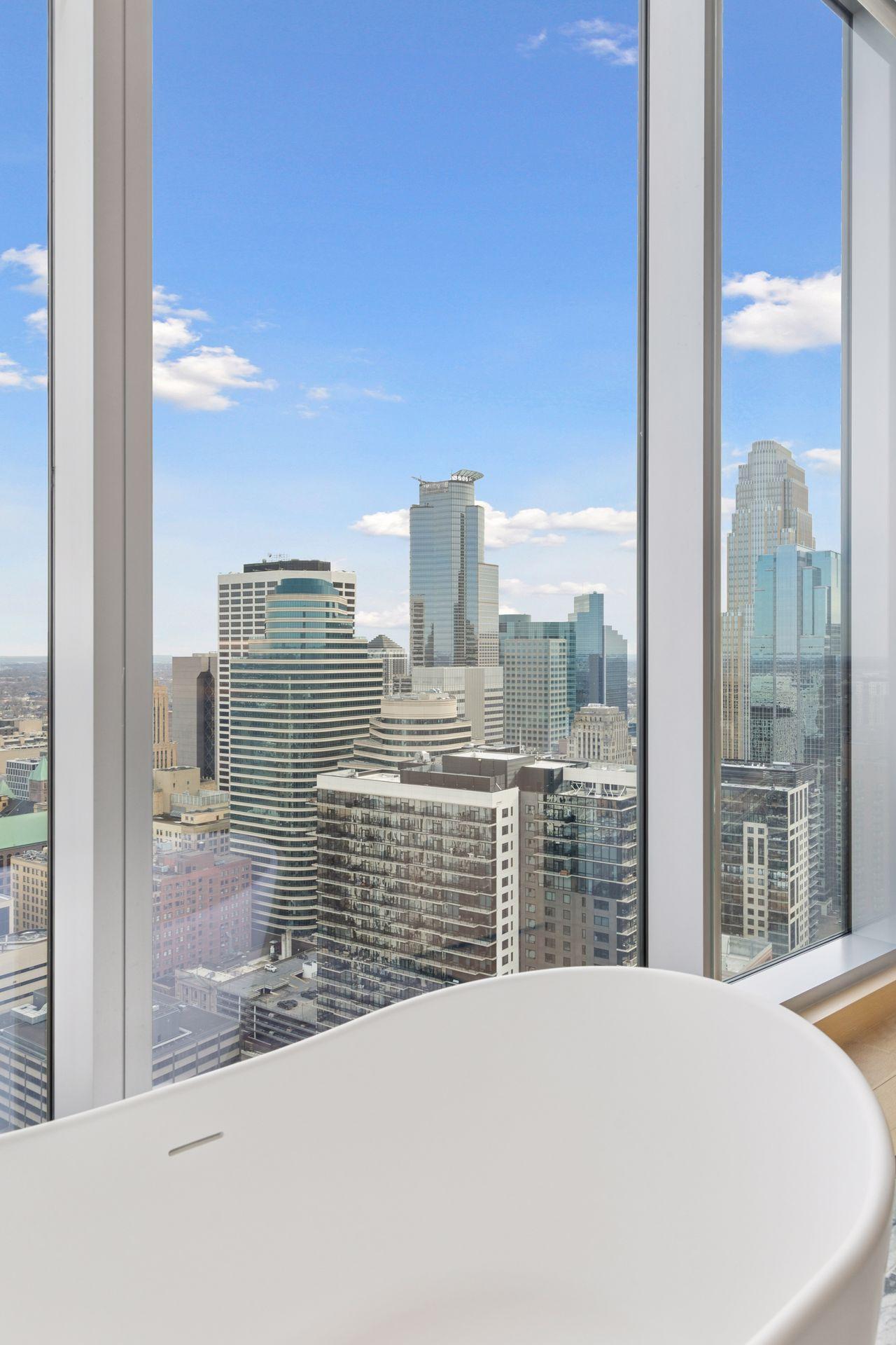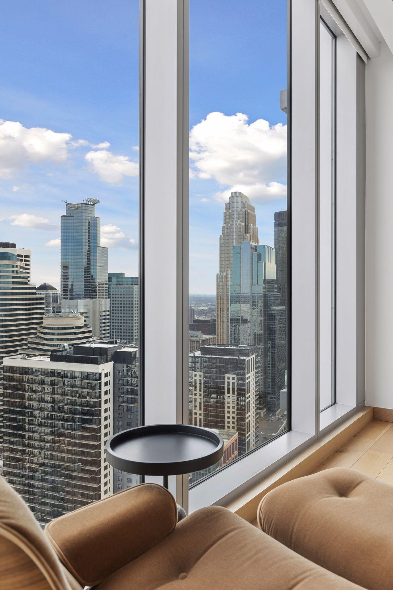 Welcome to a new standard of luxury at Four Seasons Private Residences. This elegant one bedroom floor plan has been barely lived in, and was designed to maximize the incredible easterly city skyline views, giving incredible views of the Minneapolis skyline and abundant morning sunshine. Designed by award winning MSR Design in the exclusive Nordic Palette, the sleek kitchen stars chic marble countertops & backsplash, Sub-Zero & Wolf appliances, & wide plank white oak flooring & wall treatments throughout the home. Furnishings by MartinPatrick 3 are negotiable with offer. The owners suite features exceptional views from the floor to ceiling windows, a brand new custom closet system, a glass enclosed shower & stand alone soaking tub with amazing city views. Wolf gas grill & overhead heater included on terrace, ideal for al fresco entertaining.