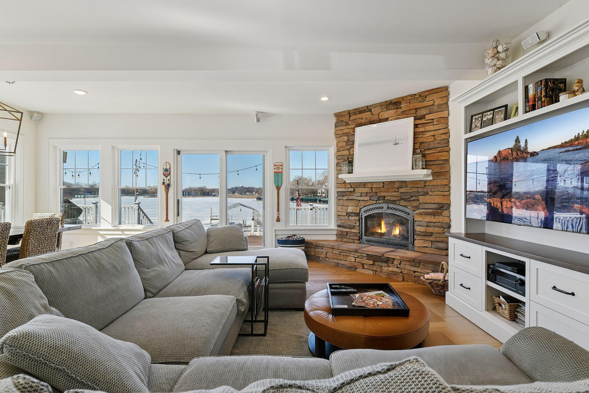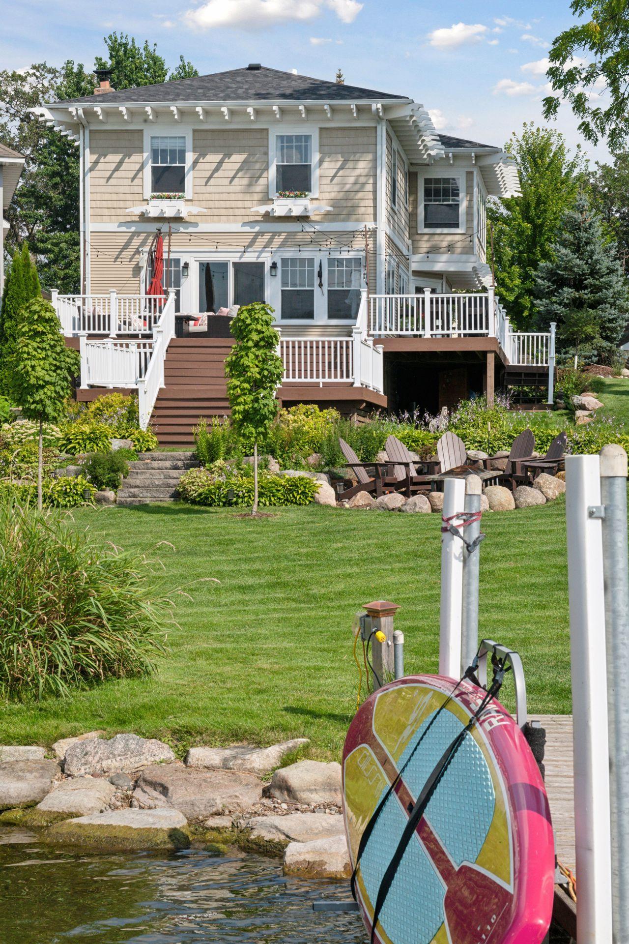 Lake Minnetonka Beach House! Completely remodeled lakeshore home with charming coastal design, lush lawn and long, sunset-facing views over the bay. Timeless details throughout including crisp white interior, wide-plank wood floors and unique ceiling detail. Main floor features center-island kitchen, great room with fireplace and wall of glass showcasing panoramic lake views. Upper level includes lakeside primary suite, two additional bedrooms with adjacent bath and a bonus family room/entertainment space with bar. Lower level features flex room, additional bath and plenty of storage. Many updates including new kitchen, bathrooms, windows and more. Move in and enjoy summer on the lake!