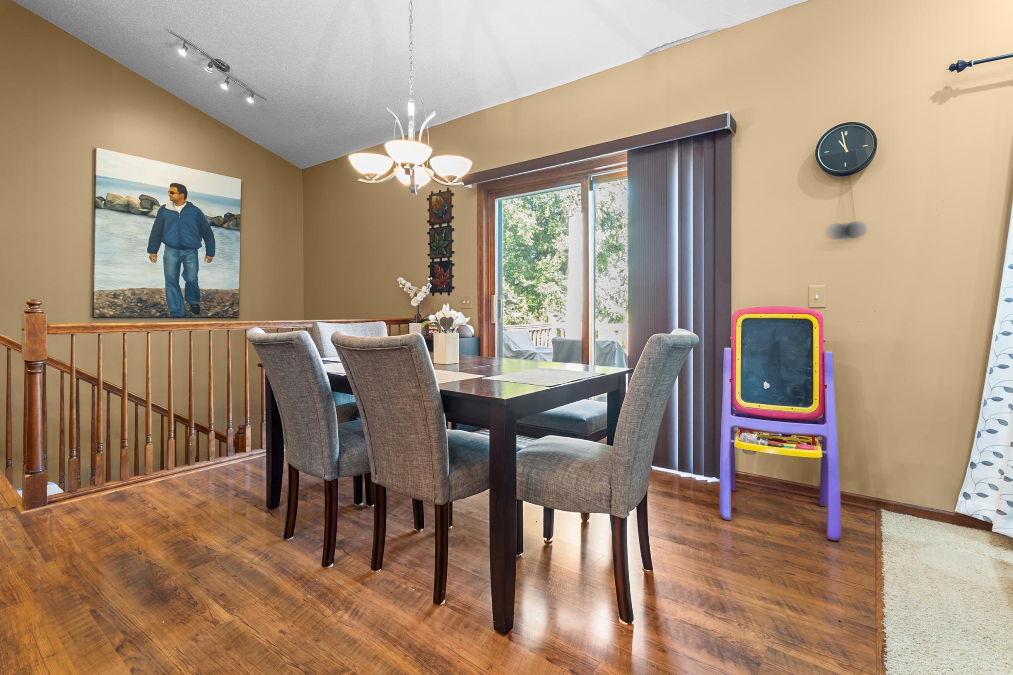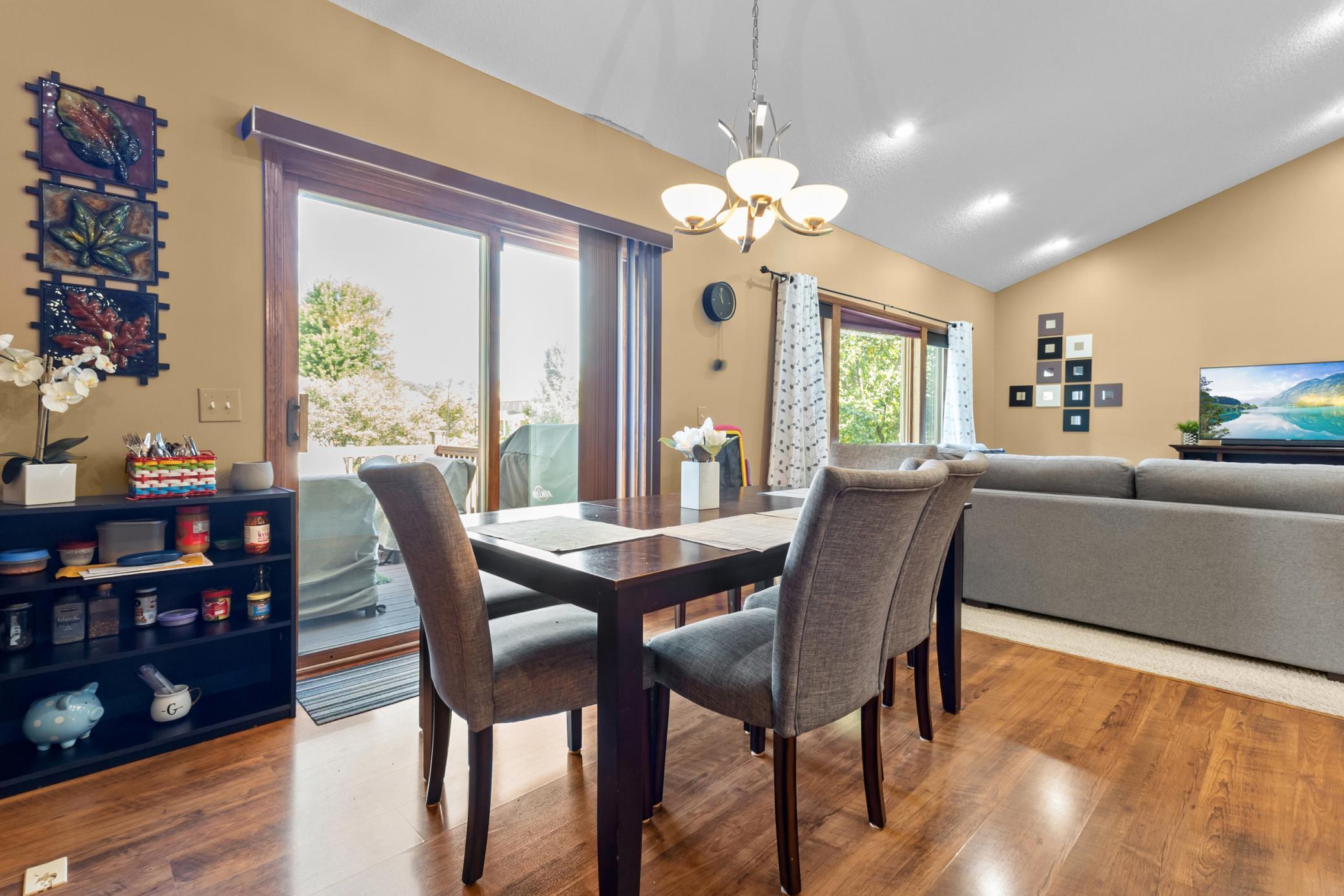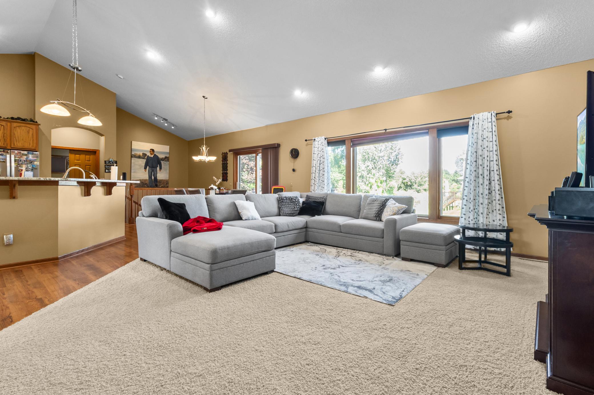 Finished walkout basement, large deck, newer SS appliances, open floor plan, vaulted ceilings, formal