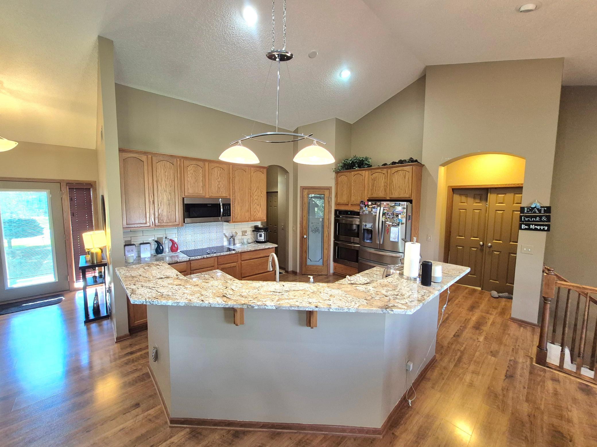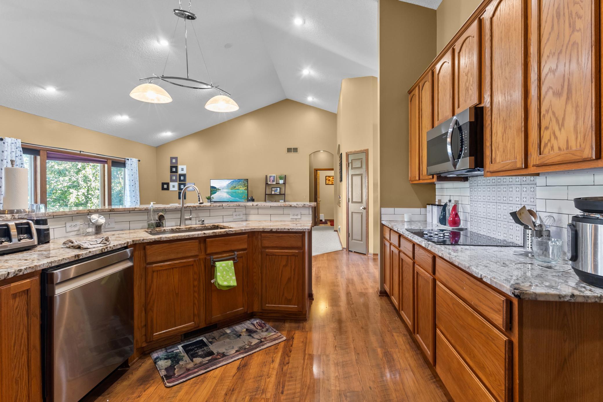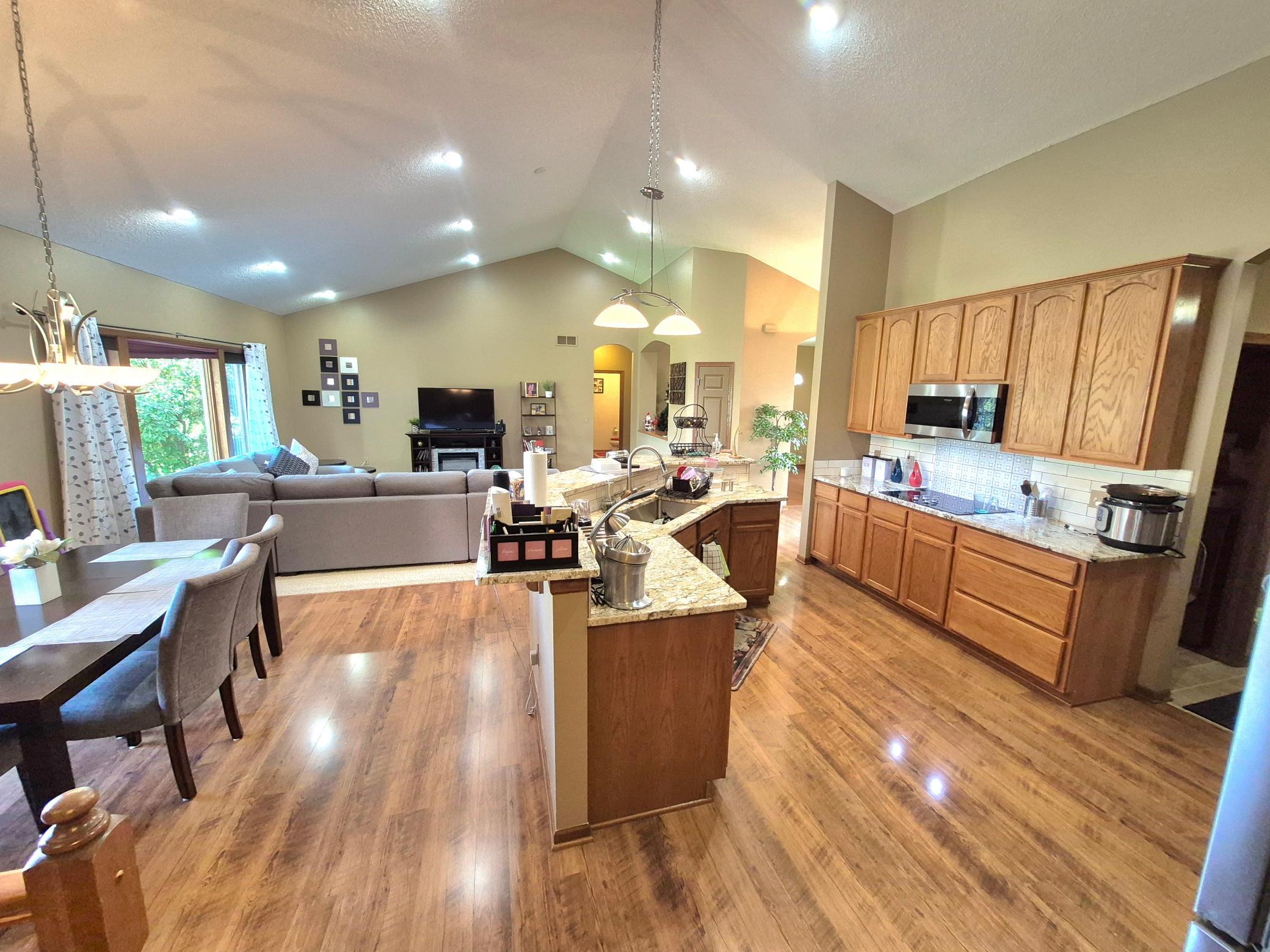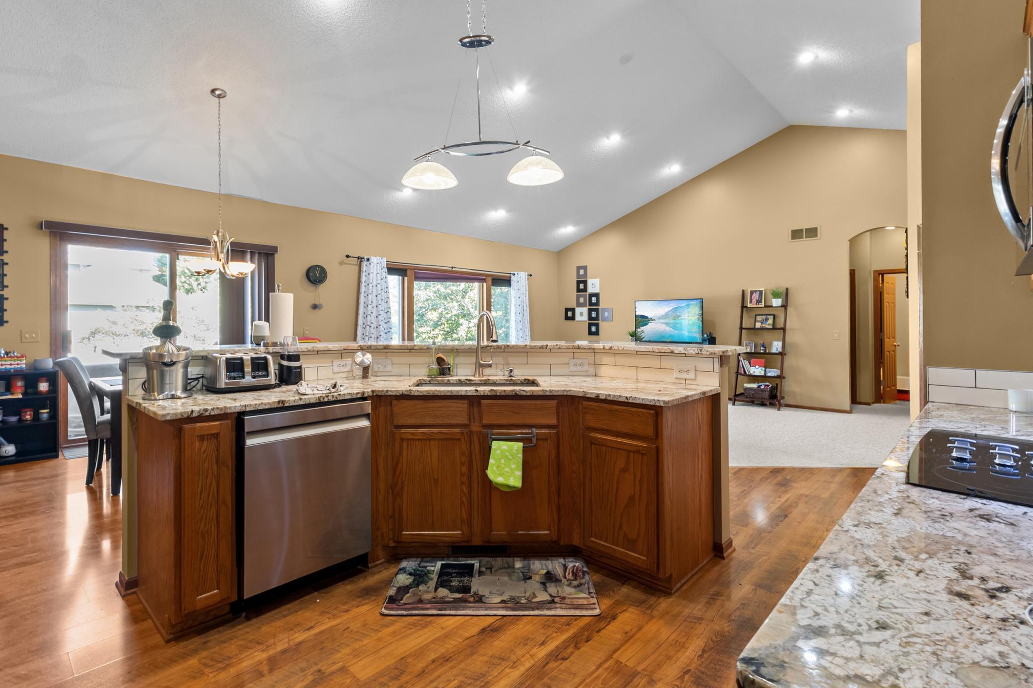 Finished walkout basement, large deck, newer SS appliances, open floor plan, vaulted ceilings, formal