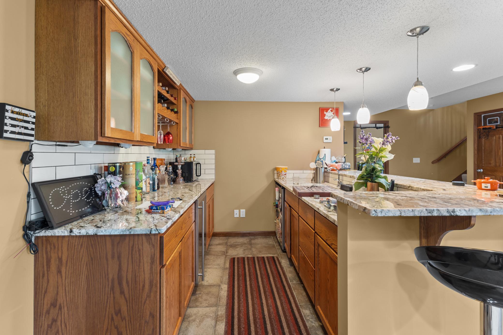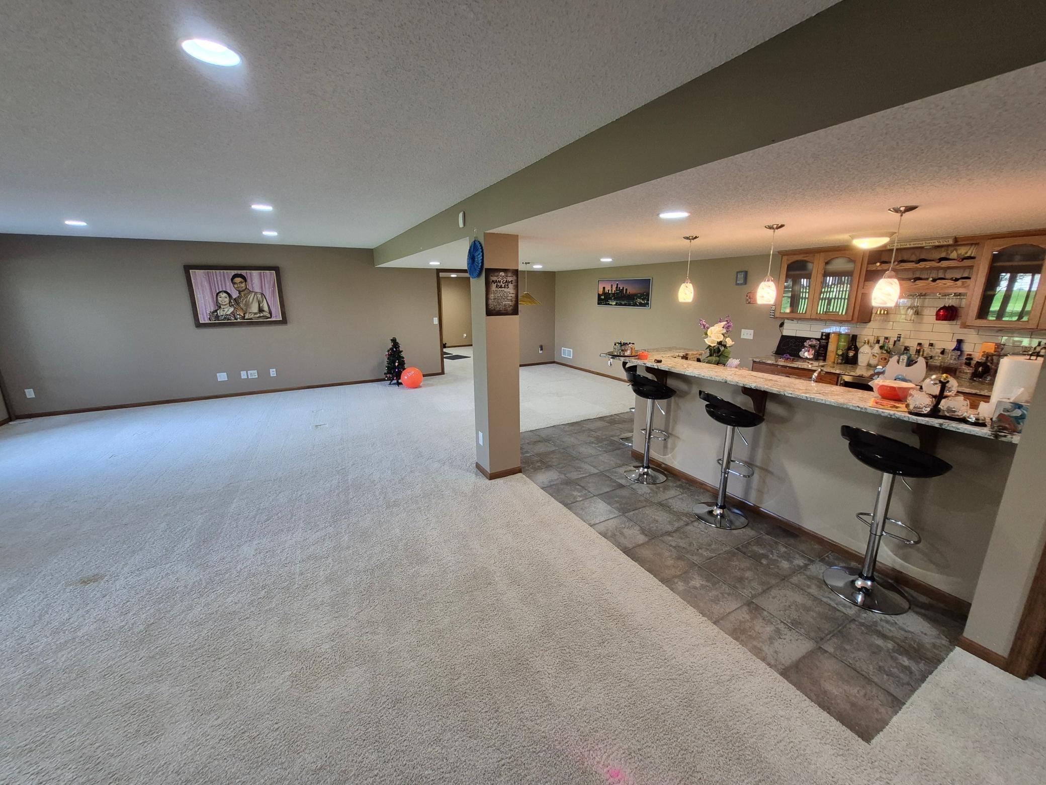 dining room, main floor office, granite countertops, back splash, wet bar with fridge and wine cellar, finished three car garage with heater and epoxy flooring, nearly 4,000 finished square feet, exercise/theatre room, large paver patio, huge .35 acre manicured lot, roof and siding replaced five years ago! plenty of trails, parks and lakes, also near the national sports and shopping center. Could be available before May 1.
