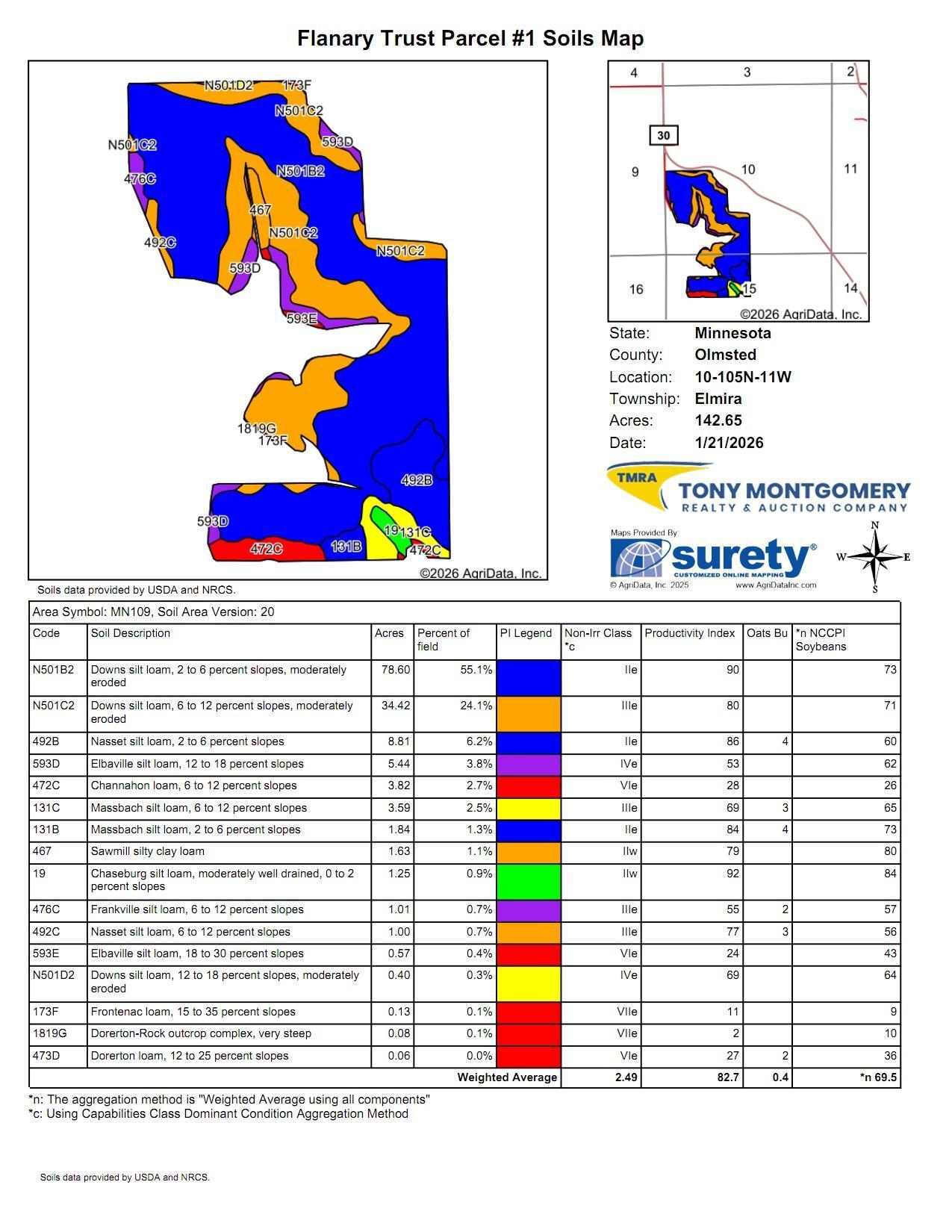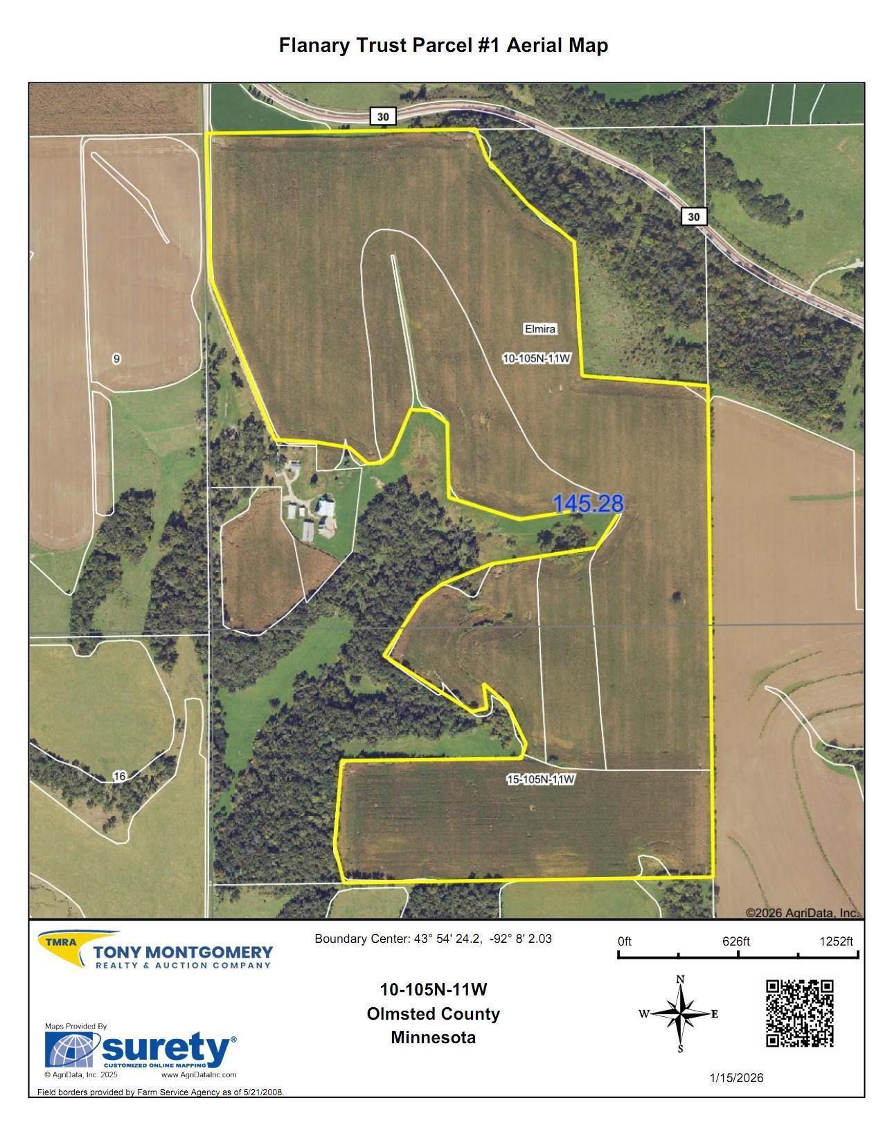 Size: 145.28 +/- Surveyed Acres in Olmsted County, Elmira Township, Sections 10 & 15.