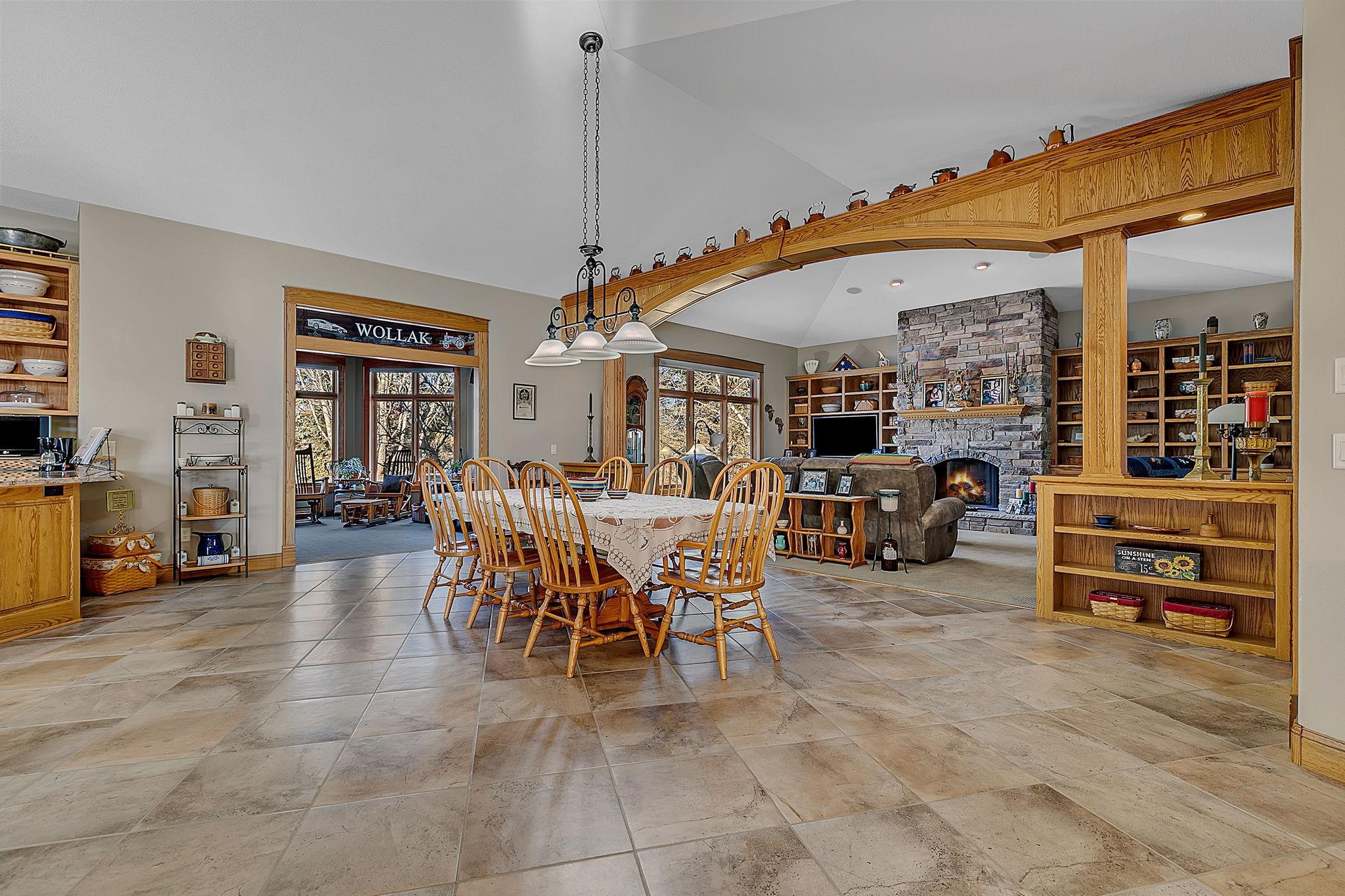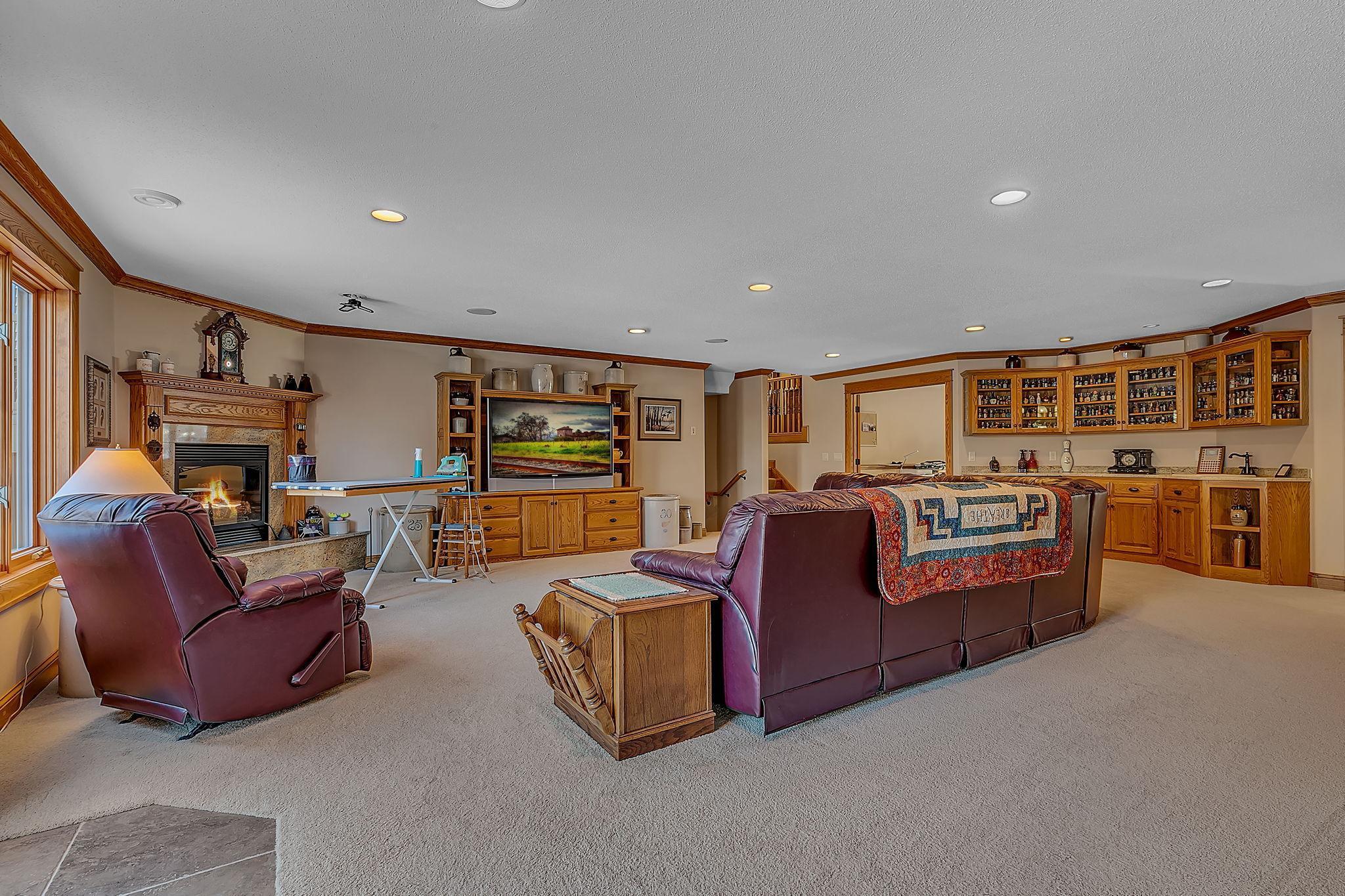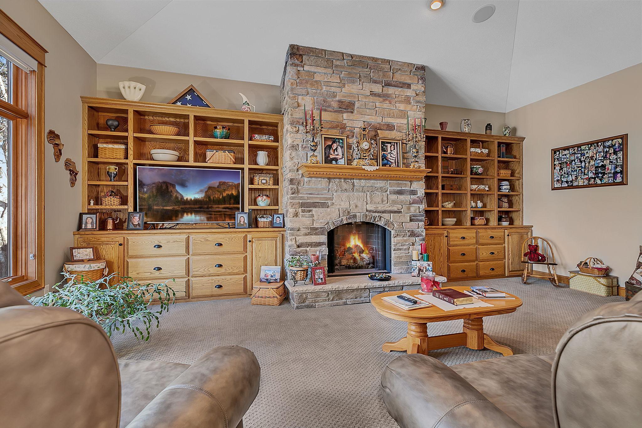 Experience an unparalleled lifestyle in this masterfully crafted home, boasting over 7,000 finished square feet of versatile living space. The home sits on a remarkable lot that provides sweeping north and west views down the Sauk River, and it includes additional land across the street, plus a perpetual easement for river access through the private wooded property behind the home. This peaceful setting feels like a private sanctuary while remaining conveniently located near Whitney Park, featuring trails, soccer and softball fields, a dog park, and the nearby YMCA and aquatic center. The main floor showcases a massive open great room with an intricately vaulted ceiling, a kitchen loaded with granite countertops, dual wall ovens, and stunning river views, plus formal and informal dining spaces ideal for large gatherings. A gas fireplace anchors the living room, and a four-season room captures serene river views, while a spacious mudroom and convenient main-floor laundry add everyday functionality. Upstairs, three bedrooms include an expansive primary suite with a gas fireplace, a private sitting room overlooking the river, and a bath with dual vanities, jetted tub, and tile shower; the additional bedrooms share a Jack-and-Jill bath. The third level offers two large bedrooms, an office, and a family room with a third fireplace and wet bar, while the basement provides a large rec room and a dedicated hot tub room. Built to exceptional standards, the home features 500-amp service, spray foam insulation, extensive stone and brickwork, CertainTeed Presidential shingles, and in-floor heat in the lower levels. Complete with over 2,000 sq ft of heated and finished garage space for all your vehicles and hobbies, and a neighborhood pool for summer fun, this home is a rare find that combines luxury with active, convenient living.