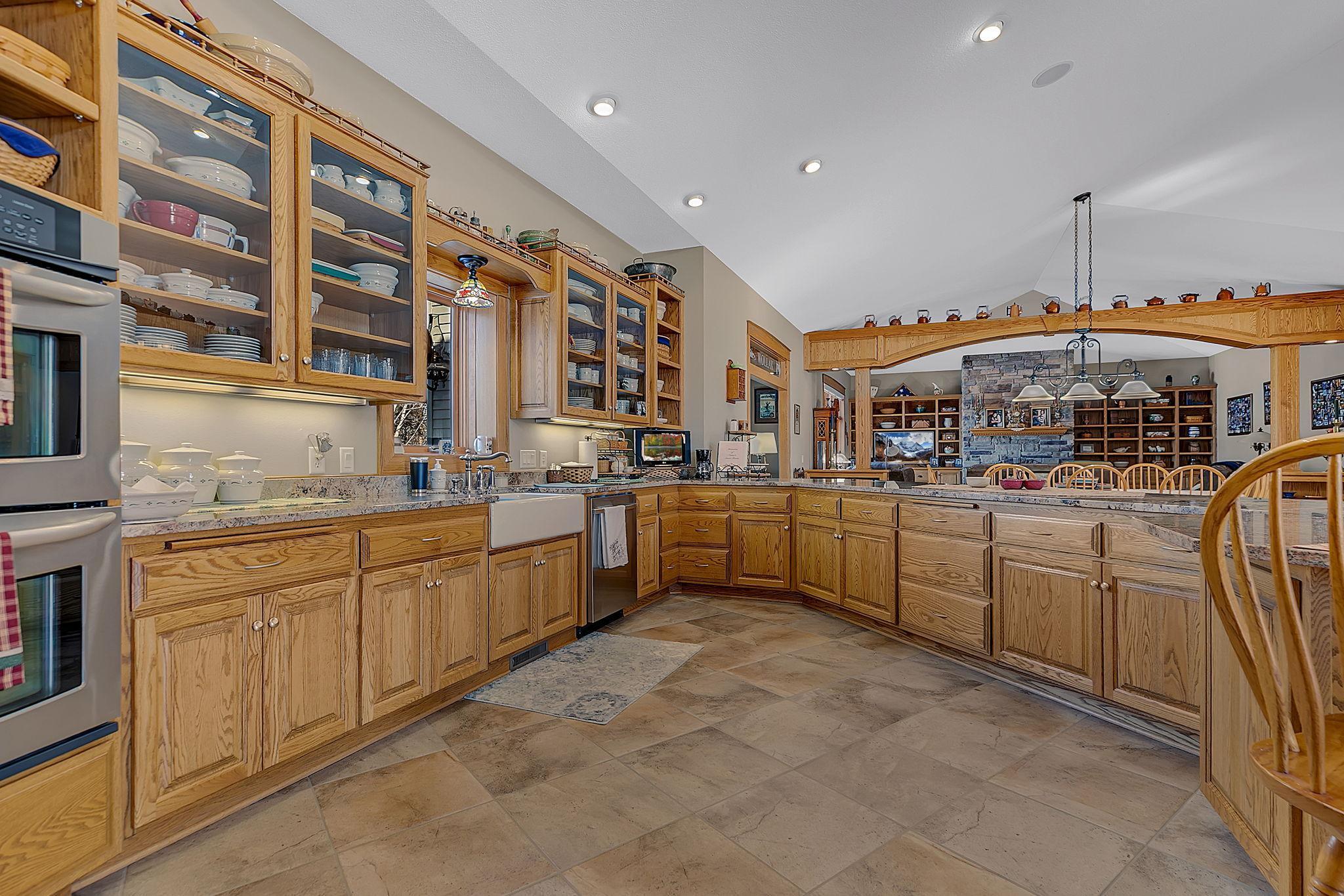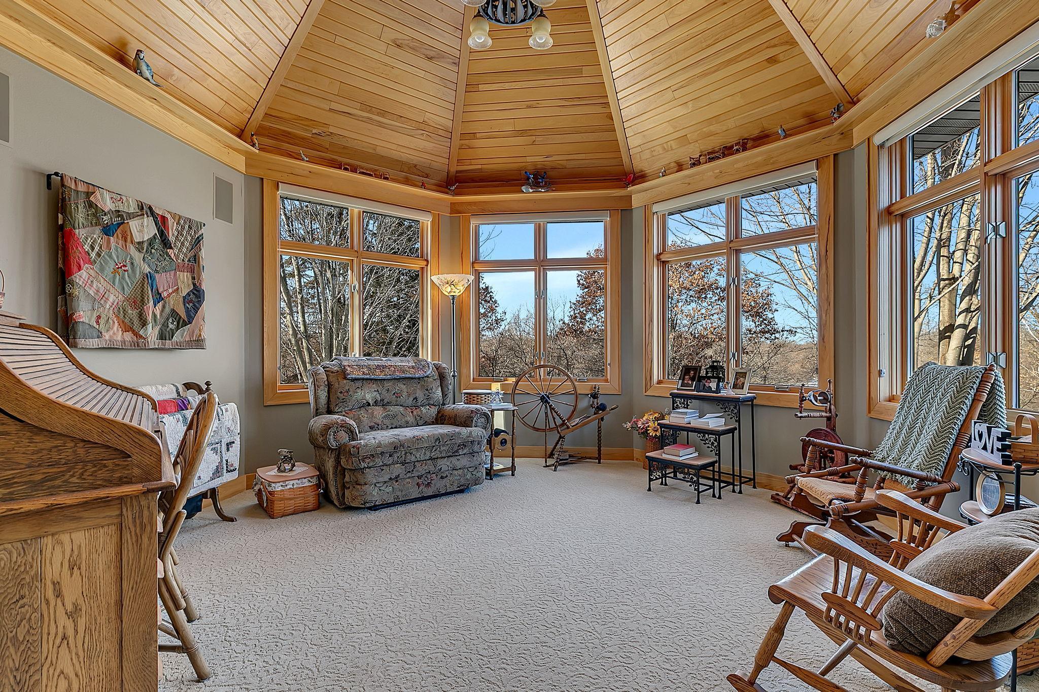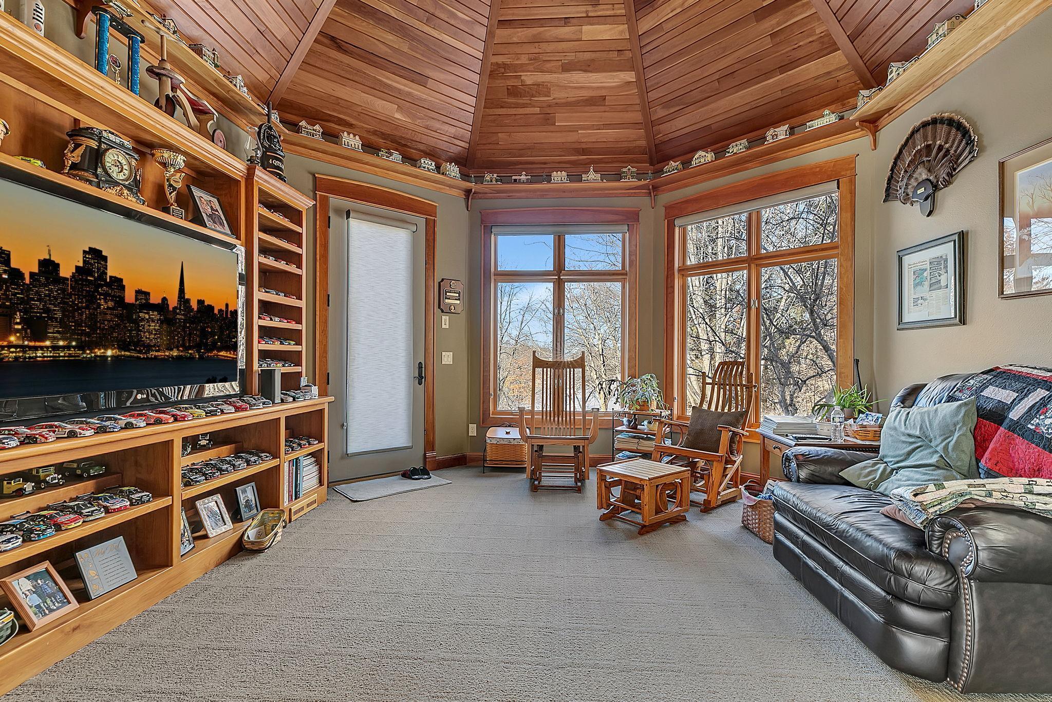 Experience an unparalleled lifestyle in this masterfully crafted home, boasting over 7,000 finished square feet of versatile living space. The home sits on a remarkable lot that provides sweeping north and west views down the Sauk River, and it includes additional land across the street, plus a perpetual easement for river access through the private wooded property behind the home. This peaceful setting feels like a private sanctuary while remaining conveniently located near Whitney Park, featuring trails, soccer and softball fields, a dog park, and the nearby YMCA and aquatic center. The main floor showcases a massive open great room with an intricately vaulted ceiling, a kitchen loaded with granite countertops, dual wall ovens, and stunning river views, plus formal and informal dining spaces ideal for large gatherings. A gas fireplace anchors the living room, and a four-season room captures serene river views, while a spacious mudroom and convenient main-floor laundry add everyday functionality. Upstairs, three bedrooms include an expansive primary suite with a gas fireplace, a private sitting room overlooking the river, and a bath with dual vanities, jetted tub, and tile shower; the additional bedrooms share a Jack-and-Jill bath. The third level offers two large bedrooms, an office, and a family room with a third fireplace and wet bar, while the basement provides a large rec room and a dedicated hot tub room. Built to exceptional standards, the home features 500-amp service, spray foam insulation, extensive stone and brickwork, CertainTeed Presidential shingles, and in-floor heat in the lower levels. Complete with over 2,000 sq ft of heated and finished garage space for all your vehicles and hobbies, and a neighborhood pool for summer fun, this home is a rare find that combines luxury with active, convenient living.
