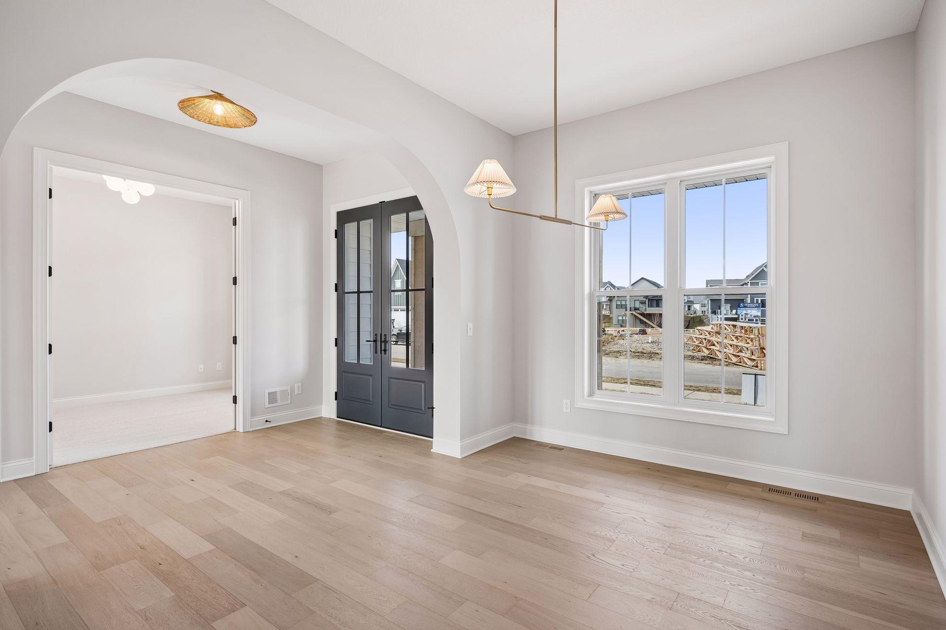 Stonegate Builders proudly presents the Nokomis floorplan in Evanswood! This completed and move-in ready new construction home offers floor-to-ceiling windows on the main level allowing natural light throughout the dinette, great room, gourmet kitchen, formal dining room, sunroom, and office/flex room. The upstairs in the features a primary suite with, along with a luxury soaking tub and walk-in shower. You’ll find bedrooms 2, 3, and 4 on the upper level, with 2 adjoined by a Jack-and-Jill bathroom. An indoor athletic court/exercise room, a fifth bed and bath, a full wet bar, and a rec room are located on the lower level. A newly constructed elementary located within walking distance will be complete and open up for the 2026-2027 school year.