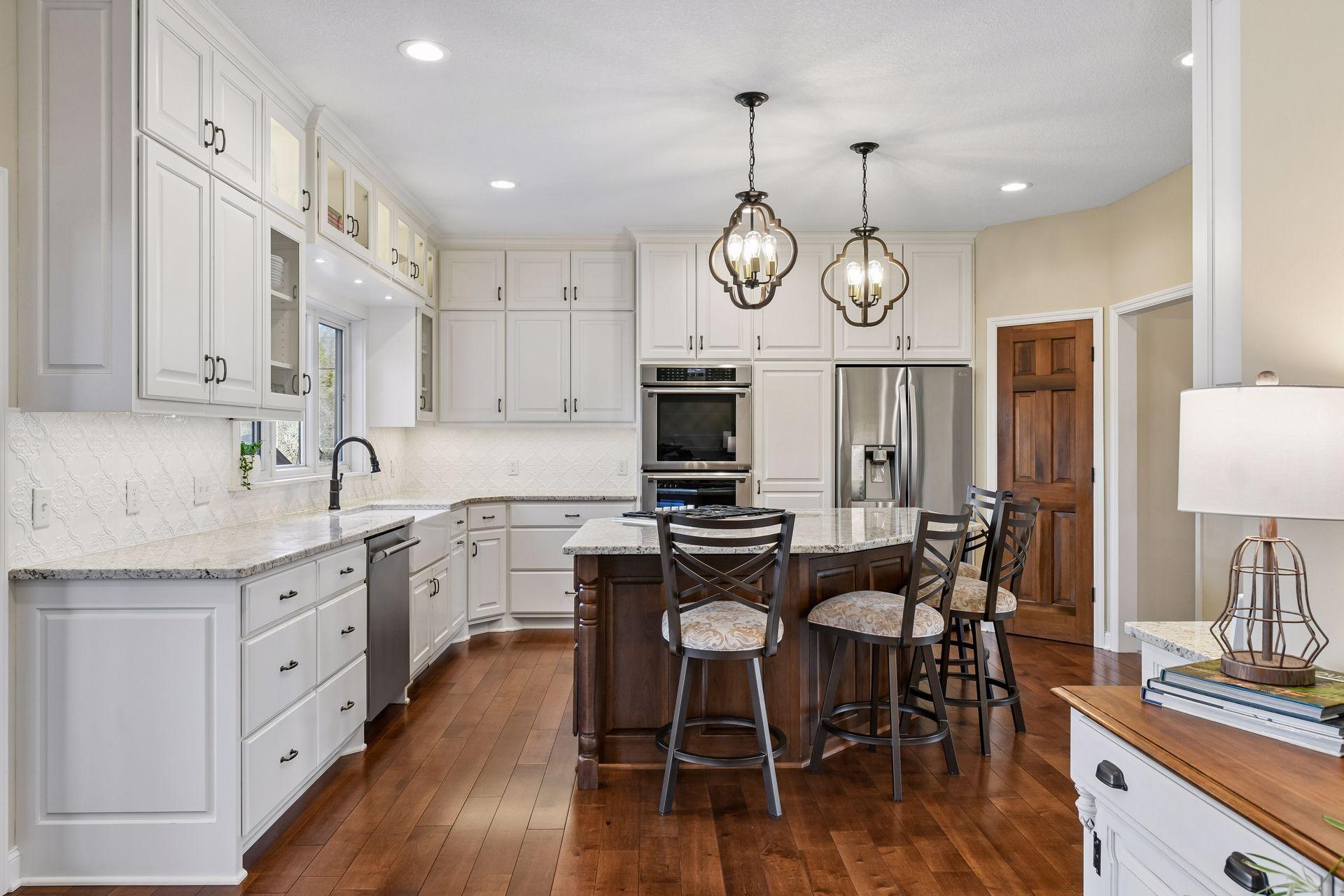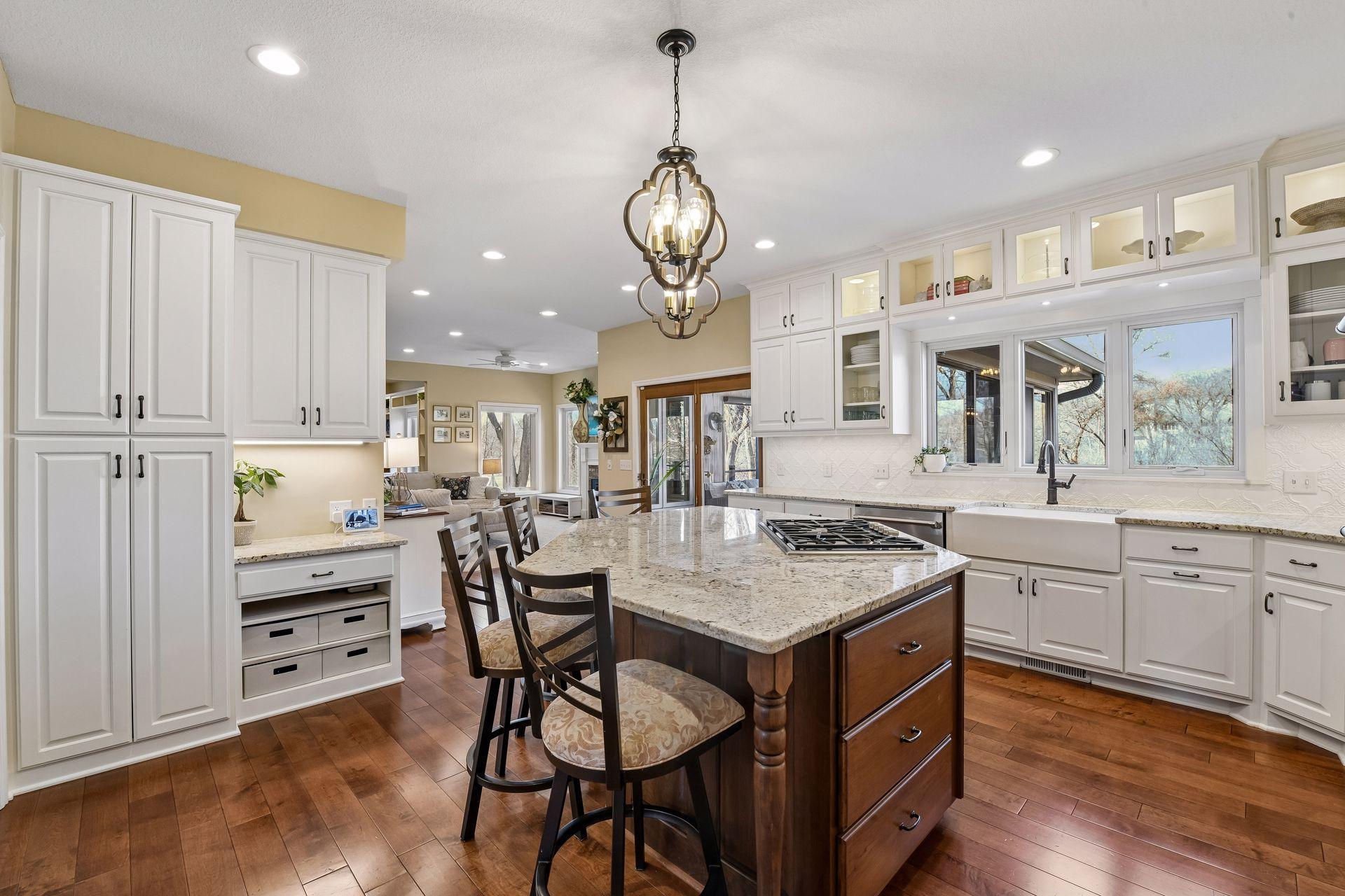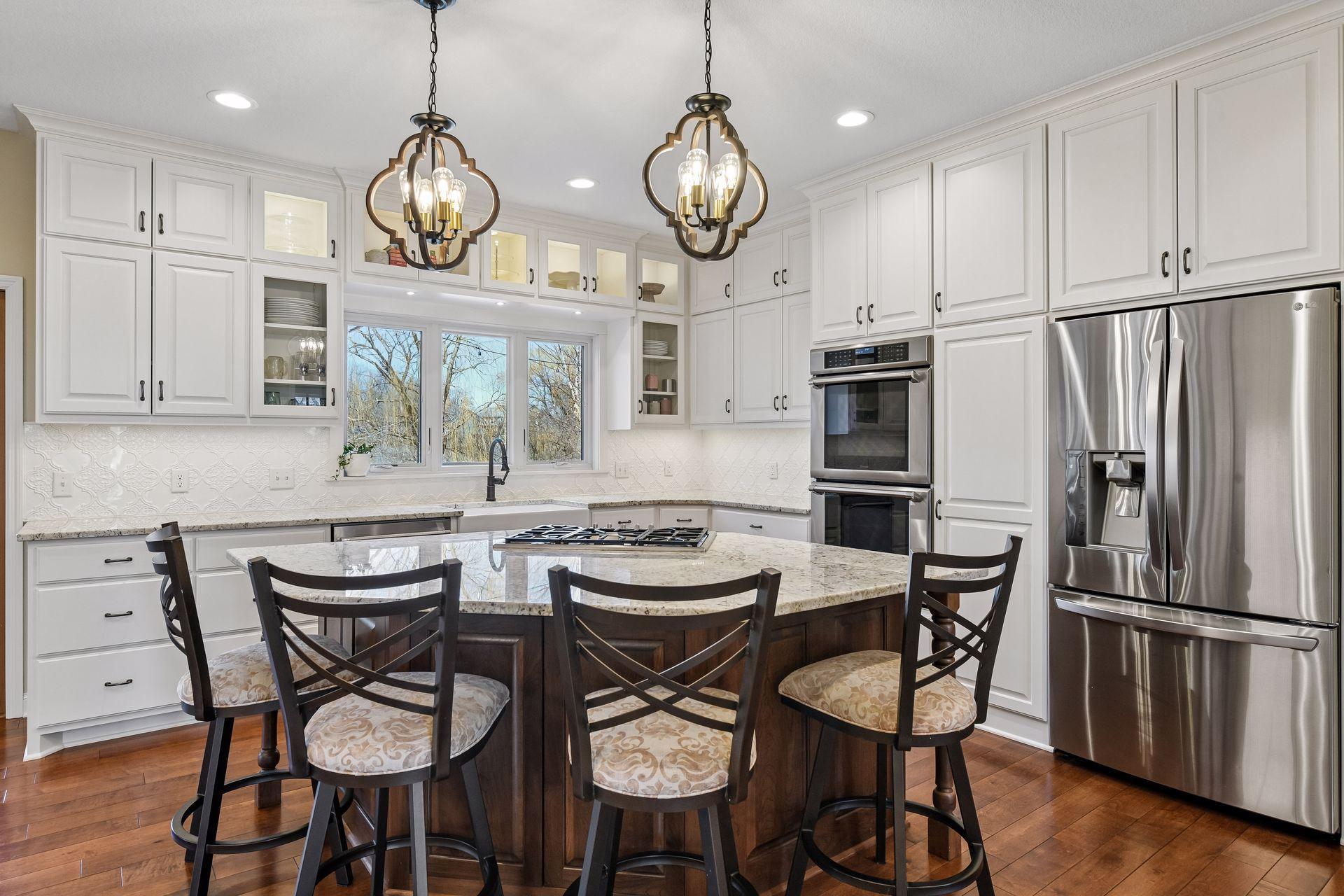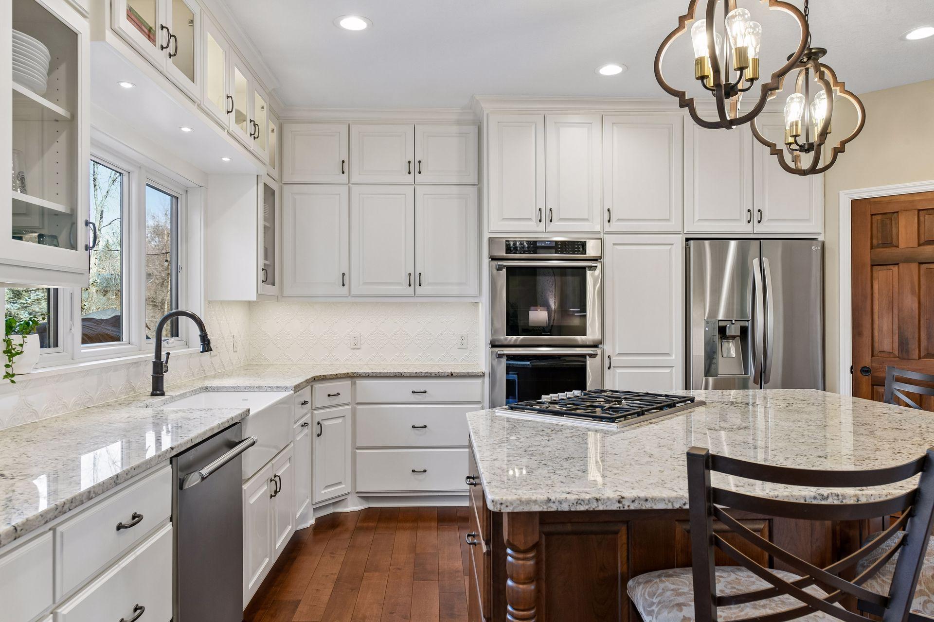 Sold Pre-MLS located in the desirable Trappers Pass at Near Mountain neighborhood of Chanhassen, this extensively updated home offers the perfect blend of thoughtful design, modern upgrades, and beautiful natural surroundings. The remodeled main level features an open floor plan centered around a fully renovated kitchen with custom cabinetry, updated countertops, lighting, and appliances. The space flows seamlessly into the informal dining area and great room, with easy access to the screen porch and maintenance-free deck overlooking expansive wetland views—creating an ideal setting for everyday living and entertaining. A spacious mudroom with main-floor laundry connects directly to the oversized three-car heated garage, which includes extensive storage and EV charging capability. The home offers a variety of gathering spaces, including formal living and dining rooms, along with a walk-out lower level featuring a large family room, entertainment area, and flexible space for guests, recreation, or exercise. Set on one of the neighborhood's premier lots, the backyard is designed for year-round enjoyment, with a patio surrounding the fire pit and hot tub, plus a large, level lawn that has previously accommodated a 36' x 72' outdoor ice rink. Major updates include a maintenance-free composite shake roof with new gutters and skylights, numerous window replacements, and extensive improvements throughout the home. A rare opportunity to enjoy a beautifully updated home in one of Chanhassen’s most established neighborhoods within the Minnetonka School District.