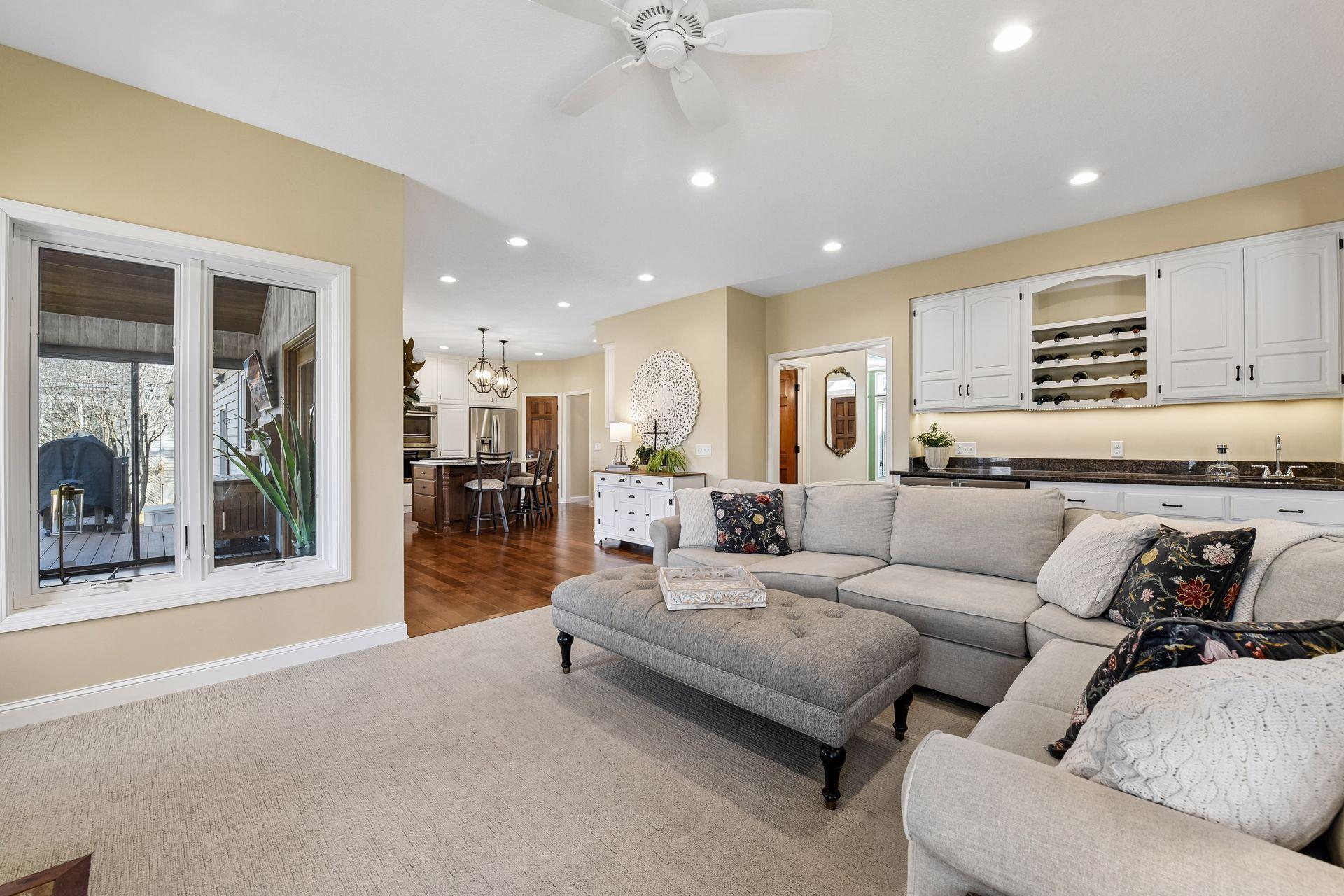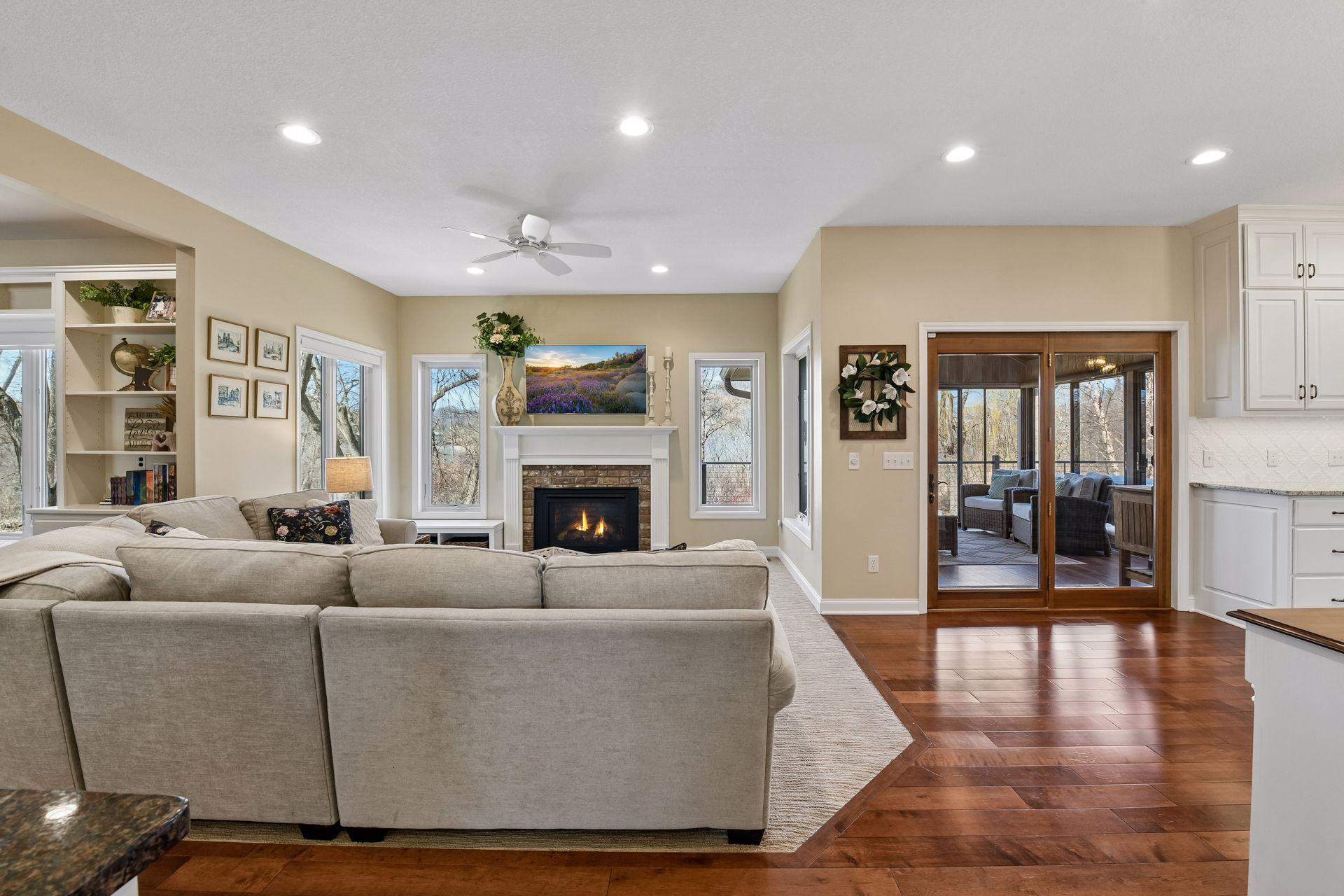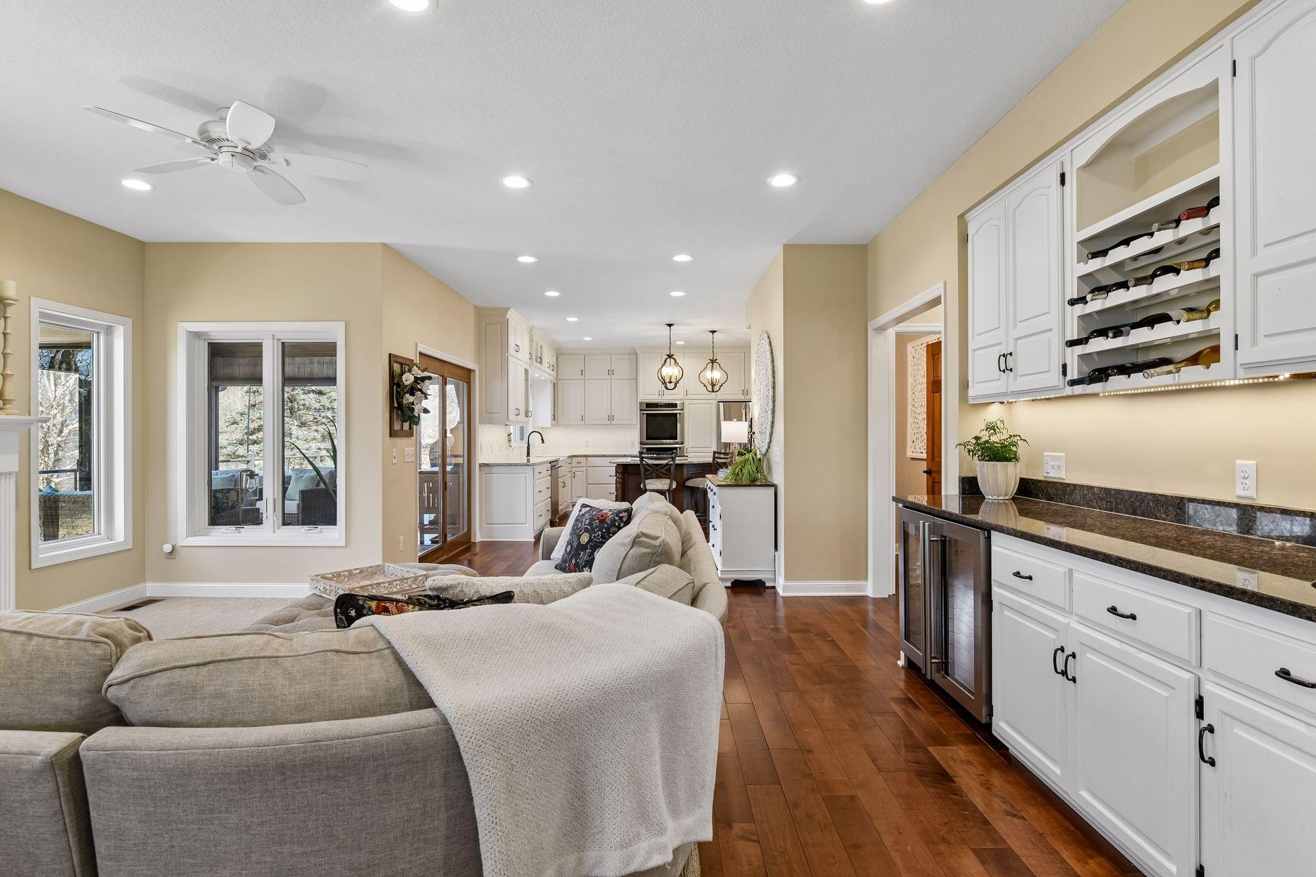 Sold Pre-MLS located in the desirable Trappers Pass at Near Mountain neighborhood of Chanhassen, this extensively updated home offers the perfect blend of thoughtful design, modern upgrades, and beautiful natural surroundings. The remodeled main level features an open floor plan centered around a fully renovated kitchen with custom cabinetry, updated countertops, lighting, and appliances. The space flows seamlessly into the informal dining area and great room, with easy access to the screen porch and maintenance-free deck overlooking expansive wetland views—creating an ideal setting for everyday living and entertaining. A spacious mudroom with main-floor laundry connects directly to the oversized three-car heated garage, which includes extensive storage and EV charging capability. The home offers a variety of gathering spaces, including formal living and dining rooms, along with a walk-out lower level featuring a large family room, entertainment area, and flexible space for guests, recreation, or exercise. Set on one of the neighborhood's premier lots, the backyard is designed for year-round enjoyment, with a patio surrounding the fire pit and hot tub, plus a large, level lawn that has previously accommodated a 36' x 72' outdoor ice rink. Major updates include a maintenance-free composite shake roof with new gutters and skylights, numerous window replacements, and extensive improvements throughout the home. A rare opportunity to enjoy a beautifully updated home in one of Chanhassen’s most established neighborhoods within the Minnetonka School District.