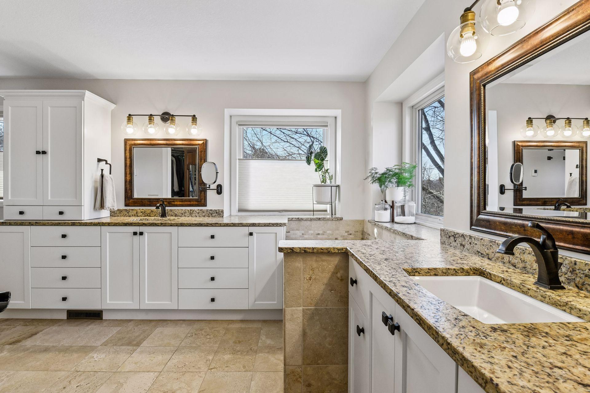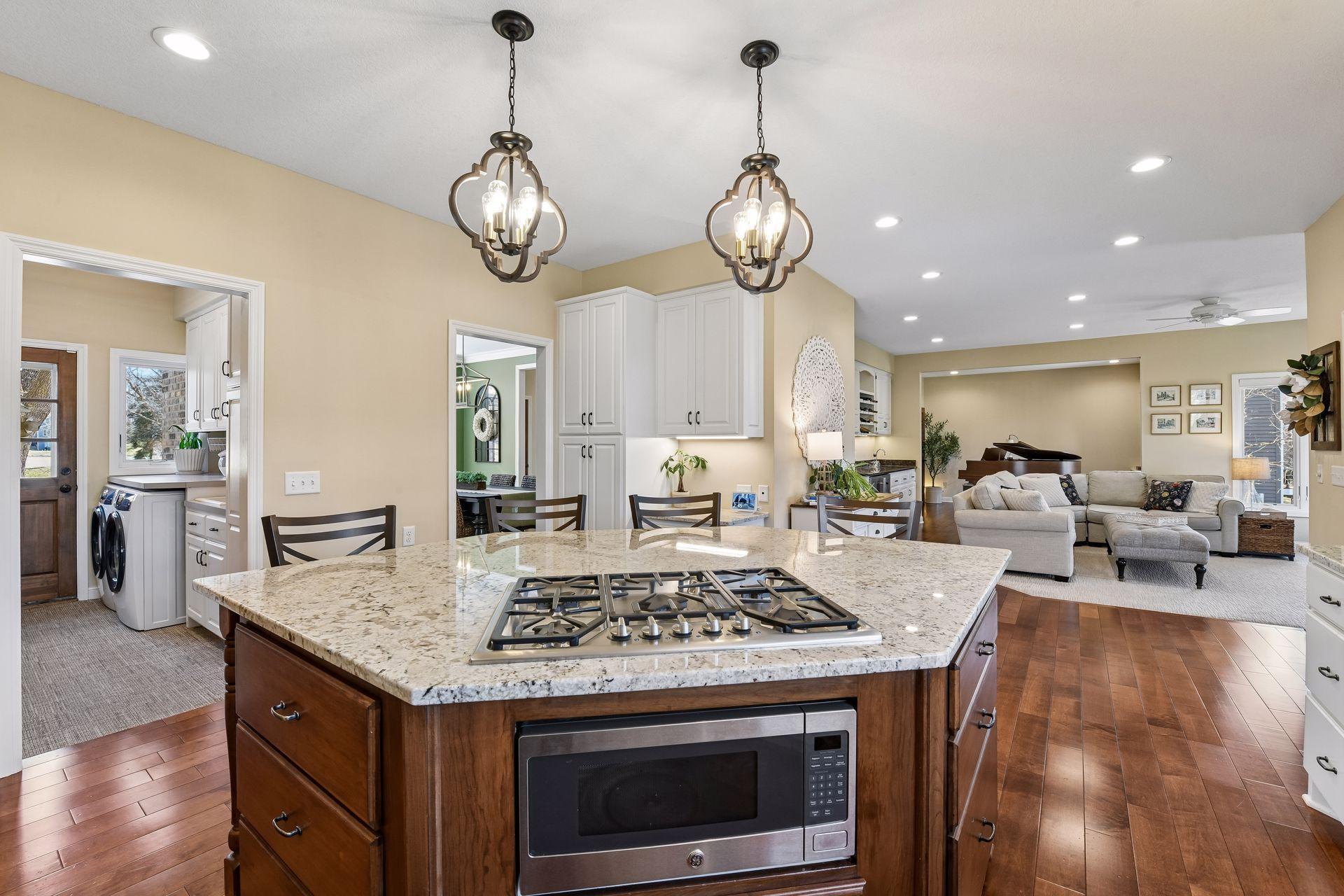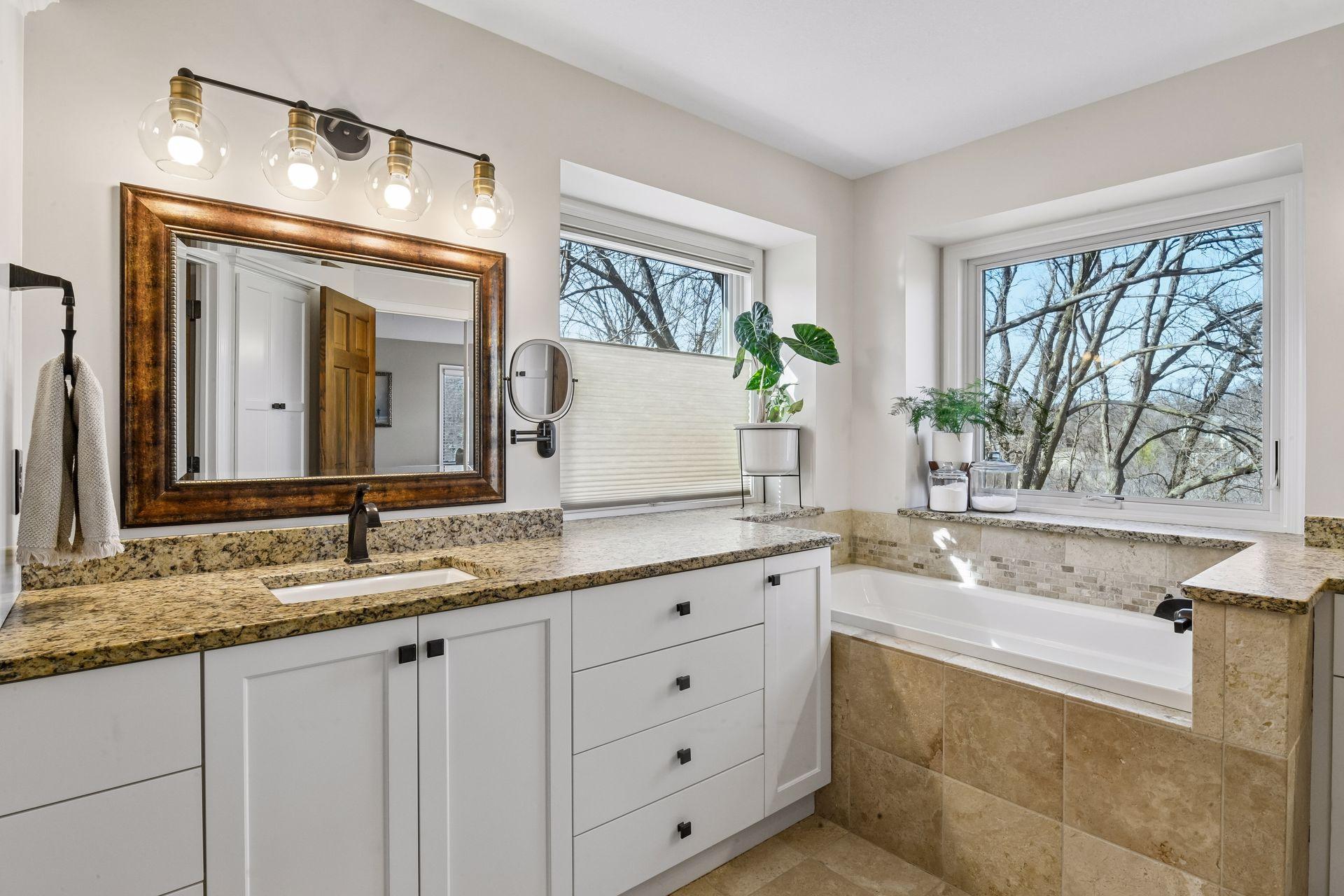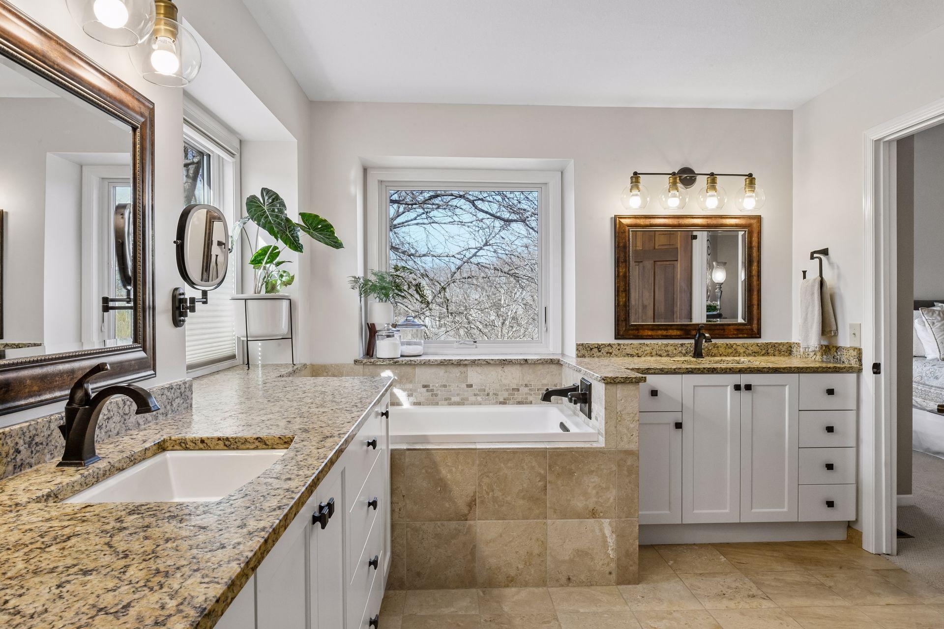 Sold Pre-MLS located in the desirable Trappers Pass at Near Mountain neighborhood of Chanhassen, this extensively updated home offers the perfect blend of thoughtful design, modern upgrades, and beautiful natural surroundings. The remodeled main level features an open floor plan centered around a fully renovated kitchen with custom cabinetry, updated countertops, lighting, and appliances. The space flows seamlessly into the informal dining area and great room, with easy access to the screen porch and maintenance-free deck overlooking expansive wetland views—creating an ideal setting for everyday living and entertaining. A spacious mudroom with main-floor laundry connects directly to the oversized three-car heated garage, which includes extensive storage and EV charging capability. The home offers a variety of gathering spaces, including formal living and dining rooms, along with a walk-out lower level featuring a large family room, entertainment area, and flexible space for guests, recreation, or exercise. Set on one of the neighborhood's premier lots, the backyard is designed for year-round enjoyment, with a patio surrounding the fire pit and hot tub, plus a large, level lawn that has previously accommodated a 36' x 72' outdoor ice rink. Major updates include a maintenance-free composite shake roof with new gutters and skylights, numerous window replacements, and extensive improvements throughout the home. A rare opportunity to enjoy a beautifully updated home in one of Chanhassen’s most established neighborhoods within the Minnetonka School District.