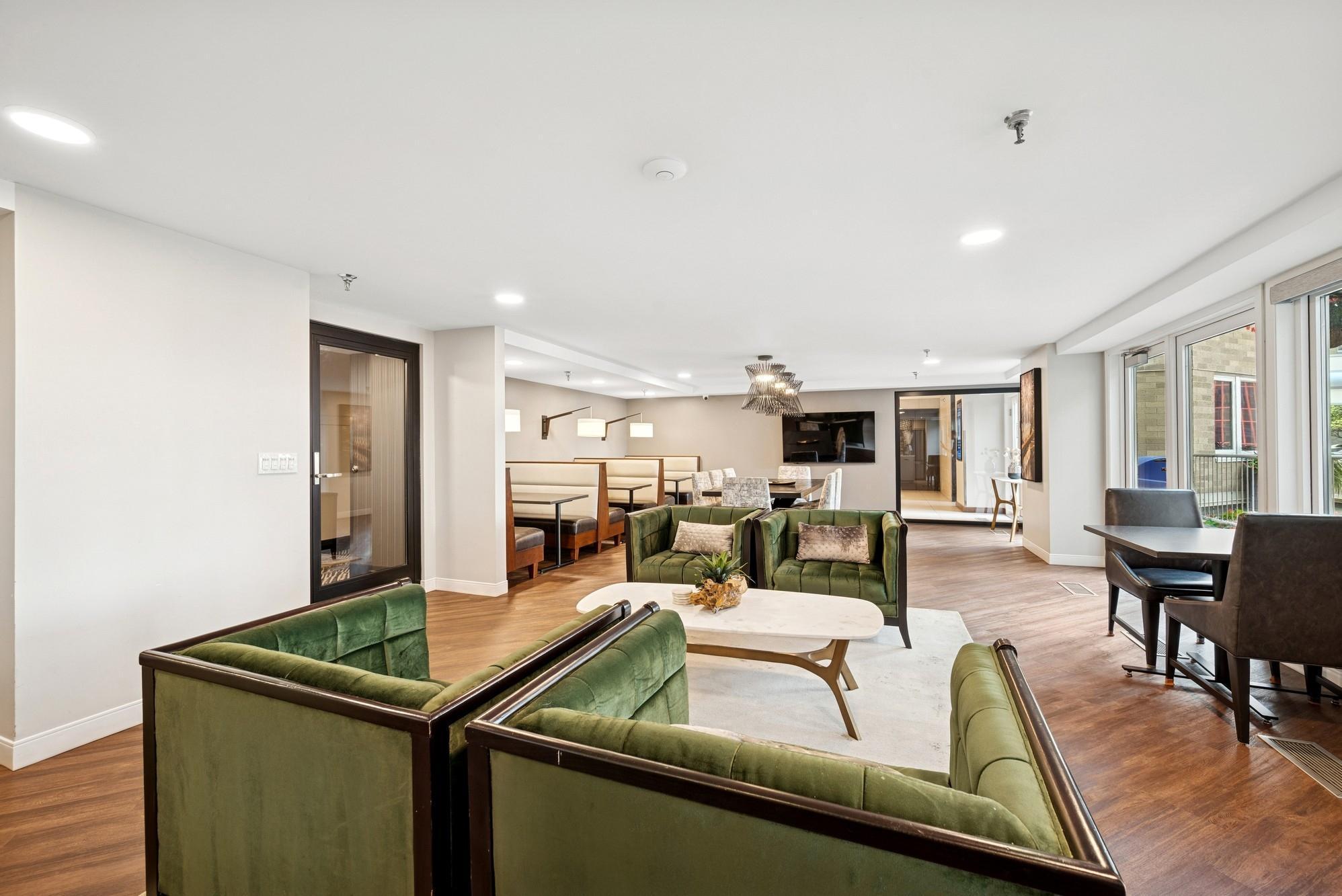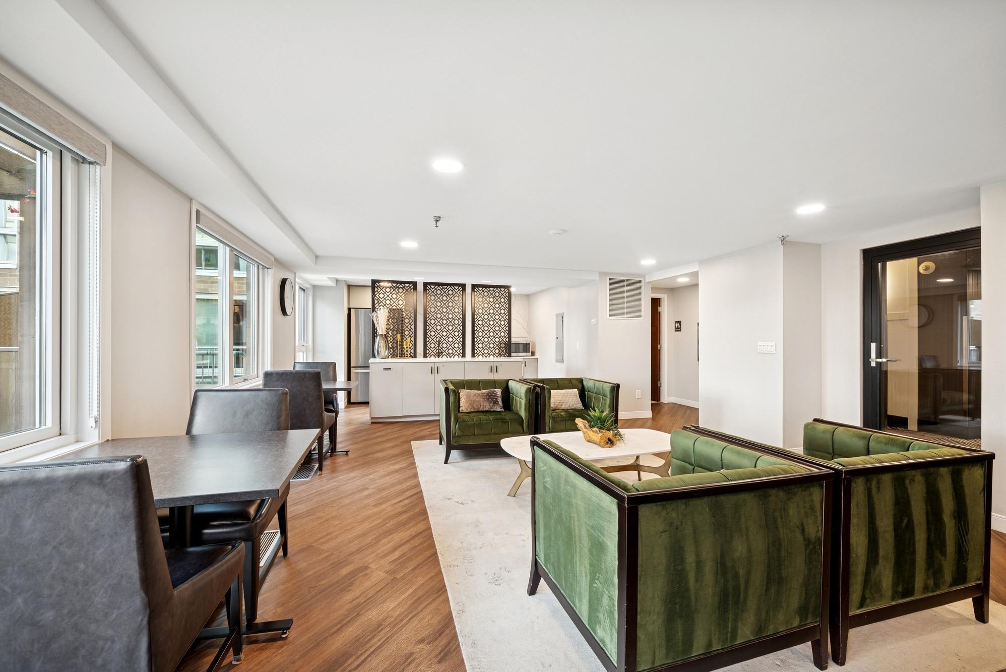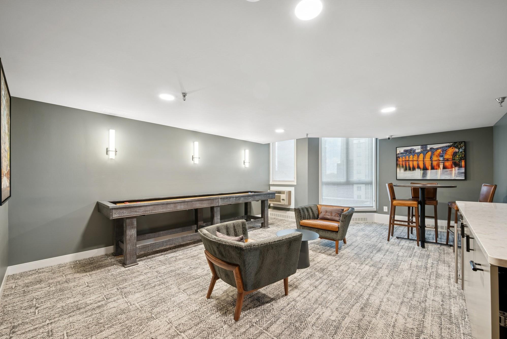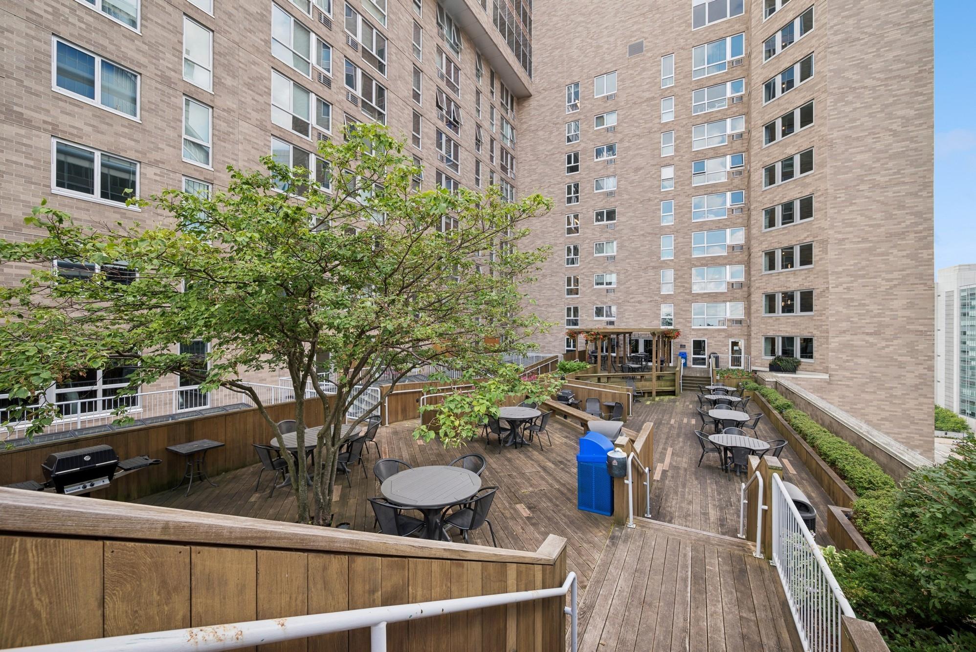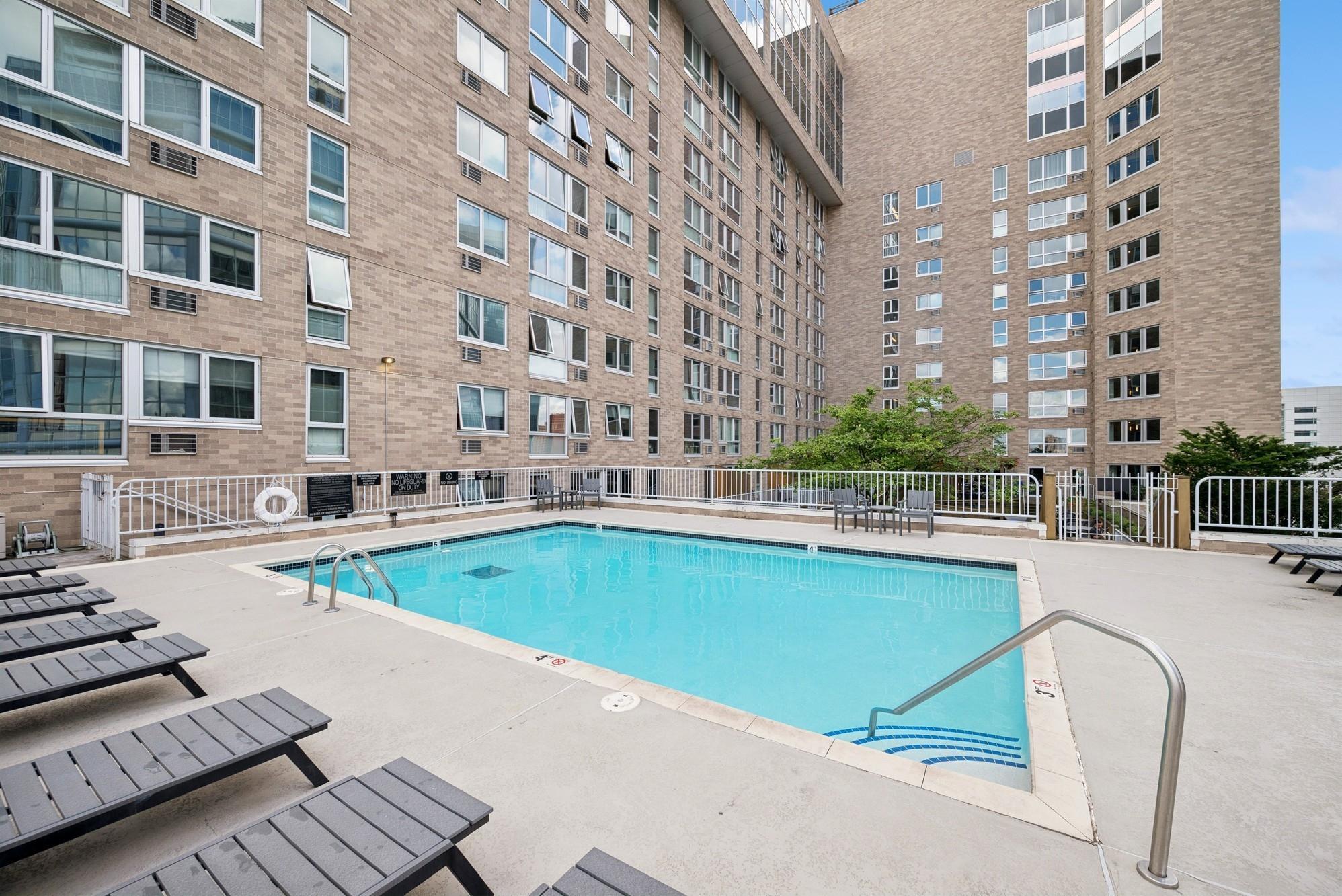 building, two separate rooftop patios, outdoor pool, indoor jacuzzi, fitness center, community room,