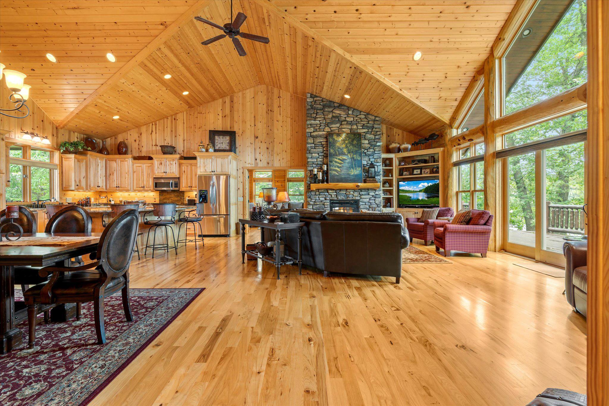 Discover lakeside living at its finest on the coveted shores of Rush Lake, part of the prestigious Whitefish Chain. This timeless 6-bedroom, 4-bath retreat offers an exceptional blend of rustic elegance and modern luxury, designed for both grand entertaining and quiet escapes. Crafted with quality and care, the home features rich hardwood floors, a chef’s kitchen with granite countertops, stainless steel appliances, and an open-concept great room anchored by a stunning floor-to-ceiling stone gas fireplace. Expansive windows and a massive lakeside deck frame panoramic views of the water and woods, while flooding the interior with natural light. The main-floor primary suite offers a peaceful haven with spa-inspired finishes and private deck access. A spacious second level boasts a game room with wet bar, and generous guest accommodations—perfect for hosting family and friends in style. In-floor heat and forced air ensures year-round comfort, and the oversized finished garage provides ample room for lake toys and storage. Positioned on one of the region’s most sought-after chains of lakes, this property presents a rare opportunity to own a luxurious legacy home in the heart of Minnesota’s premier lake country. A place where summer memories are made, and every season brings its own kind of magic.