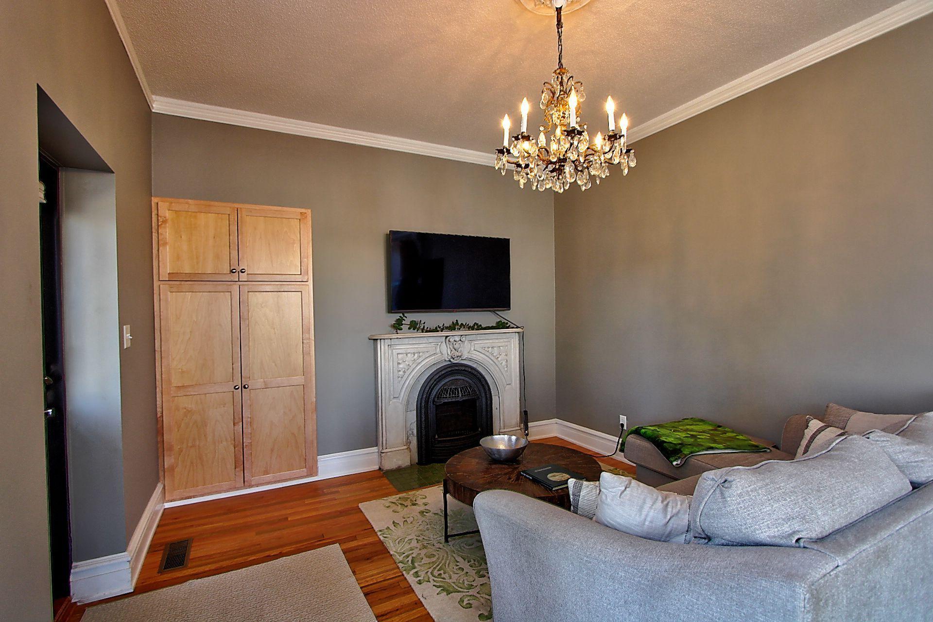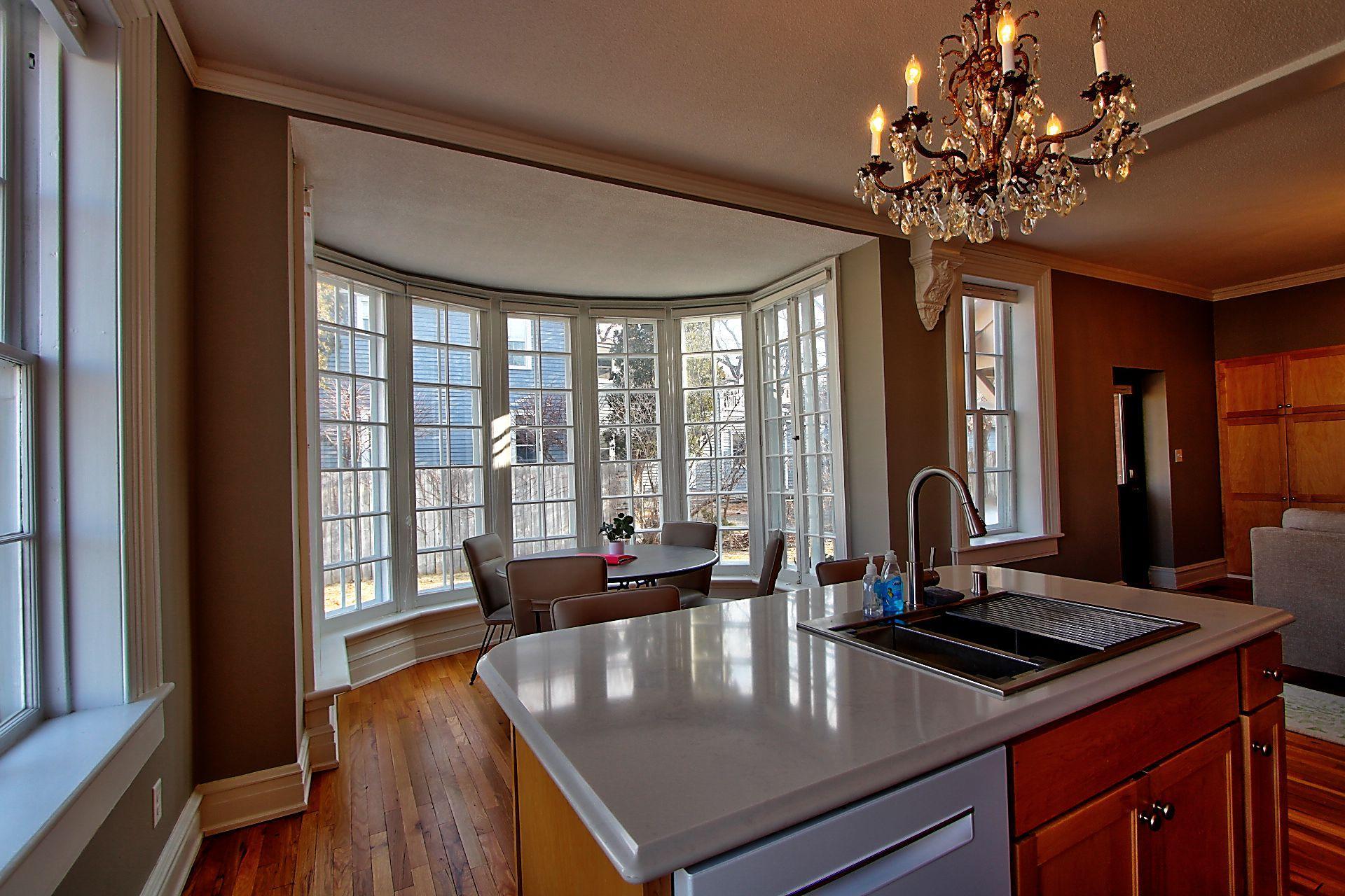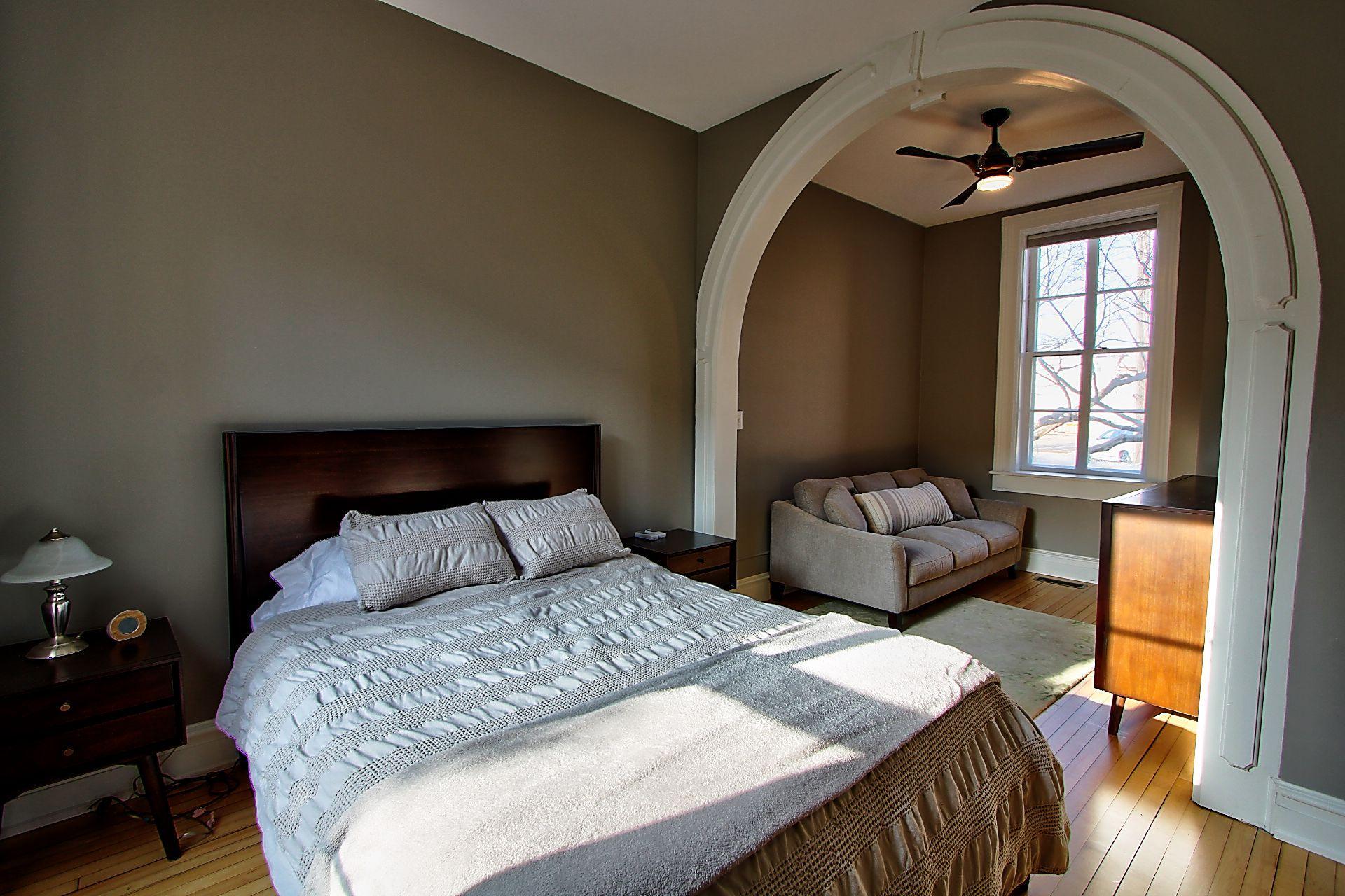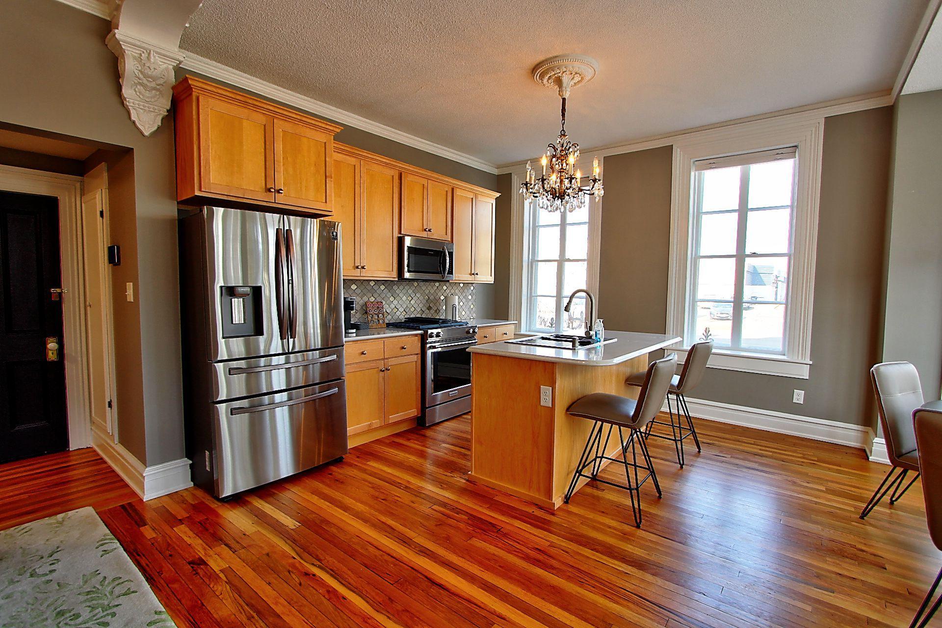 Classic Charm & Character ! Greek Revival 2 1/2 Story Home. First Floor (Units B & C) renovated and separated into two exquisitely decorated units. Front Unit B has oak hardwood floors, original woodwork, with arches defining the rooms. Newer maple kitchen cabinets, Corian countertops with center island and stainless steel appliances. Open floor plan to the living room with an elegant marble fireplace and gas insert. Beautiful crystal chandeliers. Bowed dining alcove with windows to the ceiling for enhanced sunlight. Private bedroom with arched entry to separate sitting & tv room. Tiled floor 3/4 bath and laundry.