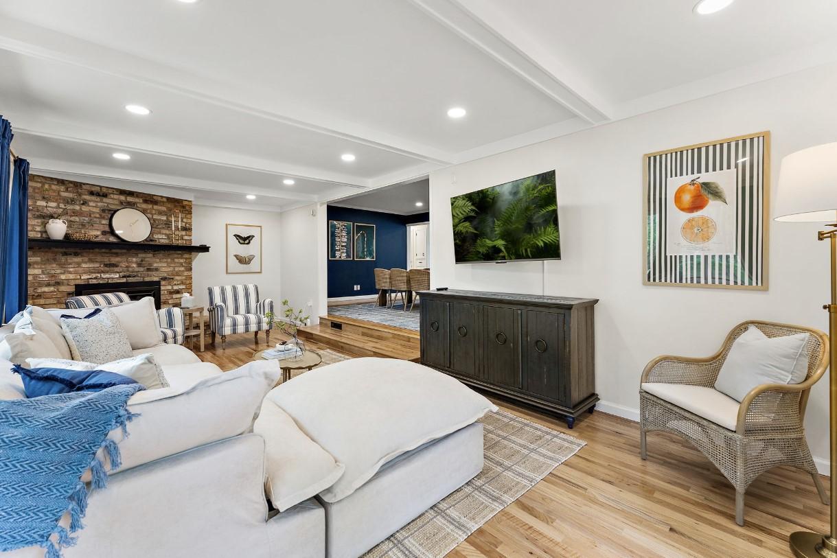 The main level includes multiple living areas, including a large living room (12x22) and an expansive family room (12x32), creating excellent space for relaxing or hosting. The kitchen is well-appointed and flows nicely into the dining area. Three bedrooms are located on the main level, with two additional bedrooms in the lower level along with a bathroom, laundry room, and additional living space.