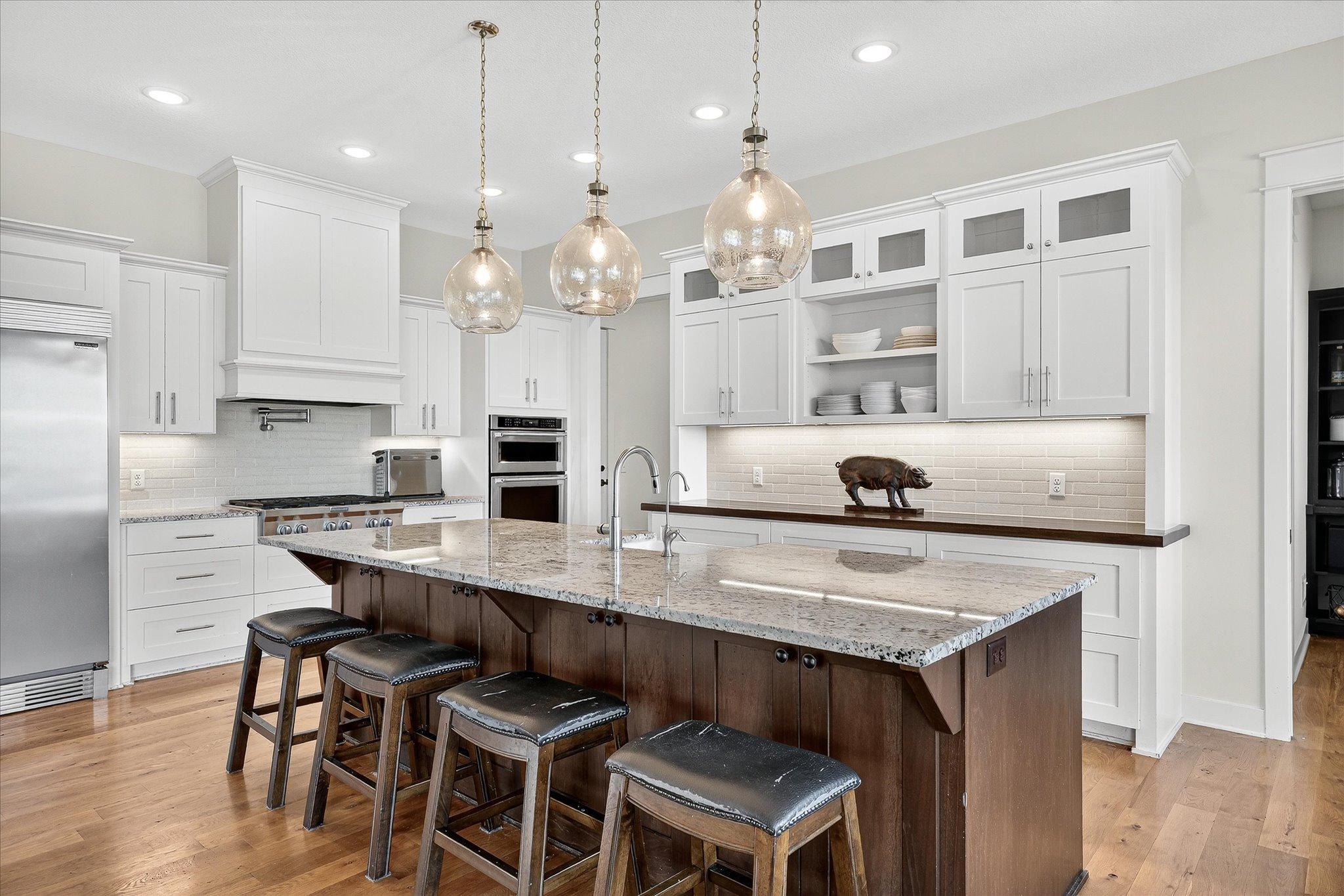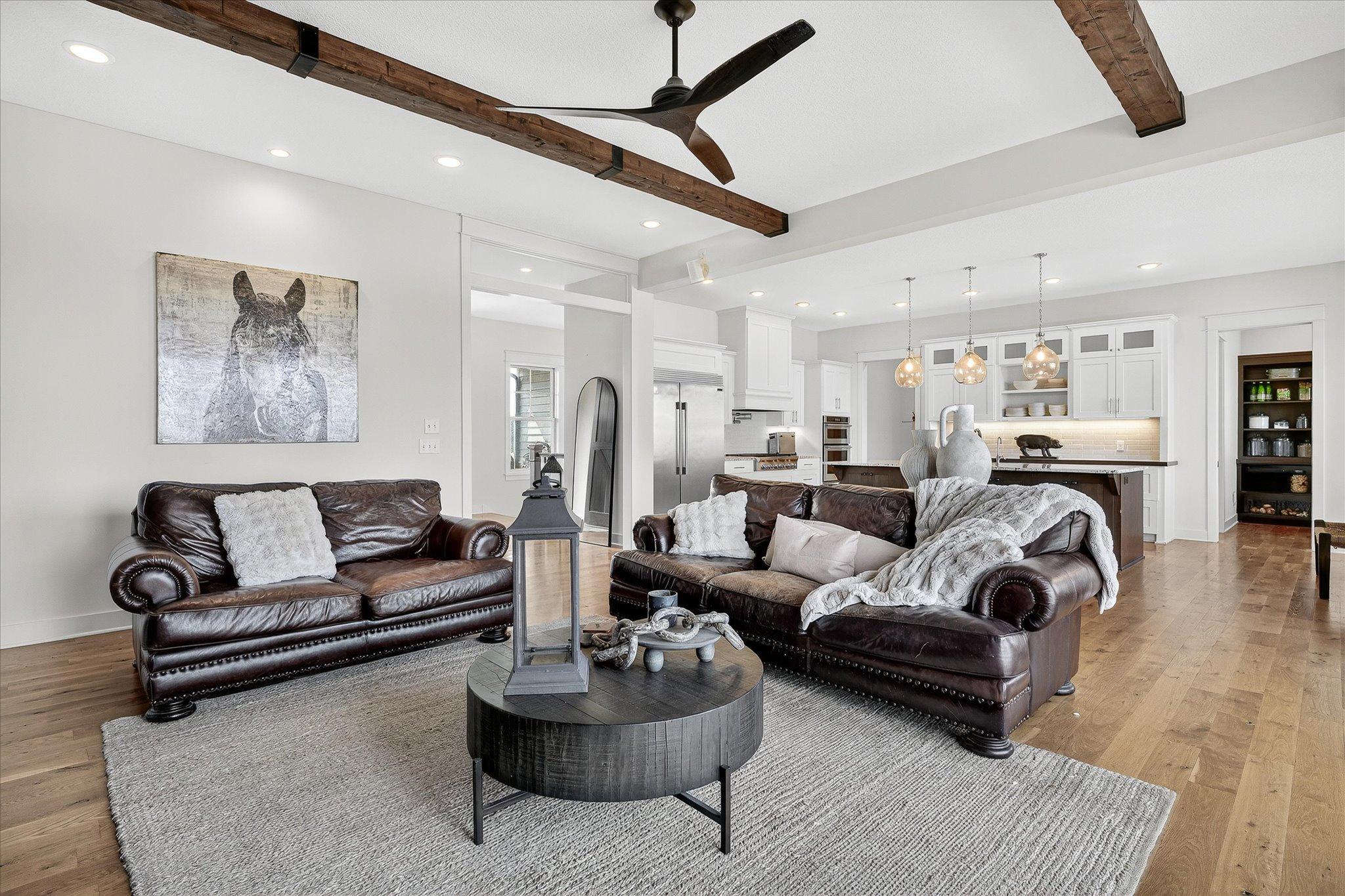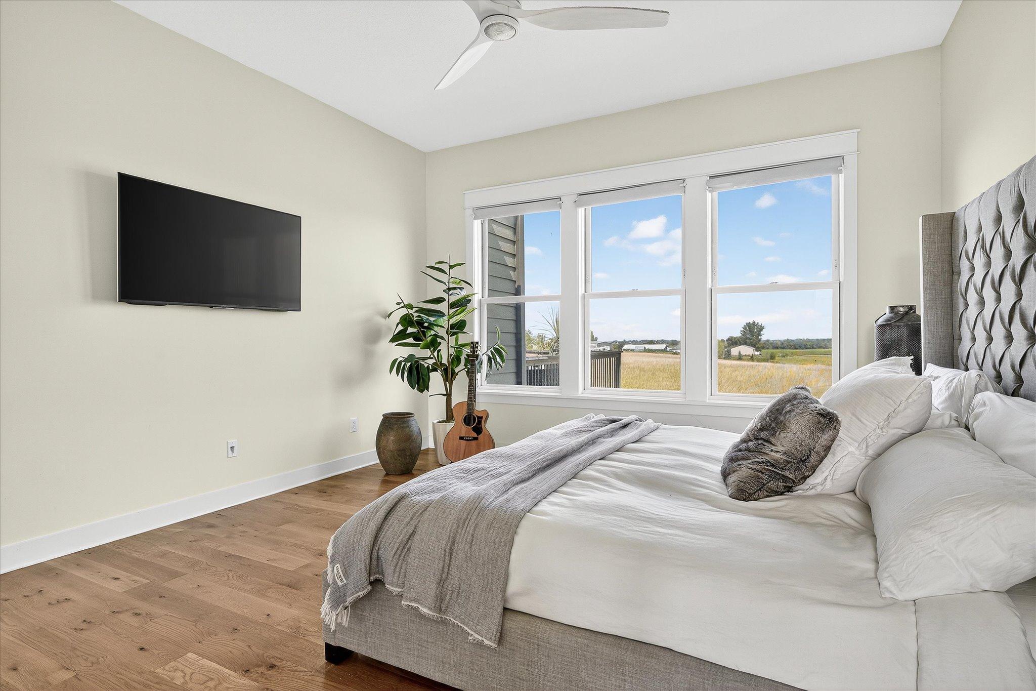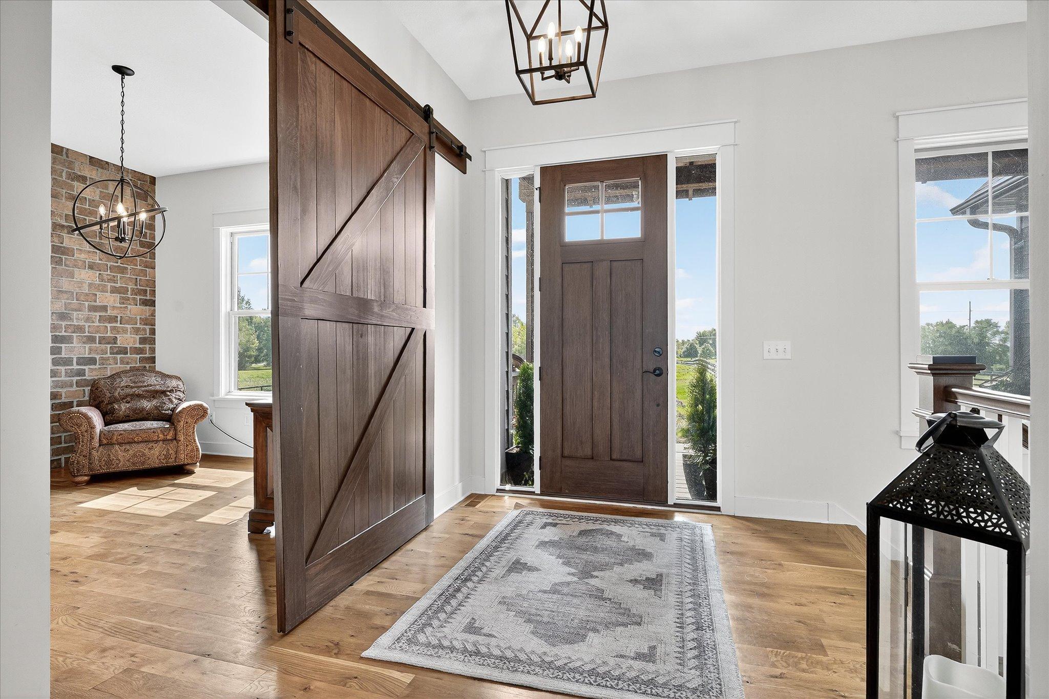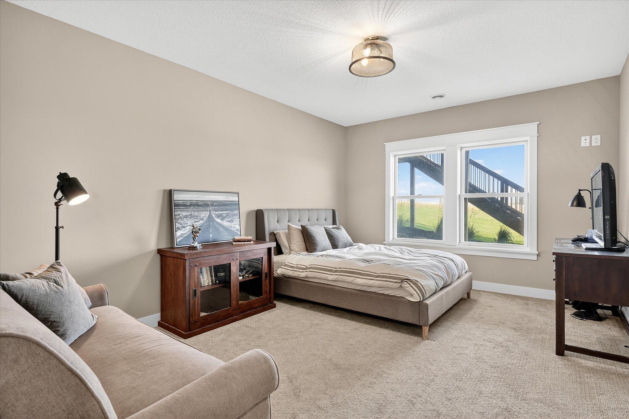 Welcome to a beautifully designed hobby farm opportunity in Elko New Market, offering space, functionality, and modern comfort on nearly 10 acres of usable land. Built in 2018, this custom rambler provides over 4,000 finished square feet with 4 bedrooms, 4 bathrooms, and a thoughtfully designed open-concept layout. The main level features spacious living areas filled with natural light, oversized windows, and seamless flow between the kitchen, dining, and living spaces. Double doors off the main living area open to a maintenance-free deck, creating an easy transition to outdoor living while taking in peaceful countryside views. The kitchen includes a large center island, walk-in pantry, and abundant cabinetry—ideal for everyday living and entertaining. The main-level primary suite offers a private bath, walk-in closet, and convenient access to the laundry room. A dedicated office/study provides flexibility for remote work or additional living space. The finished walkout lower level expands your living options with three additional bedrooms, including a Jack and Jill full bathroom, an additional ¾ bath, and generous open space for a family room, recreation area, or home gym. Designed with hobby farm and equestrian use in mind, the property includes three fenced pastures, water lines servicing the paddocks, and two lean-to shelters. A 42’ x 48’ pole building offers excellent potential for a future barn setup with space planned for 12’ stalls and a center aisle. Power and water are roughed in nearby, providing a strong foundation for future improvements. The front paddock features packed Class 5 footing, and pastures are seeded with a quality pasture mix. The heated 3-car garage adds functionality with a double bay depth of approximately 23’ and an extended third stall at 26’ deep, complete with a floor drain and utility sink. This property offers a rare combination of newer construction, acreage, scenic views, and infrastructure already in place—ideal for those seeking a hobby farm, equestrian property, or additional space with room to grow.