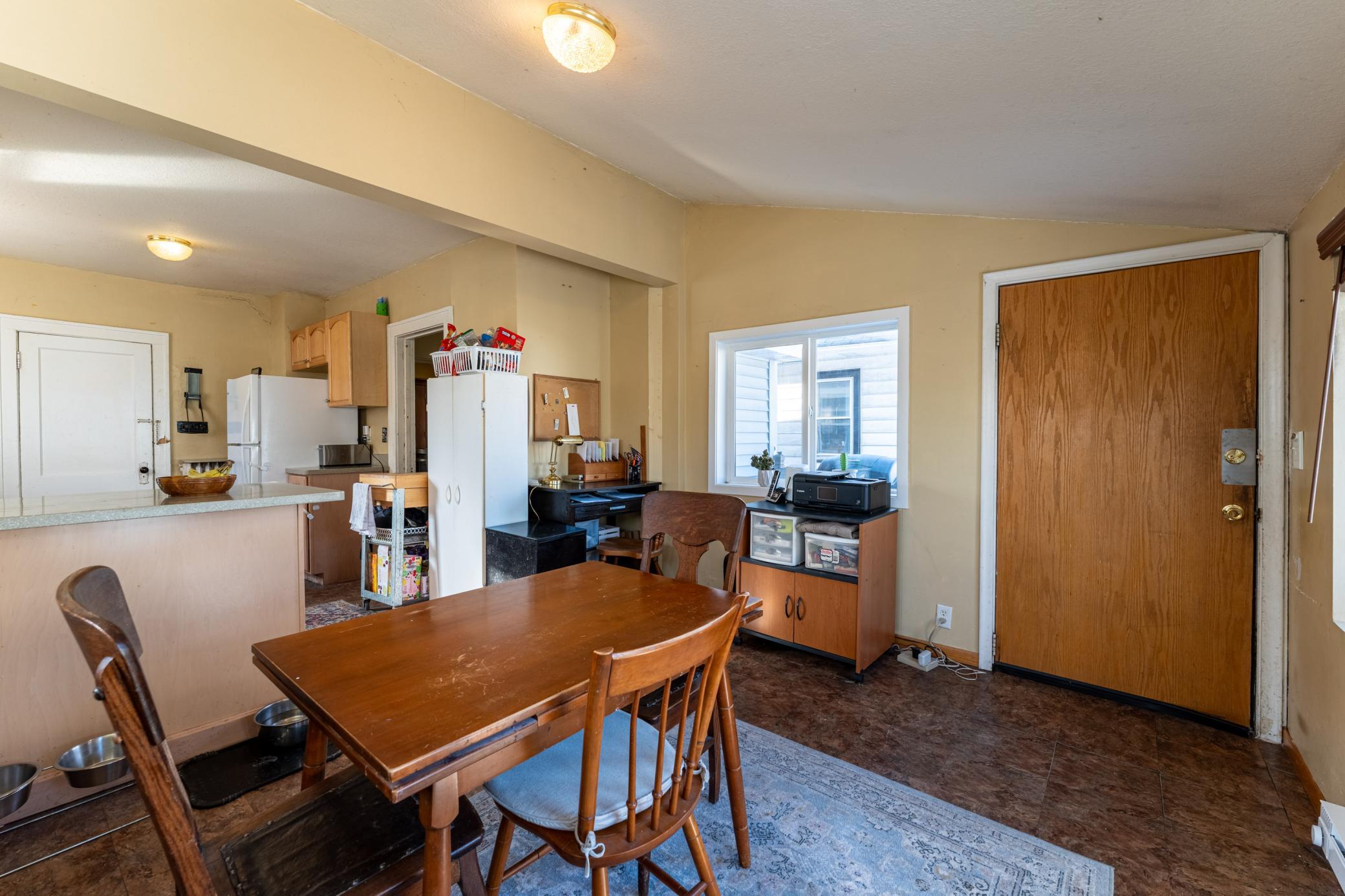 Updated Where It Counts! So many of the big-ticket items have already been taken care of for you including the vinyl siding, windows, roof, gutters, boiler and water heater. Inside, you’ll find original hardwood floors in the living and dining rooms that add warmth and character. The large kitchen offers solid surface countertops, ample cabinet space and plenty of room to gather. Just off the kitchen is a flexible space currently used as an office and eat-in area, perfect for working from home, a playroom, hobby space, or expanded dining. The home offers 2 BR, 1 full bath with a tiled tub surround, and a detached 2-stall garage. The driveway offers off-street parking. Enjoy both a level front yard and a fully fenced, level backyard, ideal for pets, gardening, or relaxing summer evenings. The 3-season porch with new exterior double-pane windows is a wonderful bonus space to enjoy morning coffee or unwind at the end of the day. You’ll love the location, too, close to Oakdale Park, Haskell Park and Thompson Lake County Park, offering even more opportunities to enjoy the outdoors. While many of the major updates have been completed, there are still some finishing touches and cosmetic improvements to make. It’s thoughtfully priced to reflect that opportunity, making it an excellent option for someone ready to build a little sweat equity and truly make it their own.