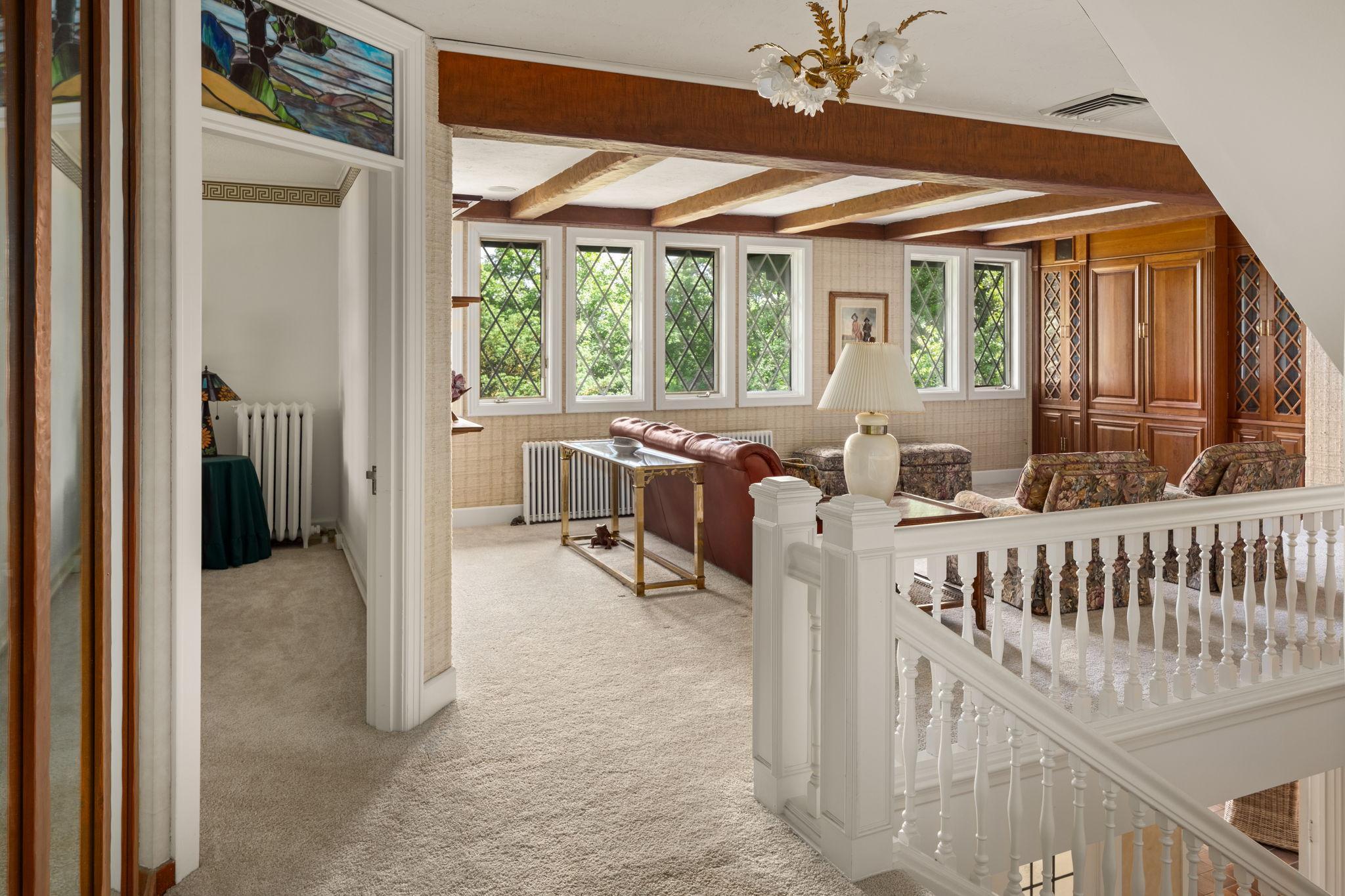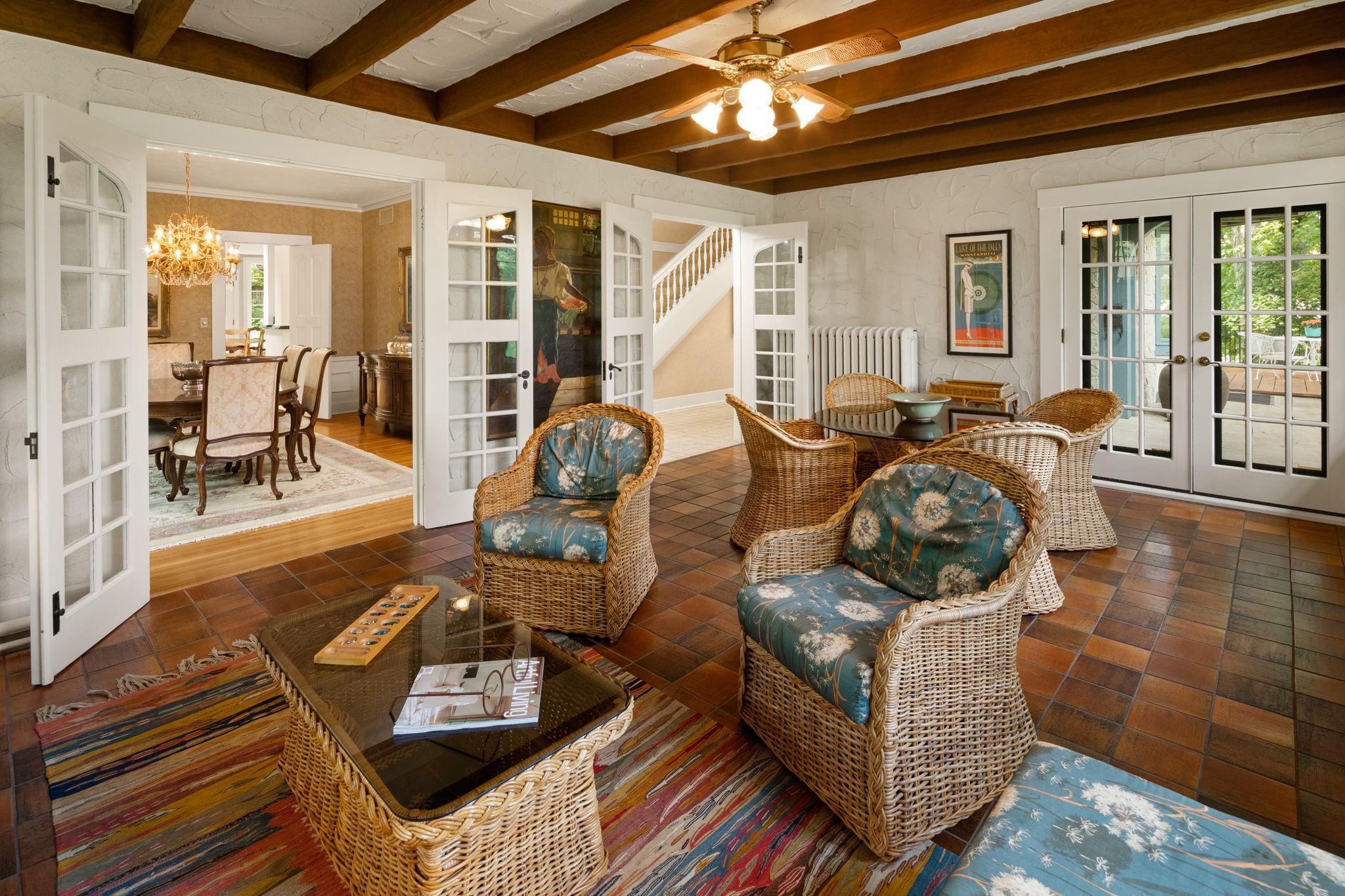 Much admired Tudor overlooking Kenilworth Channel on oversized double lot with a new roof in May of 2025. Superb water views with large front terrace and decking. Exceptional character, with generous public rooms, including living room with fplc, family-room sized sun room with French doors to terrace, formal dining room, expansive skylit center island kitchen with breakfast room & delightful screened porch. Upper level offers 4 bedrooms & 3 baths, as well as second floor family room; primary suite with sun room. Amusement room, bath & spa room in lower level. Additional amenities include outstanding private rear yard, 1st floor laundry, walk-up attic, heated tuckunder garage.