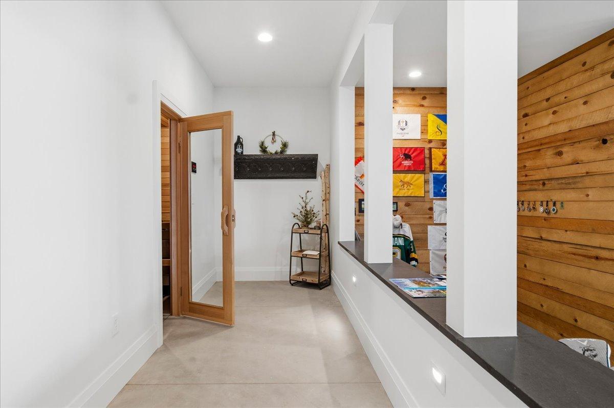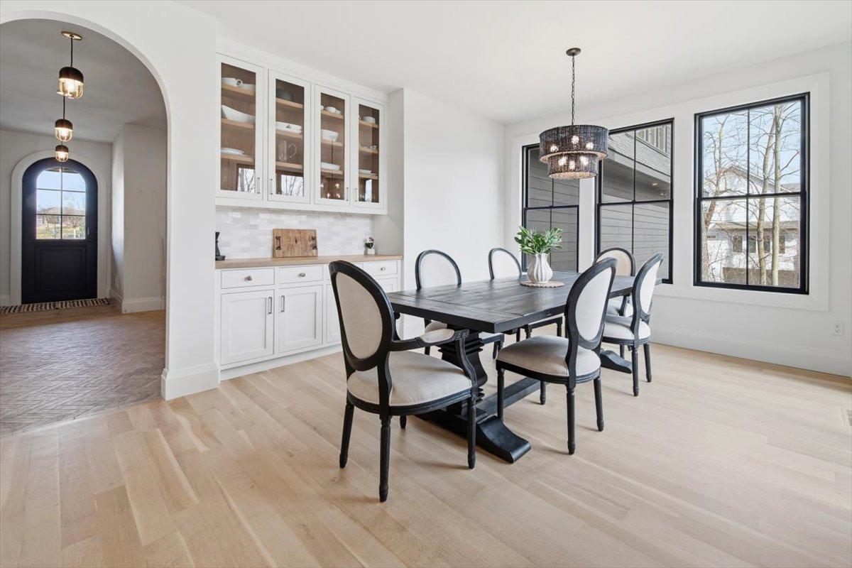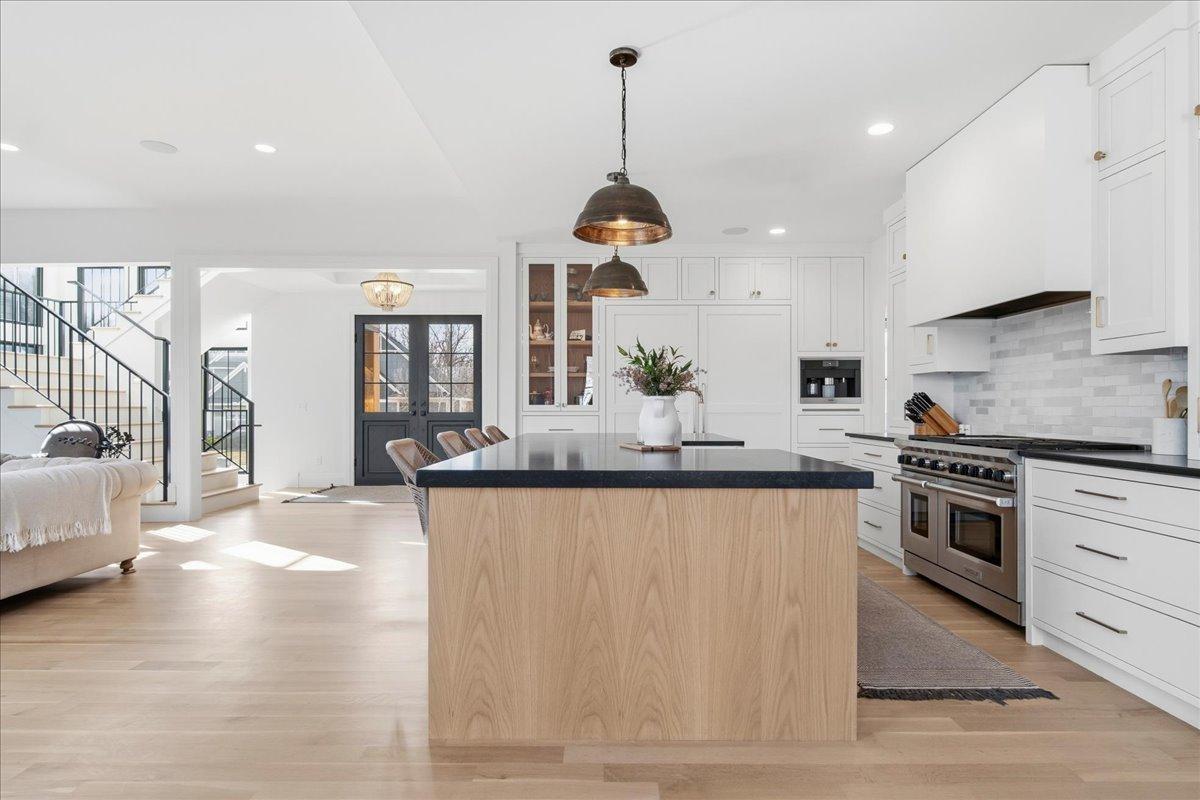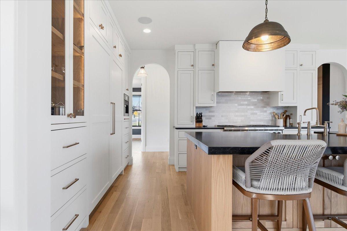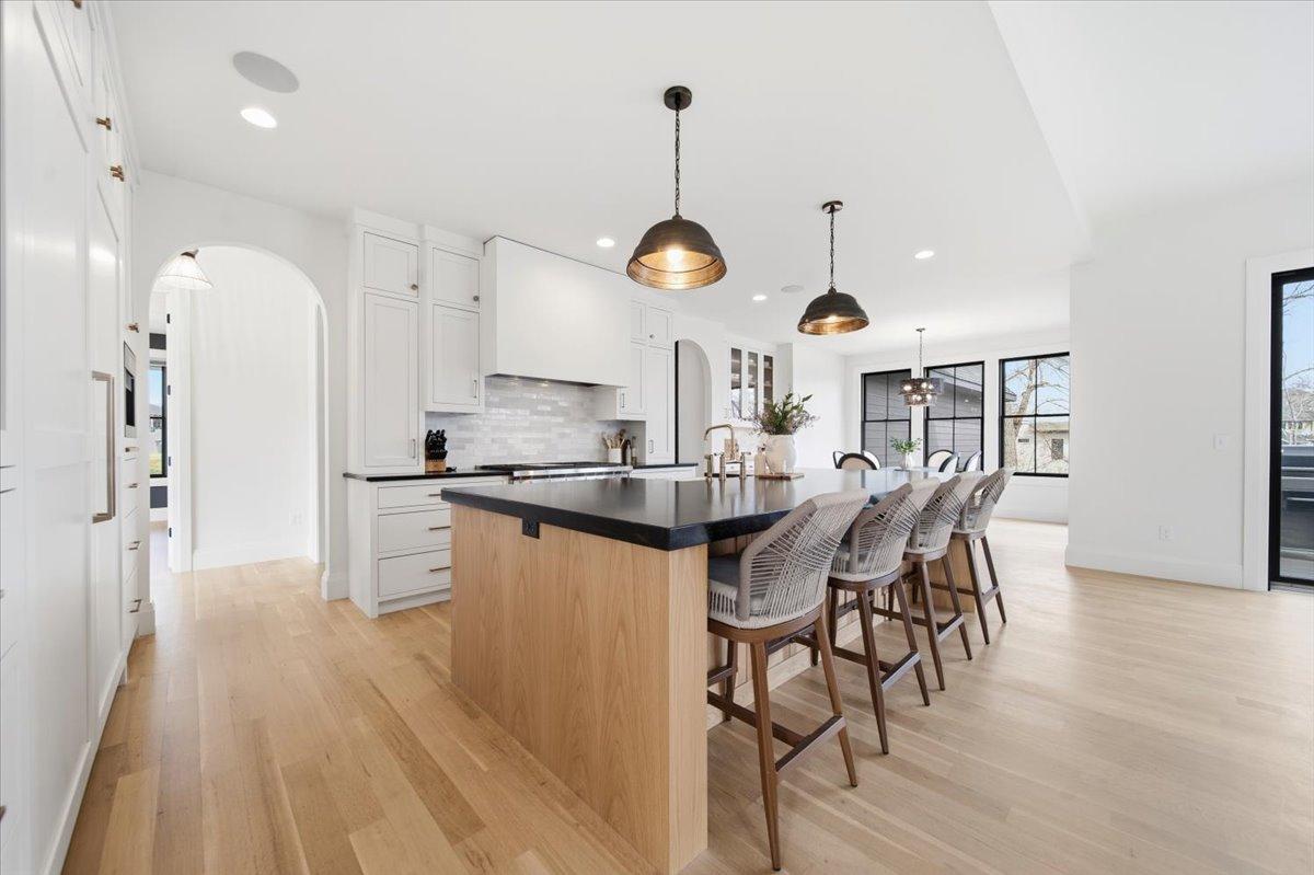 An extraordinary builder’s personal estate in the coveted Wayzata School District, showcasing uncompromising design, elite craftsmanship, and no-expense-spared finishes throughout. From the moment you arrive, the expansive wrap-around front porch and commanding custom iron exterior doors set the tone. Walls of Andersen windows flood the home with natural light, highlighting rich 3/4" rift and quarter-sawn oak flooring, architectural iron railings, and designer ceramic tile selections curated at the highest level. The kitchen is a statement - outfitted with Wolf, Sub-Zero, and Thermador appliances, a built-in Miele coffee system, custom inset and European-style cabinetry, and striking premium Brizo plumbing fixtures. Every surface and selection reflects intentional luxury and superior build quality. Designed for elevated living and performance, the home features a Full Swing multi-sport golf simulator, steam sauna, and a fully appointed wet bar. A main-floor in-law suite or executive office with 3/4 bath provides ideal flexibility, while a spacious bonus room offers additional lifestyle space. Mechanical systems - dual HVAC systems and in-floor heat in the primary bath, entire lower level, and garage. The engineered precast garage floor system spans over flex space below — including a private office, athletic training area, and exercise room - a rare structural upgrade seldom seen in residential builds. Whole-house audio, integrated security cameras, power window treatments, and a highly functional mudroom with custom lockers deliver seamless everyday convenience. Set on a large, private, tree-lined lot with two walkouts and a maintenance-free deck, this residence offers both privacy and presence. This is not simply a home — it is a statement of quality, intention, and craftsmanship rarely available in today’s market.