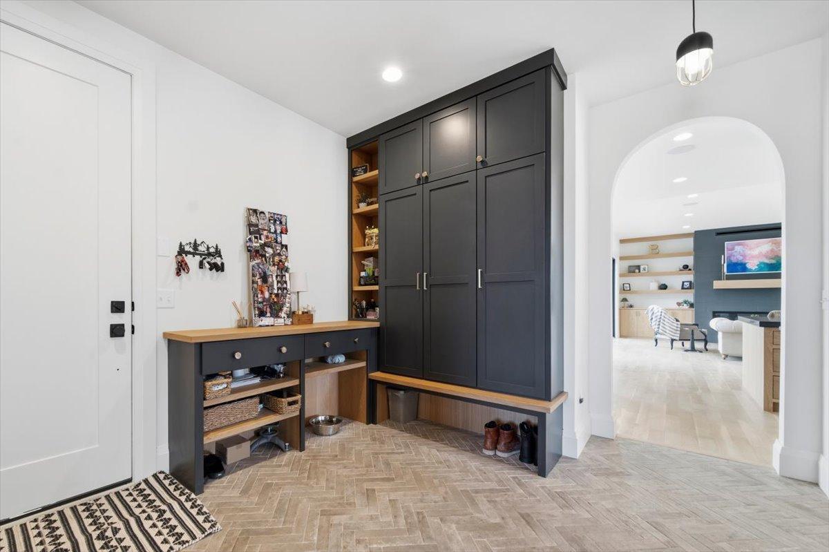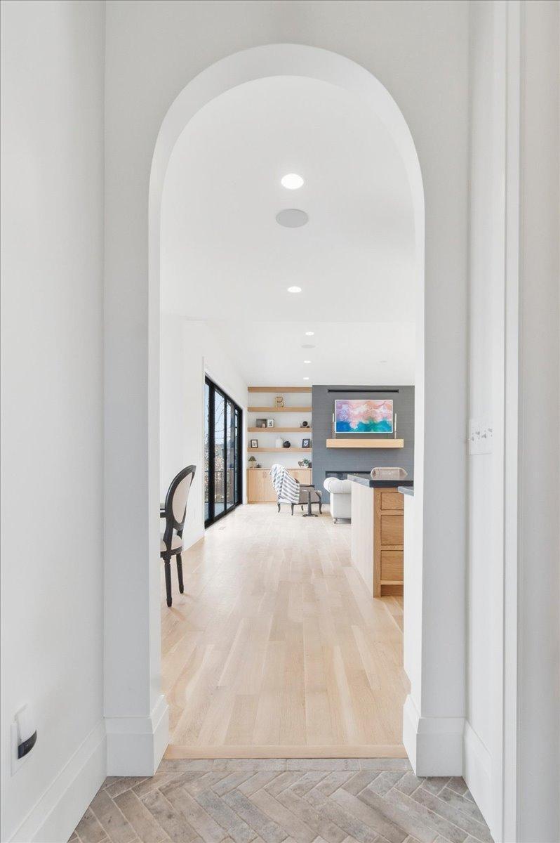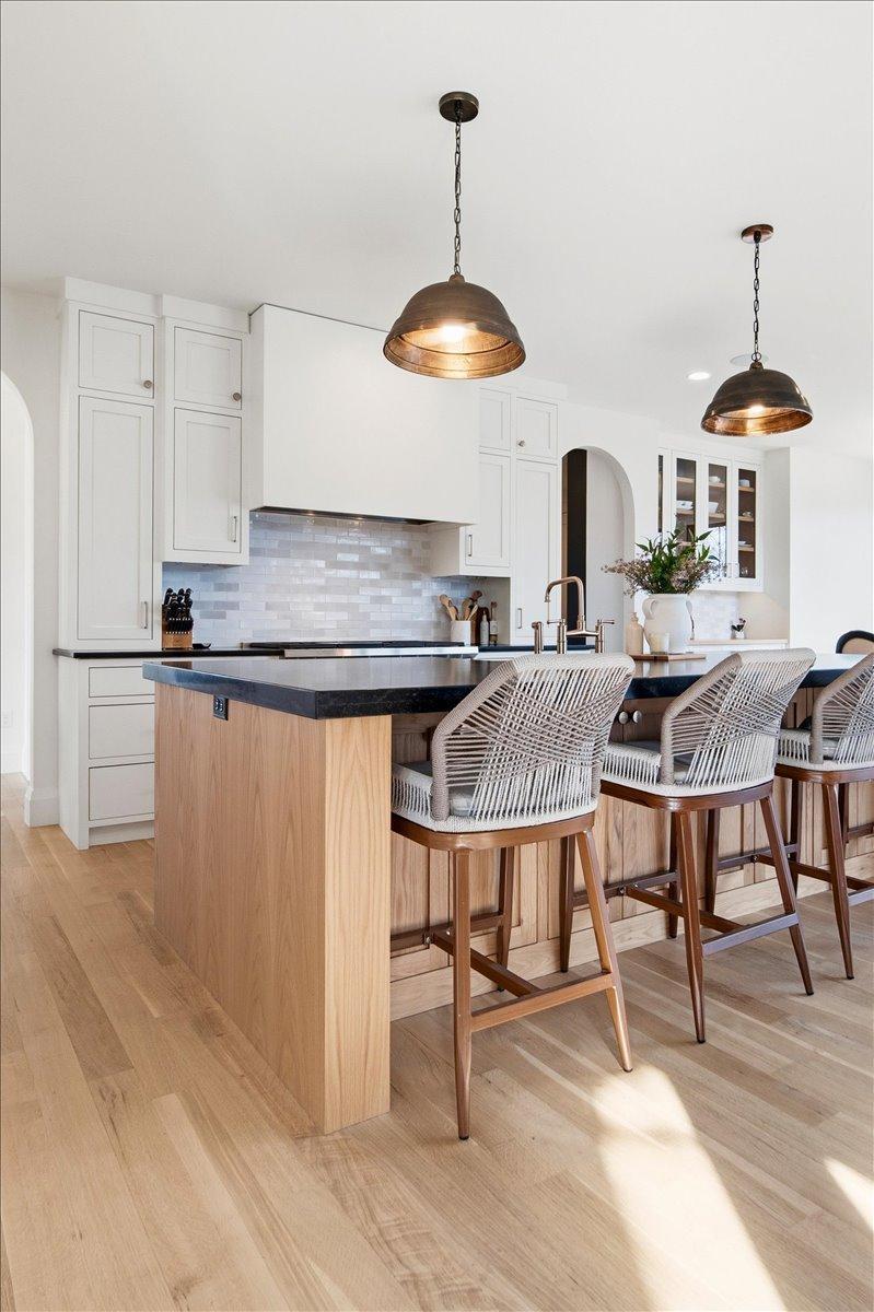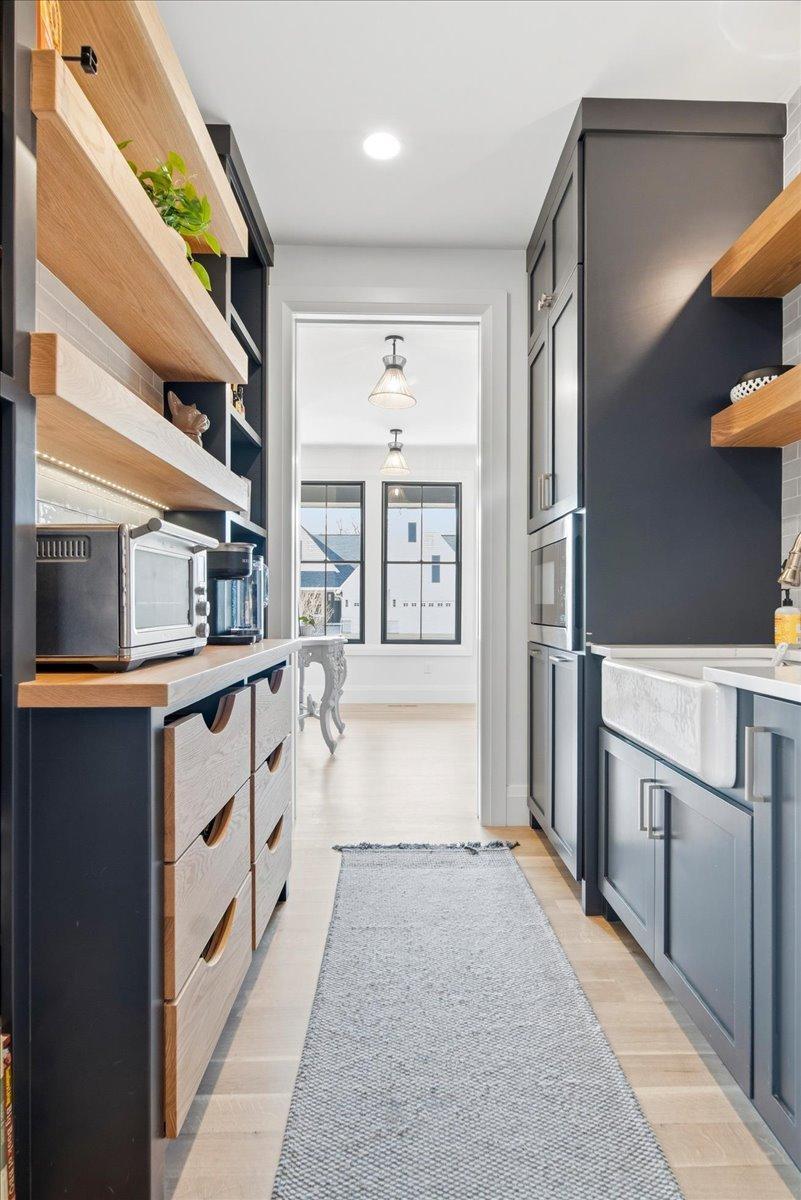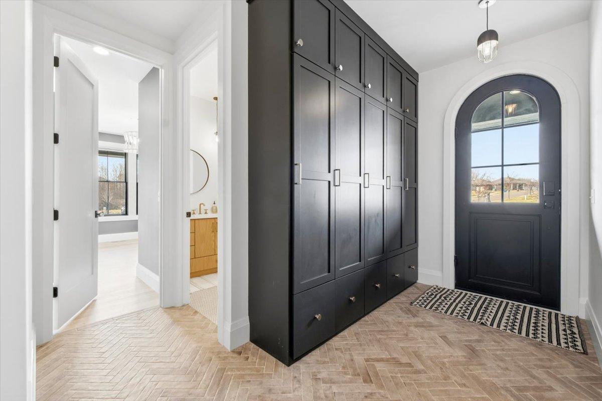 An extraordinary builder’s personal estate in the coveted Wayzata School District, showcasing uncompromising design, elite craftsmanship, and no-expense-spared finishes throughout. From the moment you arrive, the expansive wrap-around front porch and commanding custom iron exterior doors set the tone. Walls of Andersen windows flood the home with natural light, highlighting rich 3/4" rift and quarter-sawn oak flooring, architectural iron railings, and designer ceramic tile selections curated at the highest level. The kitchen is a statement - outfitted with Wolf, Sub-Zero, and Thermador appliances, a built-in Miele coffee system, custom inset and European-style cabinetry, and striking premium Brizo plumbing fixtures. Every surface and selection reflects intentional luxury and superior build quality. Designed for elevated living and performance, the home features a Full Swing multi-sport golf simulator, steam sauna, and a fully appointed wet bar. A main-floor in-law suite or executive office with 3/4 bath provides ideal flexibility, while a spacious bonus room offers additional lifestyle space. Mechanical systems - dual HVAC systems and in-floor heat in the primary bath, entire lower level, and garage. The engineered precast garage floor system spans over flex space below — including a private office, athletic training area, and exercise room - a rare structural upgrade seldom seen in residential builds. Whole-house audio, integrated security cameras, power window treatments, and a highly functional mudroom with custom lockers deliver seamless everyday convenience. Set on a large, private, tree-lined lot with two walkouts and a maintenance-free deck, this residence offers both privacy and presence. This is not simply a home — it is a statement of quality, intention, and craftsmanship rarely available in today’s market.