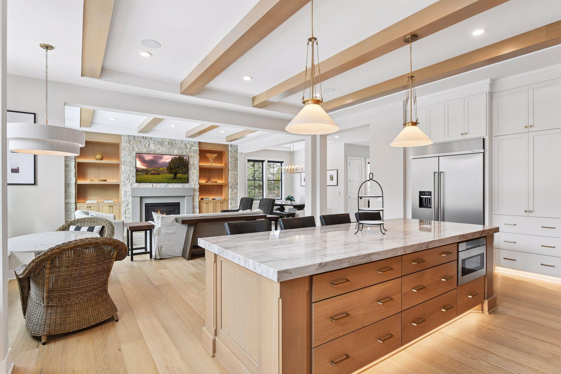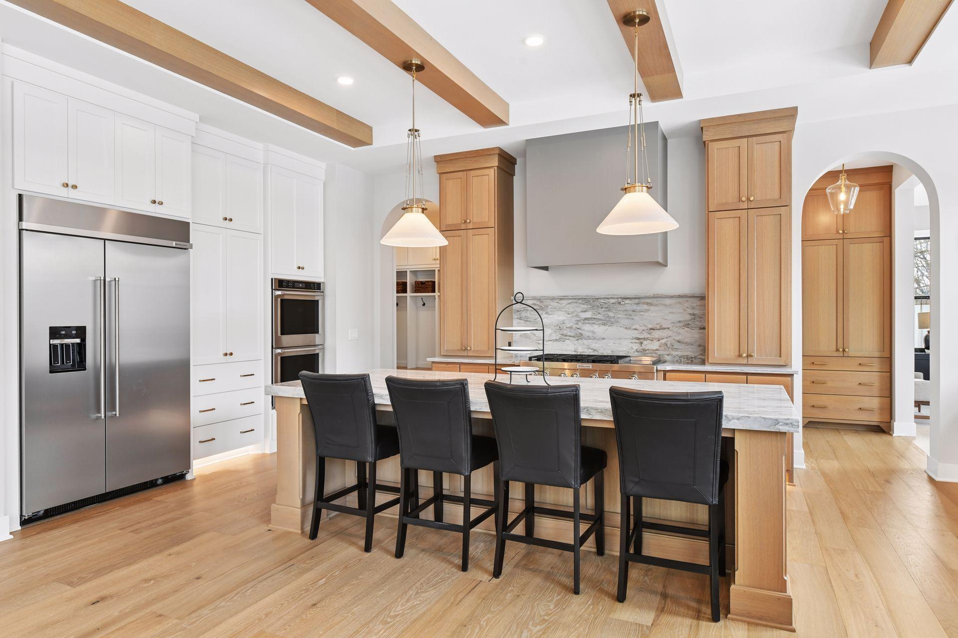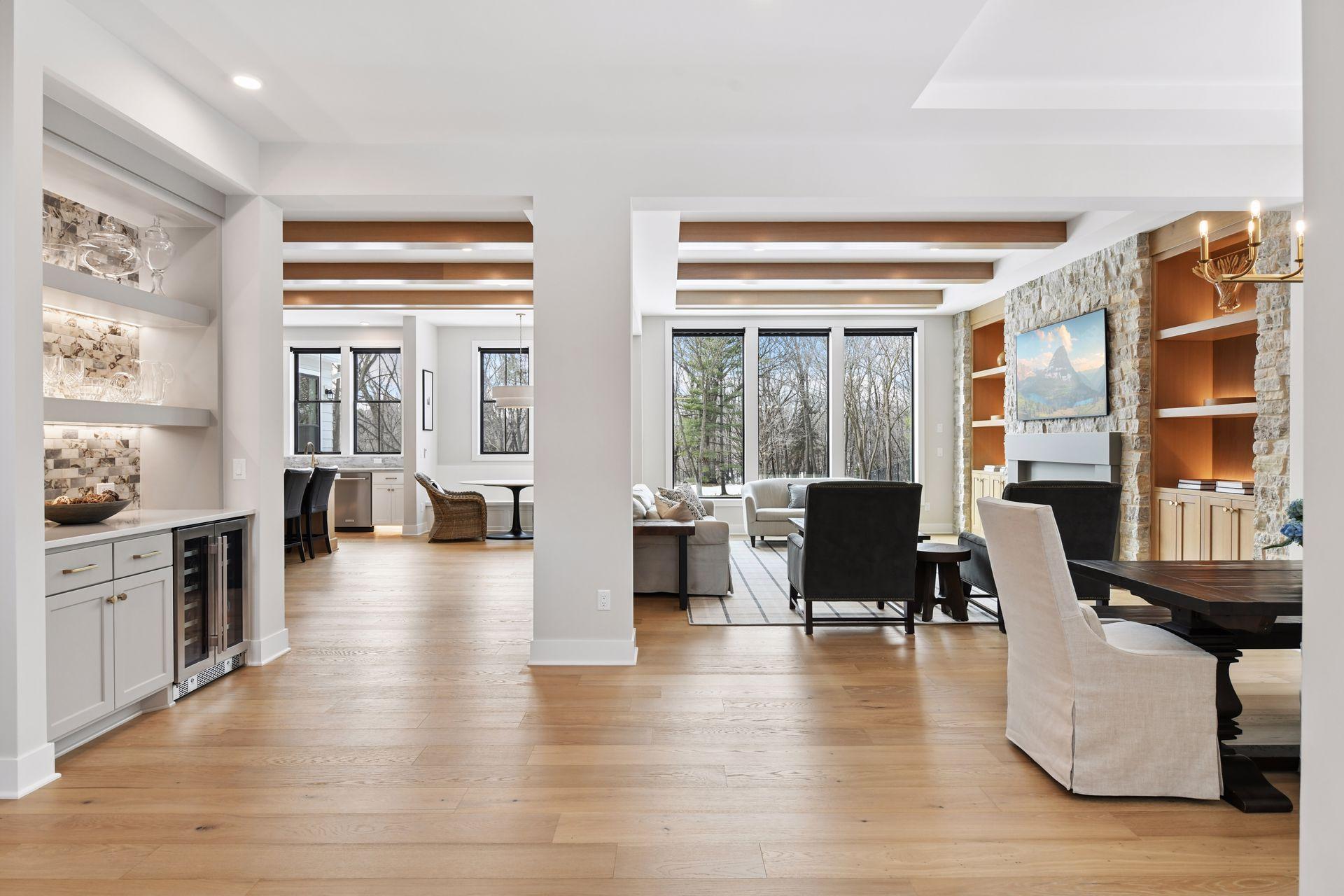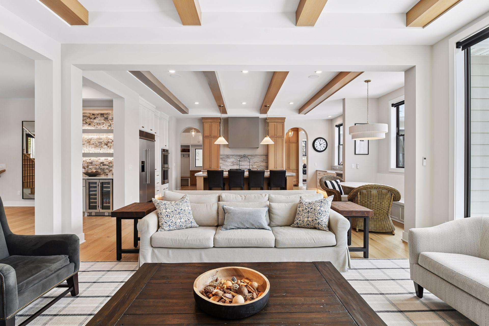 This stunning 2025 Hanson Builders custom home in Deephaven offers buyers a new construction home without the wait. Located in the award winning Minnetonka School District, this 5 bedroom, 5.5 bath residence spans 6,511 sq. ft. and includes a highly sought after indoor sport court. From the moment you enter, the 10 foot ceilings, grand open staircase, and abundant natural light create an immediate sense of scale and sophistication. The reception area flows into a show stopping gourmet kitchen highlighted by an oversized quartz slab island, rift white oak cabinetry, professional grade appliances—including a 6 burner range with griddle, double ovens, and oversized farmhouse sink—and a fully equipped butler’s pantry with a second dishwasher, sink, and extensive storage. Other features on the main level include a home office, two dining spaces, two inviting living spaces, each anchored by a floor to ceiling stone fireplace, along with thoughtfully placed recessed lighting that enhances the warm, welcoming atmosphere throughout. A beautifully designed mudroom with lockers, bench seating, and custom closets adds excellent everyday convenience and organization. Upstairs, the home offers four spacious bedrooms, each with its own ensuite bathroom and walk in closet, along with a bright loft area and a generous laundry room with ample storage. The luxurious primary suite includes heated floors, dual vanities, an oversized walk in shower with bench, a cast iron soaking tub, and an expansive walk in closet, creating a serene retreat for the homeowner. The walkout lower level with 9 foot ceilings is designed for entertainment and lifestyle flexibility, featuring a sport court, fitness room, fifth bedroom and bath, large family room, dining area and kitchen with an oversized island, refrigerator, dishwasher, and microwave—perfect for hosting guests. Set on a beautifully landscaped 0.94 acre fenced lot, the outdoor spaces rival a private resort. Over $500K in premium aftermarket upgrades were added, including a 20' x 44' heated saltwater pool with water features and sun shelf, paver patios, a firepit, landscape lighting, and extensive new vegetation including a low mow fescue creating a carpet like lawn under the mature trees, all professionally designed by Hartman Landscape. Additional enhancements include a Phelps hot tub, designer 10' x 12' shed, upgraded closets, 4” gutters, Shade Store window treatments, and a maintenance free Trex deck off the sunroom. The location is equally exceptional. Deephaven residents enjoy access to boat slips, boat launches, beaches, and Thorpe Park. The home is just minutes from Minnetonka High School, Deephaven Elementary, the Community Education Center, and several preschool and daycare options. Outdoor enthusiasts will appreciate the close proximity to marinas, Lake Minnetonka activities, regional trails, parks, and the relaxing lakeside restaurants, boutiques, and seasonal festivals of charming downtown Excelsior—easily accessible by bike or foot. Additional features include a heated, EV ready 4 car garage with floor drains and space for boat or RV storage. No HOA. This extraordinary home truly offers everything—luxury, comfort, space, amenities, and an unbeatable location. Furniture, TVs and 2020 Regal LS6 Bowrider Boat available- separate bill of sale. This home is only being offered due to an out of state relocation.