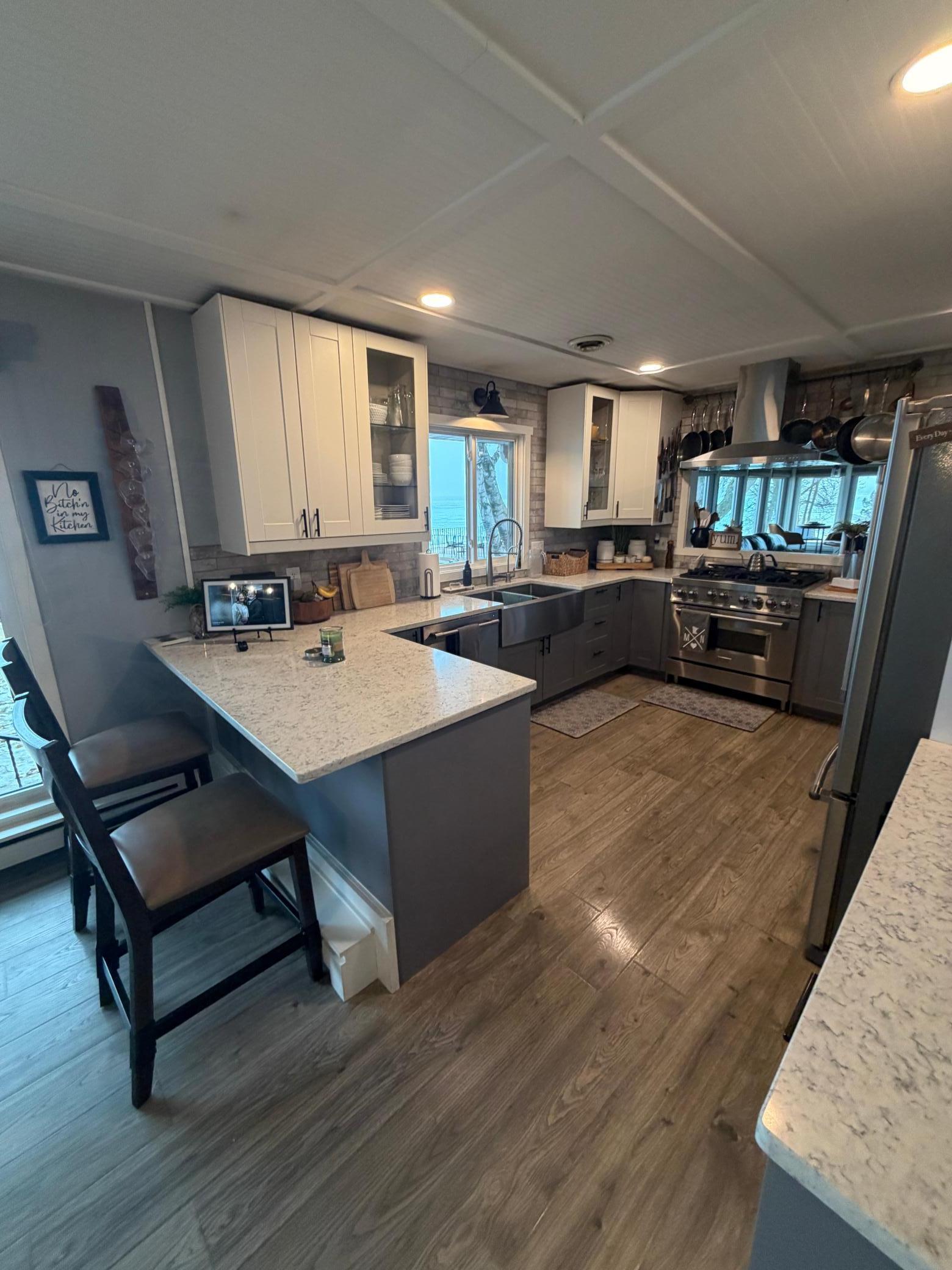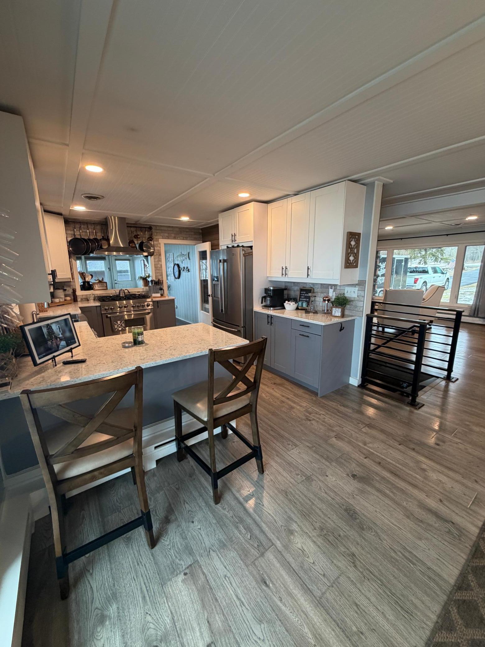 Experience the pinnacle of lake living in this wonderfully renovated, turnkey masterpiece on Big Detroit. Boasting 100 feet of prime, sun-drenched shoreline along with mature trees, this 4-bedroom, 3-bath residence blends charm with modern luxury. Every inch of this home has been thoughtfully updated, featuring all-new electrical and plumbing, newer windows, and high-end finishes throughout (check out the update list in the supplements). The heart of the home is anchored by two cozy fireplaces and a stunning kitchen equipped with top-tier appliances.